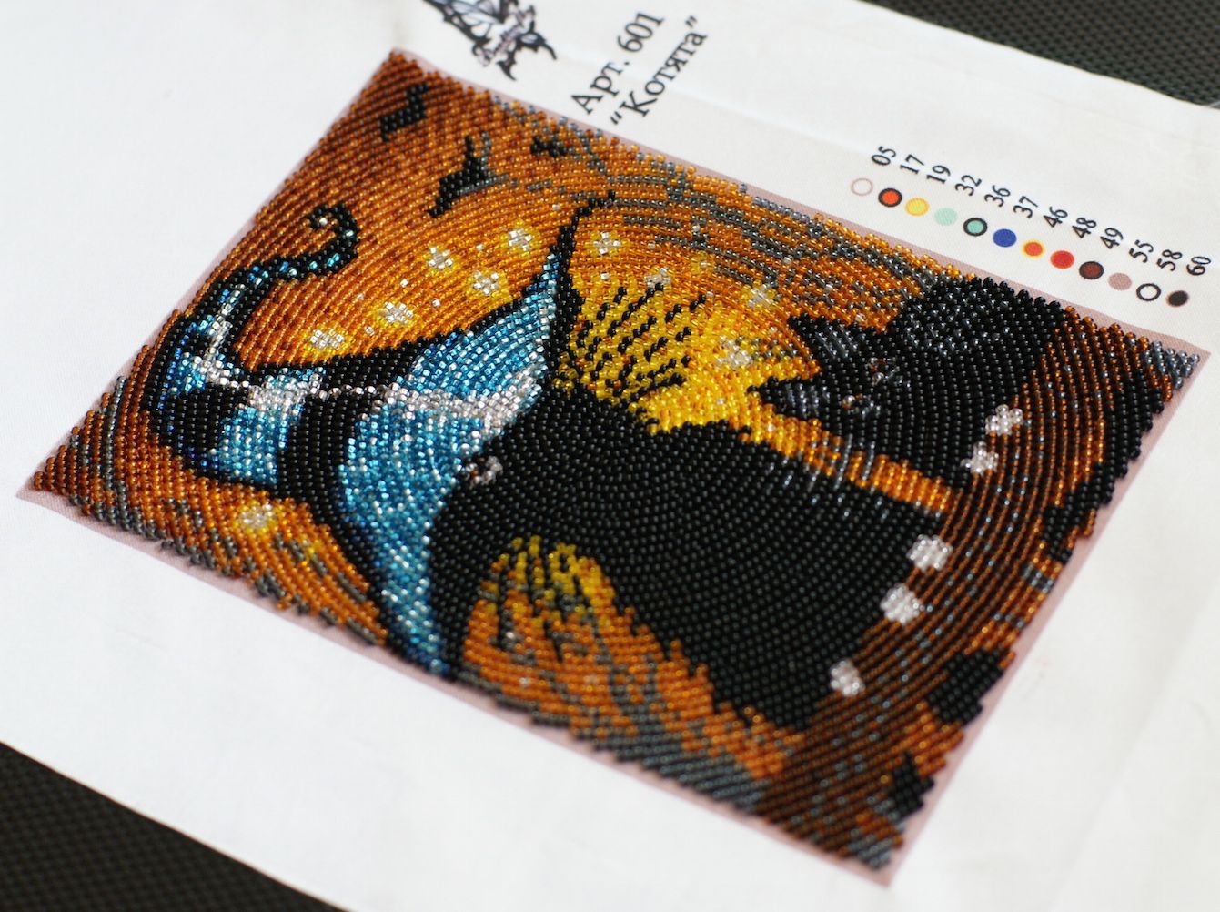 27 декабря 2015 Всем привет! Вот и я со своим предновогодним отчетом. Спасибо девочкам, что сегодня и все предыдущие дни делились своим праздничным настроем и настроением - если бы не вы, я бы, наверное, так и не решилась сегодня на отчет. Итак, вышивание... Вышивание шло своим чередом, но как-то очень медленно и вразвалочку. Поэтому несмотря на довольно долгий период моего "безотчетного молчания" прибавления не очень значительные. Во-первых, я завершила работу над Триумфальной аркой от Новой Слободы. Напомню, оставалось только пришить бисер, что и было сделано в течение каких-то 3-4 вечеров. Итак, вот что получилось: Впечатления - симпатичная и настроенческая отдыхалочка. Нитки приятные, хоть и синтетика, мягкие и шелковистые, ведут себя прилично, в узлы не вяжутся, положено их с приличным запасом. Принт смещен относительно центра на 2 клетки, что, если присмотреться, видно в уголках арки. И да, силуэт пришлось смешать ровно на эти 2 клетки, чтобы перекрыть принт. По идее принт здесь играет некоторую роль, слегка меняя оттенки ниток готовой вышивки и обеспечивая более плавные переходы. Ну и кое-где остается незашиваемым рисунком, что здесь весьма оправдано: исключает одиночные крестики и лишний бэк, который смотрелся бы грубовато. Бисер - здесь Slovenska Busa - положено с огромным запасом (несколько раз рассыпала и все равно одного цвета 2й пакетик даже не вскрыла). Думала, как писать о качестве, если особо не с чем сравнить. Но перейдя после на Баттерфляй, поняла, что он все же среднего качества. Размер довольно прилично гуляет и много бисеринок без дырочек. Но, учитывая, сколько его по количеству, на результат это особо не повлияло. Если говорить про личные впечатления, то мне, как перфекционисту, не очень понравилось, то что бисеринки на вышивке все же немного болтаются и на одиночных бисериках видны нитки. В целом интересно, но если говорить про бисер как технику, то 1)теперь точно не буду заменять фр.узелки на бисер и 2)буду выбирать бисерные дизайны, где бисеринки лежат поплотнее. Существенно плотнее. Еще несколько фото: Далее снова был бисер. А именно Котята от Баттерфляй. Я же купила себе органайзер для бисера от Дубко. Он, конечно, всего на 5 ячеек, но мне в самый раз. Опробовала его на Арке: удобно и дети на "мамины шарики" вроде особо не покушаются. Поэтому на свой страх и риск разложила бисерный процесс не только ночью. А потому и прибавляться он стал на глазах. Фото делала, когда закончились все круговые ряды. Сейчас уже немного больше. Умудрилась рассыпать один цвет. Да как! Открытый пакетик упал входом вниз, причем между сиденьем и боковой стенкой дивана. Я даже не пылесосила, пока не убедилась, что собранного бисера хватает. Но его хватает! Браво Баттерфляю! И немного пошила зевающего Дракошу по схеме Е.Мешковой. Почти готова голова (точнее зубастая пасть! ), правда пока без бэка. Теперь про Новый год. Не могу сказать, что настроение очень праздничное, но утренники и детские елки делают свое дело. С Настей учили стихотворение про "папины глаза", я узнала много новых новогодних песен и выучила целых 2 танца, репетируя их со своей Снежинкой! Костюмы им в этом году выдали в ДС, так что тут фантазировать не пришлось. Но это не помешало всплакнуть от умиления на утреннике. Теперь ждем фото - надеюсь похвастаться уже в первом отчете 2016 года. А дома мы нарядили, нако