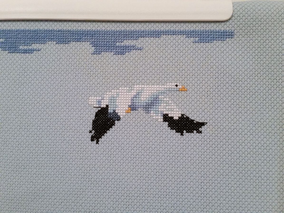 7 февраля 2016 Всем привет! Я снова с ночным отчетом. В этот раз мне совсем не терпится рассказать вам...новости за неделю Начну с "дел житейстких". Ну то есть с текущих процессов. Их сегодня будет два. 1. Пражский град от РТО Старалась шить его максимально. Во-первых, потому что хочется поскорее закончить, а во-вторых, потому что знала, что в конце недели - на следующей ему достанется гораздо меньше времени. В итоге имеем: Левая половина завершена, переставляю снапы, а значит могу показать вам его "в полный рост". Работа перешла в ту стадию, когда мне уже плевать как получается (временно, конечно), я лишь хочу побыстрее закончить, а Женя начинает восхищаться тем, что получается . На самом деле мне тоже очень нравится. И вообще городские пейзажи у РТО получаются отлично. По-крайней мере, как я люблю. В закромах имеется еще несколько 2)Арктический дим Тут прибавка в крестиках небольшая (цвета на этой неделе совпали с цветами РТОшки, а синий я воспринимаю весьма дозированно), но зато появился первый персонаж, получивший прозвище "гусь" И гусь покрупнее (до и после бэка): А еще, во вторник, когда Настя вышла с занятия по рисованию, я вдруг поняла, что арктическая тема стала модной последнее время. В нашей семье так точно. Смотрите, какие рисунки они рисовали на последних трех занятиях Ну а дальше...дальше сплошная радость и удовольствие! Помните, я обещала в прошлом отчете форумно-вышивальные приятности? Ну так вот, о них и речь... Не так давно Аня Ан4оус разыгрывала в Конфетке подушку от Вервако. А у меня последние несколько недель шерстянка для себя любимой стала прямо навязчивой идеей, потому как понравилось мне на них спать, а дети свои отбирают. Купить сейчас было проблематично. По-крайней мере то, что нравилось. И я подумала "а вдруг?!" И впервые искренне огорчилась, когда генератор выбрал не меня. Но генератор - это генератор, а друзья - это друзья! И вот Ася Каори (а выиграла именно она) с Аней решили, что полетит подушка не в НН, а в Московскую область. Девочки, я безумно вам благодарна: Аня, тебе за розыгрыш такой вкуснющей конфетки, Ася, а тебе за твою щедрость и..и...(слова закончились от эмоций!). И похожести номеров здесь не при чем В общем, всю неделю, что бандеролька добиралась ко мне из Барнаула, я предвкушала новый процесс, даже мысленно начинала его вышивать, прикидывая откуда начну и т.д. и.т.п. и параллельно подгоняя к "отчетному виду" другие процессы. А в субботу (ну т.е. уже вчера), едва открыв глаза утром и оставив дома сонное царство, я побежала на почту. Эх, если бы не Женя, то позавтракать я бы в этот день точно забыла Итак, новый процесс! Подушка от Вервако (и от Ани и Аси ), 634, Красно-желтый орнамент (узор ромб). Акриловые нитки, страмин с нанесенным рисунком. На страмине я шью впервые. Сначала было очень непривычно и забавно видеть снаружи то, что происходит на изнанке. Особо это заценила Настя и неоднократно сегодня, подлавливая момент, как я выпускала подушку из рук, тут же брала ее повышивать А меня затянуло с головой. В схему не смотришь, цветов всего 4 и все хорошо различимы, рисунок мало того что нанесен очень четко, так еще и настолько геометрически регулярен, что шпаришь его, совершенно не задумываясь. Даже Женя, подвис, глядя как я машу рукой туда-сюда. Ну а я...я не испытывала такого неподдельного восторга очень давно. Наверное с самого посещений в 2009 год