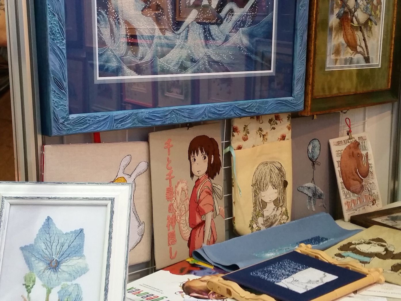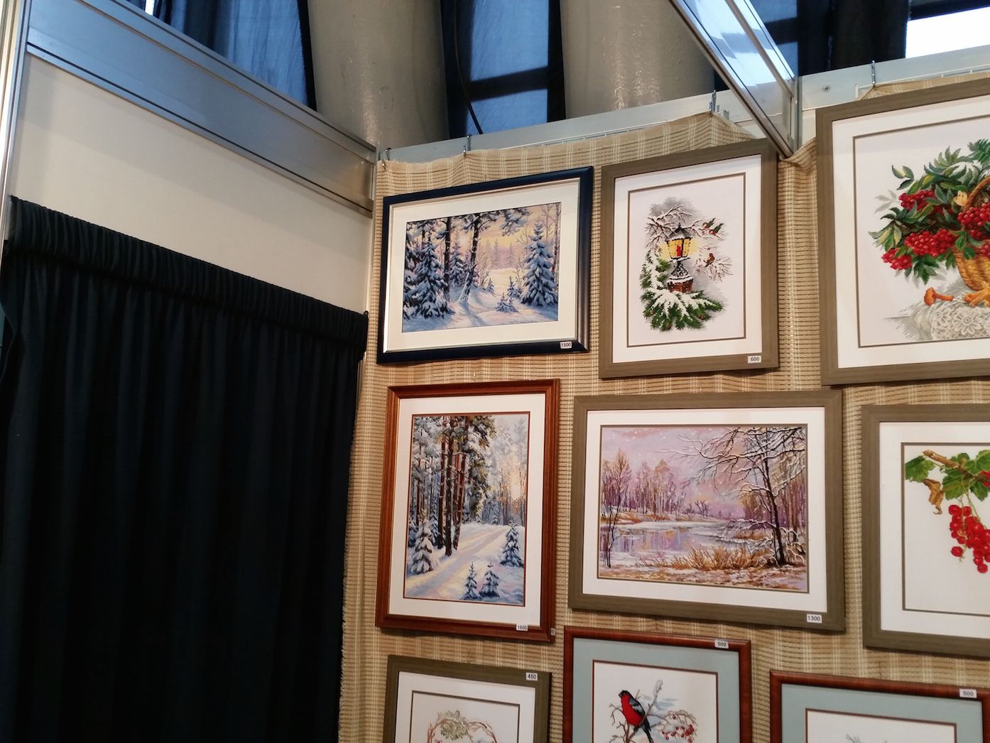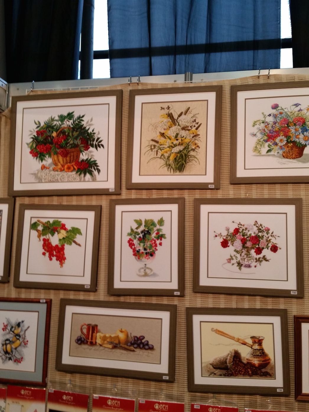 14 февраля 2016 Девочки, всем добрый вечер! Сегодня отчета не будет. Не будет его по двум причинам: во-первых, я проболела всю неделю, а поэтому вышивка шла ни шатко, ни валко. И даже с подушкой возникли проблемы, т.к. при жутчайшем кашле ворсинки шерстяных ниток оказались абсолютно непереносимыми. И это еще мягко сказано. Хотелось плакать от обиды и досады. А во-вторых, я сегодня все таки попала на Формулу Рукоделия, от которой получила массу позитивных эмоций, а потом еще и в Леонардо заглянула. Так что сил фотографировать и доводить вышивку до отчетного состояния нет никаких. Поэтому отчет по процессам будет на днях. А сегодня.... сегодня поделюсь впечатлениями от ФР... Последний день выставки, много фото и отзывов в сети, поэтому ожидания вполне соотнеслись с реальностью, что явилось залогом хорошего времяпрепровождения, т.к. я уже неоднократно убеждалась, что причиной многих отрицательных эмоций являются именно завышенные ожидания. Помимо всего прочего гуляла я по выставке в очень приятной компании Оли Путешественницы и ее дочки Сони, поэтому и обсудить, и посмеяться было с кем Что понравилось. Стенд Овна - очень-очень понравилось. Много чего. Особенно МарСаннина зима, зимний фонарик, полевой букет (по мне, гораздо симпатичнее, чем у МИ) и миниатюрки с ягодами. У последних очень гармоничное сочетание размера, цветового решения и композиции Марья Искусница. Интересный ловец снов (у меня фото почему-то не оказалось). По словам представителй фирмы, в наборе будет только стандартный комплект для вышивания, а перышки и т.п. только вариант оформления. Обещали рассмотреть идею с лимитированной партией полного комплекта. Неожиданно интересно смотрятся желтые хризантемы (а красные, наоборот, проигрывают анонсу). А вот серия "плющ-цветы-ветка шиповника" на равномерке несколько разочаровала. Красиво, но купить желания не возникло (чему я очень рада!!). Еще эти ужасные синие рамы, непонятно как оказавшиеся на целом ряде вышивок Золотые ручки - все очень интересно. Марина Маняша, корабль тебе точно не нужен! Мотылек из новинок вживую смотрится очень симпатично (а уж какие там травки и пижма!!), хотя увидев анонс новинок, я и выдала презренное "фуу-у". Мне даже больше нашумевших Заката-Рассвета понравилось. Котик с гусеницей вообще прелесть! До того, что мы с Олей немедленно стали счастливыми его обладательницами, несмотря на трезвое и весьма резонное Сонино "когда вышивать?" По-прежнему очень впечатляет натяжка вышивок на стенде Золотых Ручек. Криво, косо, буграми...Но, как оказалось, это еще не предел. Посмотрите на фрагмент Жасмина: Бэк стянут настолько, что канва просто собралась в складки. Этот прием обычно в шитье для присборивания детали используют Очень много очень-очень-очень блестящей мозаики . Несколько стендов с "рисованием шерстью". Пэчворк. Куклы. Везде было что посмотреть непосвященному. Как смешного, так и интересного. Очень понравились работы в технике Папертоль (правильно написала?), особенно городские пейзажи. К этой технике присмотрюсь получше и, может быть, когда-нибудь попробую. Со стенда авторских схем горячий барнаульский привет нам передали "Тихиро" и "Природа" Ани Ан4оус Про Панну и их карту сказали много. Круто, но мне не надо . Понравились панельки. До Клейтона, конечно, далеко, но тем не менее симпатично и родное Еще очень порадовал с