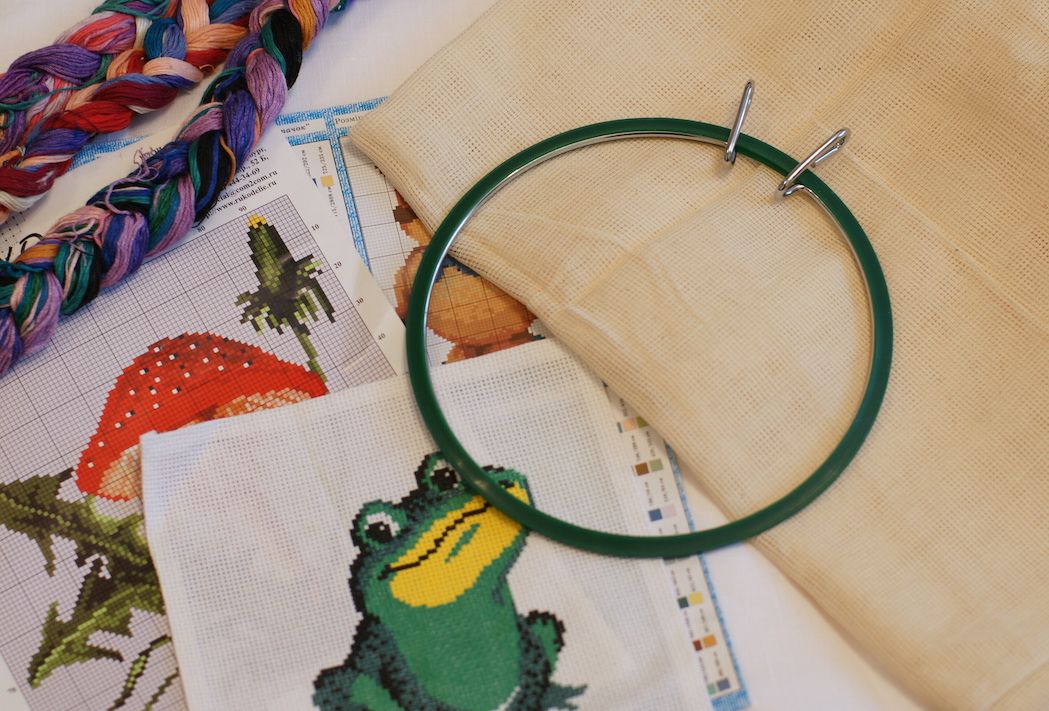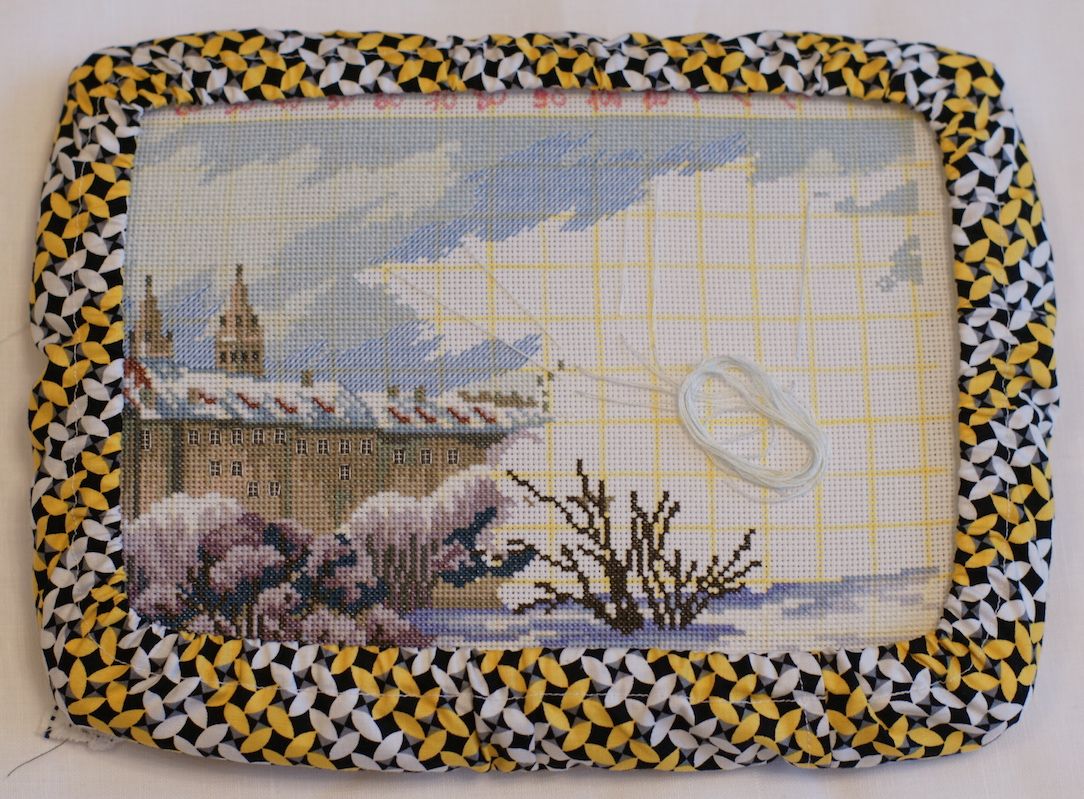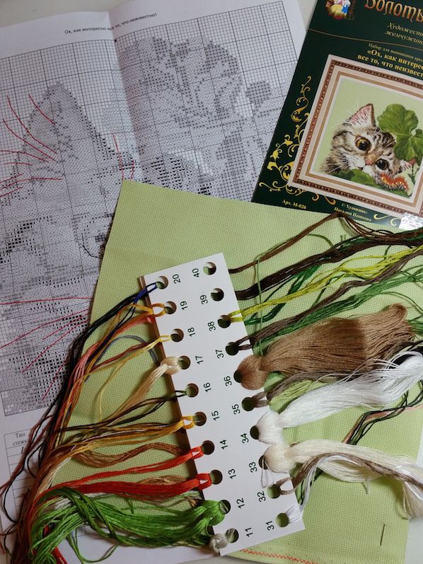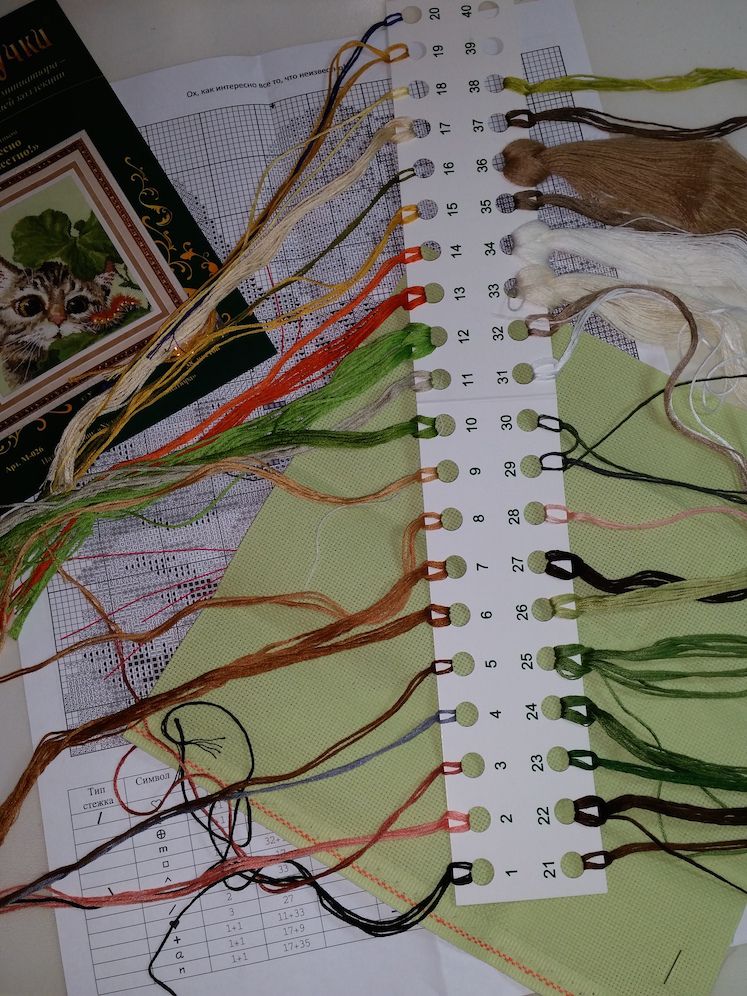 15 февраля 2016 Всем добрый вечер-ночь-утро! Вот и я с запоздавшим отчетом! Начну, пожалуй, со вчерашних покупок и полученной конфетки. Итак, мои покупки на Формуле ограничились внушительным отрезом белоснежного швейного льна (мечтаю о рубашках для детей на лето, чтобы от солнца защищали), который выступил еще и фоном в нынешней фотосессии, россыпью бусин (на заколки-резиночки-браслеты для Насти, а может и для себя) и небольшим, но очаровательным набором от Золотых Ручек. Сначала постараюсь выполнить просьбу МарСанны. В наборе светло-зеленая канва 18го каунта, много цветов мулине ДМЦ и несколько цветов шерстяных ниточек. Из техник крест, полукрест в разные стороны, разноцветный бэк и французы (гусеница вся их них!). Как обычно у ЗР все очень интересно и, судя по отшиву, не напрасно. Немного фотографий (качество так себе, поэтому, Татусечка, не делай пока гаечку, я потом при дневном свете красивые фотографии сделаю) Еще на ФР меня меня терпеливо ждала выигранная у нас на форуме конфетка от Светланы ss-kosareva. Собственно конфетка - это накладная выдергивающаяся канва. Она оказалась очень многообещающей: квадратная (был у меня печальный опыт ), легко дергается. Уже думаю, где и что вышить первым А еще Светлана положила много всяких разностей, от которых дети были в восторге: у Насти теперь есть свои пяльца, лягушонка она тоже утащила себе, а ниточки уже пошли на поделки и всякие развивающие игры для Лешки. После ФР я отправилась в Леонардо (он у меня по пути). Мне надо было купить основу и цифры для часов. Но думаю, что права была Оля, когда сказала, что мне просто туда хочется. Я это осознала уже будучи внутри, когда дорвалась до полок со всякой "очень полезной" мелочевкой и при этом меня никто не дергал "маааам, ну когда пойдем?.." или "мааам, смотри какие ниточки, бусины, коробочки....(и все это тут же тянется с полок). В итоге я накупила всякой всячины, не забыв про молнию для вышиваемой подушки и то, за чем пришла Часы, кстати сегодня начала собирать, но показать пока особо нечего. Разве что самое начало, чтобы немножко поинтриговать Ну а теперь к текущим процессам. Вся моя вышивка на этой неделе в силу здоровья была "благодаря кому-то". Или чему-то. 1. Подушка Шерстяные нитки плохо сочетаются с респираторными заболеваниями, поэтому тут продвижения не такие, как хотелось бы. Я ковыряла ее совсем по чуть-чуть, чтобы не спровоцировать приступ кашля. А вот по вечерам...по вечерам ее с удовольствием и упоением вышивал Женя! Благодаря ему сегодня есть, что показать: 2. Димовский Апчхи Тут большое спасибо Маше Molly21, которая выдала мне внушительный пинок в виде своего отчета с головой псины, вышитой всего за неделю. Я честно постаралась ускориться и у моего щенка начало прирастать туловище Я почему-то не могу сосредоточиться на этом процессе. Вышиваю 2-3 ниточки и зависаю, выбирая следующий символ. Или вообще на форуме. Попробовала разнообразить и немного облегчить себе процесс, воспользовавшись методом МарСанны - помогло, с места сдвинулась! К тому же очень удобно оказалось прятать хвосты ниток под чехлом для снапов, а этот процесс я вышиваю с ним, потому как слишком часто туда-сюда его дергаю. В общем, здесь целых два "благодаря.." Маша и Марина, спасибо вам большое! 3. РТО, Пражский град (не для гаечки!!) Здесь прибавления совсем незначительные. И случились они благодаря ФР: име