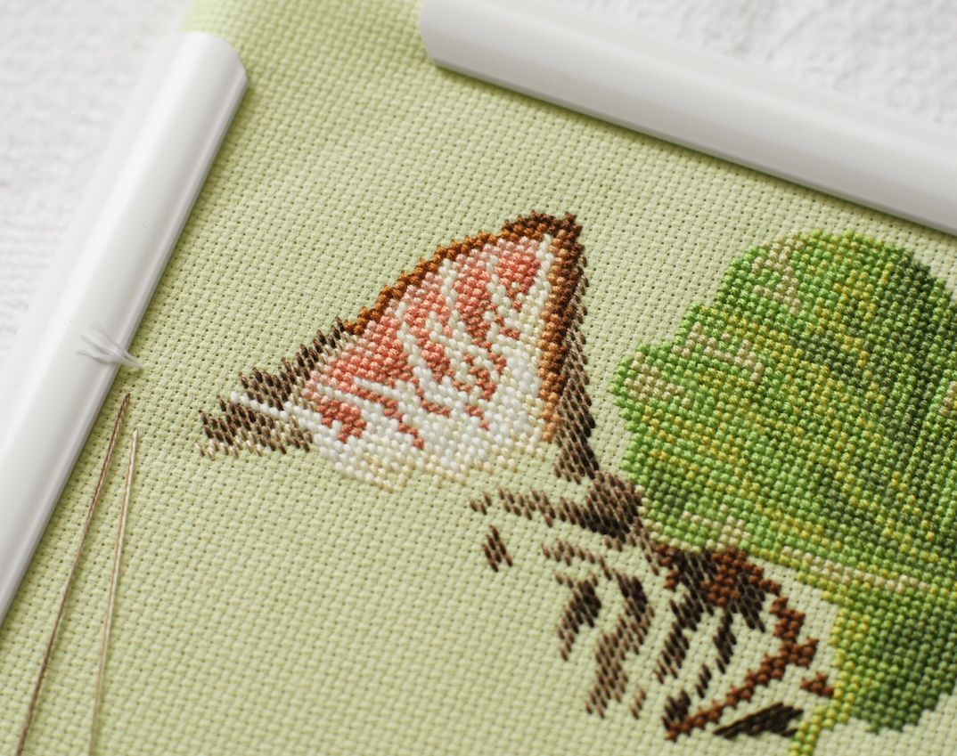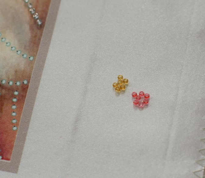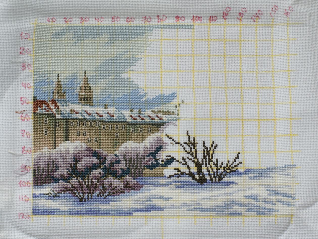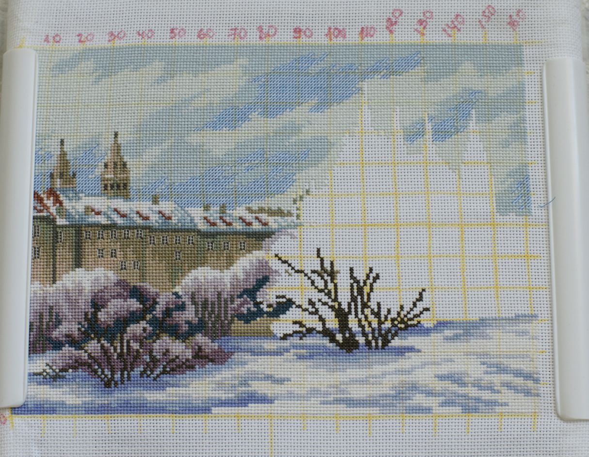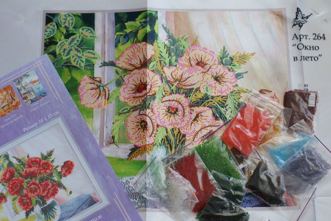 13 марта 2016 Всем привет! У меня большие планы на сегодняшний отчет, поэтому без лишних слов к делу! 1)Котенок от Золотых Ручек Совместник - вещь великая, и хоть моя совесть и не такой двигатель прогресса, как у Марины, но она тоже очень старалась Вышила ухо и дотянулась до правого края дизайна. В ухе наконец довелось использовать шерстяные ниточки (самые светлые цвета на ухе) - получается более или менее аккуратно. Да и, думаю, использование их здесь оправдано: очень живо получается. Уже нетерпится добраться до глазок, а то мой один в компании безглазый остался 2)Пражский град от РТО Здесь дошила, наконец, небо. Теперь надо приступать к очередной стадии строительства замка, силуэты башен которого уже вырисовываются на фоне голубого неба. Было: и стало: 3) Малыш Корги по схеме П.Тарусовой Этот процесс точно не может быть заброшен: детская футболка такая вещь - чуть задержишься и она мала Поэтому этот зверь глазками уже обзавелся: 4)Новый процесс А вот и процесс, который на равных разговаривал с моей совестью, напоминающей о котенке, футболке и т.д. по списку. Конечно же это бисер из последней партии пополняшек. Хочу вас разочаровать - это не шары, и даже не тюльпаны - к сплошной зашивке на такой площади я на данный момент не готова. Но все же надеюсь, что новый процесс вас не разочарует: он невероятно яркий, весенний и "легкий" по своему настроению. Итак, Butterfly, 264, "Окно в лето", частичная вышивка бисером. Вот собственно то, что я увидела, открыв набор: Полиграфия на обложке отвратительная, а комплектующие просто потрясающего качества! Бисер яркий, красивых и манящих цветов. Фон нанесен очень качественно - тряпочка чуть глянцевая, но "не сопливая", никакой зернистости, с изнанки укреплена флизелином, причем очень хорошо: гораздо плотнее, чем в вышитом ранее коте и даже в новых шарах (а там размерчик ого-го!), - иглой при этом прокалывается отлично. Тряпочку я тут же погладила и в путь. И вот что имеем на данный момент. Сначала фото для гаечки: Ну а теперь разбор полетов и "много-фото" НЕ для гаечки. Для начала фото для тех, кто боится попробовать бисер по причине "как и где разложить/натянуть". Это собственно вся моя организация: шью на руках, разложив на столе, огранайзер на 5 ячеек, рядом пакетики с бисером и номерами, чтобы в любую секунду проверить соответствие номер цвета - цвет бисера. С места на место переносится примерно за 15 секунд. Далее по технике. В отличие от той же Магии Канвы, да и многих других производителей, здесь шьется не рядами, а цепочками строчным швом, причем направление цепочек разное, оно отражает естественное, "природное" направление линий (мне очень напомнило гладь, по-крайней мере от Рисуем иглой, которую мне довелось попробовать). Цепочки разной длины, разных направлений, могут неприхотливо пересекаться - в лепестках это оказалось не так просто. Для помощи на каждом кружочке есть черная точка, обозначающая одно из двух мест прокола иглой (второе диаметрально противоположно). Вот кусочки схемы для иллюстрации: На шторке, понятное дело, все просто. А вот первый вечер, когда я взялась за лепесток Я чуть было не пожалела, что ввязалась в эту авантюру. Сейчас уже привыкла и получаю просто огромное удовольствие! Теперь про "фишку" Баттерфляя: цвет кружочка выбирается не просто так, в сочетании с цветом бисера он дает определенный художественный э