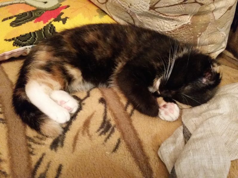 19 июня 2016 Да, длинный у меня выходит сегодня отчет.... Уже и за окном светает. Но дальше про багетку и котиков, так что, как говориться, не переключайтесь! Итак, Лена уже меня рассекретила, так что спешу сдаваться. Я забрала из багетки оформленный ртошный Пражский град и переоформленного спустя три года тигра от Dimensions (Regal Tiger). Изначально планировалось в тигре только стекло поменять (ох и мутный же там антиблик стоял). Но в итоге поменяли и тон верхнего паспарту, сделав его немного шире, и избавились от траурной каемочки нижнего черного паспарту и подобрали совершенно офигительный багет. И если фото немного и нивелирует эффект от разницы было-стало, то вживую он колоссален: зверь вышел на первый план, теперь он излучает ту силу и мощь, что положена по дизайну. Всякий, кто заходит в квартиру (а он в коридоре висит), тут же обращает на него внимание, хотя он и висел на этом же месте три года, не вызывая таких эмоций у далеких от вышивки людей. РТОшка - это отдельная песня. Я не могу этого объяснить, но я влюблена в этот дизайн. Не страстной пламенной любовью, но сильной, нежной и как будто бесконечной. И оформление хотелось такое же личное, некричащее и нежное. И оно получилось! Мои эмоции от дизайна благодаря оформлению не изменились, но стали еще сильнее. Оформление сошлось с моим видением и ощущением дизайна. И это для меня самое главное. При этом, оно конечно же еще и стильное, гармоничное и т.д. и т.п. Ну в этом то сомнений и не было И где же ей висеть, как не над моим рабочим местом, пусть и швейным? Прошу прощения за беспорядок - в результате упорных субботних трудов эта горка тряпочек уже почти совсем превратилась в три пары Лехиных штанов разной длины (в смысле шорты, бриджи, брюки). В общем теперь шитье доставляет мне еще большее удовольствие, чем раньше Ну и напоследок коты и кошки (интересно, кто на этот раз победит: багетка или котята? ). Тут мне сделали справедливое замечание, что я их только спящими показываю. Не только! Еще зевающими и очень хищными! А вообще они стали просто огромными, носятся по квартире с бешеной скоростью, катаются клубком и устраивают всевозможные игры-скачки. Особенно с ниточками. И особенно Тася - она та еще знатная охотница! А когда набегаются, то прибегают обниматься. Ну или, если я занята, то выбирают разные наблюдательные пункты: На этом позвольте попрощаться с вами. На часах уже четвертый час ночи утра (на улице светает!!) и я спешу примкнуть к этой беззаботной очаровательной малышке. Всем удачи, не хандрить и улыбаться в любой ситуации! Помогает, проверено! Пока! ole4k@, Nat717, yult и 35 других сказали спасибо Поделиться сообщением Ссылка на сообщение