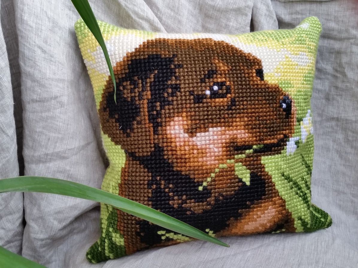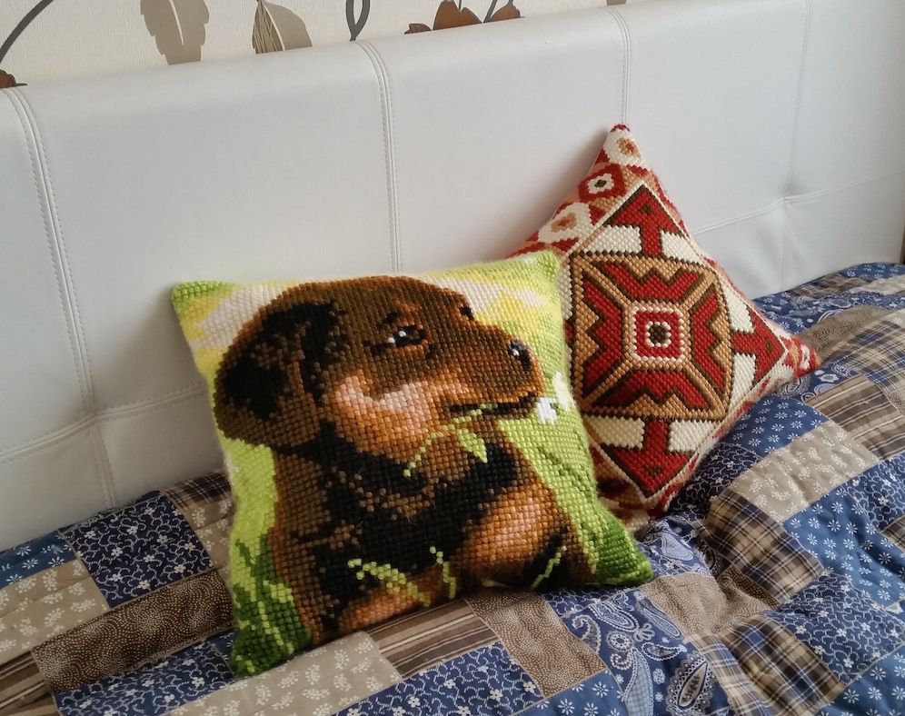 10 июля 2016 Всем привет! Я тут немножко отчитаться решила И как бы я ни старалась, а отчет снова выйдет длинным: соску-у-училась! Я немножко пропала с форума и прошу меня за это простить покорно, но того требуют обстоятельства: что-то разладились у меня отношения с детьми (а как следствие и самой с собой), а их поведение стало ну просто из рук вон. И как истинная зануда, склонная к самоанализу, я решила исправлять ситуацию, начиная с себя - т.е. уделять им больше эффективного внимания. И первый и главный шаг на этом пути - вылезти из интернета и с форума - оказался очень действенным. Плюс я подсела на шитье: мало того что мне нравится, так еще и результат быстрее видно. Как следствие вышивка отошла на второй план - теперь вышиваю в основном после 11ти вечера. Так что прошу на меня сильно не обижаться, я верю, что рано или поздно вернусь. Тем более, что вышивать я не перестала. Итак, поехали... 1. Золотая рыбка. Многие уже видели в Галерее (и я очень благодарна вам за все невероятно лестные слова и комментарии!) - я наконец оформила свою золотую рыбку, вышитую по бесплатной схеме Инны Пешковой. Оформила сама, в качестве основы взяла заготовку для декупажа: открутила всю фурнитуру, а дальше ткань для пэчворка, немного швейной машинки, много скотча, немного клея, фетр, - и шкатулка почти готова. Осталось только дождаться Женю с работы и, вручив ему отвертку, с глазами кота из Шрека попросить все аккуратно прикрутить обратно Шкатулка предназначается для бисерных процессов, потому и размер подбирался такой, чтоб дубковский органайзер влез, и внутрь приклеился неяркий однотонный фетр, чтоб бисеринки по дну легче искать было. Для фотосессии распотрошила набор с березками: все влезло, но!.. так захотелось его начать А ведь я себя почти уговорила отложить до лучших времен. Пока договорилась со своей совестью так: как дошью небо на морском пейзаже и сниму его со станка на снапы, так можно будет и бисерные березки натянуть 2. Щенок ротвейлера, подушка от Вервако - зеленим гаечку!!! Все-таки я была права, она пришла к финишу первой в своеобразном подушковом забеге Процесс - одно удовольствие: никаких сомнений, никаких напрягов и очень уютный результат. И несколько "интерьерных" фото: комментарии излишни... 3. Подушка с совами в ковровой технике. Тут тоже есть прогресс: появилась ветка, а значит вот-вот начнут появляться и главные герои - лапки уже в следующем ряду! А вообще получаю удовольствие от процесса и стараюсь его немного растягивать, чтобы вышивальные будни были более разнообразными. 4. Река Дору по схеме Е.Мешковой. Небо растет и ширится: покончено со вторым цветом и начался третий и последний. Появилась еще одна птичка (как они мне нравятся!), а также решила вышить кусочки мачт для разметки канвы - теперь есть хоть какие-то ориентиры и так тщательно считать "небесные ряды" больше нет необходимости. Дальше болтология не по теме. Ну то есть не по вышивальной теме Для начала немного вышивального читерства. Ну или вышивального вандализма - кому как больше нравится. Вышивать - долго, дети растут подчас быстрее, да и лето очень скоротечно. Что же делать? Рисовать!! Акриловые краски по ткани, футболка, полчаса времени и сутки сушки и, вуаля, обновка готова! Правда в моем случае понадобился еще рисунок из раскраски. Это мое творчество (кстати, Оля Aristek, ты просила что-то из шитья пок