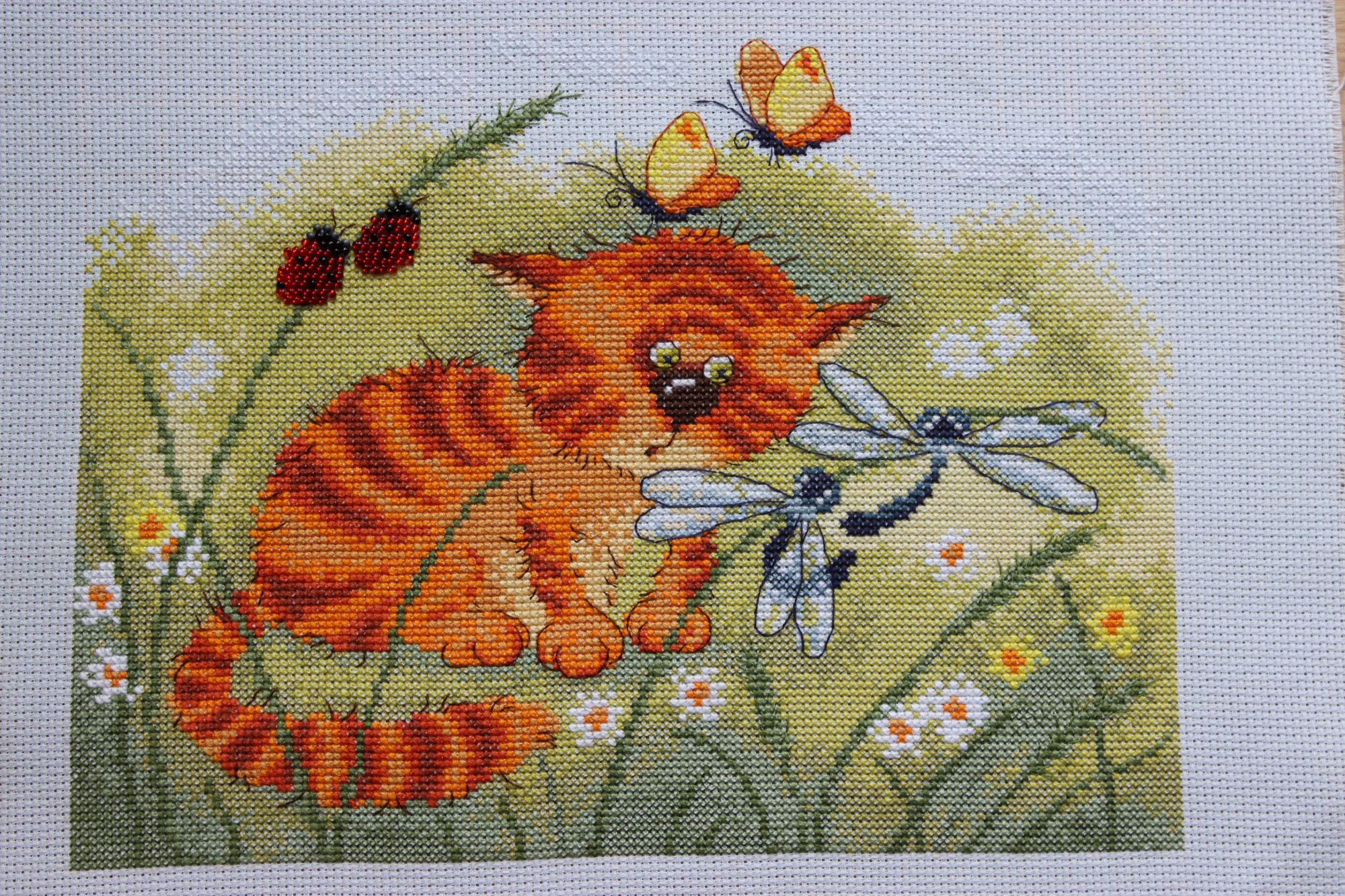 27 июня 2016 1 час назад, yult сказал: Всем привет! Это снова я и кошачья банда. Скоро, видимо, придется переименовывать тему на что-то кошачье Под первым пунктом пойдет законченная работа. Да-да-да, благодаря мегамарафону я это сделала и двухлетний долгострой поборен. Прошу любить и жаловать - Брачный сезон от Марьи Искусницы (до сих пор недоумеваю, почему они именно так назвали набор, котейке до брачного возраста явно еще расти и расти )... Что могу сказать про процесс. Канва хорошая, нитки так себе (у меня часто путались), крестиковая часть схемы проработана хорошо (вся зелень вышивается кстати в одну нить), бэк застрелиться (он весь дробный, и это на аиде то ), но благо его немного. Из неприятного: на этой работе я получила привет от маркера - он проел голубой цвет канвы (маркер у меня был от Clover). Не смертельно, видно только под определенным углом, но осадочек в душе оставило. Попыталась сфотать "проетые"линии, фотик их не очень то хотел видеть. (это фото в гаечку добавлять не надо!!!) Что делать с этой работой - ума не приложу. На стене не вижу, зачем вышивала не знаю . Полежит рулончиком до "лучших" времен. Под вторым пунктом у меня пойдет димовский котенок. Так как всю прошлую неделю я высунув язык шила рыжего, мелкому почти внимания не досталось. Но чуток все-таки прибавилось. Ну и удивленный прототип: На этом, в принципе, отчет можно и заканчивать. Погода у нас, откровенно говоря, хреновая, единственный более менее солнечный день был в воскресенье, но и он все равно закончился дождем. Мы таки съездили к морю, но красивых фото ждать не стоит - пляж городской, а мой променад состоял из расстояния автомобиль - шезлонг. Поэтому покажу только толстую себя Вот теперь точно все. Целую-обнимаю! Супер, котик яркий классный получился! Такие насекомые интересные!)) И димовский предесть! Очень нравится..я пока своего отложила(( Пузяка прикольная! yult сказал(а) спасибо Поделиться сообщением Ссылка на сообщение