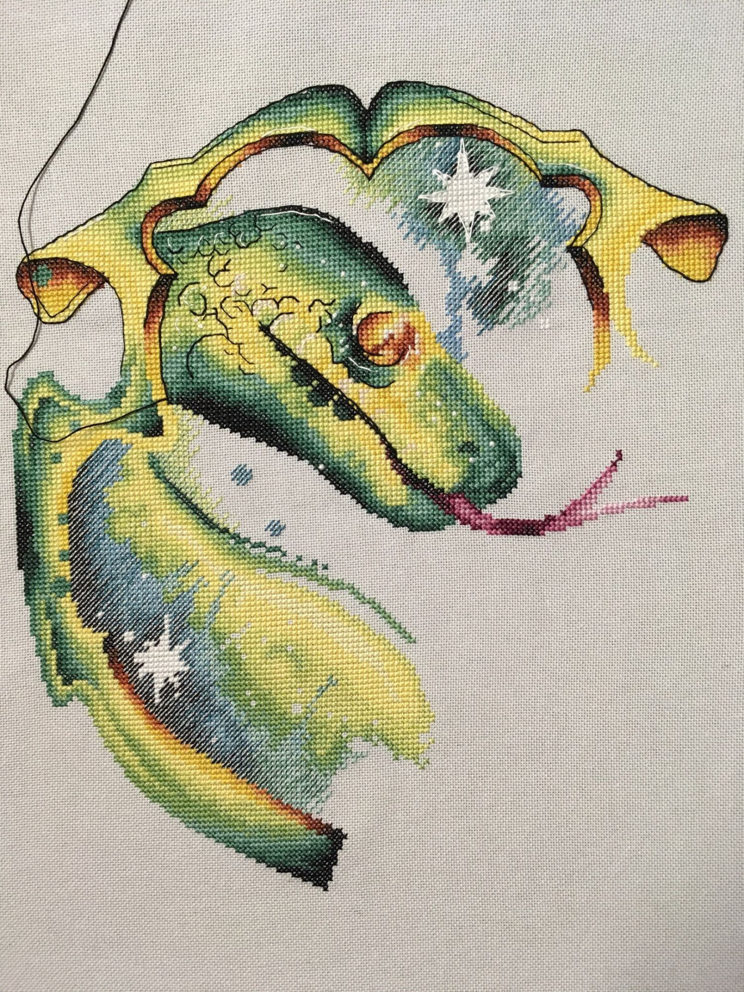 28 августа 2018 Пока Маришка засыпает, расскажу вам про вышивку. Во-первых, я стала однопроцессницей, чем безумно довольна. Правда, далеко не все мои начатые ранее процессы завершены. Но обо всем по порядку. После завершения волков я по плану принялась за новогоднюю парочку и благополучно ее закончила. Вышивала на белфасте натуральном в горох, результат более чем порадовал. Вообще, обожаю схемы МиКи, из отрицательного только отсутствие формата для Саги Далее мы с дочкой загремели в больницу с ужаснейшим ротавирусом, а выписались с какой то простудной заразой. Пока я караулила сон дочери (а спала она буквально целыми сутками), взяла дошивать маленькое и на пяльцах, а именно обезьянку от ЛанСвит. Крестики дошились быстро, а вот бэк заставил вспомнить русский матерный, ибо весь несчётный и на канве... За обезьяной последовал конь от Риолис. Процесс был начат по-моему в 2016 году, но вам я его не показывала. Да и фото процесса нет, только готовый результат. Канву заменила на Линду и под конец очень сильно от него устала, даже до сих пор нет желания сделать нормальное фото финиша, так что какое есть Устав от тёмной канвы и скучной цветовой гаммы, решила порадовать себя яркой новиночкой. И ей стала змейка от Даши Мастаковой. Я очень люблю мир Гарри Поттера и эта серия гербов запала в душу сразу. В своих смелых мечтах я предполагаю вышить их всех, а пока готов Слизерин. А затем душа затребовала цветов... И ими стали Пионы от vik dollin. Как я ненавидела эту вышивку в процессе! Бленды трудноразличимые, бесконечные четвертькреста и бэк в разное сложение нити... Но результат!!! Именно эту вышивку я хочу оформить и повесить в своей спальне. Далее чтобы развеяться от трудностей прошлого процесса в ход снова пошли зайцы от МиКи, на сей раз Шоколадница. Тут даже не знаю, что сказать. Процесс был крайне быстр и приятен) Ну и напоследок текущий процесс. Это дизайн лишил меня покоя, любовь с первого взгляда. Он настолько мой, как и цветовая гамма и сам сюжет. Компас. Противостояние Вот, собственно, и весь мой вышивальный год, который, к слову, ещё не закончился, а значит будет ещё много красивых дизайнов и увлекательных процессов. Постараюсь сильно надолго больше не пропадать))) Все так же всех люблю и целую) Пока! Путешественница, Хельга, Колбасуля и 15 других сказали спасибо Поделиться сообщением Ссылка на сообщение