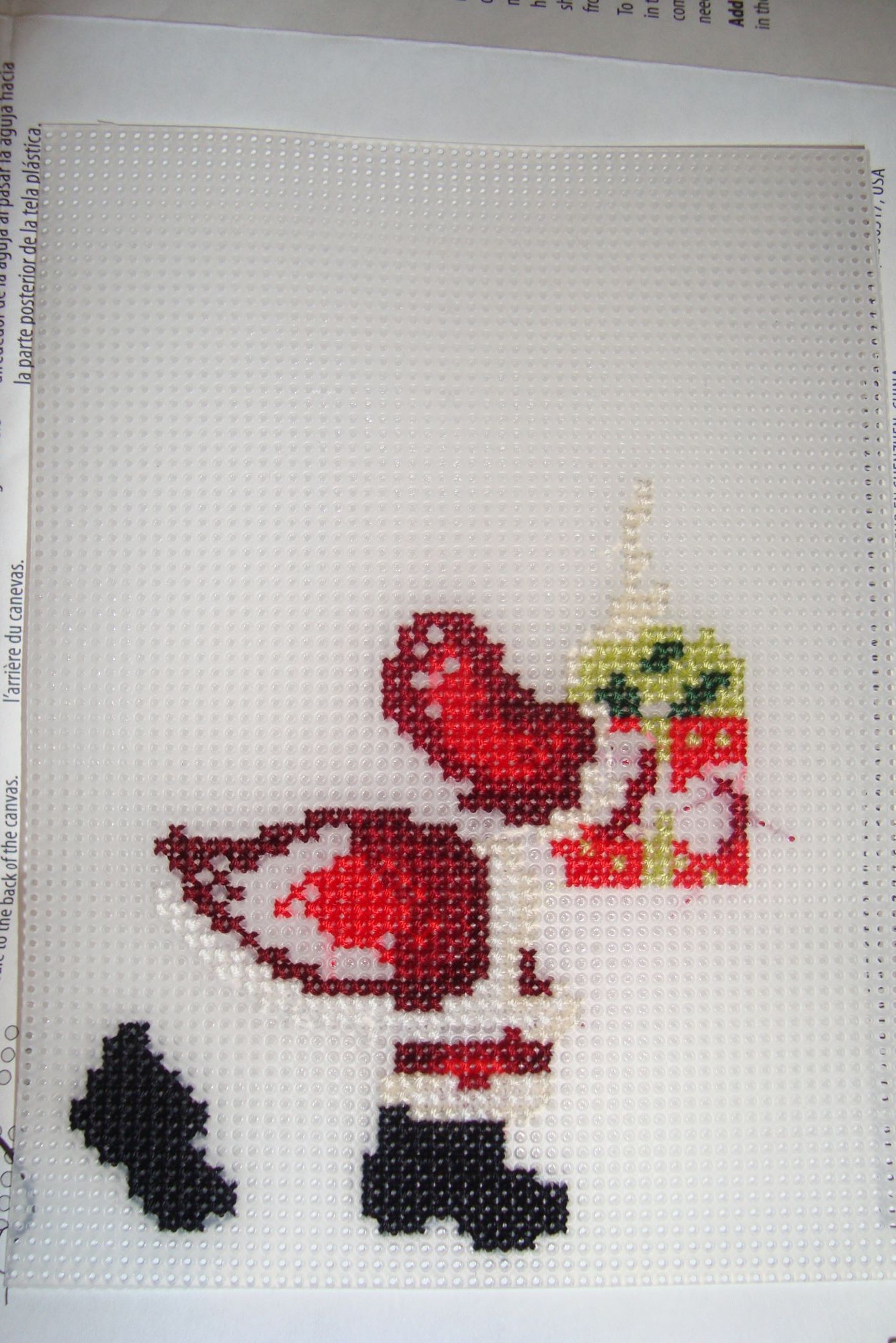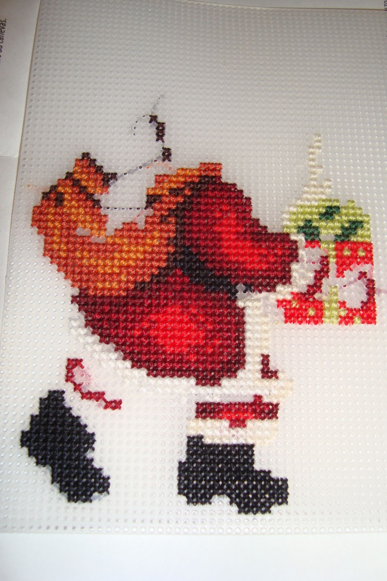 8 января 2017 Ну вот и закончились новогодние выходные.... Все мы натрескались вкусностей, у кого то не выдержали пуговицы на брюках и юбках, кто то уже не сможет влезть в платье, для которого целый месяц худел перед новым годом, а кто- то (в том числе и я) в очередной раз решил с завтрашнего дня твердо сесть на диету- ведь новый год позади, грядет весна... И с завтрашнего дня придется выйти на работу, поэтому отчет я пишу в ночь- в первую неделю января не очень- то похалявишь, придется работать!! Как всегда, планов на праздники было громадье- вышивать, вышивать и еще раз вышивать- а по факту вышивалось меньше, чем в обычные, не праздничные дни- приготовь, посиди за столом, помой посуду... Пойди в гости, поешь, приди домой, полежи... приготовь стол, поешь, помой посуду... И так до бесконечности... Может и хорошо, что праздники закончились...все хорошо в меру.. Ну подведу и я немножко итоги прошлого года... Слайд времени делать не было, в прошлом году я с ним дня три возилась, поэтому просто мои готовые за 2016 год работы: всего 10 штук, причем не самых больших... В 2015 вроде я целых 19 осилила.... В общем, делаю вывод, что нужно поднажать!!! Так что планы на год- вышивать как можно больше. Вышить хотя бы 4 бисерных работы- бисера у меня куча, а я сейчас как то больше крестом увлеклась... А за месяц до нового года нашла целый пакет с бисерными наборами и осознала масштаб бедствия... Ну и надо старенькие наборы тоже из недр закромов извлекать, а то вышиваю новенькие поступления.. За новогодние каникулы я начала новый процесс... Хотела его совсем законченным показать, но, как всегда, меня на чуть чуть не хватило.... И так, новый процесс Dimensions 08912 "Санта с мешком" Этот набор мне подарен в игре Сюрприз Натальей FedorМазиус Процесс: Снежинки делать не стала.. Думаю поискать шармики- снежинки какие- нибудь и наклеить.. Осталось вырезать Санту и петельку... Кстати, может кто подскажет- я думаю, что его нужно наклеить клеем на фетр, (заднюю часть сделать), а потом вырезать.. Или может я думаю неправильно? Как лучше игрушечку оформить, подскажите, а то я испортить точно не хочу! Мне очень понравилось вышивать на пластиковой канве. Ровненько, удобно, натяжкой заморачиваться не надо. Теперь пластиковую канву буду рекламировать!!! Из других новостей...Елка в этом году была у нас маленькая, И натуральная... Попытки сфотографировать возле нее собакина закончились неудачей и парой разбитых старых игрушек... И, конечно же, я не удержалась и сделала себе парочку подарков на новый год Кроше " Рождество" бисер и Абрис Арт "Девочка и синичка" Про икону ( хотя это, наверное, все- таки картина на религиозную тему) что сказать- навеяло праздниками, давно она мне нравилась, хоть и -дцатая в моих закромах по счету, а тут попалась и купила... А девочка- ну хорошенькая ж она!!!! Я вообще не любитель людей в вышивке- мало что нравится из людских\ детских изображений, но это была любовь с первого взгляда!! Из разряда пришел- увидел-купил... Я даже и не знала, что Абрис Арт выпускает наборы для вышивки нитками, думала, что у них только бисер.... В общем, в игру борящихся с хомякозом мне путь заказан... Я, конечно, стараюсь совсем не срываться, но закупаюсь все равно быстрее, чем вышиваю.. И зарекаться от покупок не буду- вот Риолис только прорекламировал выпустить "Ласточкино гнездо" и "Санторини", как я сразу их захотела, хотя Риолис не очень люблю