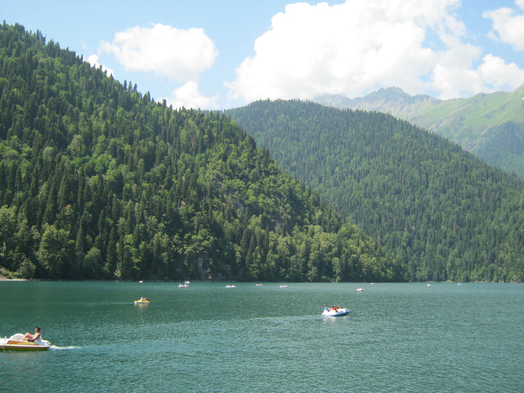 5 сентября 2019 Естественно мы ездили в самое «разрекламированное» место Абхазии – озеро Рица. Легенда о происхождении озера Рица. Скрытый текст Когда-то на этом месте была долина и по ней текла река. На сказочных пастбищах вдоль берегов ее пасла стадо девушка — красавица по имени Рица, единственная сестра трех братьев — Агепсты, Ацетуки и Пшегишхи. Днем братья охотились, вечерами собирались у домашнего очага. Рица готовила ужин, братья, любуясь ею, пели. Ушли как-то братья на охоту в дальние горы. Прошел день, второй, они все не возвращались. Рица, скучая по ним, все глядела на дорогу и пела своим чарующим голосом. Услышали ее голос два лесных разбойника Гега и Юпшара. Увидев красавицу, они решили ее похитить. Юпшара схватил ее и поскакал на своем коне по долине. Гега его прикрывал. Крики о помощи услышали братья. Они помчались вдогонку. Пшегишха метнул в разбойников богатырский меч, но промахнулся. Меч упал и перекрыл реку. Вода стремительно стала заливать долину и через мгновенье превратила ее в озеро. Подоспевшая помощь окрылила Рицу, и она из последних сил вырвалась из цепких рук разбойников, но, не удержавшись на ногах, упала в бурлящее озеро. Как ни старались братья, но спасти сестру не удалось. Рица осталась под водой. Тогда Пшегишха схватил Юпшару и швырнул его в озеро. Но воды Рицы не приняли негодяя и выбросили через меч Пшегишхи и понесли в море. За ним побежал Гега, но он не мог спасти друга. Тогда и он присоединился к нему. От страшного горя братья окаменели и превратились в высокие горы. Стоят они и поныне над озером, охраняя покой незабвенной Рицы. А Гера и Юпшара до сих пор убегают вниз по склонам, превратившись в реки.. Путь по Рицынскому заповеднику просто фантастический – в этих местах убеждаешься, что лучше гор могут быть только горы…Величественный Юпшарский каньон, в который грузины хотели заложить взрывчатку и обрушить дорогу, Альпийские луга, река Бзыбь, водопад Девичьи слезы, на который привязывают ленточки на исполнение желаний... Еще мы съездили на Гегский водопад - самый большой и знаменитый в Абхазии. Именно там снималась сцена схватки между профессором Мориарти и Шерлоком Холмсом в соответствующем фильме. Были мы там, правда, вечером, фантастического блеска и радуг не было, но все равно зрелище шикарное, величественное и завораживающее.... А вот дорога туда страшненькая. Доступна только с мая по ноябрь, проехать туда можно на уазиках и прочих внедорожниках Машина едет по кромке горы и ты видишь, как почти под тобой вниз идет пропасть.... Я человек мало чего боящийся, но даже мне стало страшновато.. Не с местным я бы в жизни туда не поехала... А на этой узкой дороге еще и разъезжаются как-то водители.. Tata44, Кисуля, Egelia и 42 других сказали спасибо Поделиться сообщением Ссылка на сообщение