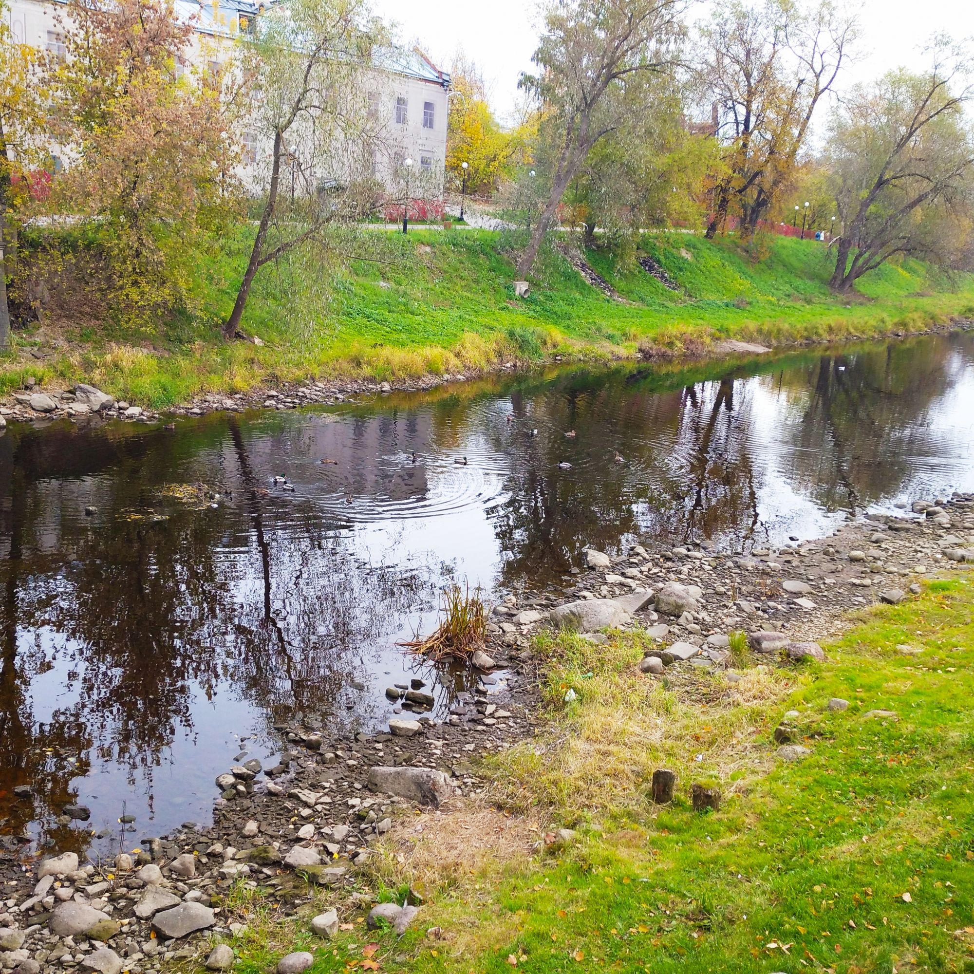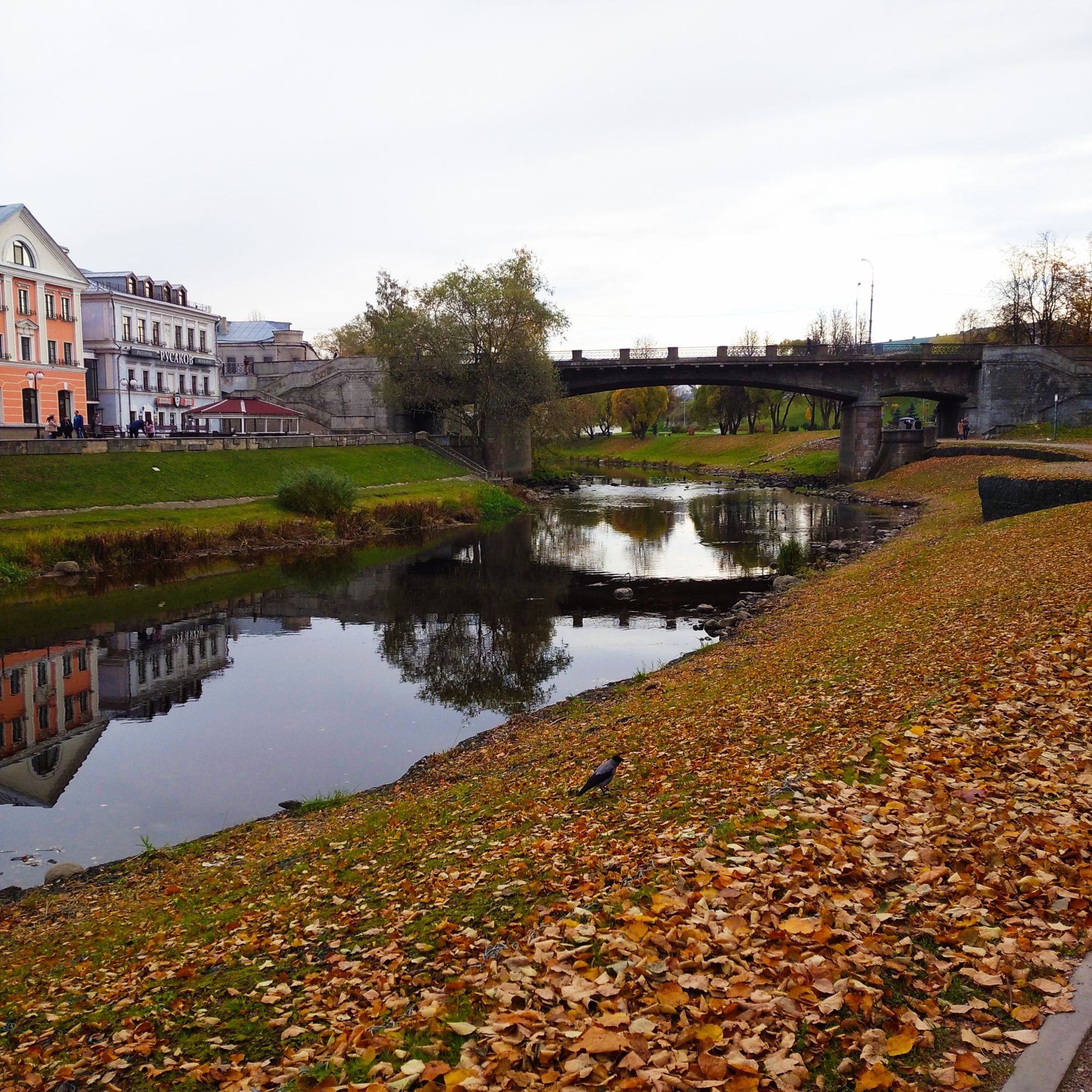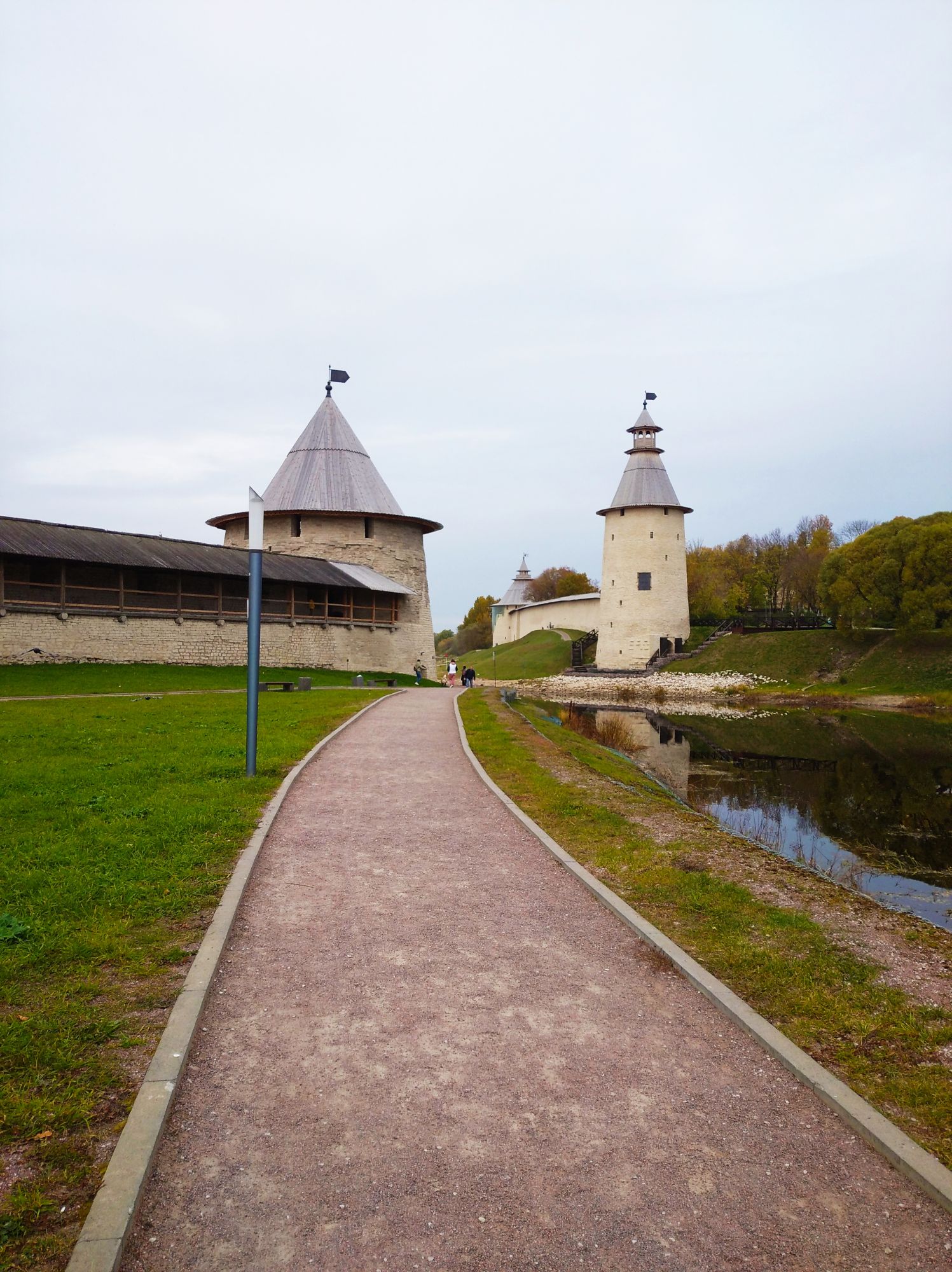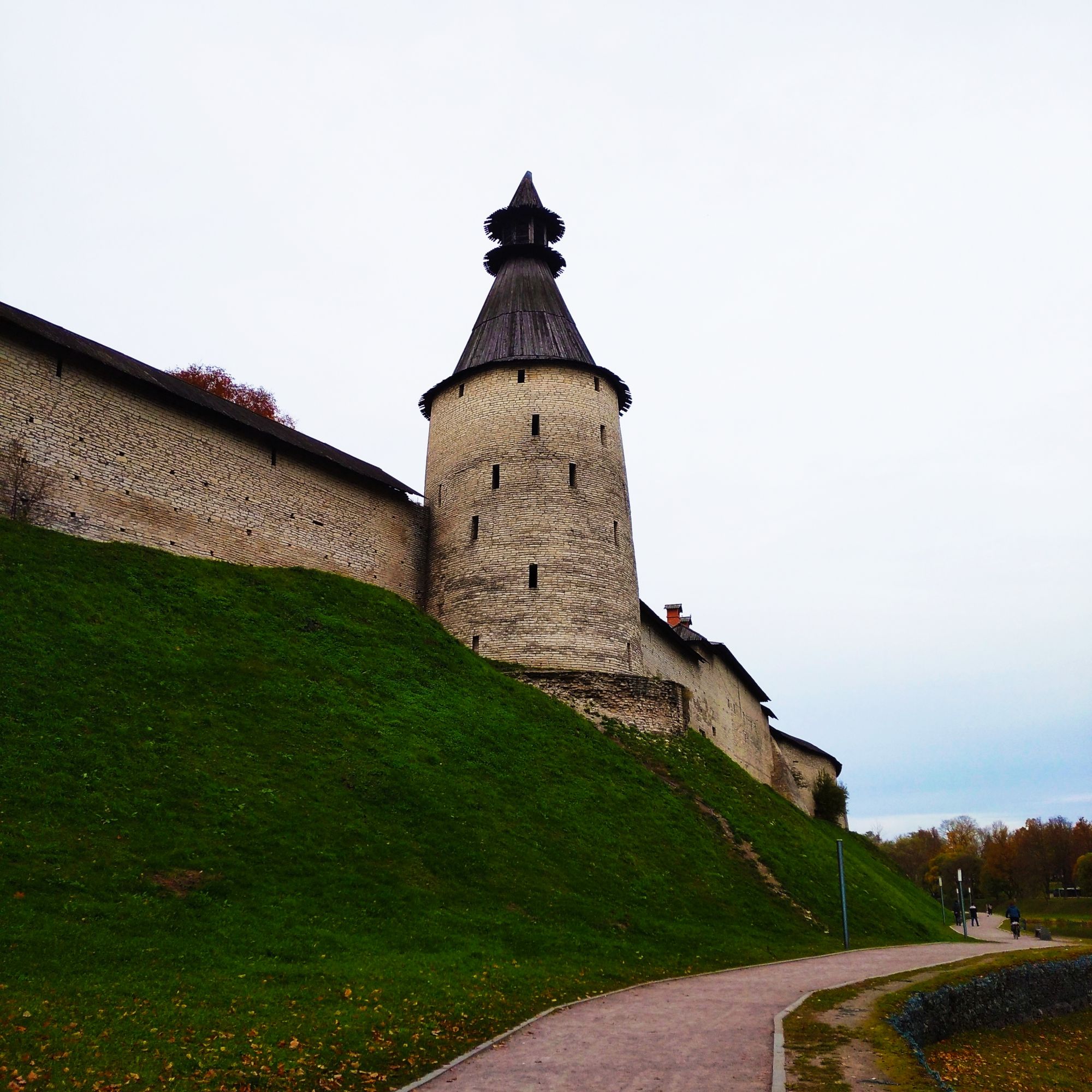 19 октября 2021 Всем привет! Итак, не затягивая как рассказ о море, я расскажу вам об еще одном путешествии. Ну как путешествии - это называется "мы поехали покупать мотоблок" А мотоблок покупать нам ближе всего в Пскове. Я в свое время Псков исколесила вдоль и поперек, мы жили в часе езды от него и катались туда на рынок за шмотьем, одеваться. А поскольку рынок недалеко от достопримечательностей, и им немножко внимания доставалось. а вот мой муж в Пскове ни разу не был и уже несколько лет ныл. что хочет хотя бы общее представление о нем иметь. Летом нам съездить никак - огород. А вот осенью - самое то... Правда, поскольку остался тот же час туда, час обратно, заезд за мотоблоком и прочее - естественно Псков мы обстоятельно не посмотрели. Побродили мы только по Кремлю, даже не целиком, но что уж получилось. Надеюсь вернемся туда еще как-нибудь и досмотрим непосмотренное. Итак, Псков. Вот немного о нем в скрытом тексте. Скрытый текст Точный возраст города не известен. Его первое упоминание в летописи датируется 903 годом, но, судя по археологическим находкам, люди начали жить на месте слияния двух рек — Великой и Псковы — намного раньше указанной даты. Согласно легенде, Псков был основан княгиней Ольгой. Будучи дочерью бедного крестьянина, будущая княгиня работала на переправе и перевозила людей на лодке. Одним из тех, кто как-то раз переправлялся с Ольгой через реку, оказался молодой князь Игорь. Он моментально влюбился в прекрасную девушку и вскоре женился на ней. Уже в качестве княжны Ольга как-то раз плыла по реке Великой на ладье и залюбовалась красивым холмом, возвышающимся над местом впадения в Великую более мелкой речушки Псковы. Неожиданно подул сильный ветер, а небо заволокло тучами. Тогда Ольга сошла на землю и стала молиться. Вдруг небеса разверзлись, и перед молодой княгиней явились три луча, которые сошлись на том самом месте, где в будущем построят главный псковский храм — Троицкий собор. Находясь под впечатлением от фантастического видения, Ольга приказала заложить здесь церковь и основать город. Княгиня Ольга считается покровительницей Пскова. С ее именем связано немало местных достопримечательностей, в том числе стоящий у реки Великой камень с углублением, напоминающим отпечаток сафьянового сапожка. По преданию, Ольга стояла на этом камне во время встреч с жителями основанного ею города. В честь княгини, которая позже стала одной из первых русских святых, названа набережная, а также мост и стоящая у его подножия часовня. Начали мы свой путь возле стеллы сердечком - сейчас модно их размещать в каждом городе. По крутой лестнице спустились в очень ухоженный сквер и пошли вдоль реки Псковы к Кремлю. С погодой нам относительно повезло - не было практически солнца, но было сухо и без дождя. Для Северо-Запада это здорово, ибо уже октябрь. Пскова речка мелкая, скорее похожа на ручеек - но сколько же там уток! А на берегу реки стоят веселые домики - наверное какое-нибудь элитное жилье. Смотрится красиво, прямо как где-нибудь в Прибалтике. Идем мы как раз к Кремлю. Правда я всегда заходила со стороны захаба, но в этот раз мы из него вышли. Итак, Кремль или Кром, как называют его псковичи, расположен на скалистом мысу при слиянии двух рек — Великой и Псковы. Немножко истории Скрытый текст Псковский Кром (Кремль) представляет собой наибольшую крепо