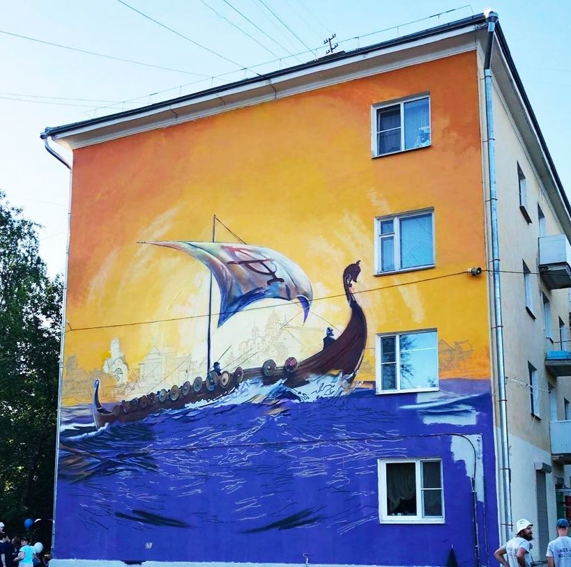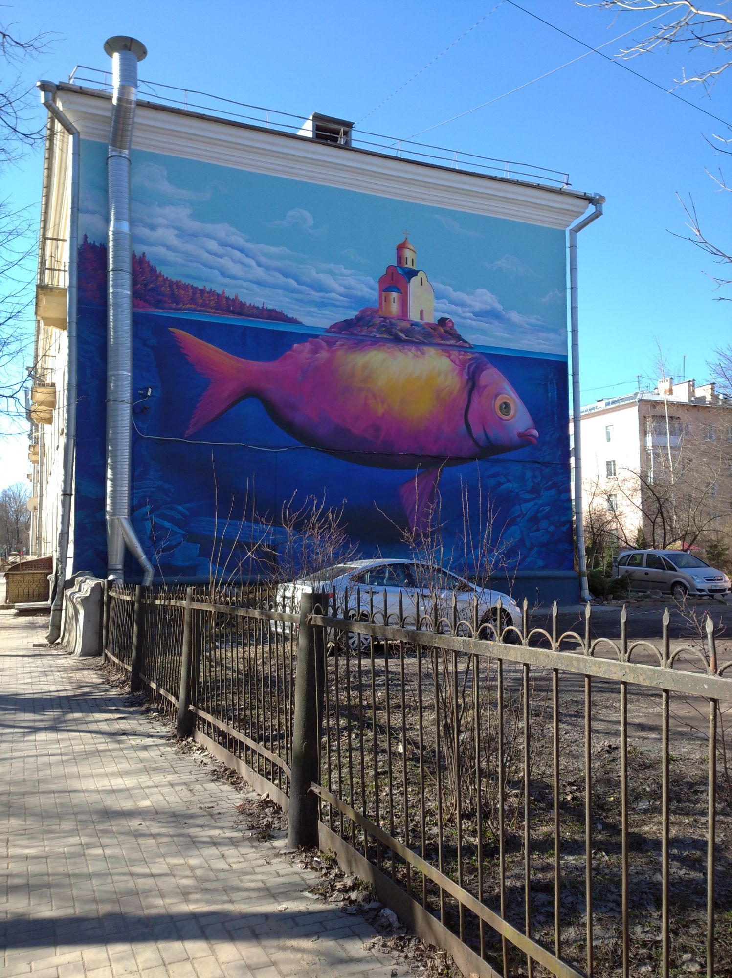 24 июня 2022 Так вот, про что я хотела написать. А написать я хотела про граффити, рисунки на домах или, как у нас это называют, муралы. Собиралась я их вам показать еще, наверное, год назад (а может и больше, судя по моим фото в разные времена года). Но потом это как-то забылось. А весной опять у Аси @Каори об этом речь завелась, потом Юля @Juliay показывала и я тоже решила все-таки поскрести по сусекам и показать вам, какие рисунки на зданиях делают у нас в городе. Итак, что же такое муралы? Мурал — это монументальная живопись, крупноформатное изображение, которое художник наносит на стену здания или технического строения. Само слово „мурал“ происходит от латинского murus — „стена“. Фактически это любое произведение искусства, нанесённое на стену и созданное легальным путём (в отличие, например, от граффити-кусков). И вот, несколько лет назад Великий Новгород стал участником Всероссийского фестиваля уличного искусства «Страницы истории», в рамках которого участники форума рисовали на стенах домов. Сначала это была историческая тематика, потом стали рисовать известных людей, которые каким-либо образом связаны с Новгородом, потом просто актуальные картинки - связанные с войной и даже Ковидом.... Вот муралы исторические - Александр Невский, ладья, плывущая, наверное, по Ильменю, Садко, Ярослав Мудрый. Вот тоже исторический, наверное, рисунок Я лично увидела его в первый раз этой весной, находится не в особо людном месте и проходном месте. Рыба связана с Великим Новгородом - на гербе города есть рыбы, рыбным промыслом раньше славились эти места, и даже в самой известной новгородской легенде - о Садко - он вылавливает из озера рыбку-золотые перья... А на рыбе стоит церковь Николы-на-Липне, построенная в 13 веке и сохранившаяся до наших дней. Находится церковь на острове Липно, в дельте реки, поэтому добраться до него иногда бывает непросто. Весной, когда реки разливаются, на остров можно доплыть только на лодке. Ну а летом все подсыхает и появляется сухопутный путь, также как и зимой по льду. Еще в центре города на стене нарисована карта исторической части Новгорода. Имеется вот такая яркая стена, в которой просматриваются очертания памятника Тысячелетию России. Называется рисунок "Оттенки истории" На котельных тоже имеются рисунки, я нашла военной направленности, детей и Маленького принца На одном из жилых домов очень яркая картинка "Мальчик и небо", на другом - мрачноватая "Герои среди нас" Мои любимые рисунки - на Доме культуры - "Начинающие" и "Профессионалы", на библиотеке (сразу понятно, какой из них) и "Богиня молодости Геба" на вставочном центре. И муралы, посвященные историческим личностям - Анна Ахматова, Сергей Рахманинов, Менделеев на химико-индустриальном техникуме и Миклухо-Маклай с его путешествиями. О, еще забыла про мурал с новгородским жемчугом. Да-да, не удивляйтесь! Русским жемчугом жила немалая часть местных жителей — старателей-добытчиков, ювелиров и швей. Добыча жемчуга была обставлена ритуалом: сначала искатель шёл к местному священнику для покаяния и отпущения грехов. Промышлять следовало с хорошим и радостным настроем, не допускать при этом ссор и брани. Только помывшись в бане и надев чистые одежды, можно было начинать работу. Вот такой ритуал чистоты! Промыслом жемчуга занимались исключительно мужчины. Температура воды в быстрых с
