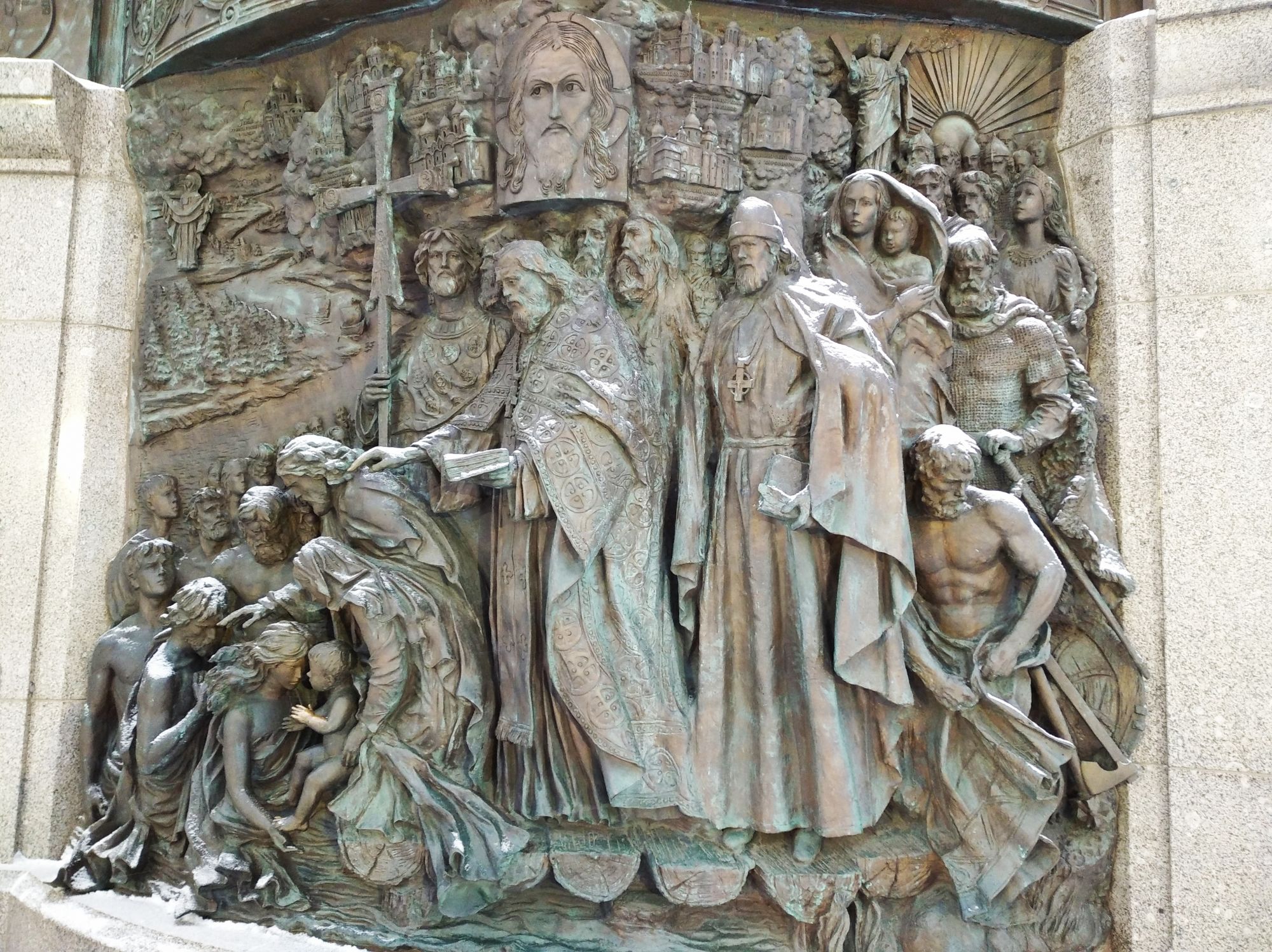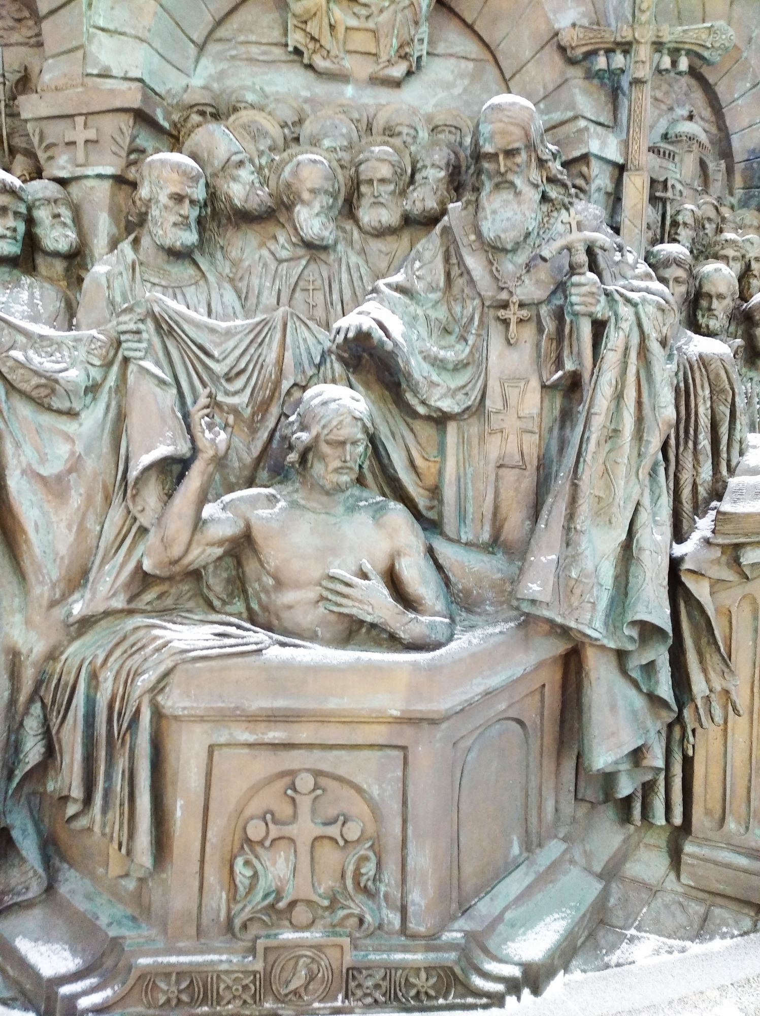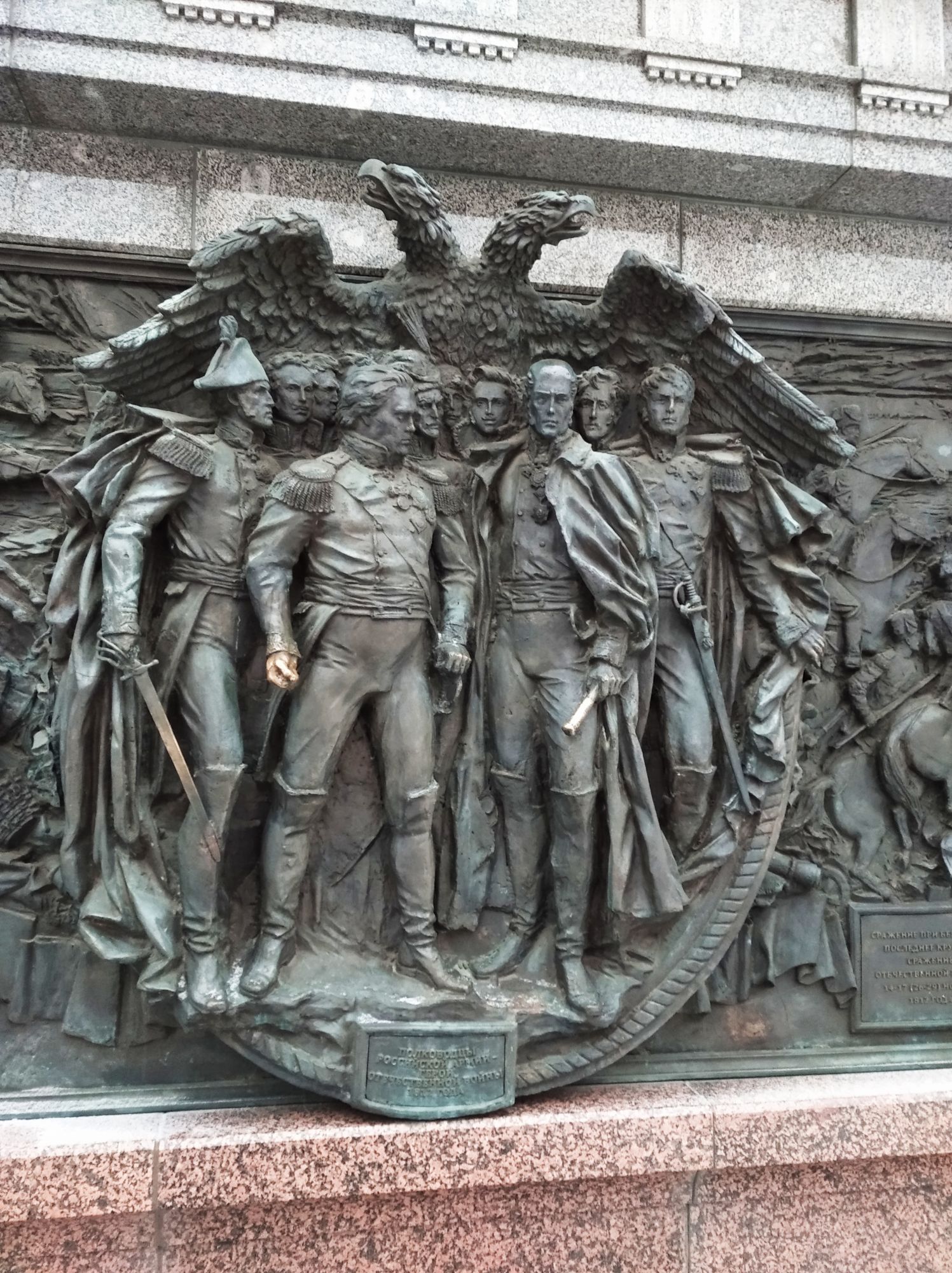 22 декабря 2022 На следующий день мы почему-то пошли той же дорогой гулять к Кремлю. Повстречали много муралов-рисунков на домах. Одной из целей был памятник князю Владимиру на Боровицкой площади, открытый в 2016 году. Я, правда, так и поняла связи между киевским князем Владимиром и Москвой, которой и не было во времена его жизни, но что есть, то есть - памятник стоит прямо возле кремлевских стен. Внизу по стене идут сцены из жизни князя - в том числе крещение Честно говоря, памятник не выглядит новым, не знала бы - подумала, что пару сотен лет он уже стоит. Даже на фото он как-то мрачно вышел, хотя погода была морозная. И прошли мимо еще одного памятника - тоже новодела, но более логичного - императору Александру I. Александровский сад, в котором находится памятник, не только был назван в честь Александра I. Этот парк был разбит по его распоряжению во время восстановления столицы после пожара 1812 года. А вот памятника императора там не было. Александру I еще при жизни было предложено поставить памятник, но император от такой почести отказался. И вот, в год 200-летия победы российских войск над Наполеоном потомками было решено увековечить имя монарха, который во главе конницы вошел в Париж. Напротив памятника – бронзовые барельефы, на которых изображены сражения, в том числе Бородинское, полководцы войны 1812 года - четко определяются Барклай де Толли и моложавый Кутузов, встреча Александра I и Серафима Саровского (сюжет весьма легендарный, никаких подтверждений или свидетельств о такой встрече нет, но легенда старая, еще дореволюционной поры), два храма – Казанский собор и храм Христа Спасителя. Marusya1978, Nata_Struchkowa, ЛАДОМИРА и 22 других сказали спасибо Поделиться сообщением Ссылка на сообщение