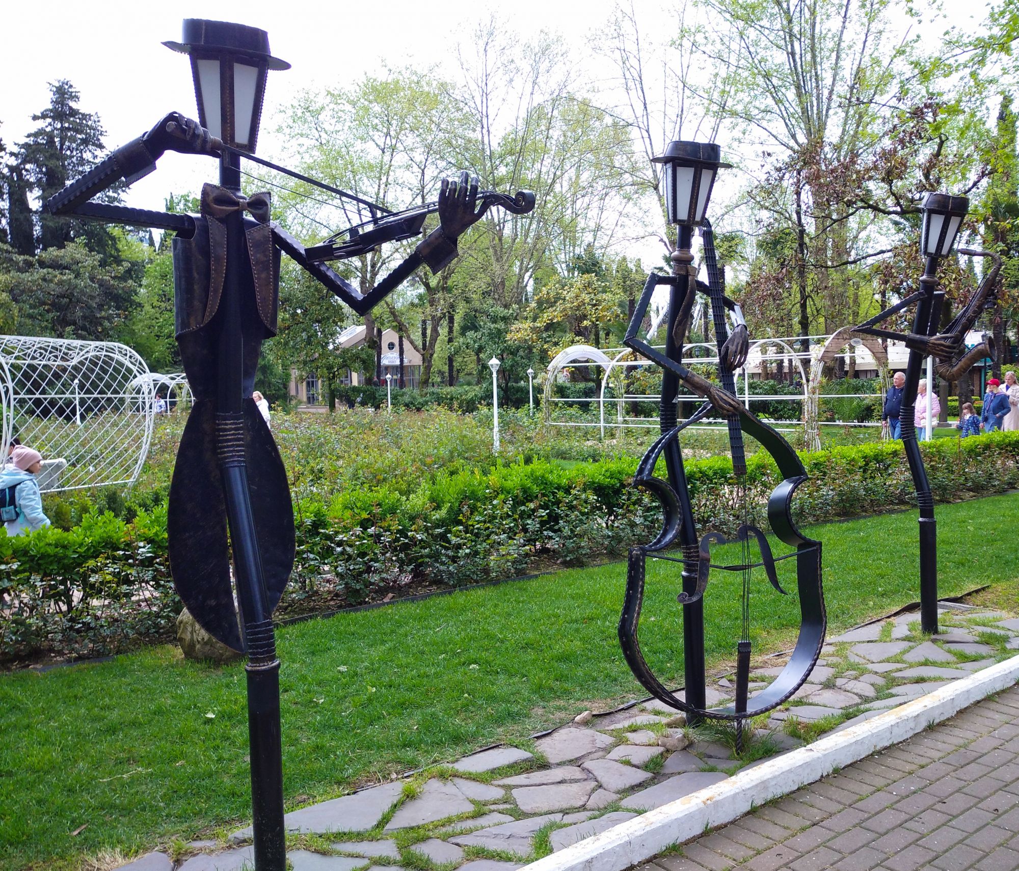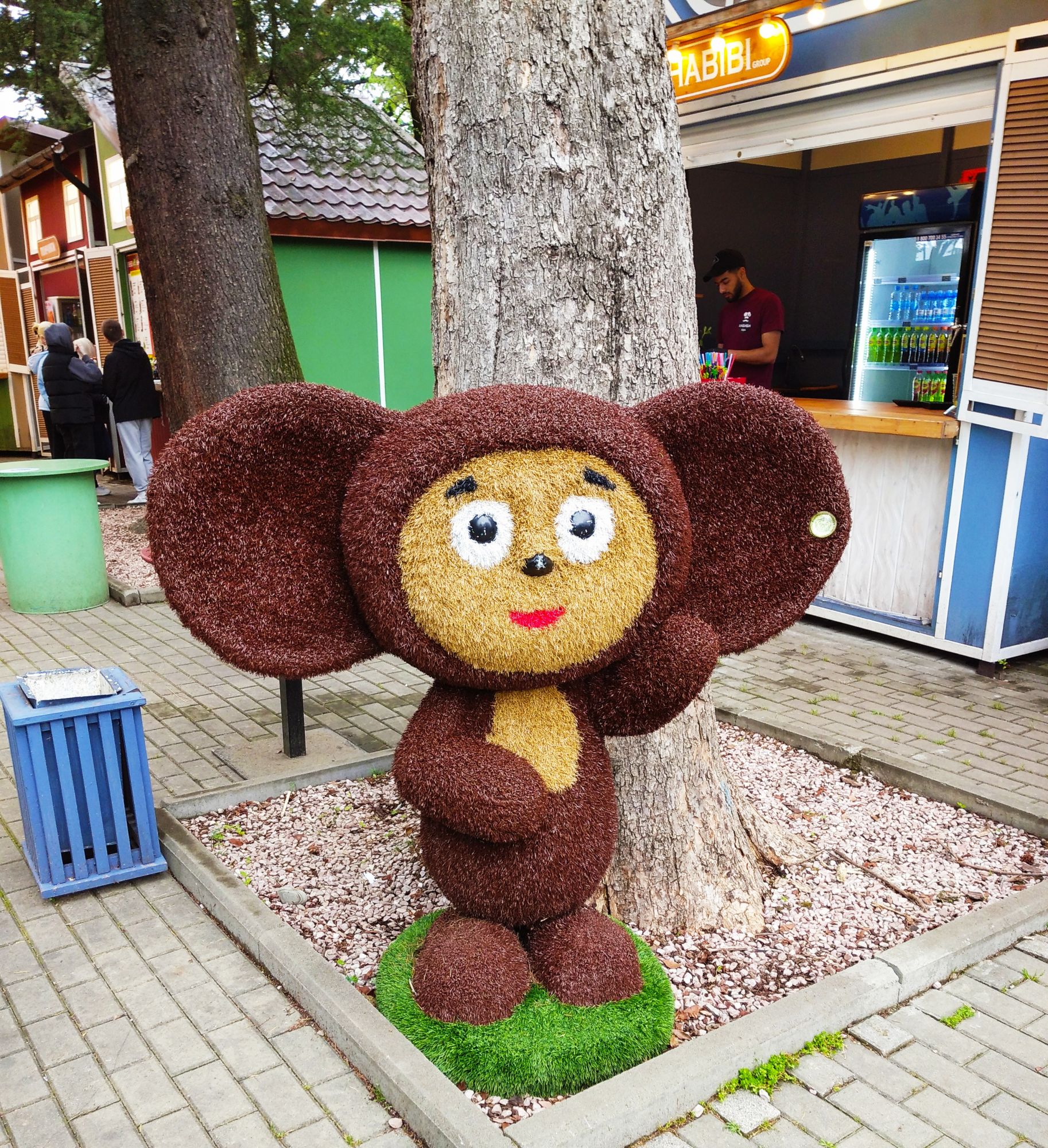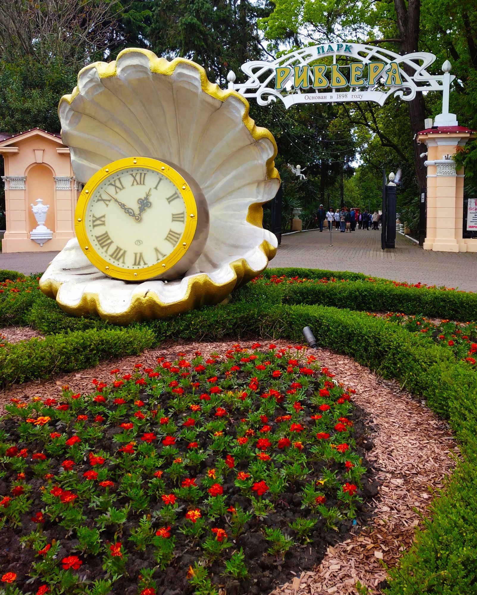 12 мая 2023 Итак, продолжаем. На следующий день мы с мужем решили прошвырнуться по Сочи, чтобы он о нем представление заимел. Поэтому я и снимала гостиницу недалеко от станции "Имеретинский курорт". Ну как недалеко - минут 20-25 пешком. Я почему-то была уверена, что поезда до Сочи ходят каждый час. Мы встали, я спустилоась на кухню на первом этаже, мы лениво попили чайку с бутербродиком и тут я решила посмотреть отправление поездов. Открыла - и следующий поезд - через 25 минут. А потом - через 3 часа! Ну мы побежали. Причем особо не зная маршрута и изучив его только по картам. Я уже говорила "Брось меня".. Но за 5 минут до отправления мы все-таки влетели на станцию и поехали. про Сочи даже не знаю, что сказать. Вот, например, вокзал. Это, как пишут, один из символов Сочи - никогда не понимала - почему. Вокзал как вокзал - во многих городах такие. В Симферополе, например, очень похожий. Единственная интересная вещь - странные часы. Каждой цифре соответствует знак зодиака. Таким образом, на циферблате строится зодиакальный круг, но выстроен он неправильно. А вместо трех знаков зодиака (Тельца, Скорпиона и Девы) на цифрах 2, 3 и 4 расположены Гончие псы, Лебедь и Змея. Хотя не знаки зодиака, а созвездия. Погода была не очень - мрачно и тучи ходили (да, дождь в Сочи нас все-таки застал), и мы решили начать с парка Ривьера. Парк сделали красиво - много статуэток, дорожек, арок, все гомонит, бегает, визжит и двигается. И Гена с Чебурашкой там в разных вариациях, и львята, и дюймовочка, и гномы. Мне понравилась скамейка с бобрами. Еще я увидела странную скульптуру на центральной аллее Она меня бы не заинтересовала, если бы не натертые зады борцов. А тут мне даже интересно стало - к чему их тереть-то? Оказывается это скульптурная композиция «Олимпиада». Скульптура изображает двух обнаженных греческих спортсменов, сошедшихся в традиционном рукопашном противоборстве. Считается, что если потереть скульптуру, то сила и везение будет сопутствовать вам. Судя по натертостям фигуры, желающих обрести везение достаточно. Еще мне запомнились фонари-музыканты В общем, парк на погулять - мы съели по гонконгской вафле, покатались на колесе обозрения (низковато она мне показалось для нынешних масштабов города) и пошли дальше. А дальше по плану был морской порт. Тут нас подвела погода, тучи сгущались-сгущались и хлынули. Да и потом регулярно начинал накрапывать дождик. Поэтому мы быстро проскакали по порту, отбиваясь от желающих затащить нас на морскую прогулку, прошлись по пешеходной Навагинской улице, поели в вокзальном КФС и поехали обратно в Адлер. Встретили ухо И памятник Петру первому на фоне разноцветных едален странно смотрится Сочи, мне кажется, чувствует, что я его не люблю и не любит меня в ответ дождь, мрачное нависшее небо.. Как только мы приехали в Адлер небо разъяснилось и все опять стало по южному. В утреннем галопе мы не заметили, что станция и вокруг нее симпатично благоустроено. Есть фонтан, куда же без олимпийских колец, насажены пальмы ровными рядочками - лепота. И о Сочи на этом все. Вроде бы провели там полтора дня, а впечатления у меня остались только от фонтана в Олимпийском парке. Правда в Сочи я отдыхала три раза по 18-20 дней, поэтому чем он меня может удивить - я любитель чего-то бодрого, лазательного, национального, рискового, а тут у меня этого всего не было. Было в Абхазии, 