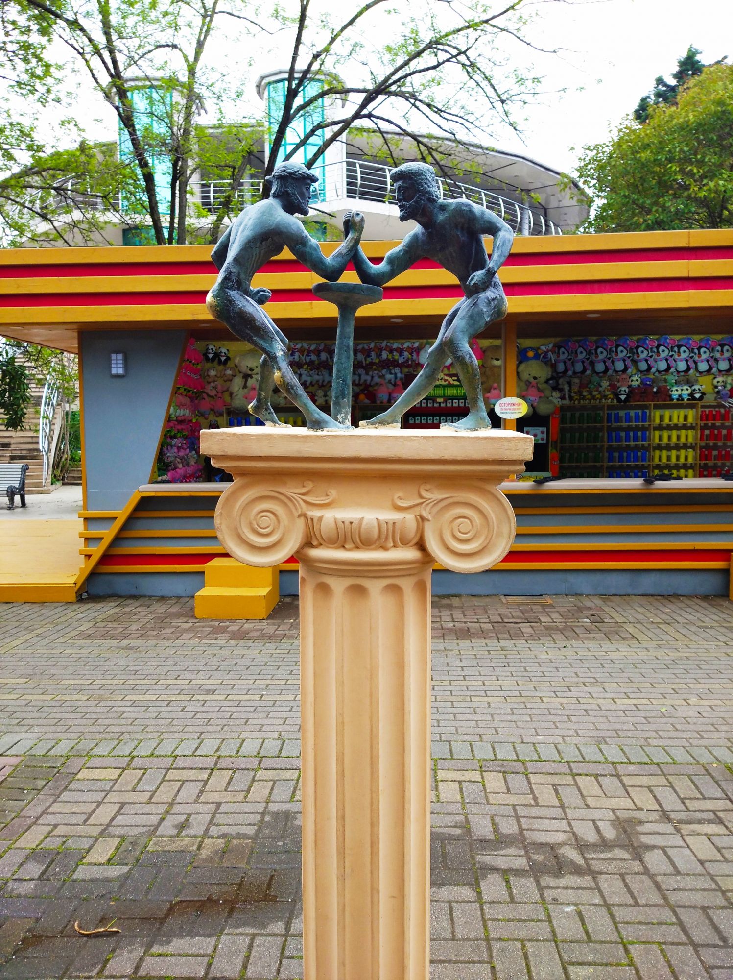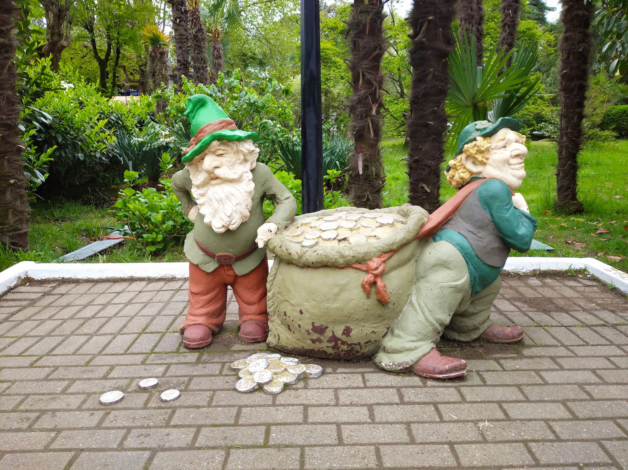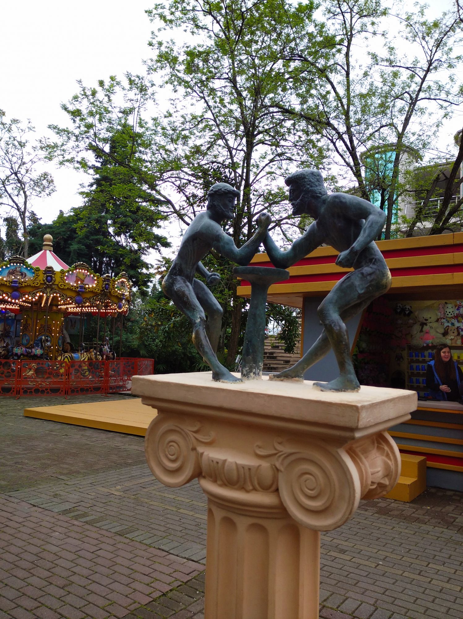 12 мая 2023 Итак, продолжаем. На следующий день мы с мужем решили прошвырнуться по Сочи, чтобы он о нем представление заимел. Поэтому я и снимала гостиницу недалеко от станции "Имеретинский курорт". Ну как недалеко - минут 20-25 пешком. Я почему-то была уверена, что поезда до Сочи ходят каждый час. Мы встали, я спустилоась на кухню на первом этаже, мы лениво попили чайку с бутербродиком и тут я решила посмотреть отправление поездов. Открыла - и следующий поезд - через 25 минут. А потом - через 3 часа! Ну мы побежали. Причем особо не зная маршрута и изучив его только по картам. Я уже говорила "Брось меня".. Но за 5 минут до отправления мы все-таки влетели на станцию и поехали. про Сочи даже не знаю, что сказать. Вот, например, вокзал. Это, как пишут, один из символов Сочи - никогда не понимала - почему. Вокзал как вокзал - во многих городах такие. В Симферополе, например, очень похожий. Единственная интересная вещь - странные часы. Каждой цифре соответствует знак зодиака. Таким образом, на циферблате строится зодиакальный круг, но выстроен он неправильно. А вместо трех знаков зодиака (Тельца, Скорпиона и Девы) на цифрах 2, 3 и 4 расположены Гончие псы, Лебедь и Змея. Хотя не знаки зодиака, а созвездия. Погода была не очень - мрачно и тучи ходили (да, дождь в Сочи нас все-таки застал), и мы решили начать с парка Ривьера. Парк сделали красиво - много статуэток, дорожек, арок, все гомонит, бегает, визжит и двигается. И Гена с Чебурашкой там в разных вариациях, и львята, и дюймовочка, и гномы. Мне понравилась скамейка с бобрами. Еще я увидела странную скульптуру на центральной аллее Она меня бы не заинтересовала, если бы не натертые зады борцов. А тут мне даже интересно стало - к чему их тереть-то? Оказывается это скульптурная композиция «Олимпиада». Скульптура изображает двух обнаженных греческих спортсменов, сошедшихся в традиционном рукопашном противоборстве. Считается, что если потереть скульптуру, то сила и везение будет сопутствовать вам. Судя по натертостям фигуры, желающих обрести везение достаточно. Еще мне запомнились фонари-музыканты В общем, парк на погулять - мы съели по гонконгской вафле, покатались на колесе обозрения (низковато она мне показалось для нынешних масштабов города) и пошли дальше. А дальше по плану был морской порт. Тут нас подвела погода, тучи сгущались-сгущались и хлынули. Да и потом регулярно начинал накрапывать дождик. Поэтому мы быстро проскакали по порту, отбиваясь от желающих затащить нас на морскую прогулку, прошлись по пешеходной Навагинской улице, поели в вокзальном КФС и поехали обратно в Адлер. Встретили ухо И памятник Петру первому на фоне разноцветных едален странно смотрится Сочи, мне кажется, чувствует, что я его не люблю и не любит меня в ответ дождь, мрачное нависшее небо.. Как только мы приехали в Адлер небо разъяснилось и все опять стало по южному. В утреннем галопе мы не заметили, что станция и вокруг нее симпатично благоустроено. Есть фонтан, куда же без олимпийских колец, насажены пальмы ровными рядочками - лепота. И о Сочи на этом все. Вроде бы провели там полтора дня, а впечатления у меня остались только от фонтана в Олимпийском парке. Правда в Сочи я отдыхала три раза по 18-20 дней, поэтому чем он меня может удивить - я любитель чего-то бодрого, лазательного, национального, рискового, а тут у меня этого всего не было. Было в Абхазии, 