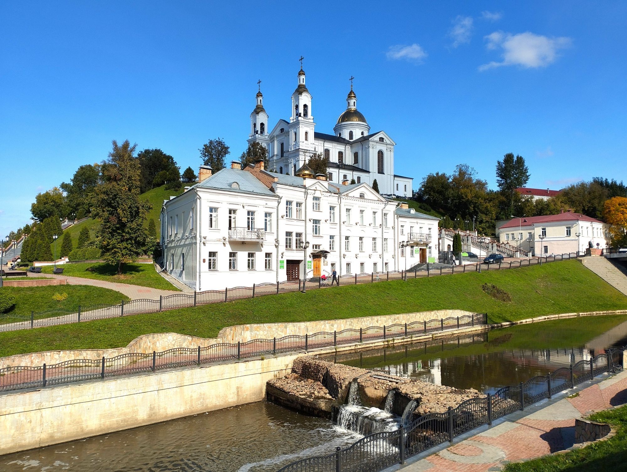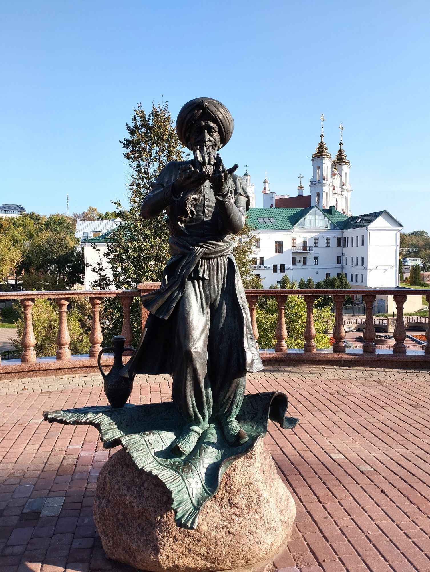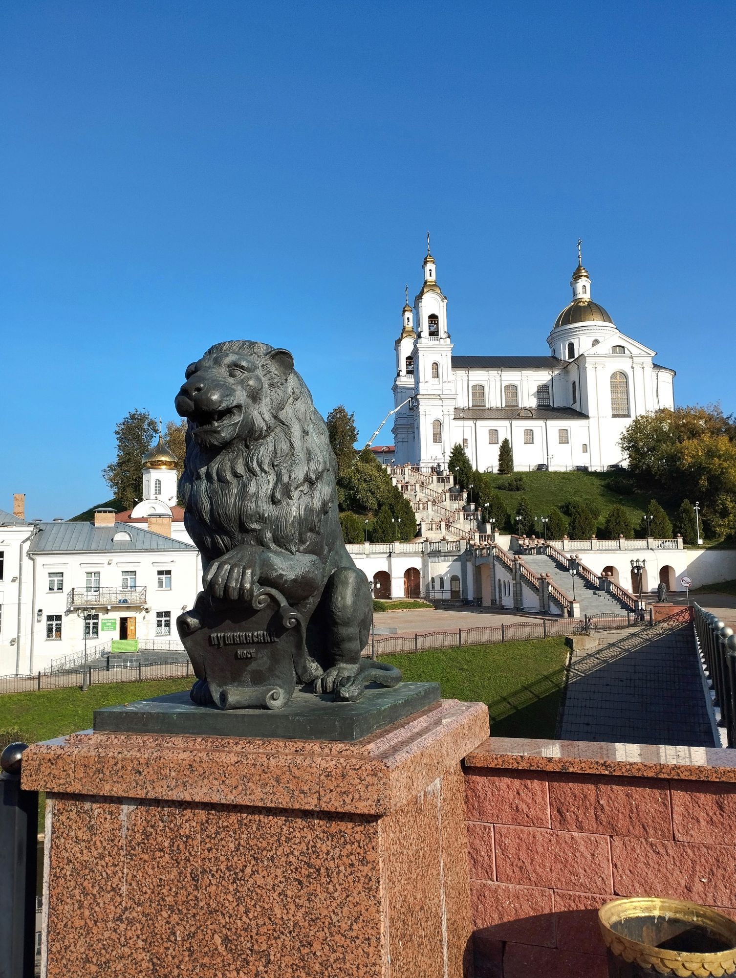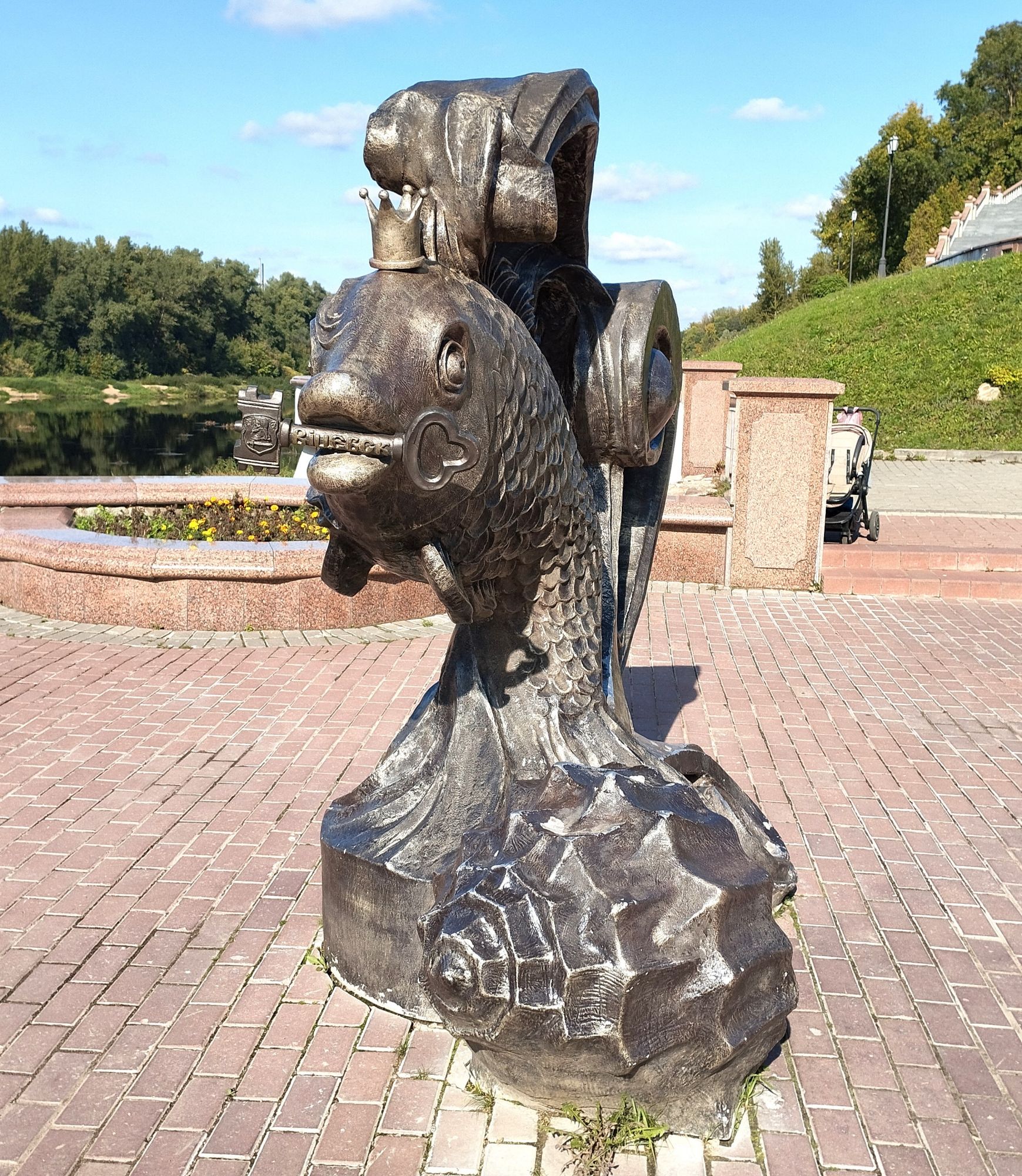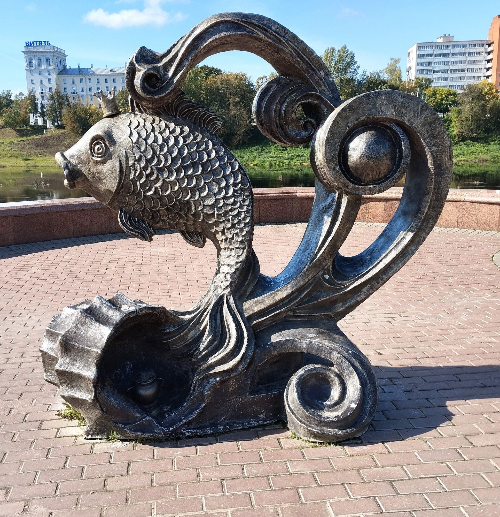 9 октября 2023 Ну что же, как и обещала, продолжение про Витебск. На второй день мы направили свои стопы в другую сторону. Когда-то в этом месте была Замковая гора. с которой и начинался Витебск. Но гору срыли, начали в 19 веке, закоончили при советской власти. С Замковой горой связана интересная легенда. В древности под землей существовал дворец, где жила царевна в белой одежде, украшенной множеством драгоценностей. На праздник Ивана Купалы красавица дарила людям сокровища. В летнюю ночь выбиралась из подземелья, разбрасывала ценные изумруды по берегу Витьбы. Едва люди касались их, бриллианты и золото рассыпались в прах. В 1812-м хозяйка горы предупредила горожан о надвигающейся опасности – ночью, услышав колокольный звон, местные, проснувшись, увидели ее, а когда решили подойти ближе, она исчезла. И первая достопримечательность была памятник Александру Сергеевичу Пушкину. Александр Сергеевич Пушкин, великий русский поэт, дважды проезжал через Беларусь по так называемому Белорусскому тракту: в мае 1820 года, отправляясь в южную ссылку и в августе 1824 года по дороге в ссылку из Одессы в село Михайловское. Кроме того, именно один из друзей Александра Сергеевича, дворянин Витебской губернии Петр Нащокин, подсказал поэту сюжет для повести «Дубровский». Именно у него останавливался поэт, будучи в Витебске проездом. Об этом говорит и пояснительная табличка на памятнике: «в мае 1820 года и в августе 1824 года через Витебск проезжал Пушкин». Недалеко от памятника Пушкину стоит еще один памятник - Старику Хоттабычу, появившийся в 2017 году. Появление Хоттабыча в Витебске не случайно - именно здесь в 1903 году появился на свет его "родитель", Лазарь Лагин (превдоним "Лагин" образован от ЛАзарь ГИНзбург - настоящей фамилии писателя). Его семья проживала недалеко от места установки памятника. Первоначально задумывалось, что на счастье и исполнение желаний нужно потереть волшебный кувшин (естественно, проговаривая "Ахалай-махайлай"). Но почему-то люди в основном трут бороду Хоттабыча. Ну и я, конечно, не преминула сфотографировать свой процесс, который взяла в Витебск (ФОТО НЕ ДЛЯ ГАЕЧКИ). Мой муж отошел подальше и стоял примерно с таким выражением лица, как эта белка, делая вид, что он не с этой сумасшедшей Еще один памятник тут же, если спуститься пониже к реке (да, я фанат памятников) - памятник Золотой рыбке. Он тоже открыт в 2017 году, как и Хоттабыч. Высота скульптуры 2,3 м. Она символизирует один из традиционных промыслов и установлена рядом с местом, где по легенде был заложен древний Витебск. Впрочем, появление такой скульптуры объясняется и тем, что Витебск дважды удостаивал визитом, пусть и проездом, автор сказки о золотой рыбке Александр Пушкин. Во рту рыбка держит ключ от города. Рыбка выполнена из композитного материала в бронзовом цвете. С одной стороны - композитный материал легок в восстановлении - в августе 2018 года некие лиходеи оторвали от "рыбки" и утащили ключ, а в 2019 году умыкнули еще и горшочек с монетами. Иван Казак, автор скульптуры, решил все это восстановить. И тут сказалось преимущество композитного материала, из которого сделана "рыбка" - на все работы по восстановлению ушло всего 3 недели. Хотя, блин. ну как оторвать-то можно ключ и горшок? Они же приварены? Хотя о чем я говорю, дурная голова рукам применение найдет, воруют же Чижика-Пыжика регулярн