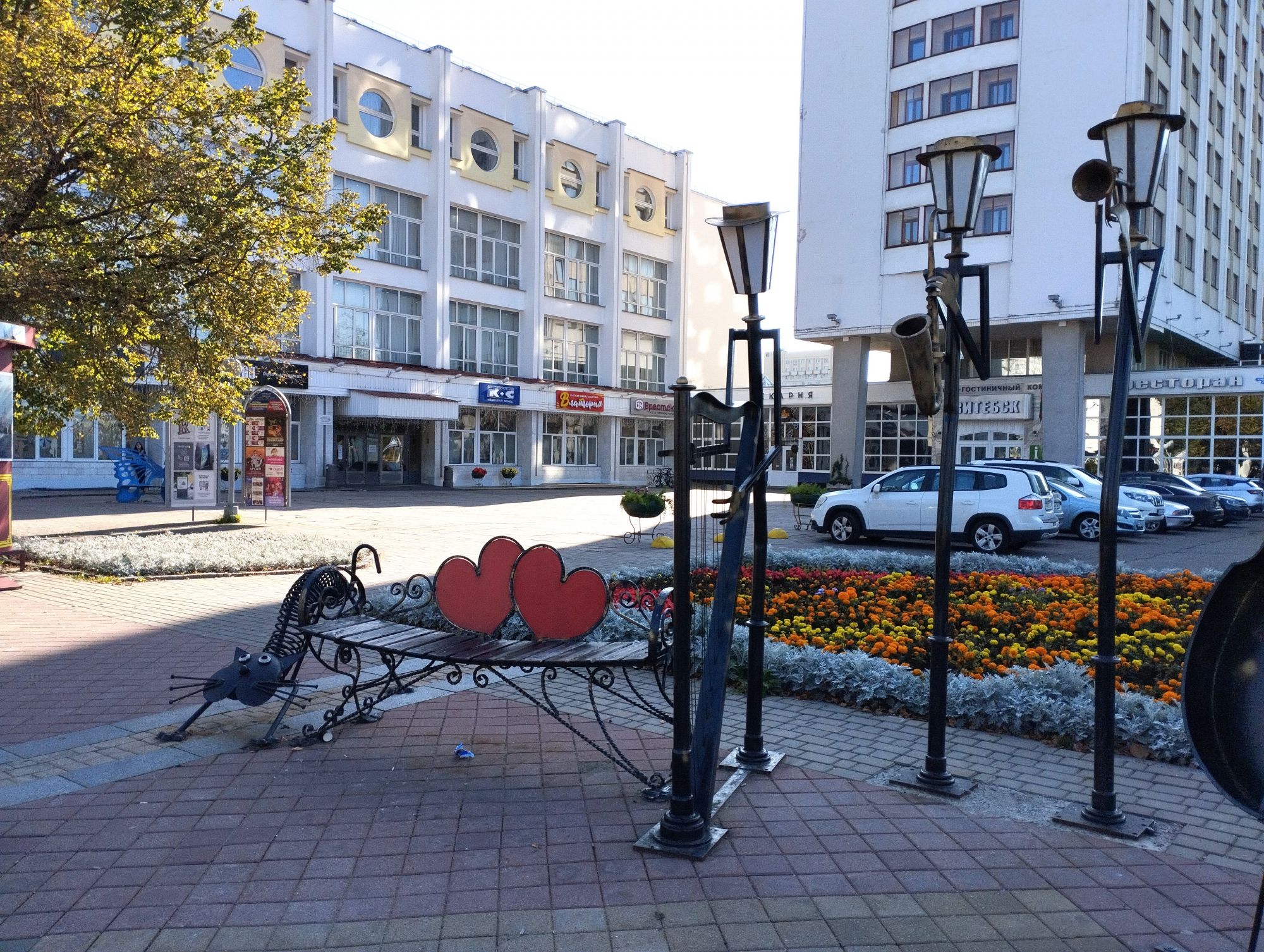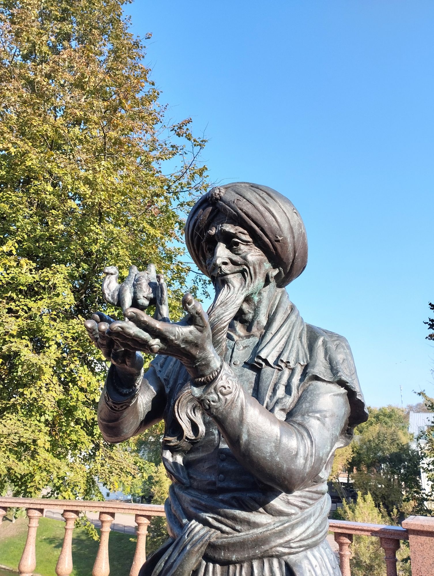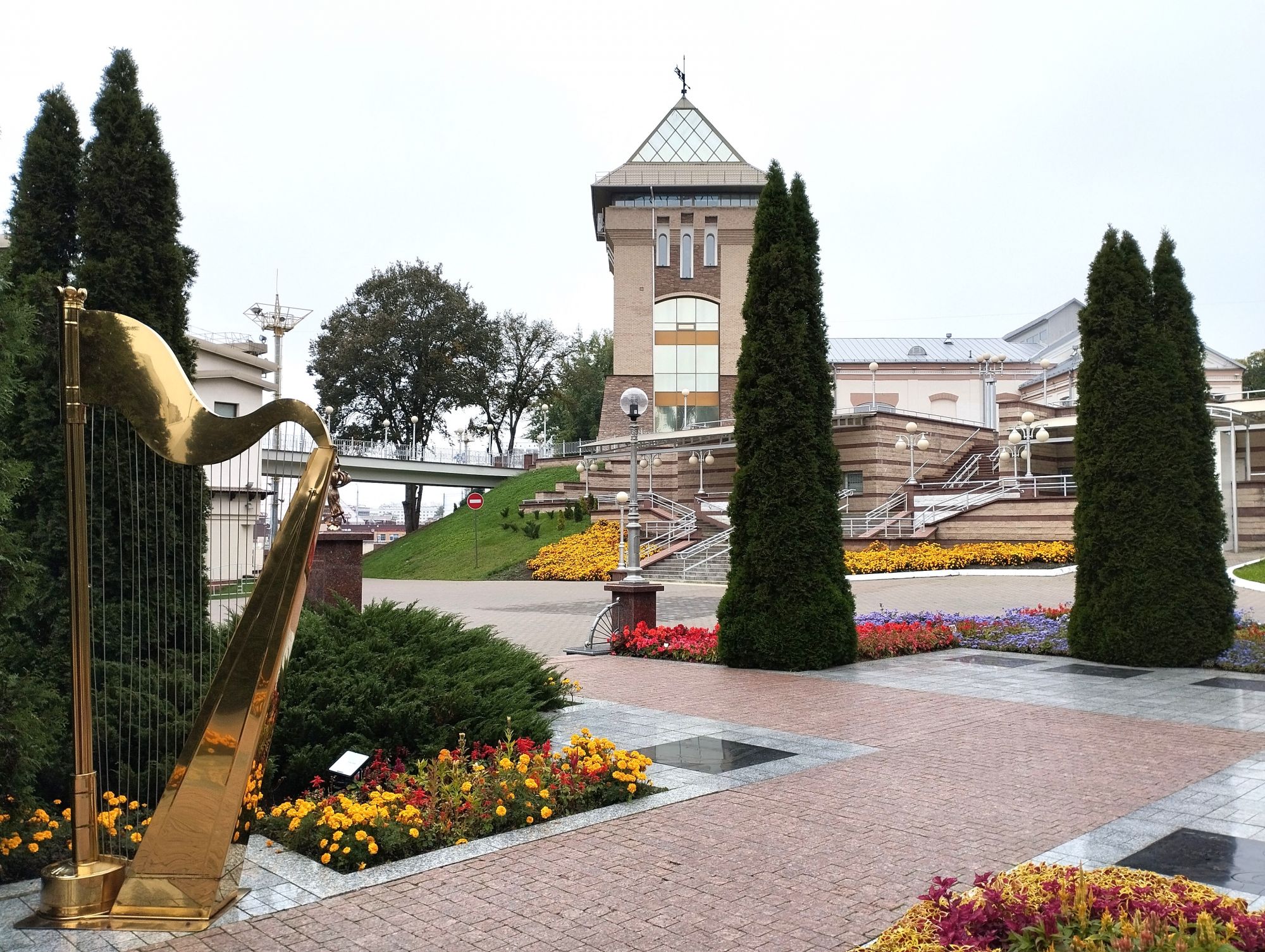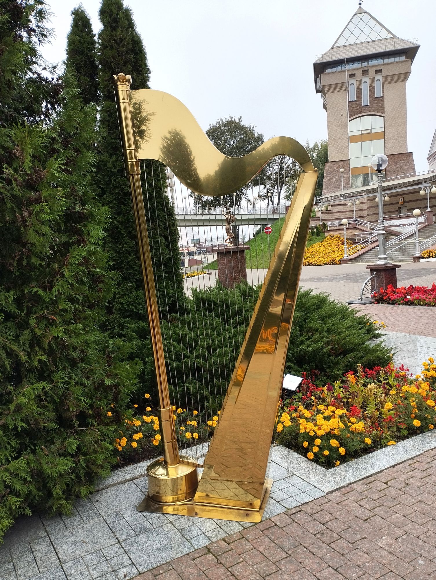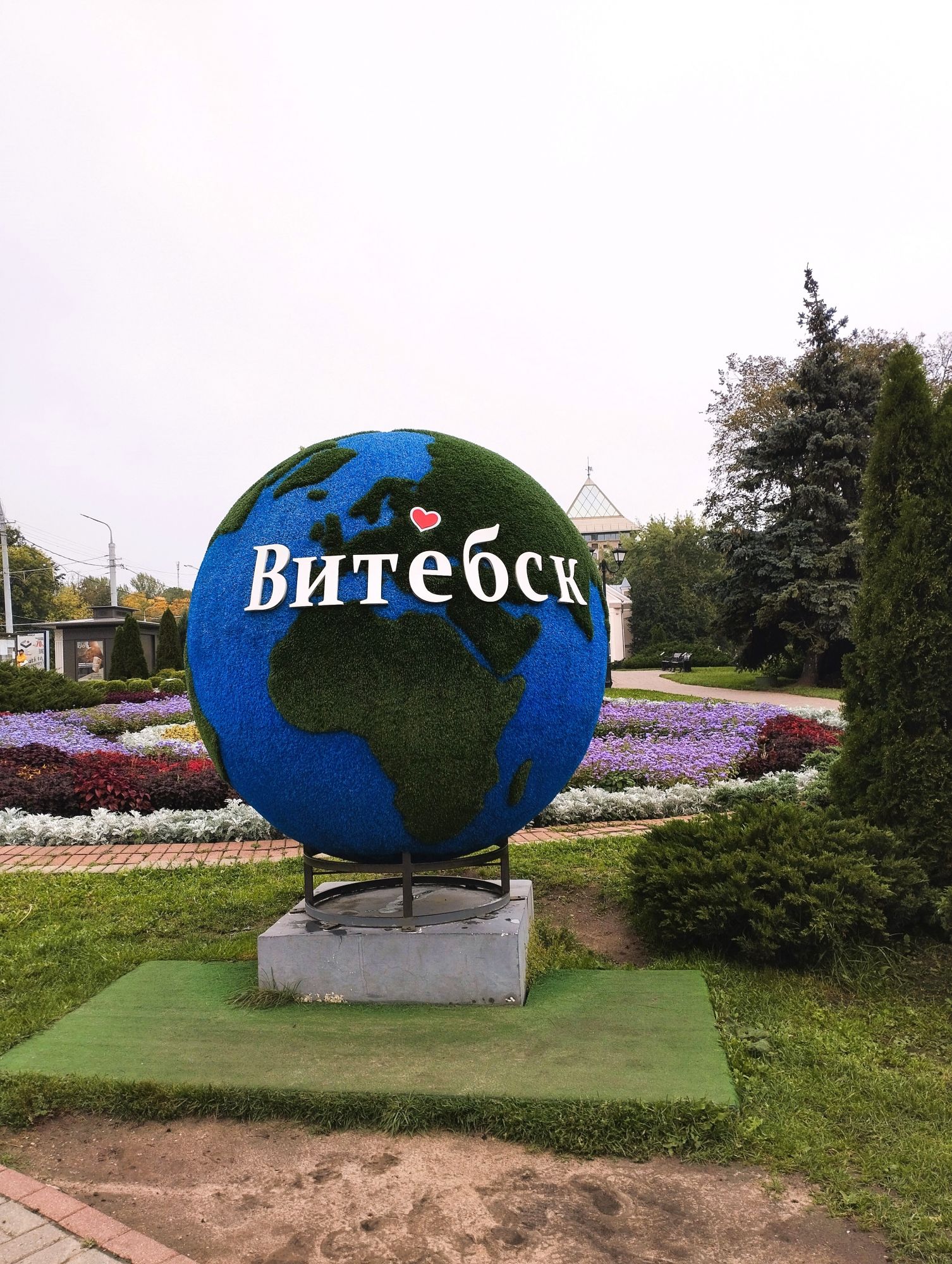6 октября 2023 Из нашего окна в гостинице был виден Летний Амфитеатр, где проводится "Славянский базар", поэтому, немножко вздремнув, часиков до 11 (я-то и в поезде отрубилась, на верхней полке плацкарта, а муж мой спать в поездах не может) мы навострили лыжи на прогулку и начали знакомство с Витебском именно с этого места. Летний амфитеатр был построен всего за полгода для всесоюзного фестиваля польской песни в 1988 году. Фестиваль польской песни Витебск принимал дважды: в 1988 и 1990 годах. После развала СССР праздник польской песни приказал долго жить, но Витебск уже зарекомендовал себя как фестивальный город. Ждал праздника и готов был его принимать. Первый «Славянский базар в Витебске» состоялся в 1992 г. Тогда у его истоков стояли Беларусь, Россия и Украина, и мероприятие ставило целью ознакомить жителей и гостей белорусского города с творчеством славянских народов, в первую очередь – музыкальным. Через год фестиваль стал членом Международной федерации организаторов фестивалей, что позволило ему расширить географию участников: к площадке присоединились представители из Словакии, Кыргызстана, Литвы, Турции, Болгарии и Югославии. С 1995 г. «Славянский базар» стал называться Международным фестивалем искусств и начал проводиться под покровительством президента Беларуси, который впервые его посетил. География участия расширилась: на фестиваль приехали представители Кипра, Нидерландов, Греции, Узбекистана и Швейцарии. Через год «Славянский базар» стал транслироваться по телевидению, а в 1998 г. стал культурологическим проектом Союзного государства. Проводится Славянский базар до сих пор. Начали мы свой путь к Амфитеатру от гостиницы мимо вот такого глобуса и фортепиано Туман к тому времени стал рассасываться, но все равно было мозгло, я опасалась, что прогноз погоды, который обещал три дня солнечных и теплых, меня обманул. Но, хотя первые фото в этот день получились мрачноватыми, потом погода расстоялась и солнце засветило вовсю. Потом мы дошли до скульптуры уличного клоуна или бродячего музыканта - я встречала два названия. По приметам, если дотронуться до гармошки клоуна, то хорошее настроение не покинет на протяжении дня. А для того, чтобы сопутствовала удача целый день, обязательно нужно поздороваться за лапку с собачкой. Еще говорят, будто, если подержаться за деньги, которые выглядывают из заднего кармана музыканта, будет преследовать финансовая удача. А нос клоуна, если к нему дотронуться, обязательно навлечет на вас любовь. Следующим был "Духовской круглик" Это не древнее здание, а художественная реконструкция типовой башни XIV века., построенное в 2007 году. Сейчас там музей. И нет, в музей мы не заходили... Еще встретили вот такую вот инсталляцию. Это конь с каретой. Ну и, наконец, спустились к Амфитеатру. Сам зал закрыт, но вокруг можно походить, все очень чисто и ухоженно. Акустика шикарная! Откуда я это знаю? Вороны каркают и их карканье разносится на много метров вокруг, резонируя Там же - Аллея звезд Вот мое личное мнение - смотрится странно. Как будто могилы. В общем, мне не понравилось. Сделали бы звездочки что ли, как в Голливуде.. А так стремно. Еще я увидела контрабас и арфу, а еще фигурку Ники и павлина. Что мне понравилось в Витебске - это много зелени. Вот, вроде бы Амфитеатр - туристическое место, но ты его проходишь и начинается рощ