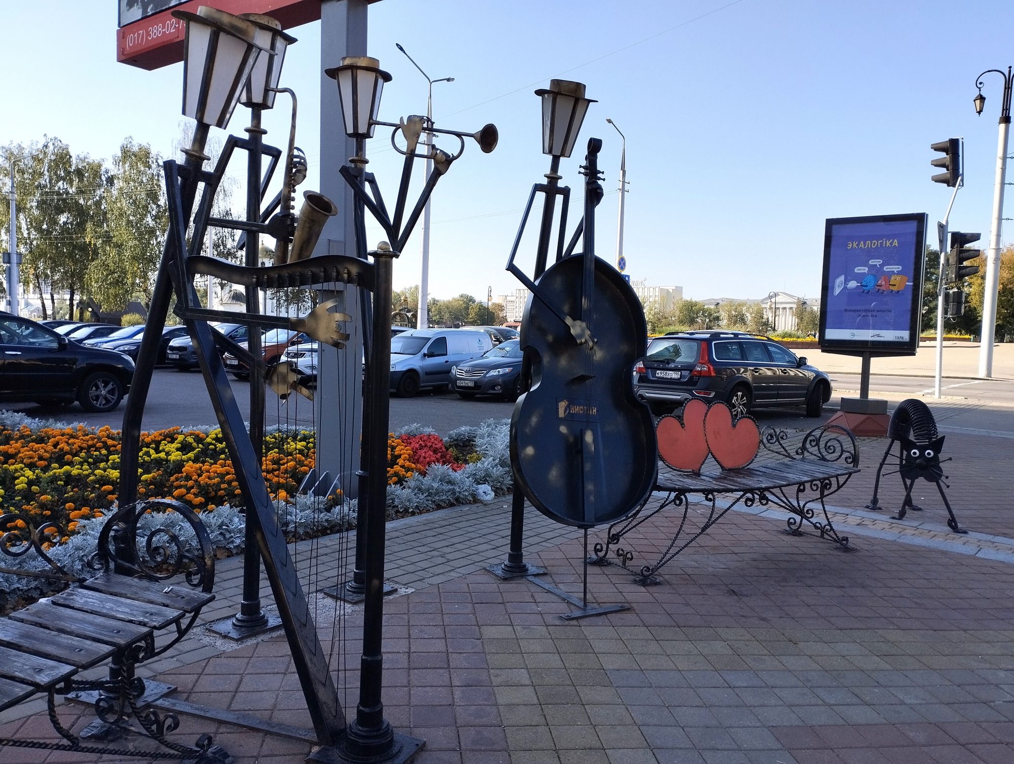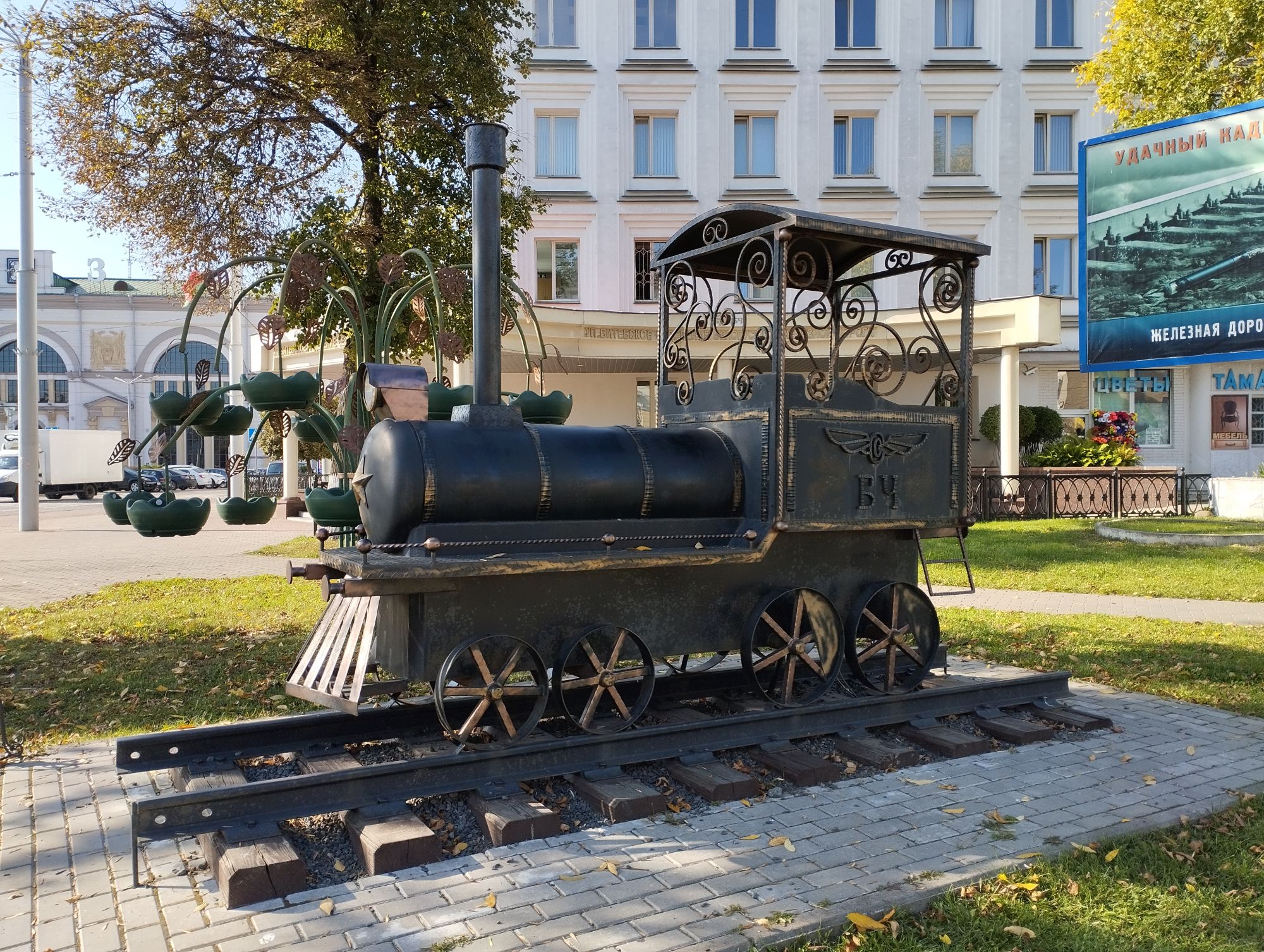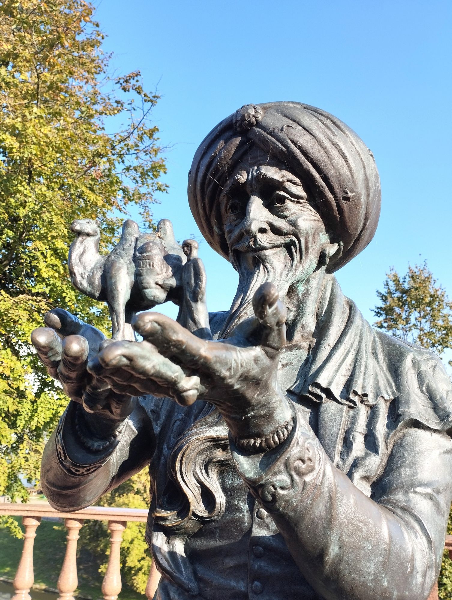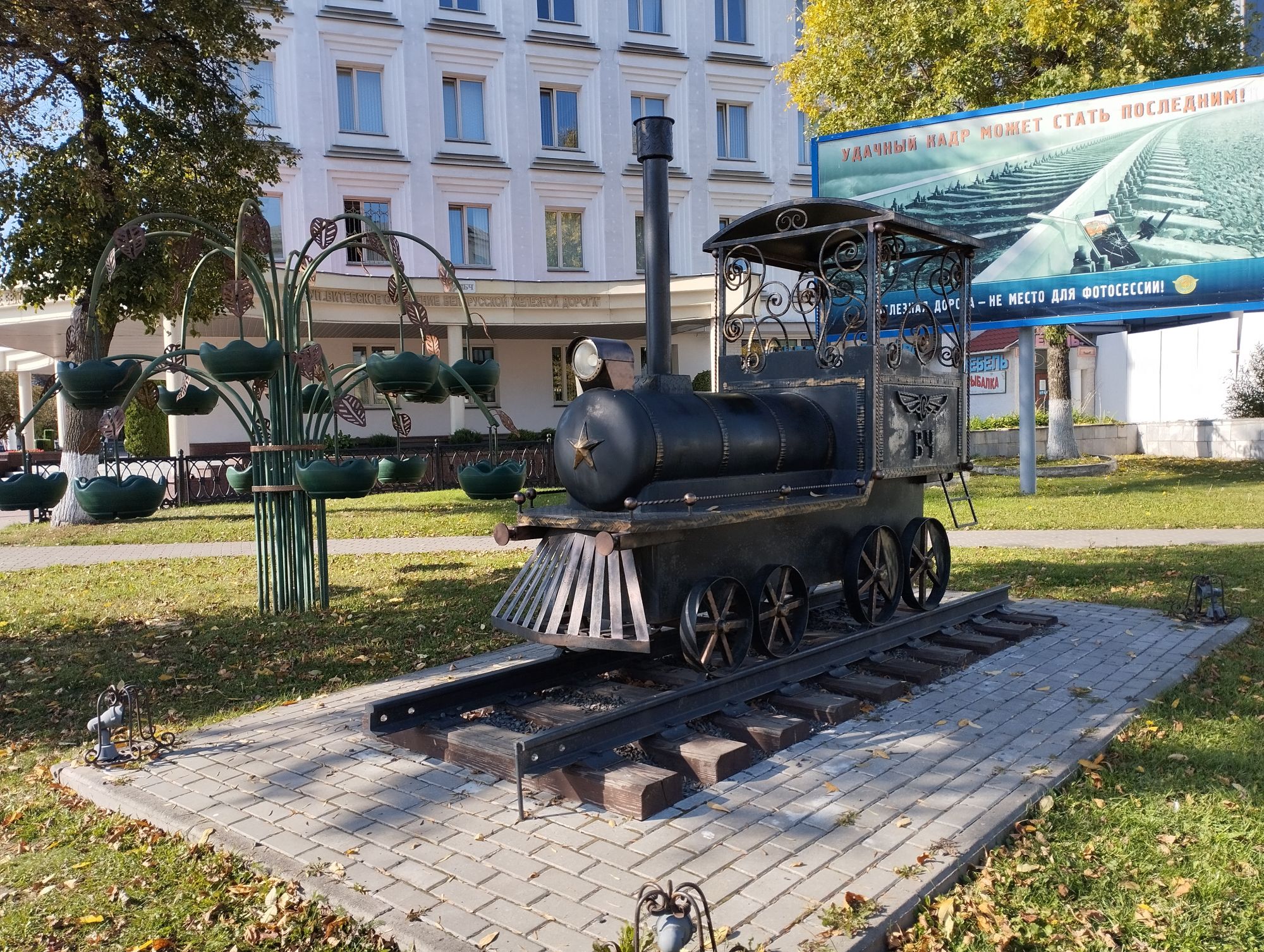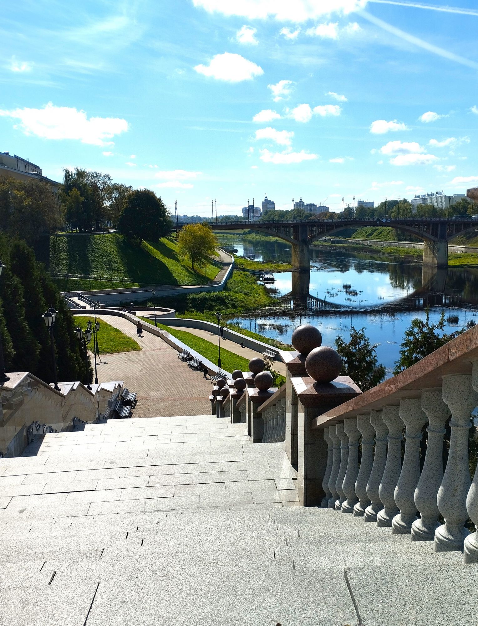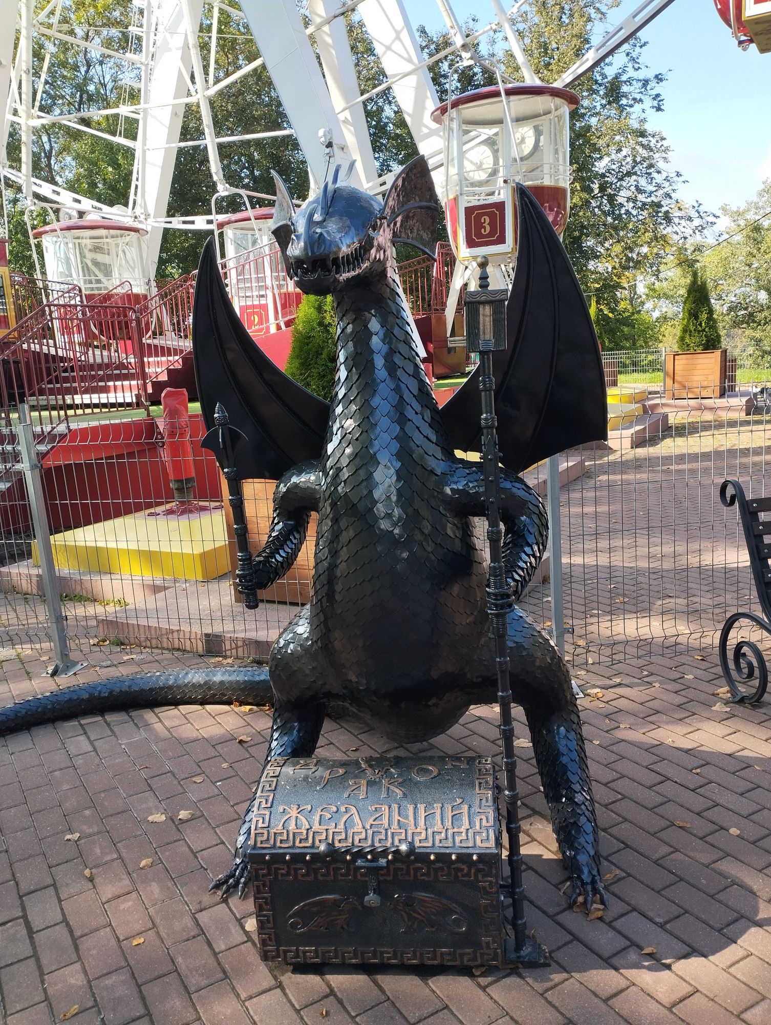 6 октября 2023 Из нашего окна в гостинице был виден Летний Амфитеатр, где проводится "Славянский базар", поэтому, немножко вздремнув, часиков до 11 (я-то и в поезде отрубилась, на верхней полке плацкарта, а муж мой спать в поездах не может) мы навострили лыжи на прогулку и начали знакомство с Витебском именно с этого места. Летний амфитеатр был построен всего за полгода для всесоюзного фестиваля польской песни в 1988 году. Фестиваль польской песни Витебск принимал дважды: в 1988 и 1990 годах. После развала СССР праздник польской песни приказал долго жить, но Витебск уже зарекомендовал себя как фестивальный город. Ждал праздника и готов был его принимать. Первый «Славянский базар в Витебске» состоялся в 1992 г. Тогда у его истоков стояли Беларусь, Россия и Украина, и мероприятие ставило целью ознакомить жителей и гостей белорусского города с творчеством славянских народов, в первую очередь – музыкальным. Через год фестиваль стал членом Международной федерации организаторов фестивалей, что позволило ему расширить географию участников: к площадке присоединились представители из Словакии, Кыргызстана, Литвы, Турции, Болгарии и Югославии. С 1995 г. «Славянский базар» стал называться Международным фестивалем искусств и начал проводиться под покровительством президента Беларуси, который впервые его посетил. География участия расширилась: на фестиваль приехали представители Кипра, Нидерландов, Греции, Узбекистана и Швейцарии. Через год «Славянский базар» стал транслироваться по телевидению, а в 1998 г. стал культурологическим проектом Союзного государства. Проводится Славянский базар до сих пор. Начали мы свой путь к Амфитеатру от гостиницы мимо вот такого глобуса и фортепиано Туман к тому времени стал рассасываться, но все равно было мозгло, я опасалась, что прогноз погоды, который обещал три дня солнечных и теплых, меня обманул. Но, хотя первые фото в этот день получились мрачноватыми, потом погода расстоялась и солнце засветило вовсю. Потом мы дошли до скульптуры уличного клоуна или бродячего музыканта - я встречала два названия. По приметам, если дотронуться до гармошки клоуна, то хорошее настроение не покинет на протяжении дня. А для того, чтобы сопутствовала удача целый день, обязательно нужно поздороваться за лапку с собачкой. Еще говорят, будто, если подержаться за деньги, которые выглядывают из заднего кармана музыканта, будет преследовать финансовая удача. А нос клоуна, если к нему дотронуться, обязательно навлечет на вас любовь. Следующим был "Духовской круглик" Это не древнее здание, а художественная реконструкция типовой башни XIV века., построенное в 2007 году. Сейчас там музей. И нет, в музей мы не заходили... Еще встретили вот такую вот инсталляцию. Это конь с каретой. Ну и, наконец, спустились к Амфитеатру. Сам зал закрыт, но вокруг можно походить, все очень чисто и ухоженно. Акустика шикарная! Откуда я это знаю? Вороны каркают и их карканье разносится на много метров вокруг, резонируя Там же - Аллея звезд Вот мое личное мнение - смотрится странно. Как будто могилы. В общем, мне не понравилось. Сделали бы звездочки что ли, как в Голливуде.. А так стремно. Еще я увидела контрабас и арфу, а еще фигурку Ники и павлина. Что мне понравилось в Витебске - это много зелени. Вот, вроде бы Амфитеатр - туристическое место, но ты его проходишь и начинается рощ