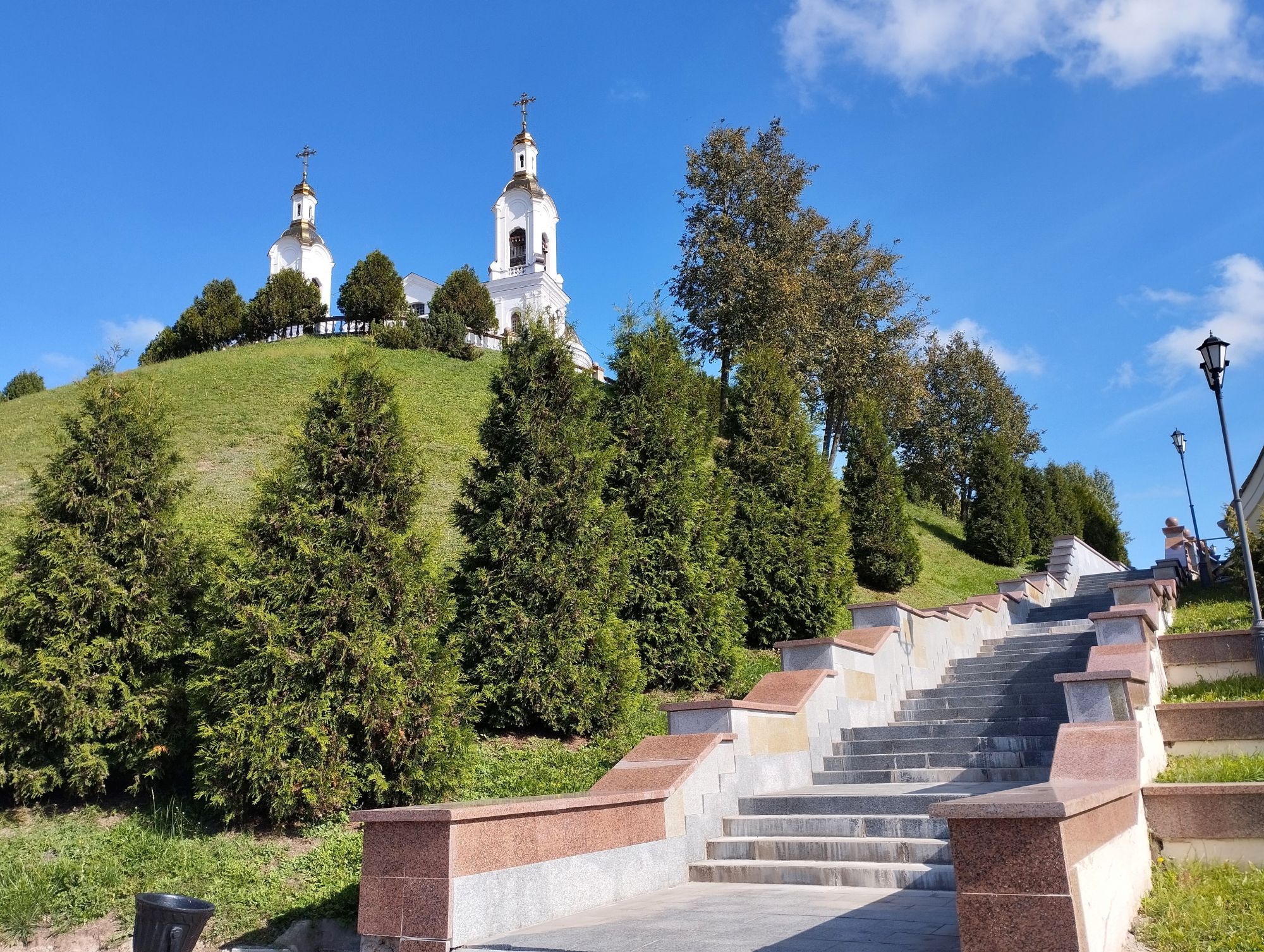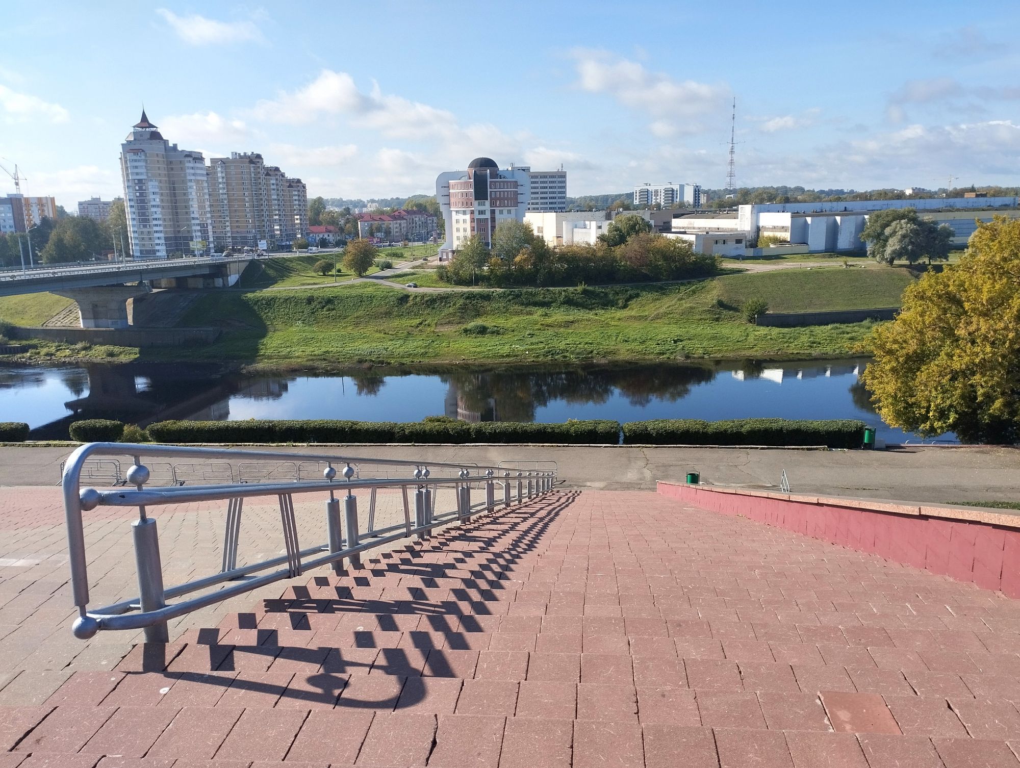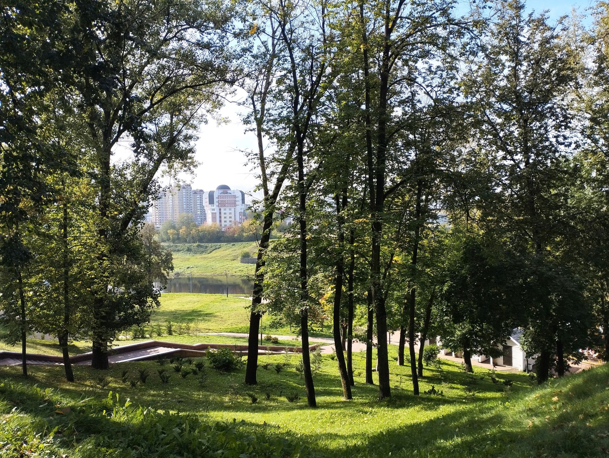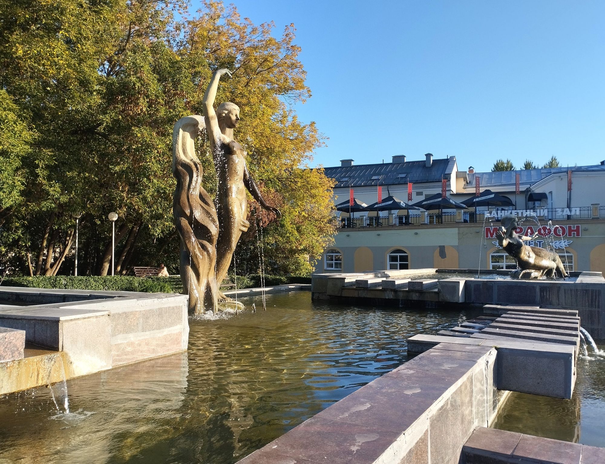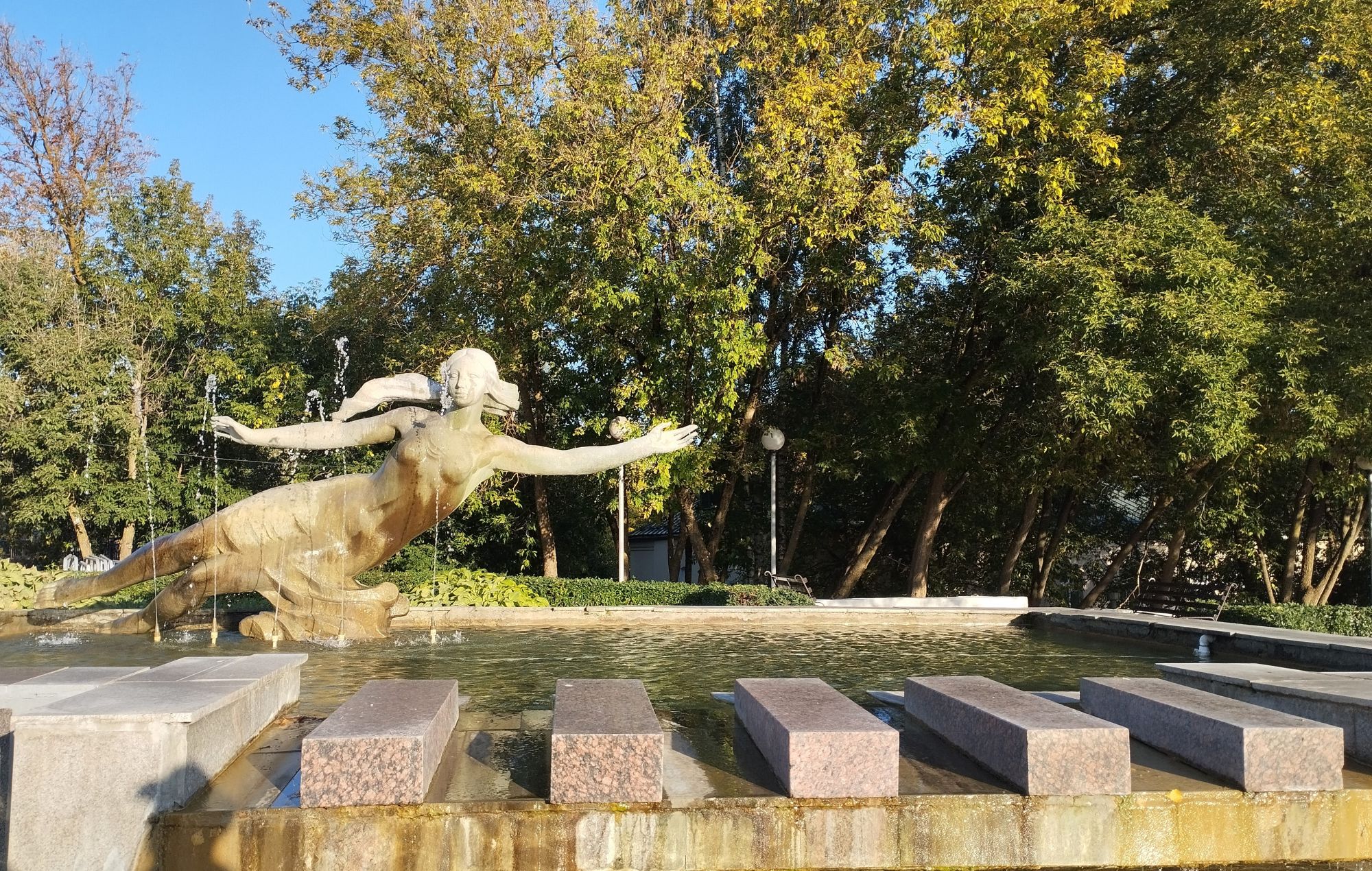 6 октября 2023 Из нашего окна в гостинице был виден Летний Амфитеатр, где проводится "Славянский базар", поэтому, немножко вздремнув, часиков до 11 (я-то и в поезде отрубилась, на верхней полке плацкарта, а муж мой спать в поездах не может) мы навострили лыжи на прогулку и начали знакомство с Витебском именно с этого места. Летний амфитеатр был построен всего за полгода для всесоюзного фестиваля польской песни в 1988 году. Фестиваль польской песни Витебск принимал дважды: в 1988 и 1990 годах. После развала СССР праздник польской песни приказал долго жить, но Витебск уже зарекомендовал себя как фестивальный город. Ждал праздника и готов был его принимать. Первый «Славянский базар в Витебске» состоялся в 1992 г. Тогда у его истоков стояли Беларусь, Россия и Украина, и мероприятие ставило целью ознакомить жителей и гостей белорусского города с творчеством славянских народов, в первую очередь – музыкальным. Через год фестиваль стал членом Международной федерации организаторов фестивалей, что позволило ему расширить географию участников: к площадке присоединились представители из Словакии, Кыргызстана, Литвы, Турции, Болгарии и Югославии. С 1995 г. «Славянский базар» стал называться Международным фестивалем искусств и начал проводиться под покровительством президента Беларуси, который впервые его посетил. География участия расширилась: на фестиваль приехали представители Кипра, Нидерландов, Греции, Узбекистана и Швейцарии. Через год «Славянский базар» стал транслироваться по телевидению, а в 1998 г. стал культурологическим проектом Союзного государства. Проводится Славянский базар до сих пор. Начали мы свой путь к Амфитеатру от гостиницы мимо вот такого глобуса и фортепиано Туман к тому времени стал рассасываться, но все равно было мозгло, я опасалась, что прогноз погоды, который обещал три дня солнечных и теплых, меня обманул. Но, хотя первые фото в этот день получились мрачноватыми, потом погода расстоялась и солнце засветило вовсю. Потом мы дошли до скульптуры уличного клоуна или бродячего музыканта - я встречала два названия. По приметам, если дотронуться до гармошки клоуна, то хорошее настроение не покинет на протяжении дня. А для того, чтобы сопутствовала удача целый день, обязательно нужно поздороваться за лапку с собачкой. Еще говорят, будто, если подержаться за деньги, которые выглядывают из заднего кармана музыканта, будет преследовать финансовая удача. А нос клоуна, если к нему дотронуться, обязательно навлечет на вас любовь. Следующим был "Духовской круглик" Это не древнее здание, а художественная реконструкция типовой башни XIV века., построенное в 2007 году. Сейчас там музей. И нет, в музей мы не заходили... Еще встретили вот такую вот инсталляцию. Это конь с каретой. Ну и, наконец, спустились к Амфитеатру. Сам зал закрыт, но вокруг можно походить, все очень чисто и ухоженно. Акустика шикарная! Откуда я это знаю? Вороны каркают и их карканье разносится на много метров вокруг, резонируя Там же - Аллея звезд Вот мое личное мнение - смотрится странно. Как будто могилы. В общем, мне не понравилось. Сделали бы звездочки что ли, как в Голливуде.. А так стремно. Еще я увидела контрабас и арфу, а еще фигурку Ники и павлина. Что мне понравилось в Витебске - это много зелени. Вот, вроде бы Амфитеатр - туристическое место, но ты его проходишь и начинается рощ