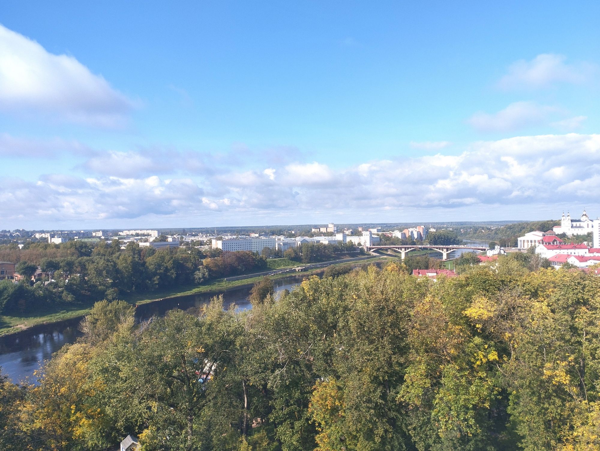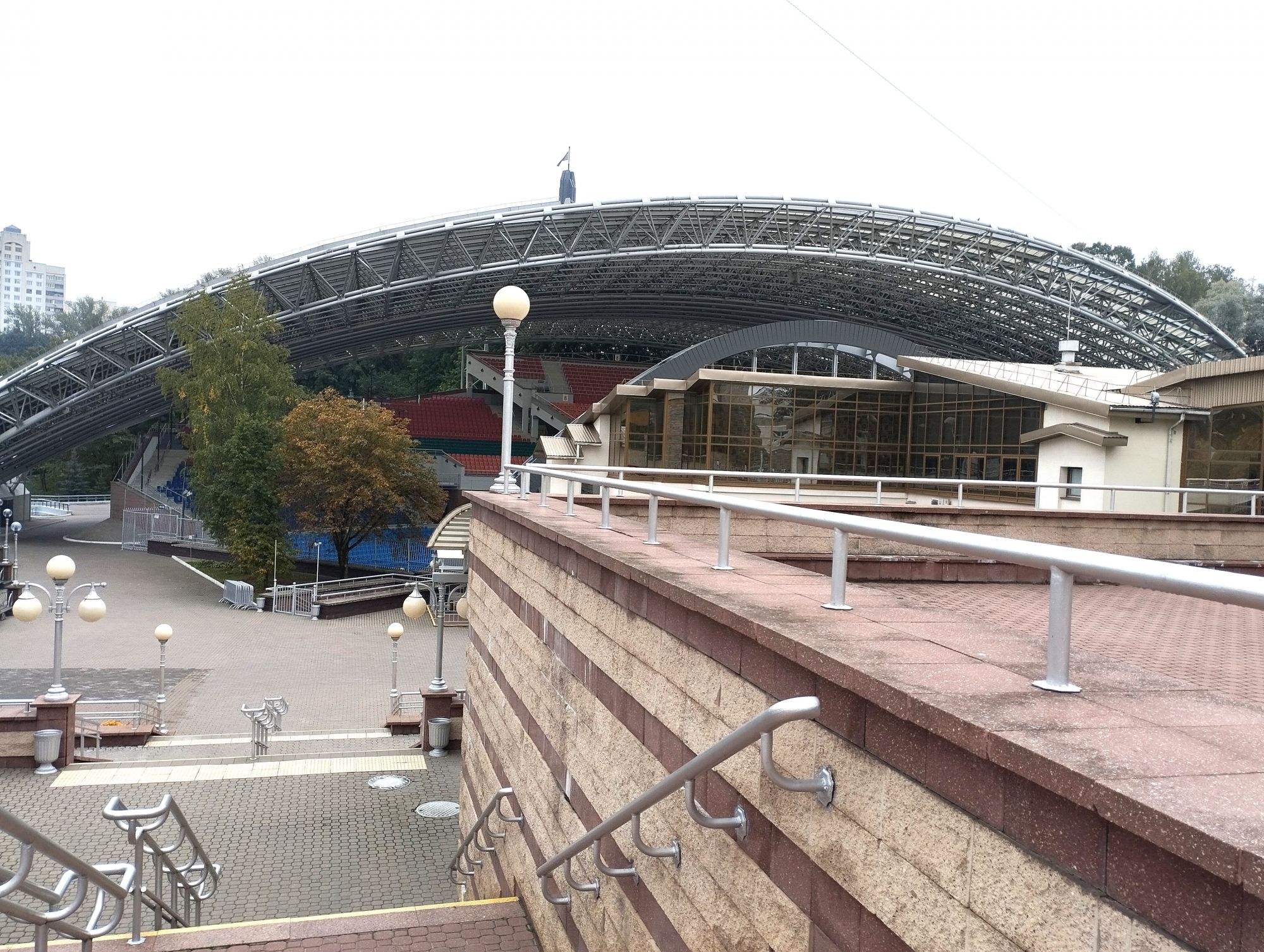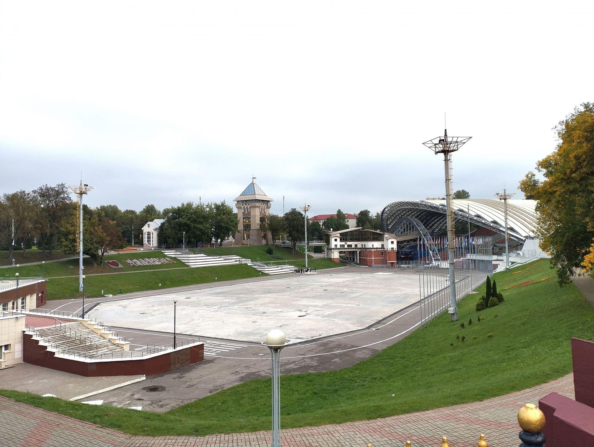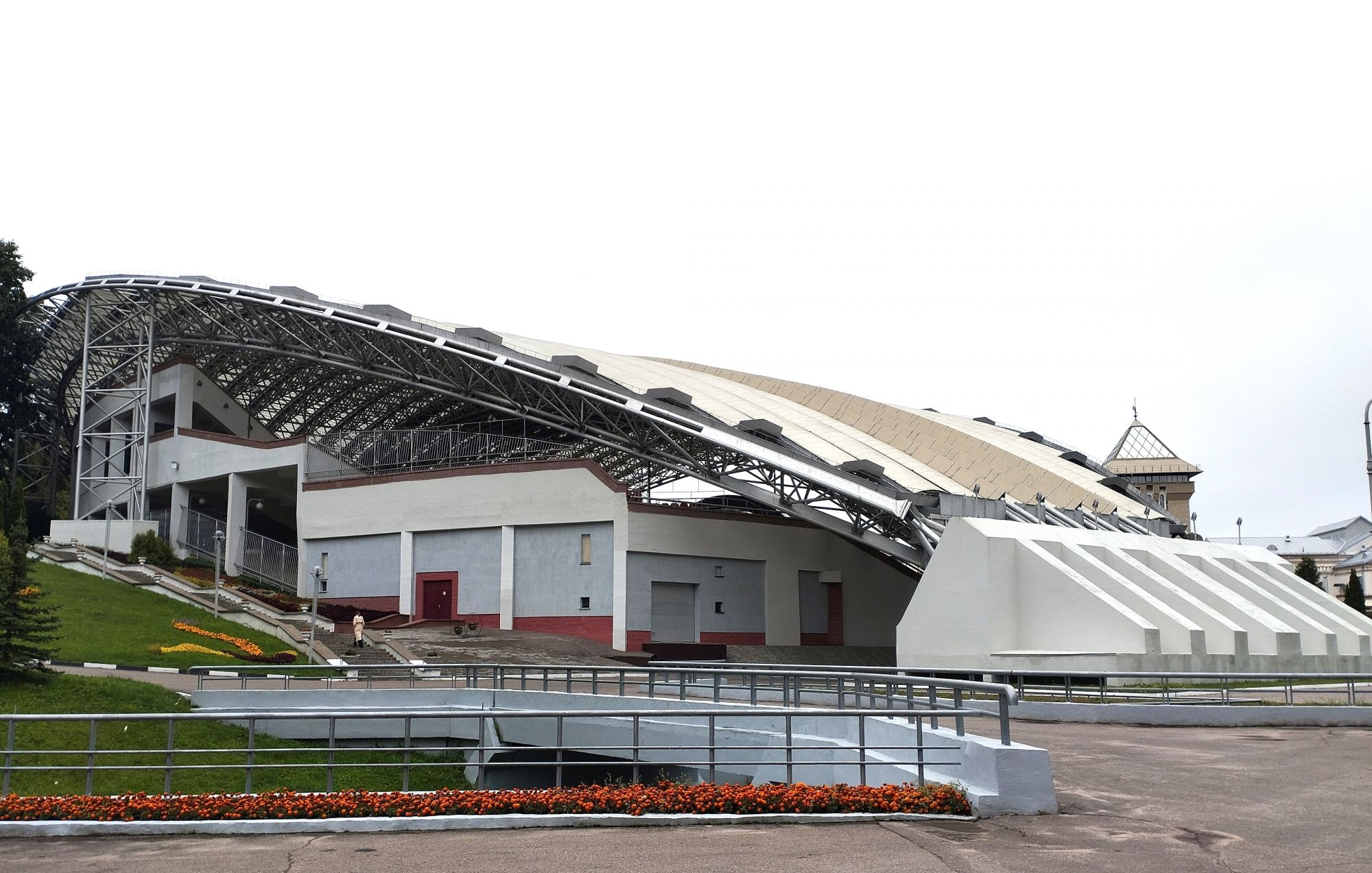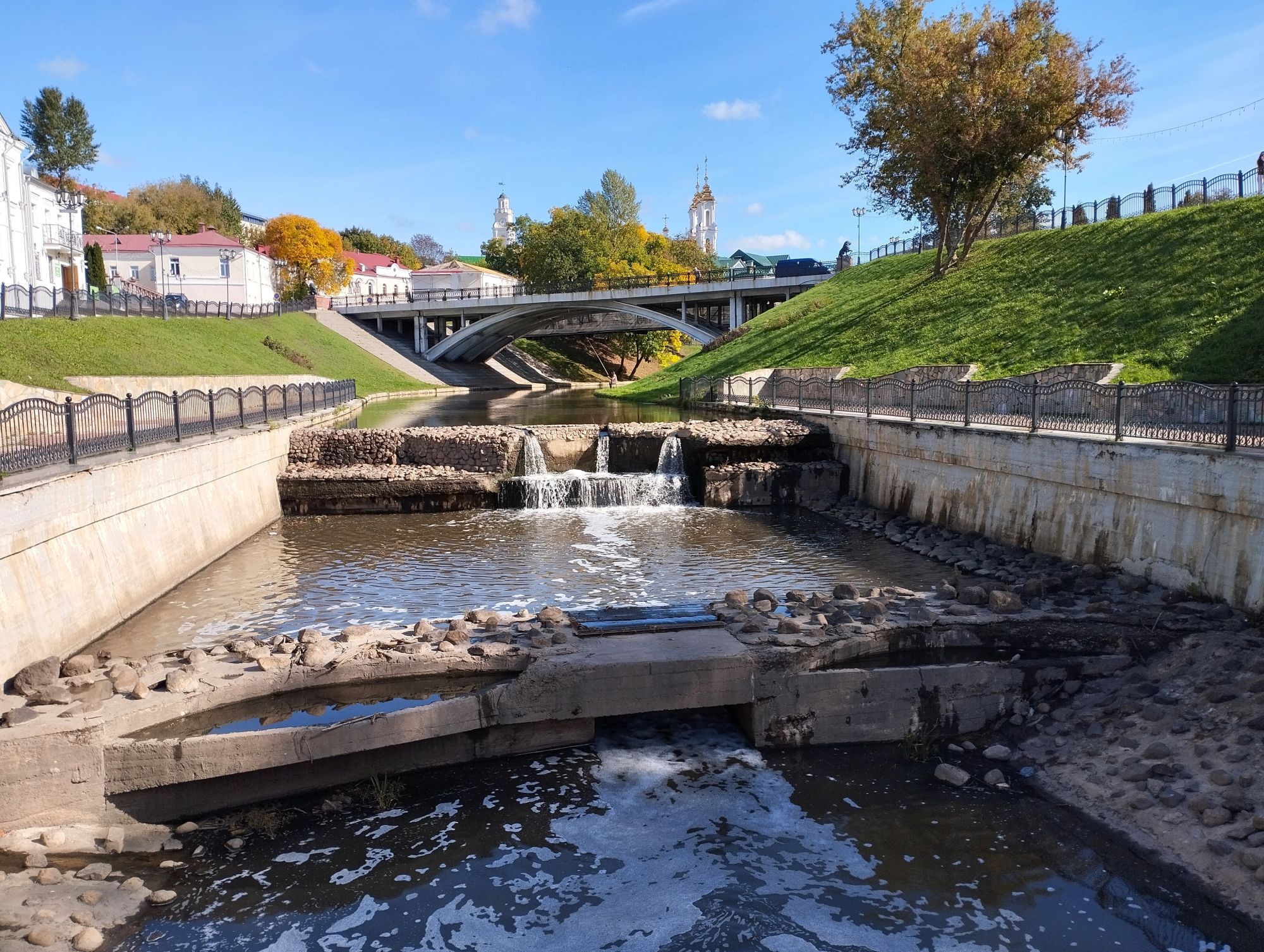 6 октября 2023 Из нашего окна в гостинице был виден Летний Амфитеатр, где проводится "Славянский базар", поэтому, немножко вздремнув, часиков до 11 (я-то и в поезде отрубилась, на верхней полке плацкарта, а муж мой спать в поездах не может) мы навострили лыжи на прогулку и начали знакомство с Витебском именно с этого места. Летний амфитеатр был построен всего за полгода для всесоюзного фестиваля польской песни в 1988 году. Фестиваль польской песни Витебск принимал дважды: в 1988 и 1990 годах. После развала СССР праздник польской песни приказал долго жить, но Витебск уже зарекомендовал себя как фестивальный город. Ждал праздника и готов был его принимать. Первый «Славянский базар в Витебске» состоялся в 1992 г. Тогда у его истоков стояли Беларусь, Россия и Украина, и мероприятие ставило целью ознакомить жителей и гостей белорусского города с творчеством славянских народов, в первую очередь – музыкальным. Через год фестиваль стал членом Международной федерации организаторов фестивалей, что позволило ему расширить географию участников: к площадке присоединились представители из Словакии, Кыргызстана, Литвы, Турции, Болгарии и Югославии. С 1995 г. «Славянский базар» стал называться Международным фестивалем искусств и начал проводиться под покровительством президента Беларуси, который впервые его посетил. География участия расширилась: на фестиваль приехали представители Кипра, Нидерландов, Греции, Узбекистана и Швейцарии. Через год «Славянский базар» стал транслироваться по телевидению, а в 1998 г. стал культурологическим проектом Союзного государства. Проводится Славянский базар до сих пор. Начали мы свой путь к Амфитеатру от гостиницы мимо вот такого глобуса и фортепиано Туман к тому времени стал рассасываться, но все равно было мозгло, я опасалась, что прогноз погоды, который обещал три дня солнечных и теплых, меня обманул. Но, хотя первые фото в этот день получились мрачноватыми, потом погода расстоялась и солнце засветило вовсю. Потом мы дошли до скульптуры уличного клоуна или бродячего музыканта - я встречала два названия. По приметам, если дотронуться до гармошки клоуна, то хорошее настроение не покинет на протяжении дня. А для того, чтобы сопутствовала удача целый день, обязательно нужно поздороваться за лапку с собачкой. Еще говорят, будто, если подержаться за деньги, которые выглядывают из заднего кармана музыканта, будет преследовать финансовая удача. А нос клоуна, если к нему дотронуться, обязательно навлечет на вас любовь. Следующим был "Духовской круглик" Это не древнее здание, а художественная реконструкция типовой башни XIV века., построенное в 2007 году. Сейчас там музей. И нет, в музей мы не заходили... Еще встретили вот такую вот инсталляцию. Это конь с каретой. Ну и, наконец, спустились к Амфитеатру. Сам зал закрыт, но вокруг можно походить, все очень чисто и ухоженно. Акустика шикарная! Откуда я это знаю? Вороны каркают и их карканье разносится на много метров вокруг, резонируя Там же - Аллея звезд Вот мое личное мнение - смотрится странно. Как будто могилы. В общем, мне не понравилось. Сделали бы звездочки что ли, как в Голливуде.. А так стремно. Еще я увидела контрабас и арфу, а еще фигурку Ники и павлина. Что мне понравилось в Витебске - это много зелени. Вот, вроде бы Амфитеатр - туристическое место, но ты его проходишь и начинается рощ