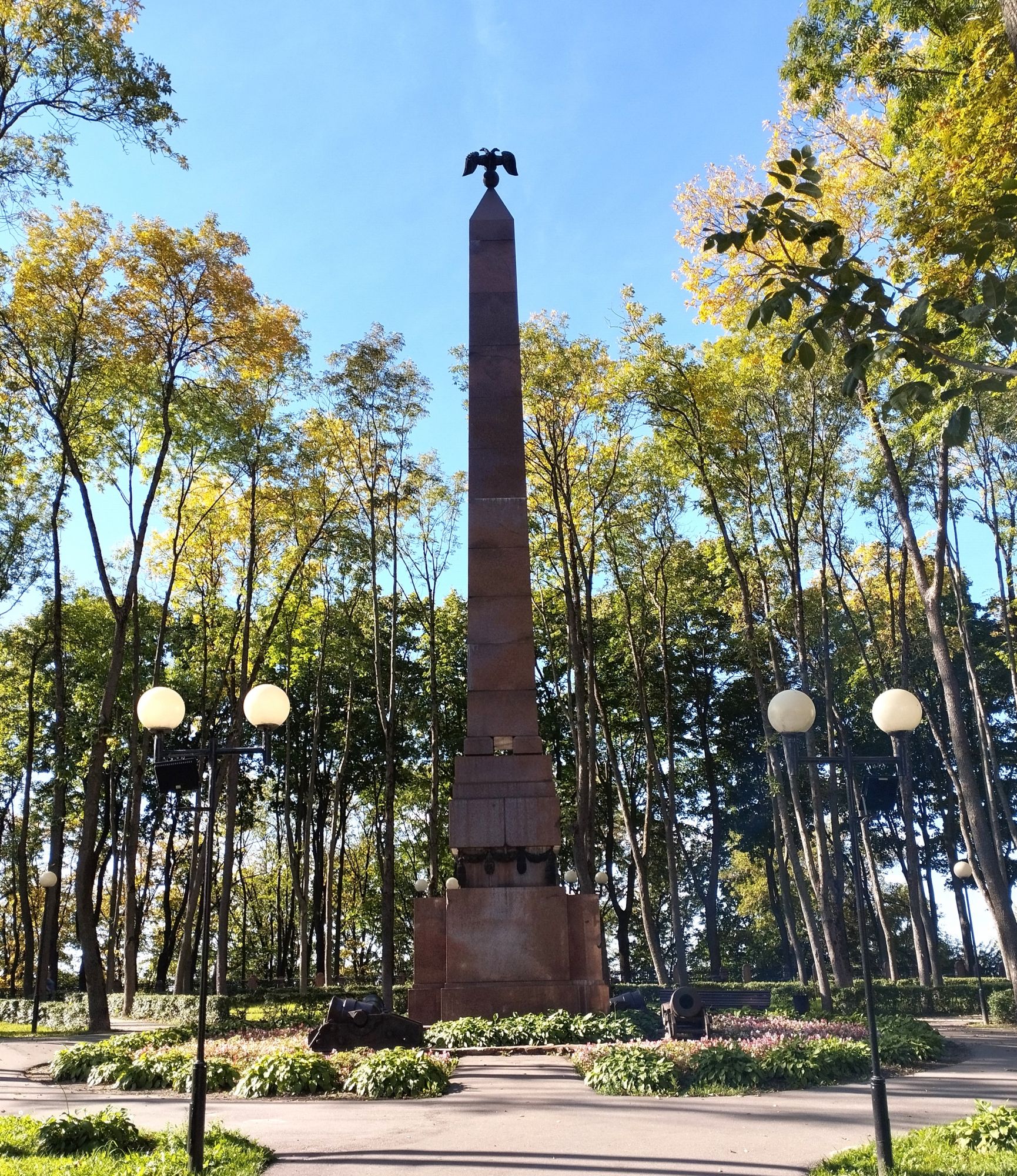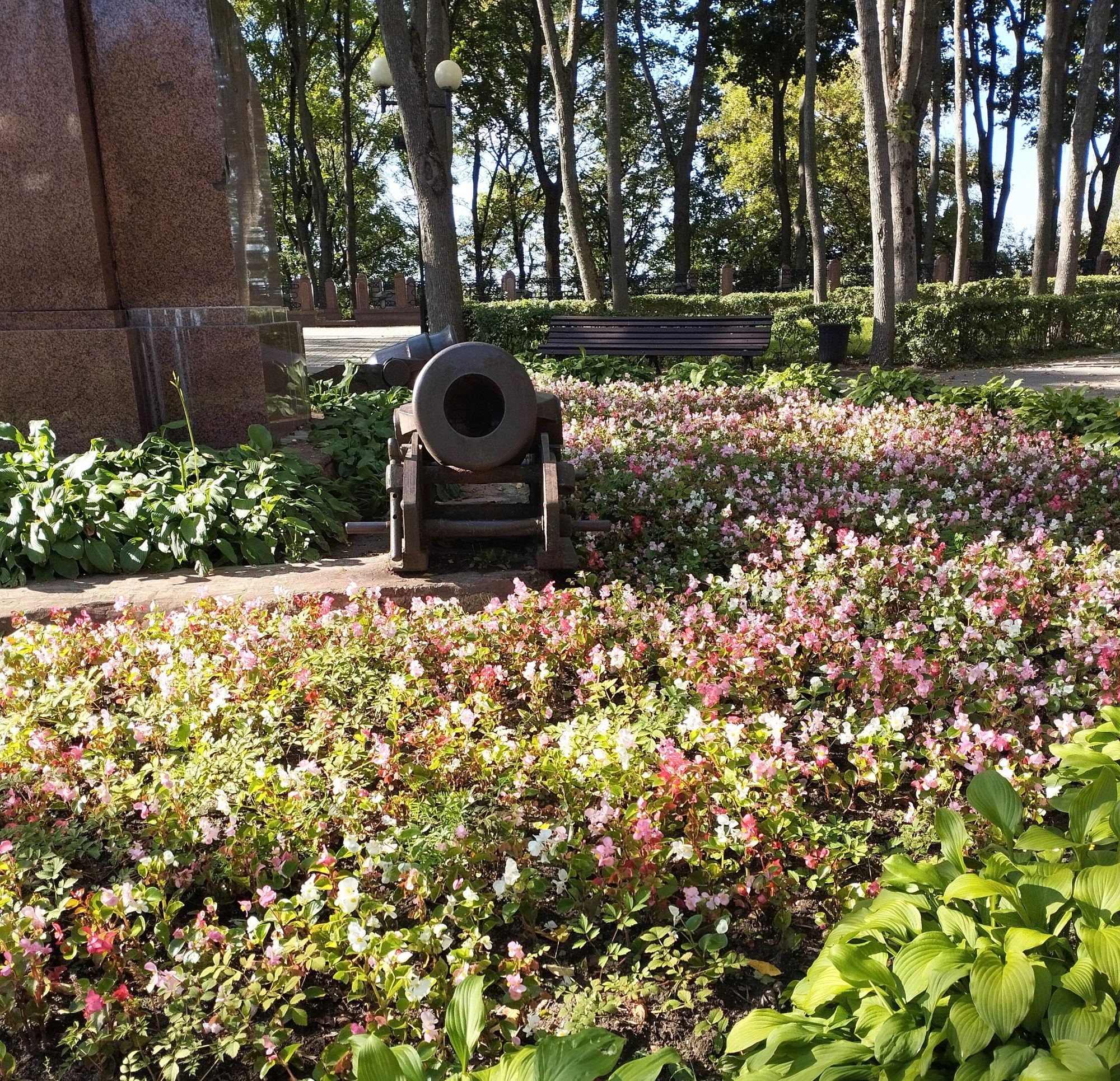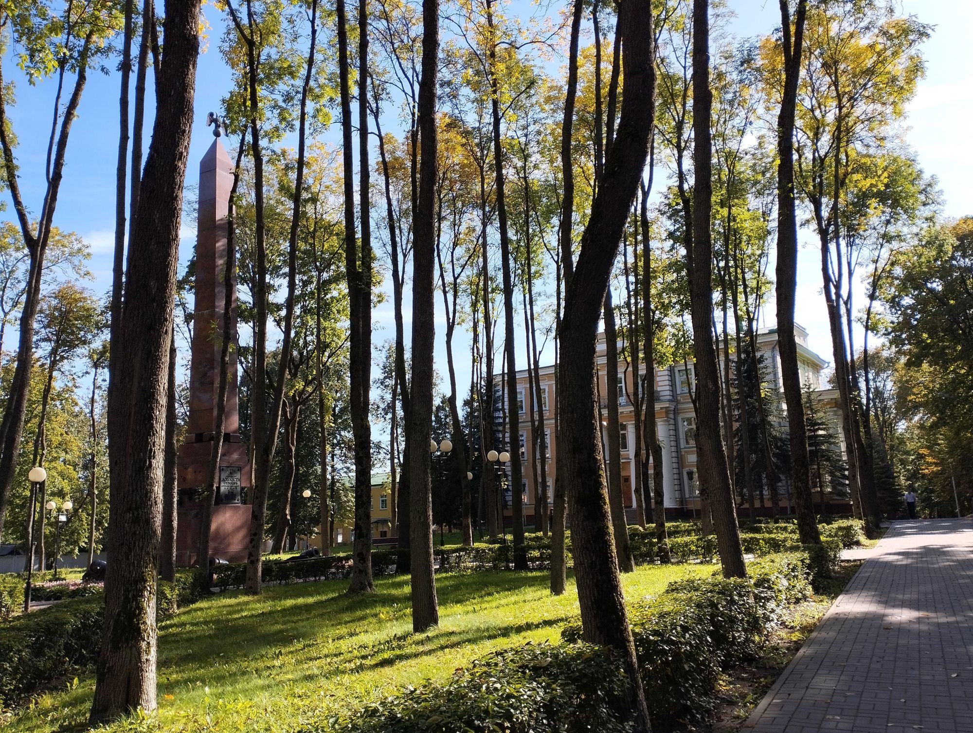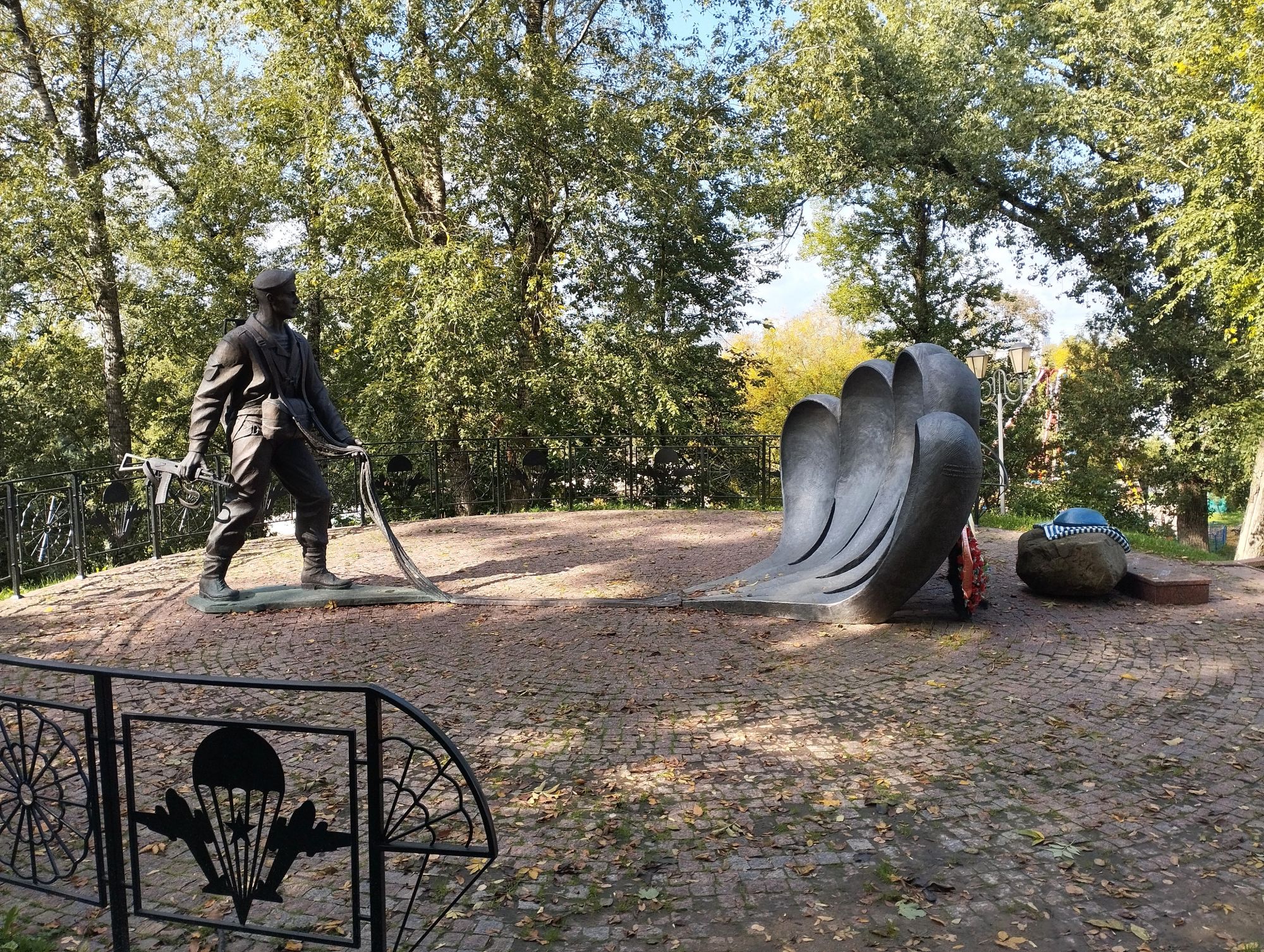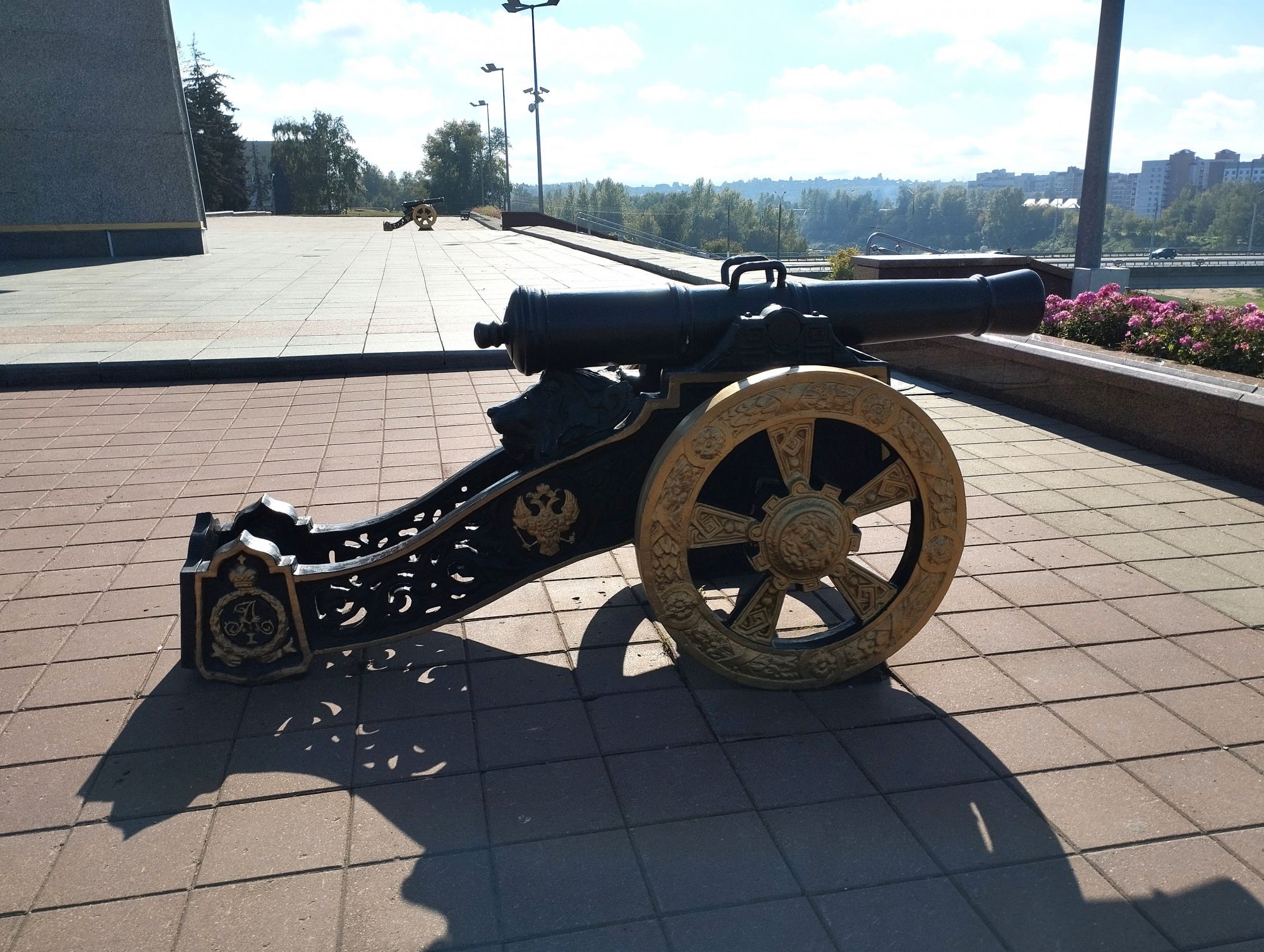 6 октября 2023 Описав круг возле Амфитеатра мы пошли по набережной к новой локации, которую хотел посмотреть мой муж - Площади Победы. И опять - зелень, зелень, зелень.... Шли, любуясь красивыми видами. Дошли вот до такого памятника. Это памятник воинам - десантникам. Молодой парень - собирательный образ десантника, рядом — символический купол парашюта, на котором располагаются эмблема ВДВ и барельефы генералов Ивана Лисова и Героя Советского Союза Василия Маргелова. Прокатились на колесе обозрения и посмотрели на Витебск сверху. Фото мутноватые, и их мало, потому что сейчас все ж помешаны на безопасности и колеса обозрения очень скучные - тебе его открывают, закрывают, все вокруг закрыто стеклами... Эх, то ли в моем детстве - вскакиваешь в дверцу, сам закрываешь за собой защелку (очень сомнительную и хлипкую, тебя обдувает ветерок, а еще в центре кабинки колесо, которое можно было покрутить и кабинка начиналась крутиться тоже... Романтика!!!!! И вот, наконец, мы дошли до того, чего хотели. Большое уважение и поклон беларусам за память. Они помнят, как страна пострадала от фашистов, бережно хранят память о подвиге и этих кровопролитных годах. Все чисто, ухожено, отшлифовано. Мой муж нафоткался за техникой, я как-то желания с таким фотографироваться не испытываю - они тянут в себе негативную энергетику, ИМХО... Больше мне импонировали пушки войны 1812 года. Наверное дело в том, что Великую Отечественную войну мы пережили - пусть не мы, но бабушки и дедушки, на рассказах которых я, например, выросла и все четко представляю. А война 1812 года уже не ощущается как война, скорее как страница учебника истории или художественной книги. Ну и, не побоюсь этого слова - главный памятник Витебска - мемориальный комплекс "Освободителям Витебска - советским воинам, партизанам и подпольщикам". Он отличается не только монументальностью, величием и красотой, но и богатой духовной основой, трагическая суть которой своими корнями уходит в кровавые годы Великой Отечественной войны. 1974 году. Тогда на главной городской площади Победы возвысился символичный мемориальный комплекс "Три штыка" (как я поняла, это не то чтобы официальное название, а народное). Основной монумент представляет собой 3 трапециевидных пилона-обелиска высотой 56 метров, сужающихся кверху, объединенных на высоте 5 метров трехгранным монолитным фризом. На внутренних гранях обелиска – мемориальные надписи, а скульптурные изображения на фризе отражают три главных темы памятника: «Воины», «Партизаны» и «Подпольщики». Именно этим трем силам, одержавшим победу в Великой Отечественной войне, посвящен этот монумент. Под ним горит Вечный огонь. К главному монументу ведут два бассейна длиной по 85 метров и шириной 10 метров с четырьмя бурлящими струями в каждом. Они стали символом слёз, пролитых за годы войны. И два памятника - один символизирует начало войны, уход на фронт и зарождение партизанского движения. Второй - наступление советской армии и освобождение от власти немецко-фашистких захватчиков. На самой площади стоит длинный 9-этажный дом. Сверху надпись «Подвиг советского народа бессмертен!». Я удивилась, узнав, что это обычный жилой дом. От площади мы направились обратно к гостинице, потому что скоро сказка сказывается, но не скоро дело делается, уже было часов пять. Шли вот по такой аллейке Над ней висели