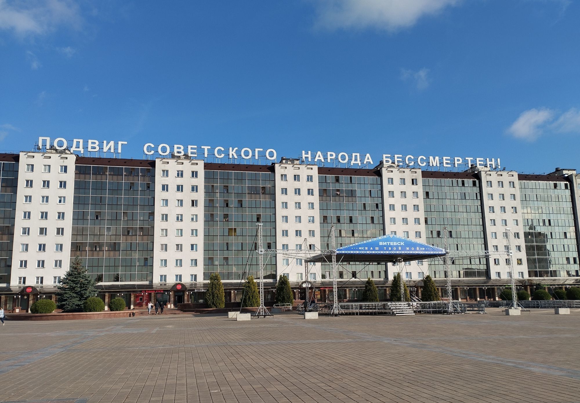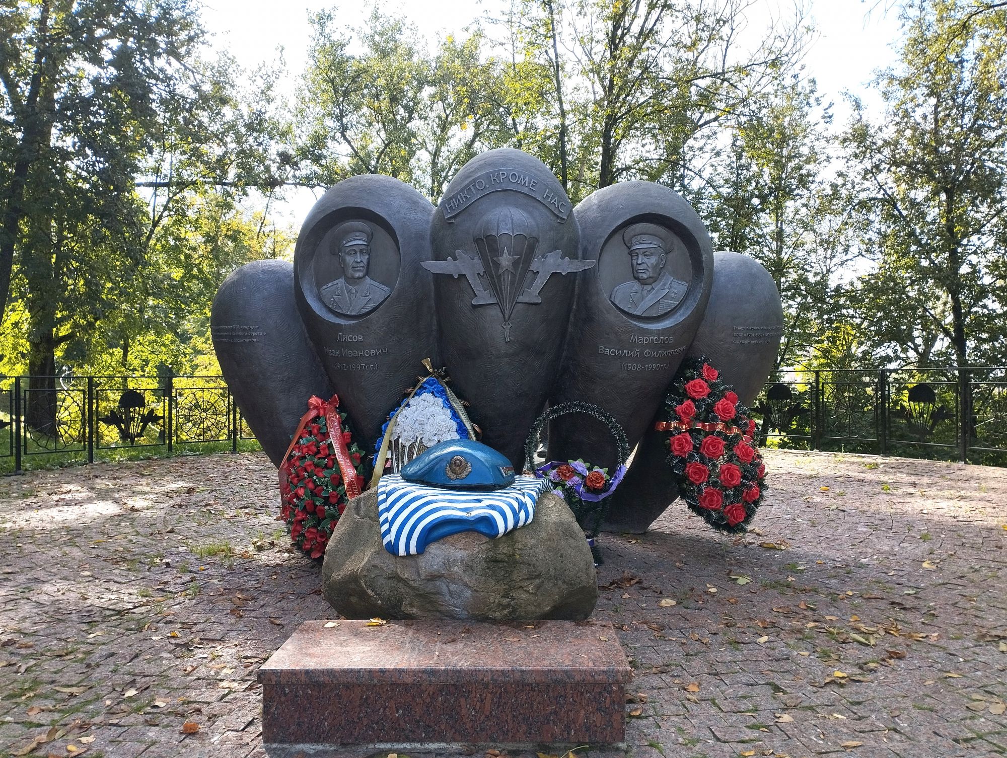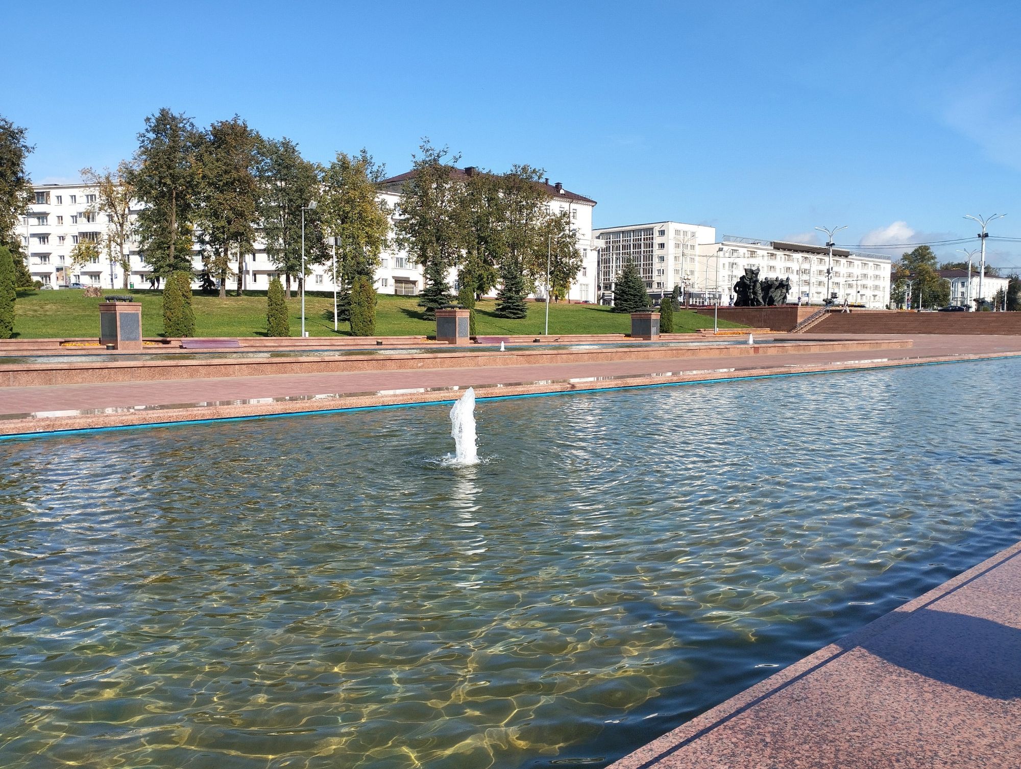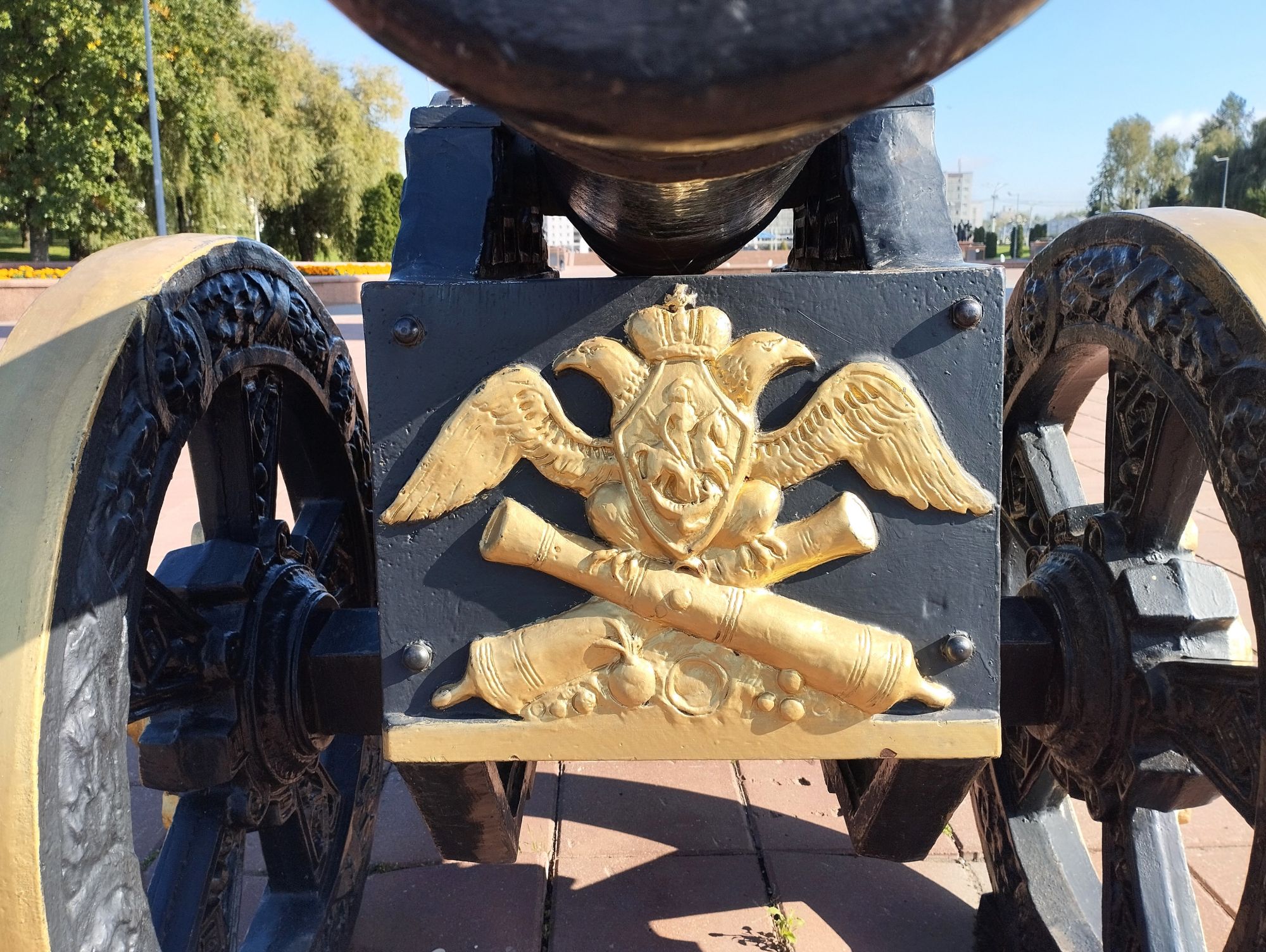 6 октября 2023 Описав круг возле Амфитеатра мы пошли по набережной к новой локации, которую хотел посмотреть мой муж - Площади Победы. И опять - зелень, зелень, зелень.... Шли, любуясь красивыми видами. Дошли вот до такого памятника. Это памятник воинам - десантникам. Молодой парень - собирательный образ десантника, рядом — символический купол парашюта, на котором располагаются эмблема ВДВ и барельефы генералов Ивана Лисова и Героя Советского Союза Василия Маргелова. Прокатились на колесе обозрения и посмотрели на Витебск сверху. Фото мутноватые, и их мало, потому что сейчас все ж помешаны на безопасности и колеса обозрения очень скучные - тебе его открывают, закрывают, все вокруг закрыто стеклами... Эх, то ли в моем детстве - вскакиваешь в дверцу, сам закрываешь за собой защелку (очень сомнительную и хлипкую, тебя обдувает ветерок, а еще в центре кабинки колесо, которое можно было покрутить и кабинка начиналась крутиться тоже... Романтика!!!!! И вот, наконец, мы дошли до того, чего хотели. Большое уважение и поклон беларусам за память. Они помнят, как страна пострадала от фашистов, бережно хранят память о подвиге и этих кровопролитных годах. Все чисто, ухожено, отшлифовано. Мой муж нафоткался за техникой, я как-то желания с таким фотографироваться не испытываю - они тянут в себе негативную энергетику, ИМХО... Больше мне импонировали пушки войны 1812 года. Наверное дело в том, что Великую Отечественную войну мы пережили - пусть не мы, но бабушки и дедушки, на рассказах которых я, например, выросла и все четко представляю. А война 1812 года уже не ощущается как война, скорее как страница учебника истории или художественной книги. Ну и, не побоюсь этого слова - главный памятник Витебска - мемориальный комплекс "Освободителям Витебска - советским воинам, партизанам и подпольщикам". Он отличается не только монументальностью, величием и красотой, но и богатой духовной основой, трагическая суть которой своими корнями уходит в кровавые годы Великой Отечественной войны. 1974 году. Тогда на главной городской площади Победы возвысился символичный мемориальный комплекс "Три штыка" (как я поняла, это не то чтобы официальное название, а народное). Основной монумент представляет собой 3 трапециевидных пилона-обелиска высотой 56 метров, сужающихся кверху, объединенных на высоте 5 метров трехгранным монолитным фризом. На внутренних гранях обелиска – мемориальные надписи, а скульптурные изображения на фризе отражают три главных темы памятника: «Воины», «Партизаны» и «Подпольщики». Именно этим трем силам, одержавшим победу в Великой Отечественной войне, посвящен этот монумент. Под ним горит Вечный огонь. К главному монументу ведут два бассейна длиной по 85 метров и шириной 10 метров с четырьмя бурлящими струями в каждом. Они стали символом слёз, пролитых за годы войны. И два памятника - один символизирует начало войны, уход на фронт и зарождение партизанского движения. Второй - наступление советской армии и освобождение от власти немецко-фашистких захватчиков. На самой площади стоит длинный 9-этажный дом. Сверху надпись «Подвиг советского народа бессмертен!». Я удивилась, узнав, что это обычный жилой дом. От площади мы направились обратно к гостинице, потому что скоро сказка сказывается, но не скоро дело делается, уже было часов пять. Шли вот по такой аллейке Над ней висели