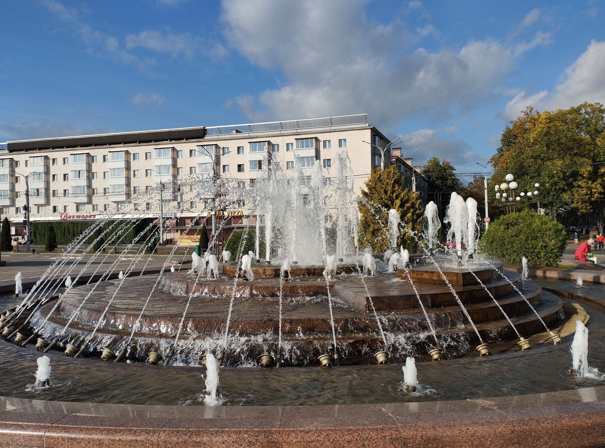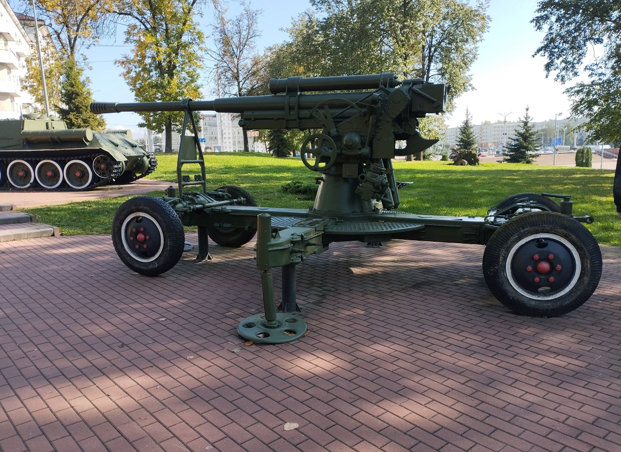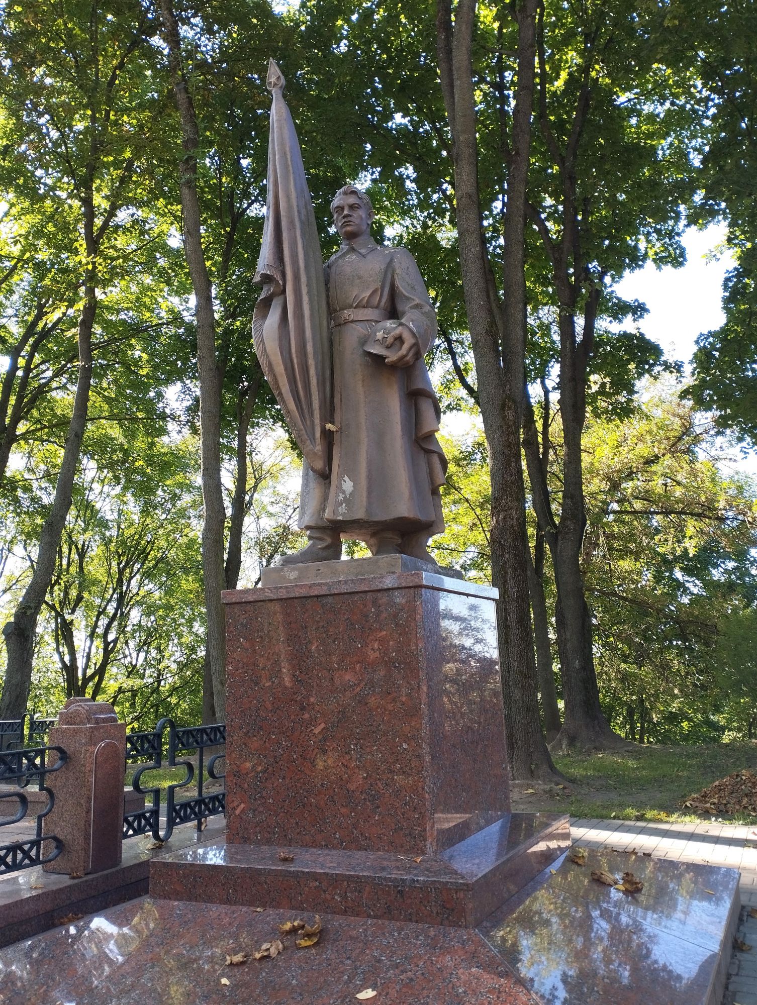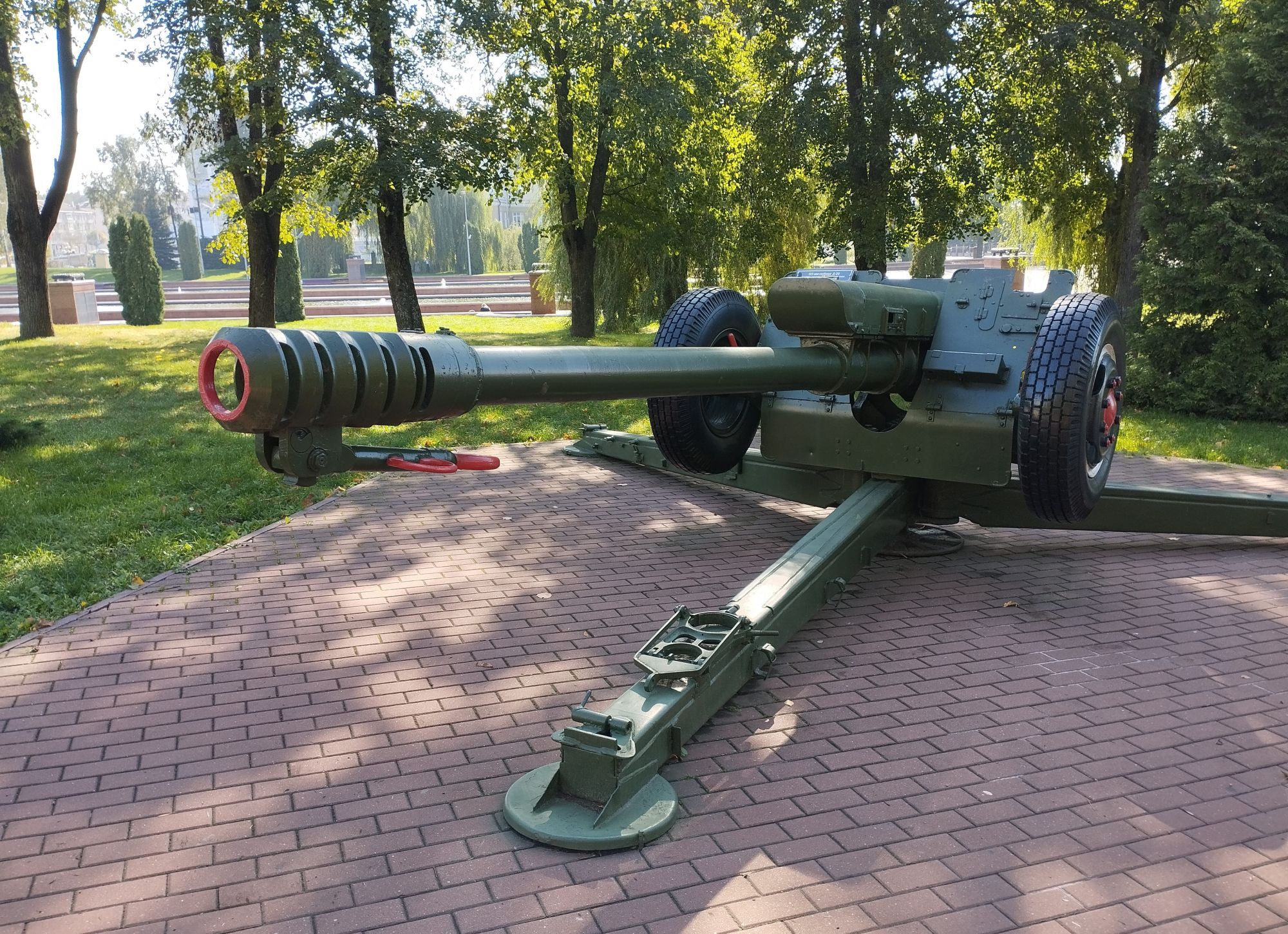 6 октября 2023 Описав круг возле Амфитеатра мы пошли по набережной к новой локации, которую хотел посмотреть мой муж - Площади Победы. И опять - зелень, зелень, зелень.... Шли, любуясь красивыми видами. Дошли вот до такого памятника. Это памятник воинам - десантникам. Молодой парень - собирательный образ десантника, рядом — символический купол парашюта, на котором располагаются эмблема ВДВ и барельефы генералов Ивана Лисова и Героя Советского Союза Василия Маргелова. Прокатились на колесе обозрения и посмотрели на Витебск сверху. Фото мутноватые, и их мало, потому что сейчас все ж помешаны на безопасности и колеса обозрения очень скучные - тебе его открывают, закрывают, все вокруг закрыто стеклами... Эх, то ли в моем детстве - вскакиваешь в дверцу, сам закрываешь за собой защелку (очень сомнительную и хлипкую, тебя обдувает ветерок, а еще в центре кабинки колесо, которое можно было покрутить и кабинка начиналась крутиться тоже... Романтика!!!!! И вот, наконец, мы дошли до того, чего хотели. Большое уважение и поклон беларусам за память. Они помнят, как страна пострадала от фашистов, бережно хранят память о подвиге и этих кровопролитных годах. Все чисто, ухожено, отшлифовано. Мой муж нафоткался за техникой, я как-то желания с таким фотографироваться не испытываю - они тянут в себе негативную энергетику, ИМХО... Больше мне импонировали пушки войны 1812 года. Наверное дело в том, что Великую Отечественную войну мы пережили - пусть не мы, но бабушки и дедушки, на рассказах которых я, например, выросла и все четко представляю. А война 1812 года уже не ощущается как война, скорее как страница учебника истории или художественной книги. Ну и, не побоюсь этого слова - главный памятник Витебска - мемориальный комплекс "Освободителям Витебска - советским воинам, партизанам и подпольщикам". Он отличается не только монументальностью, величием и красотой, но и богатой духовной основой, трагическая суть которой своими корнями уходит в кровавые годы Великой Отечественной войны. 1974 году. Тогда на главной городской площади Победы возвысился символичный мемориальный комплекс "Три штыка" (как я поняла, это не то чтобы официальное название, а народное). Основной монумент представляет собой 3 трапециевидных пилона-обелиска высотой 56 метров, сужающихся кверху, объединенных на высоте 5 метров трехгранным монолитным фризом. На внутренних гранях обелиска – мемориальные надписи, а скульптурные изображения на фризе отражают три главных темы памятника: «Воины», «Партизаны» и «Подпольщики». Именно этим трем силам, одержавшим победу в Великой Отечественной войне, посвящен этот монумент. Под ним горит Вечный огонь. К главному монументу ведут два бассейна длиной по 85 метров и шириной 10 метров с четырьмя бурлящими струями в каждом. Они стали символом слёз, пролитых за годы войны. И два памятника - один символизирует начало войны, уход на фронт и зарождение партизанского движения. Второй - наступление советской армии и освобождение от власти немецко-фашистких захватчиков. На самой площади стоит длинный 9-этажный дом. Сверху надпись «Подвиг советского народа бессмертен!». Я удивилась, узнав, что это обычный жилой дом. От площади мы направились обратно к гостинице, потому что скоро сказка сказывается, но не скоро дело делается, уже было часов пять. Шли вот по такой аллейке Над ней висели