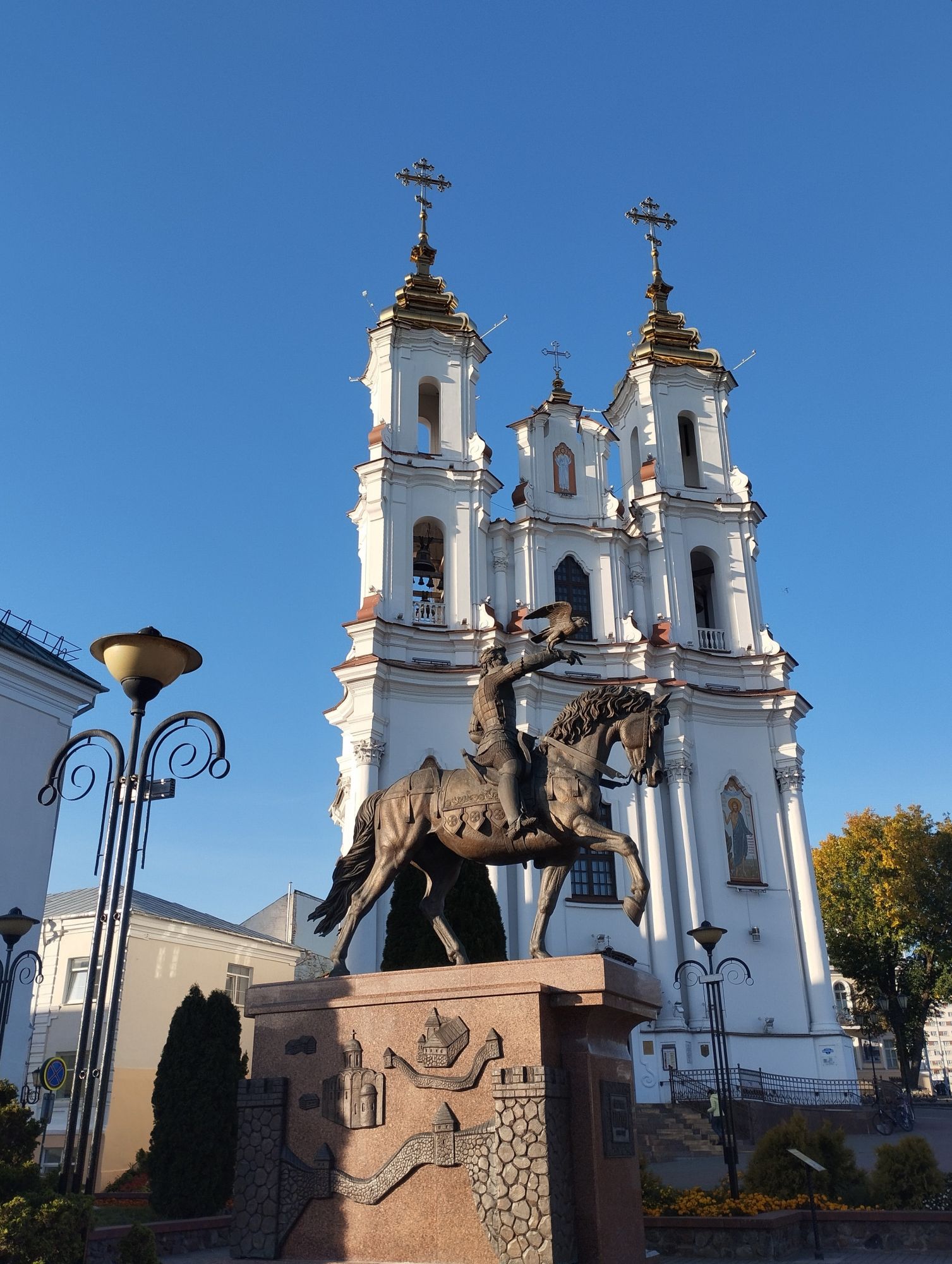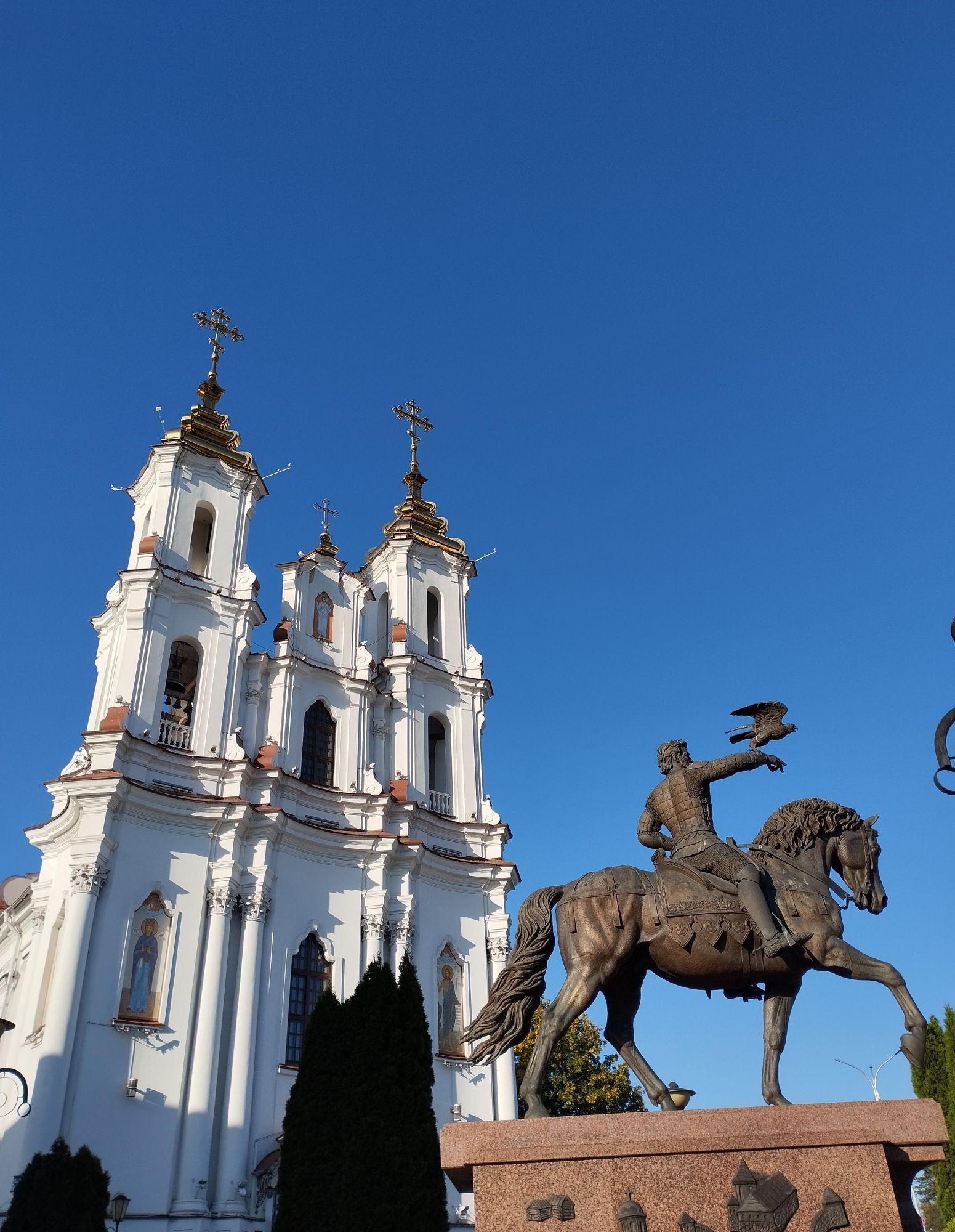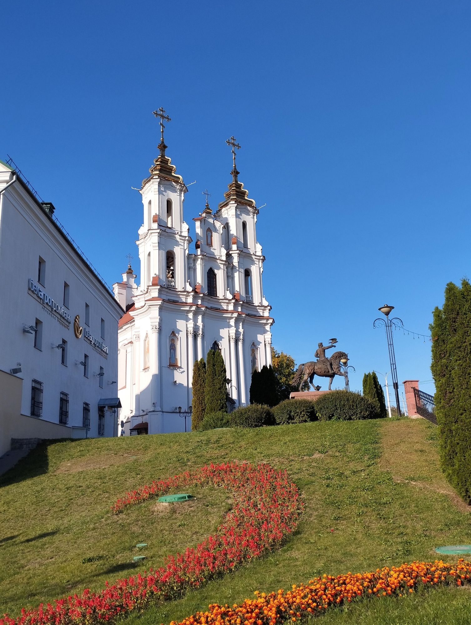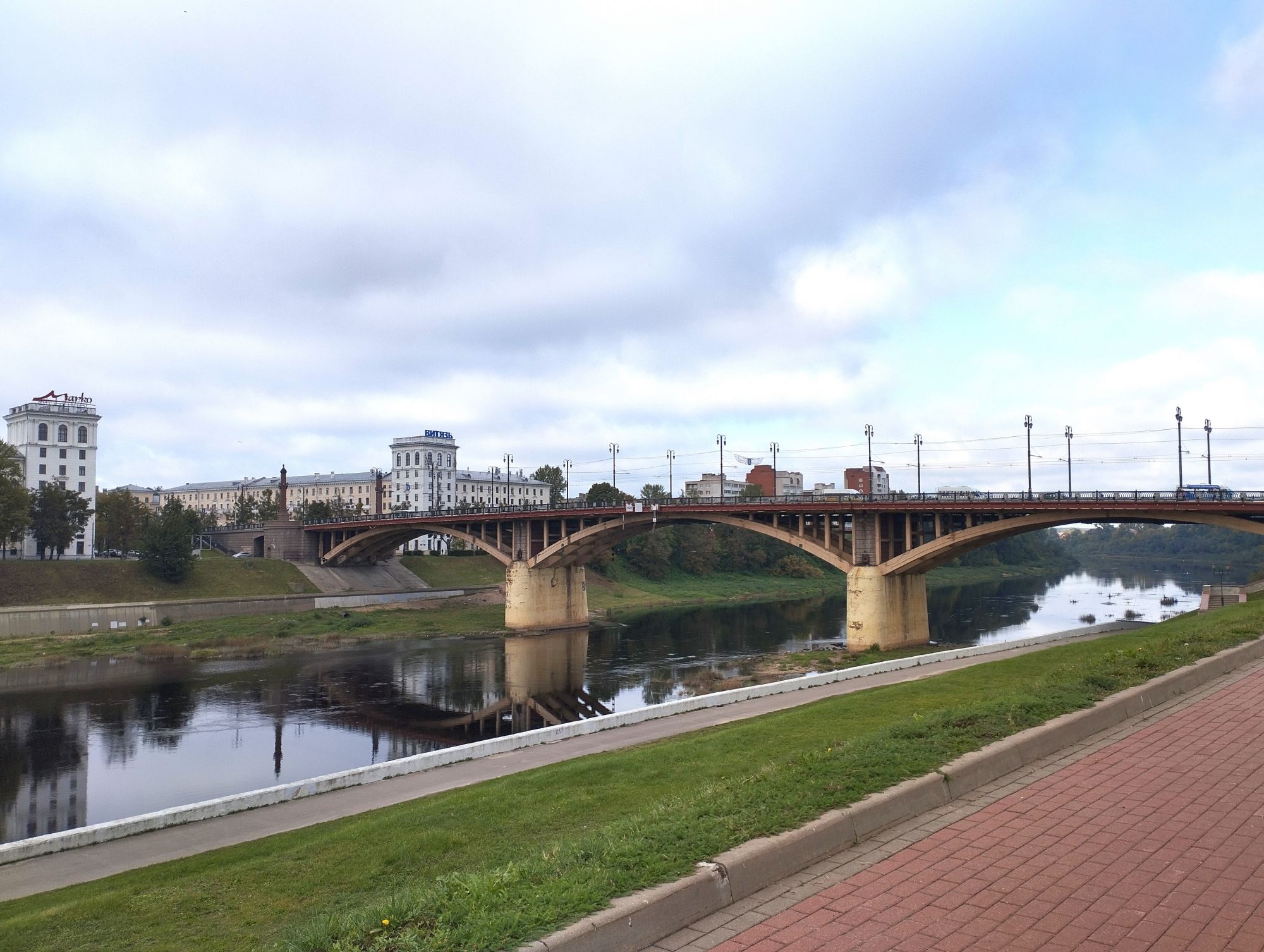 9 октября 2023 В общем, в третий раз у меня слетели сообщения, поэтому дальше кратко, видимо, не судьба мне нормально написать.. На обратном пути мы увидели фонтан "Слияние трех рек". Мой муж назвал его "Конкурс мокрых маек". Ратушу. Мы хотели взобраться на нее, но пускают только с экскурсоводом, экскурсия только что ушла, ждать 40 минут мы не стали, поэтому из Ратуши фото мало. Последнее фото - это герб Витебска. Образ Иисуса Христа на гербе указывает на большую роль, которую играла религия в городе. Тем не менее, под образом спасителя изображен обнаженный меч, который указывает на храбрость горожан и их готовность стать на защиту родной земли.Примечательно, что до 2004 года меч, который расположен под ликом Христа был кровавым. Но в 2009 году было принято решение сделать его менее агрессивным и перекрасить в серебряный цвет. Рядом с Ратушей стоит Свято- Воскресенская церковь или Храм Воскресения Христова, и памятник князю Ольгерду. На сегодня эта композиция является самым большим конным памятником страны. В январе 1936 года Храм Воскресения Христова, корни которого восходят к 16 веку, был разрушен по постановлению городских властей. Мотивировка - «мешала движению городского транспорта». Характерно, что через несколько лет, в 1940 году, разрушителей храма обвинили в «троцкизме» и «перегибах», а саму церковь в очередной раз признали безвозвратно утерянным памятником архитектуры. Хотя даже во времена нашествия Наполеона она устояла. Существует рассказ о том, что Воскресенская церковь очень понравилась Наполеону во время оккупации Витебска его войсками в 1812 году, почему избежала разграбления. Вместо этого в ней разместился лазарет. Восстановили ее только в 2009 году. Князю Ольгерду (по-беларуски: Альгерду) установили памятник в Витебске, потому что он, будучи князем витебским (женился на витебской княжне Марии), превратил захудалую деревеньку в мощный город-замок с каменными стенами и каменными церквями, фактически определив его судьбу в будущем как сначала центра Витебского воеводства, затем - губернского, а затем - областного центра. Ну и немного видов с моста реки Витьбы Lorans, Ксен40, Путешественница и 22 других сказали спасибо Поделиться сообщением Ссылка на сообщение