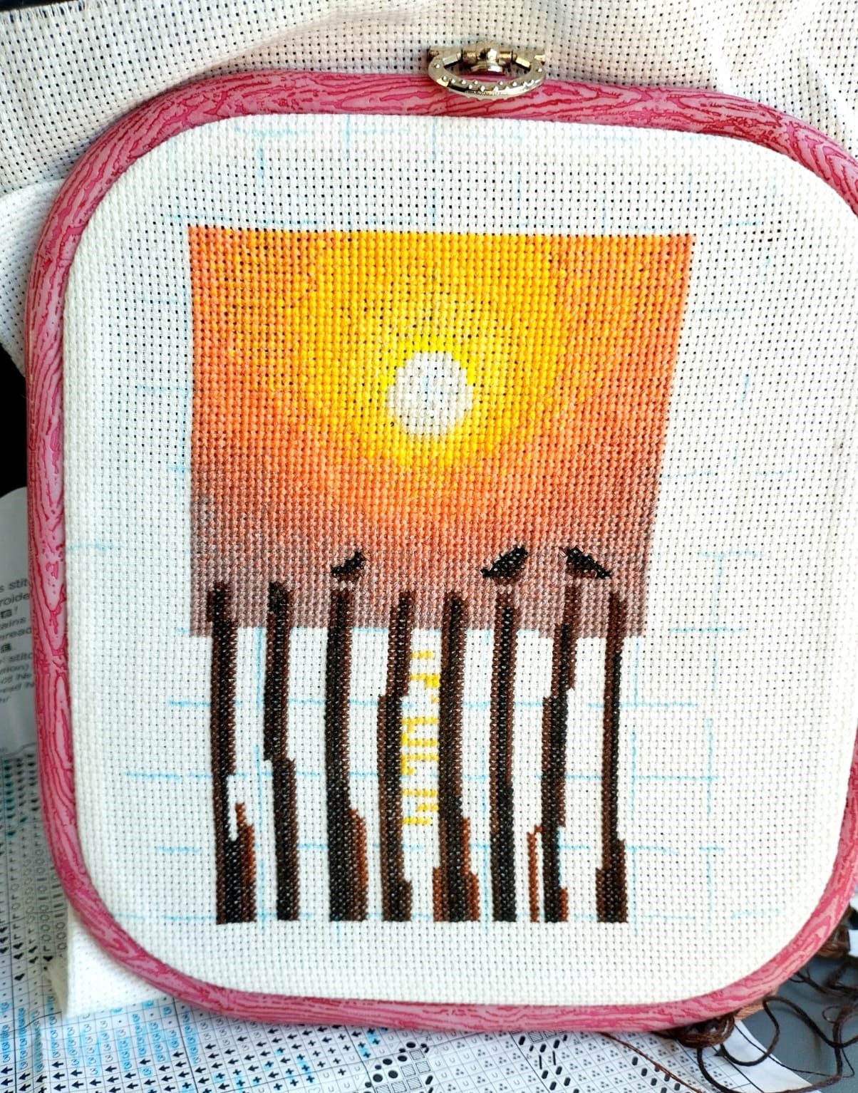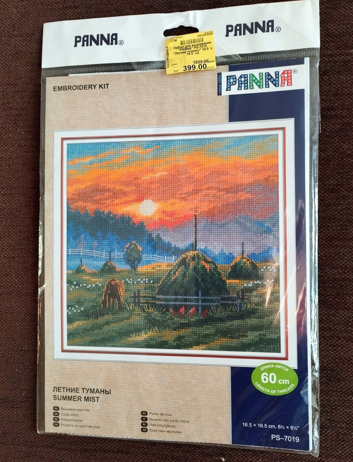 20 июня 2024 Всем привет! С момента моего последнего отчета минуло больше месяца, очень незаметно бежит время, особенно летом. Вышивать вообще некогда. Много работы, жара и огород - три фактора, тормозящие вышивку. Ну и гуляем много, конечно же - 15-18 тысяч шагов в день - это запросто. А гуляем мы через вот такие заросли, которые есть прямо возле домов, с люпинами разных цветов. Хоть вышиваю и немного, но за месяц есть что показать и вышивального. 1. RTO C421, Силуэты заката - ЗАКОНЧЕН. Процесс классный, простой, быстрый, весь вышивается крестиком, полукреста нет вообще. Немного напрягают дробные крестики у птичек - на канве их делать сложно, я кое-как ногтями их выровняла, но все равно близко лучше не смотреть, и бэк в середину клетки. Но зато бэка мало, внизу трава им делается и перемычка между забором. Пока я полна энтузиазма начать следующий закатный набор РТО - не знаю даже, что это будет, "Тропинка к закату" или "Когда садится солнце" Более яркий, конечно, с елками, но, поскольку идет лето, то хочется моря... В общем, пока думаю. 2. Швецова Анастасия (Raccoon) #30882, Пряник Фонарик - ЗАКОНЧЕН Вообще, мне кажется, очень неодооцененный дизайнер! У неё эта серия пряничных игрушек такая классная, я вышиваю и не могу остановиться. У меня в этом году тяга к продолжениям серий какая-то, обычно вышью один набор из серии и переключаюсь на другое, а тут вышиваю и вышиваю. И не надоедает. Так что выбираю следующий пряник. 3. Швецова Анастасия (Raccoon) #30875, Объемная игрушка Пряник Елочка - доделан. @Татуся, можно и это фото в гаечку, она уже зеленая) Я настолько увлеклась пряниками, что даже умудряюсь их оформлять - заказала коричневый фетр, коричневый шнур, наклеиваю и вырезаю. Для меня это нетипично, обычно наборы на пластике я вышиваю и бросаю невырезанные. 4. МП Студия Р-491, Цветочная симфония - один цветок готов. @Татуся, если можно, то эти две фото в начало процесса загрузи, пожалуйста! Нашла случайно.) Пожалуй, для пластикового процесса этот процесс не самый простой - много смен цветов ниток, смесовые цвета, полукрестики в две и в одну нити. /Я даже накосячила - справа, где много зелени, на одну клетку ошиблась. Но распускать не стала, кое-как свела в кучу, вроде косяк не заметен... Ну что, с вышивкой все. Сейчас будет вторая часть Мерлезонского балета - покупки. Хоть времени у меня и мало, но то, что не надо, я на форуме вижу. И, конечно, увидела про распродажу Панны. Вообще-то мне ничего не надо было. Вот так, чтобы я о чем-то мечтала. Да и Леонардо у нас нет, а на сайте у них я заказывать не хотела. долго собирают, что-то уже разобрали, да и не надо мне было, говорю же, ничего вот прямо очень. А не зайти ли мне в Иголочку - подумала я, ну просто посмотреть, ведь в прошлый раз распродажные наборы в Иголочке тоже были... Сказано - сделано, хоть Иголочка мне совсем не по пути, на обеде я собралась и покатила... Итог неутешителен для моей жабы. Не знаю, почему мне от Панны ничего не надо было. Вот эти наборы мне сразу понадобились!Я еще и огорчилась, что в распродаже только Летние туманы - а где остальная серия? Они ж наверное, все снимаются? В общем, подумав, что я что-то пропустила и нужно пойти поискать остальные наборы со стогами, я отправилась в Иголочку еще раз через несколько дней. Тех наборов не было, но зато ко мне прилепились еще две штуки! Они сами, не знаю как В общем, борьба с хомякозом мною бесславно проигра