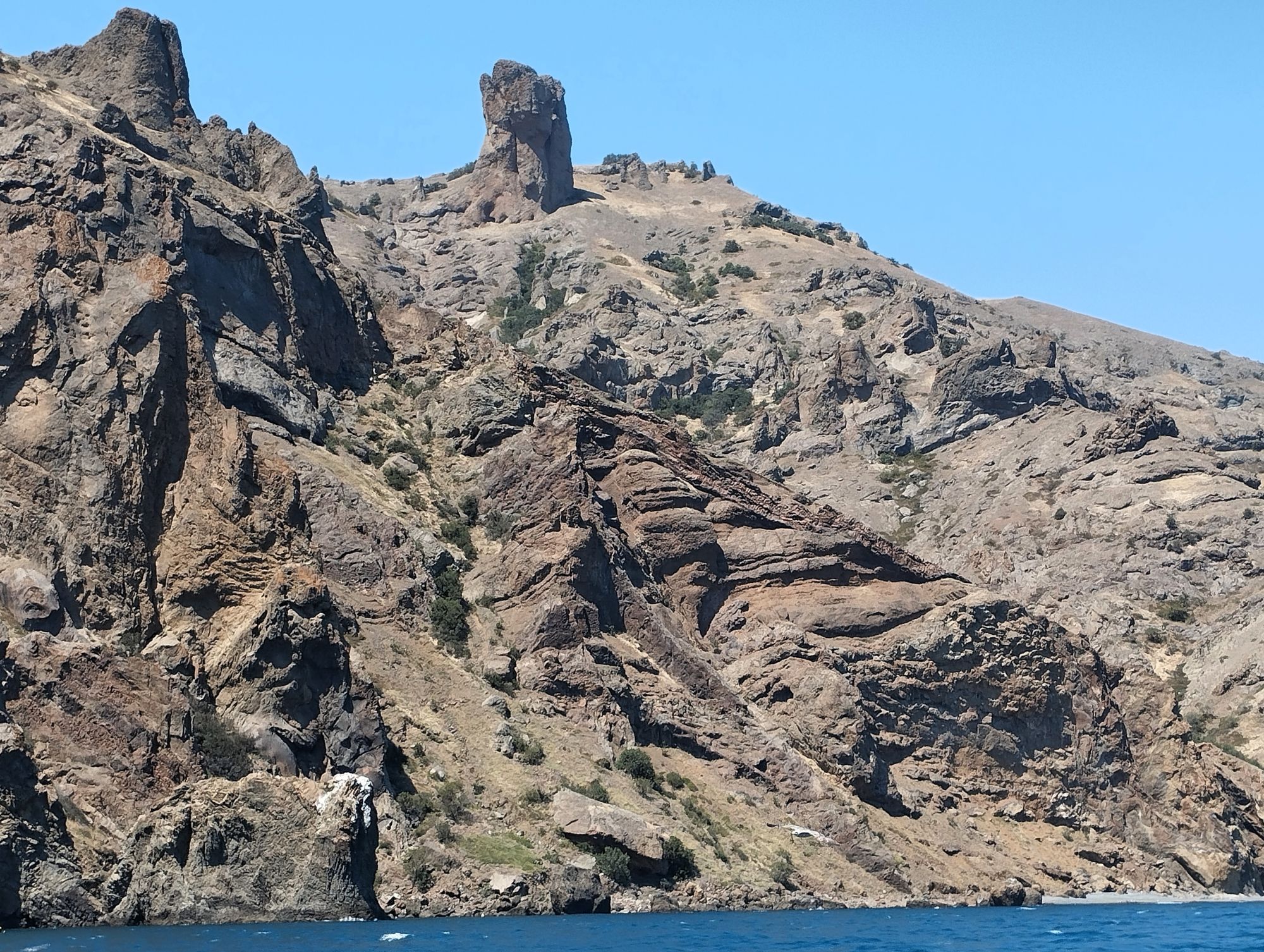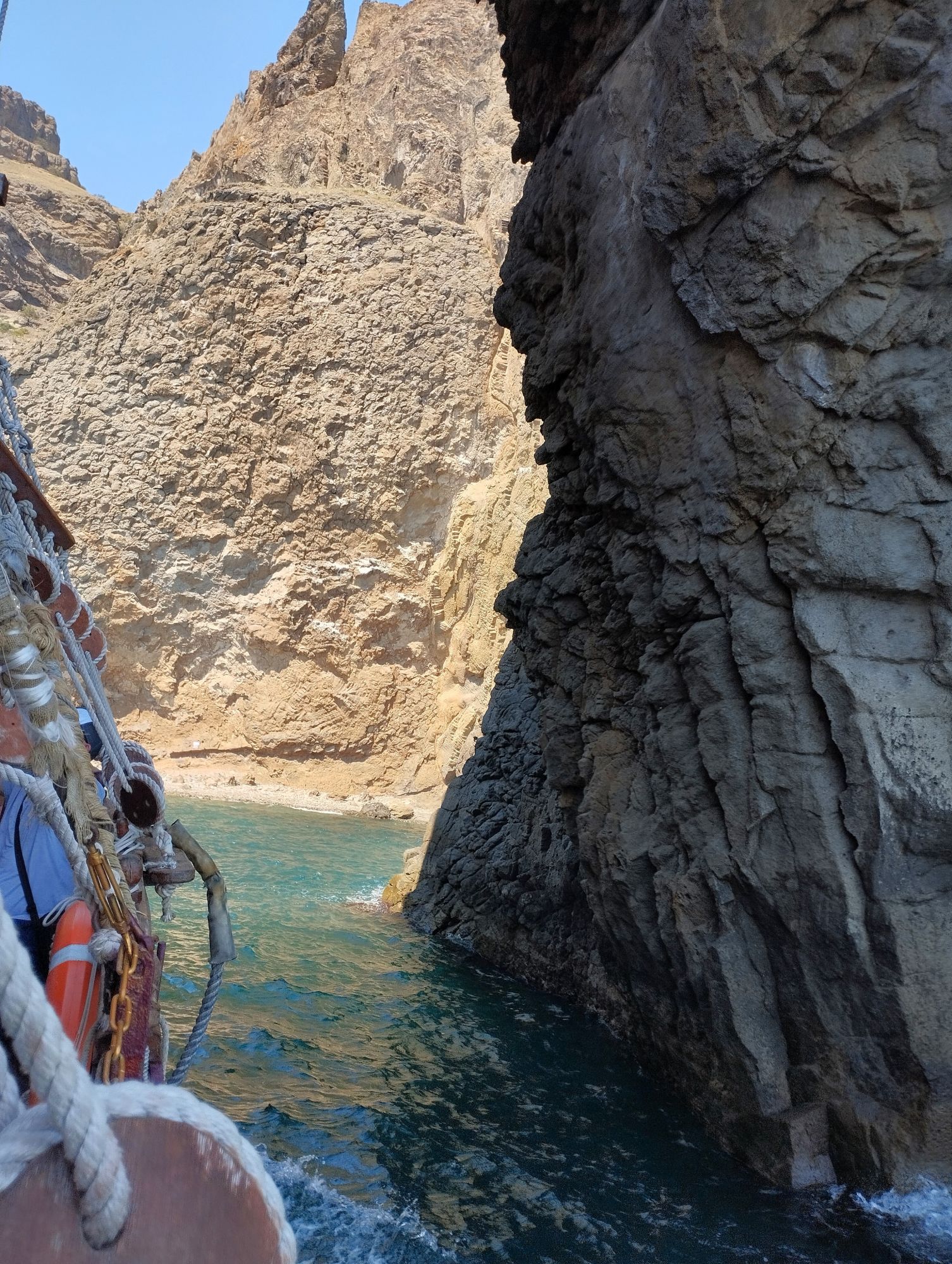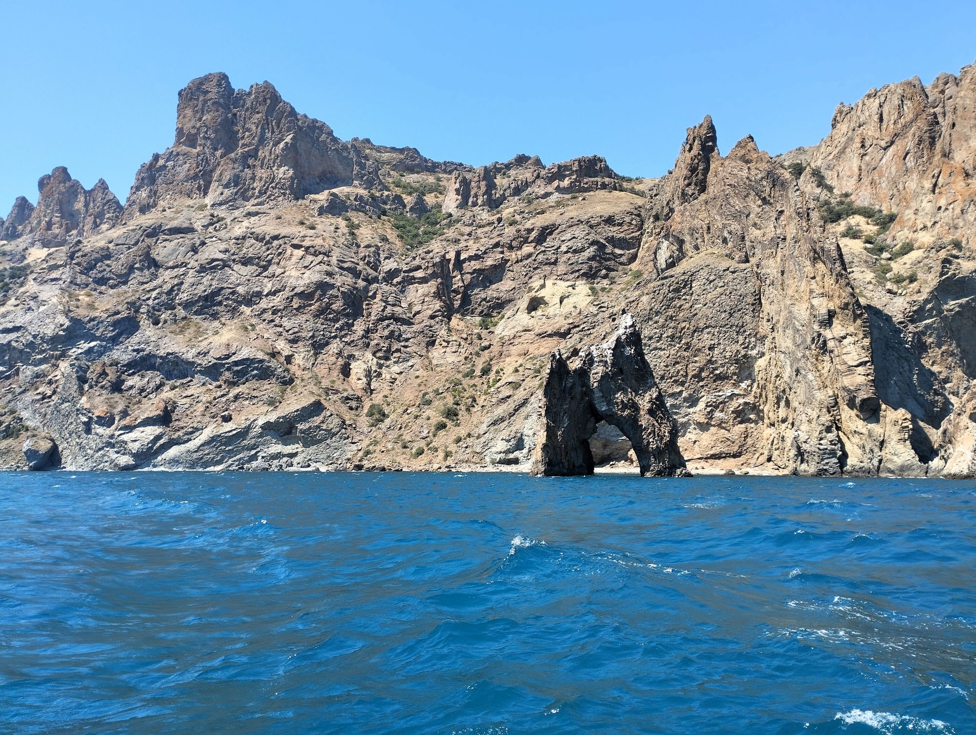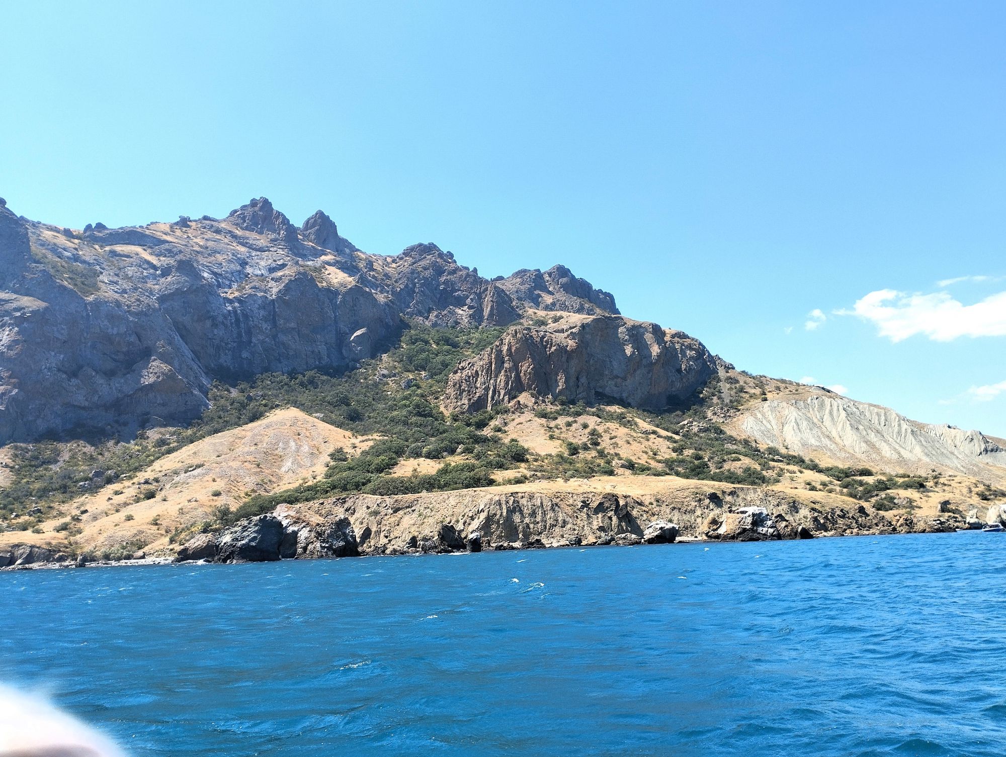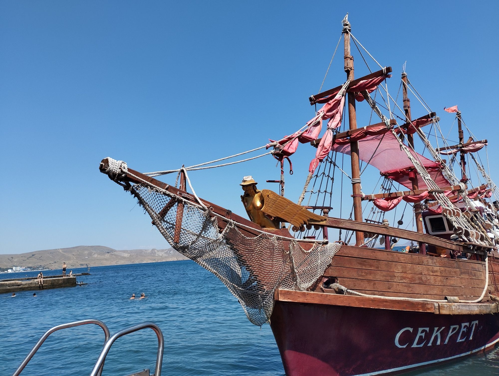 27 августа 2024 Ну и последняя точка Крыма, в которой мы побывали и о которой я вам хочу рассказать - это Коктебель. Туда мы отправились своим ходом. Коктебель находится в 19 километрах от Феодосии, туда ходит много автобусов, добираться около получаса. Цена билета - 95 рублей с человека. Когда я подбирала места для отдыха я рассматривала и Коктебель. Там мне по картинкам понравилось - горы, море.. Но отказалась от него по двум причинам. Первая причина - грязное море.Что бы кто не говорил, но ротовирус, именуемый "коктебелочка" , водится именно там. В Коктебеле беда со сточными водами, которые идут в море. Я прямо видела в роликах на ютубе, как грязные речушки текут в море, и в нескольких десятках метров купаются люди. Проваляться несколько дней с ротовирусом я была не готова. ладно я, а вот мой муж бы подцепил 100%, знаю я его. Вторая причина в- в этом году набережную Коктебеля стали ремонтировать и много набережная конкретно разрыта.. Может, как раз, и систему канализации меняют, не знаю. У меня была идея фикс - сплавать посмотреть на Золотые ворота, поэтому аккурат в мой день рождения мы с мужем отправились в путь, в Коктебель. Вот тут я почуяла настоящий юг! Горы, море, цикады как обезумевшие стрекочут, цветочки растут! В общем, мои выводы - настоящий южный отдых начинается с Коктебеля. Поэтому он и называется так романтично - «Кок-тепе-эль» – «Край голубых вершин». И да, тут уже тем, у кого суставы болят, надо задуматься - ехать или нет, потому как местность горная, до пляжа нужно хорошенечко спуститься. Пляж галечный. Почти до конца 19 века о Коктебельской долине знали лишь геологи и немногие путешественники, которым довелось побывать в восточном Крыму. В те времена долина принадлежала профессору Эдуарду Андреевичу Юнге. Вскоре он задумал превратить засушливую и дикую Коктебельскую долину в цветущий сад. Однако собственных сбережений на это не хватило, и Юнге начал продавать землю. Так постепенно поселок застраивался домами, слава о нем стала распространяться и теперь он - один из самых популярных курортов Крыма. Наиболее известным Коктебель стал благодаря Максимилиану Волошину — выдающемуся русскому поэту. Но я вам много про Коктебель не напишу, потому что посмотреть мы успели мало что. Все-таки, несмотря на то, что поселок небольшой - там все равно протяженность порядочная, мы пошли в сторону вулкана Кара-Даг, а основные достопримечательности, как я поняла, в другой стороне, а там с горы нужно спускаться и ремонт набережной идет, поэтому марш-бросок от Кара-Дага до Мыса Хамелеон у нас не получился. Кстати, окончание ремонта запланировано на декабрь 2025 года, так что отдых в Коктебеле и в следующем году под вопросом. Но мы ехали, чтобы, собственно, посмотреть на Кара-Даг и мы на него посмотрели с кораблика. Кара-Даг - это потухший вулкан. Самая высокая вершина Кара-Дага – гора Святая (576 метров). Однако другие названия скал и вершин носят совсем не святые названия: скала и гора Чертов палец, ущелья Гяур-Бах и Чертов камин. Говорят, когда-то потухший вулкан стал домом для змея-гиганта. Днем он ползал по горячим отвесным скалам, а ночью плавал в море. Монстр с черной чешуей и гребнем на спине охотился на дельфинов и нападал на моряков. Змей поднимал волны и топил корабли.Турецкий султан решил защитить свои торговые суда и приказал янычарам поймать чудовище, но не