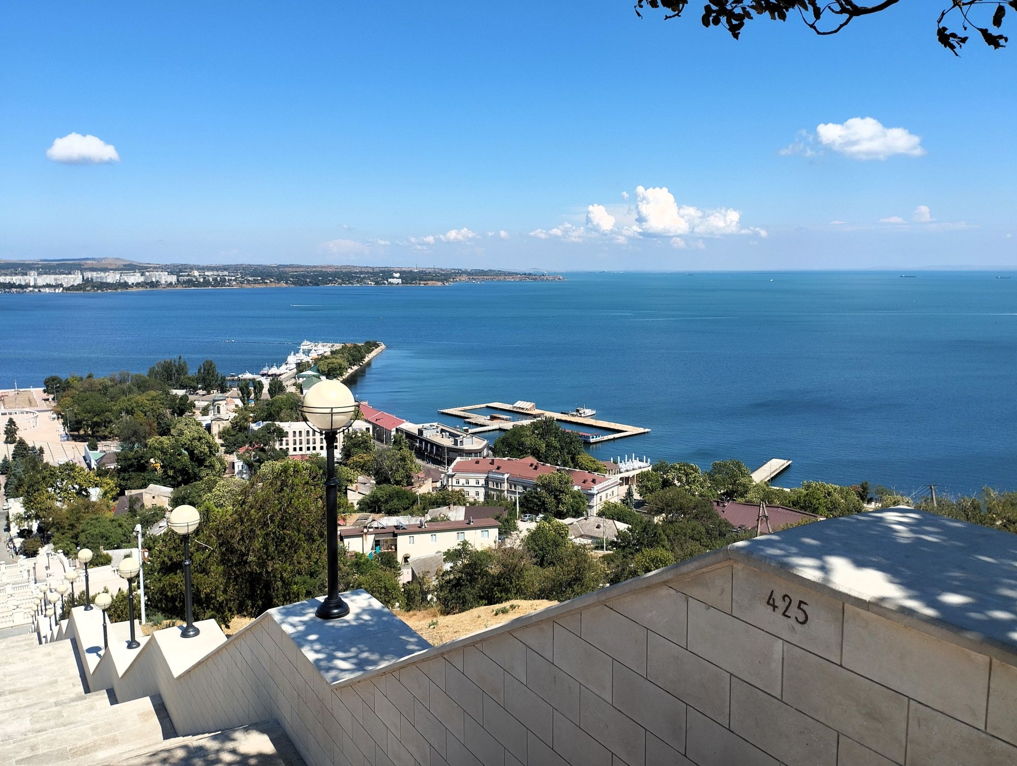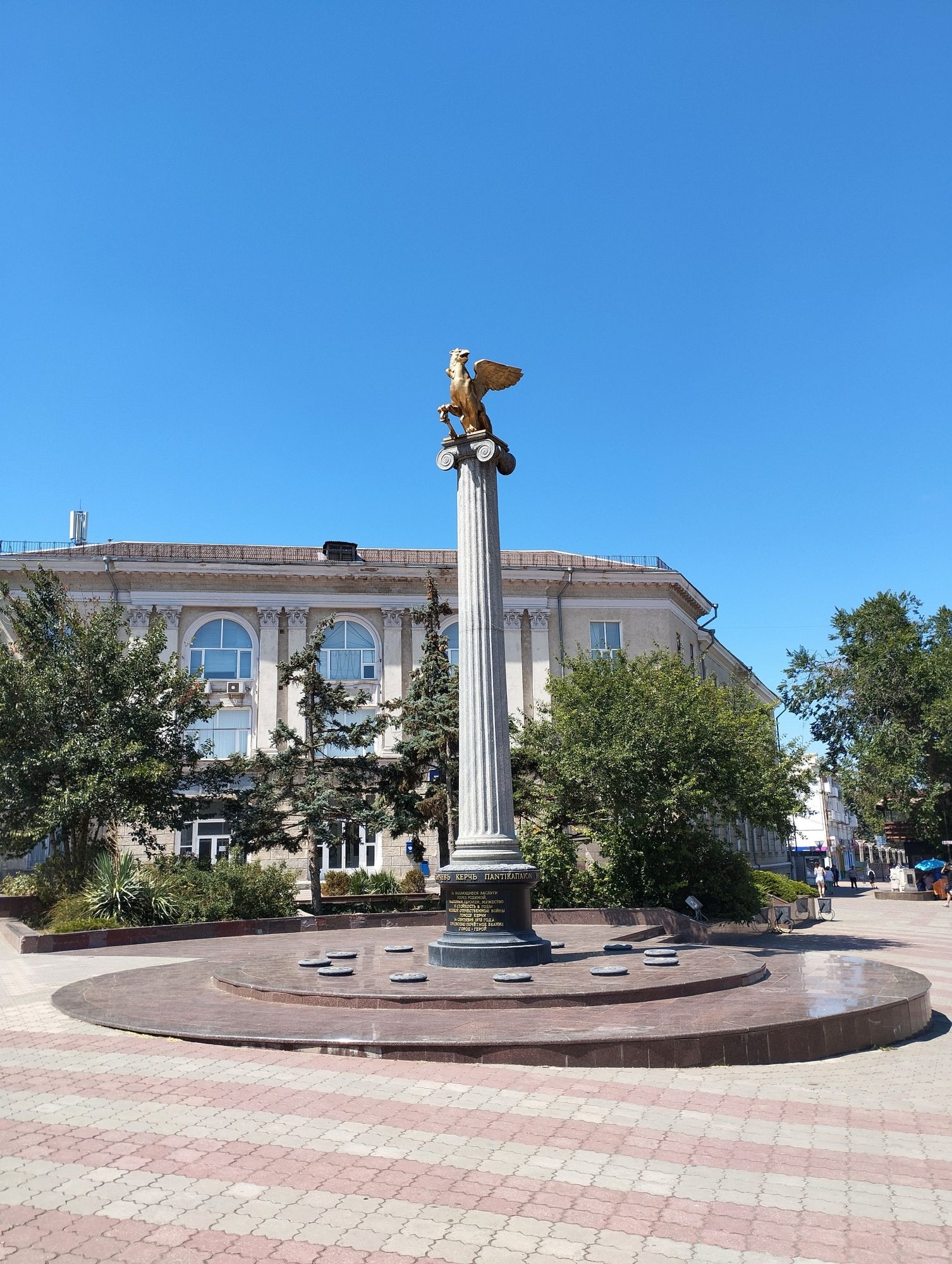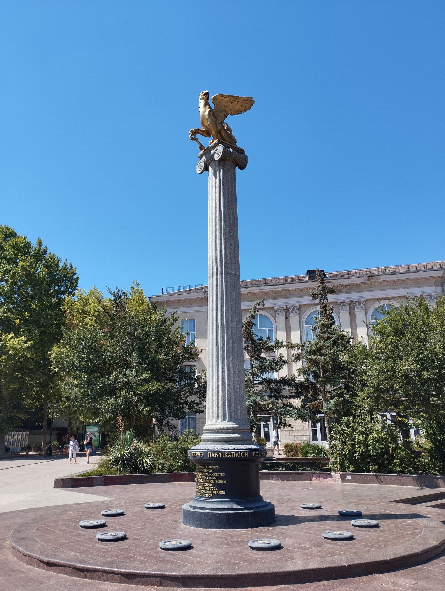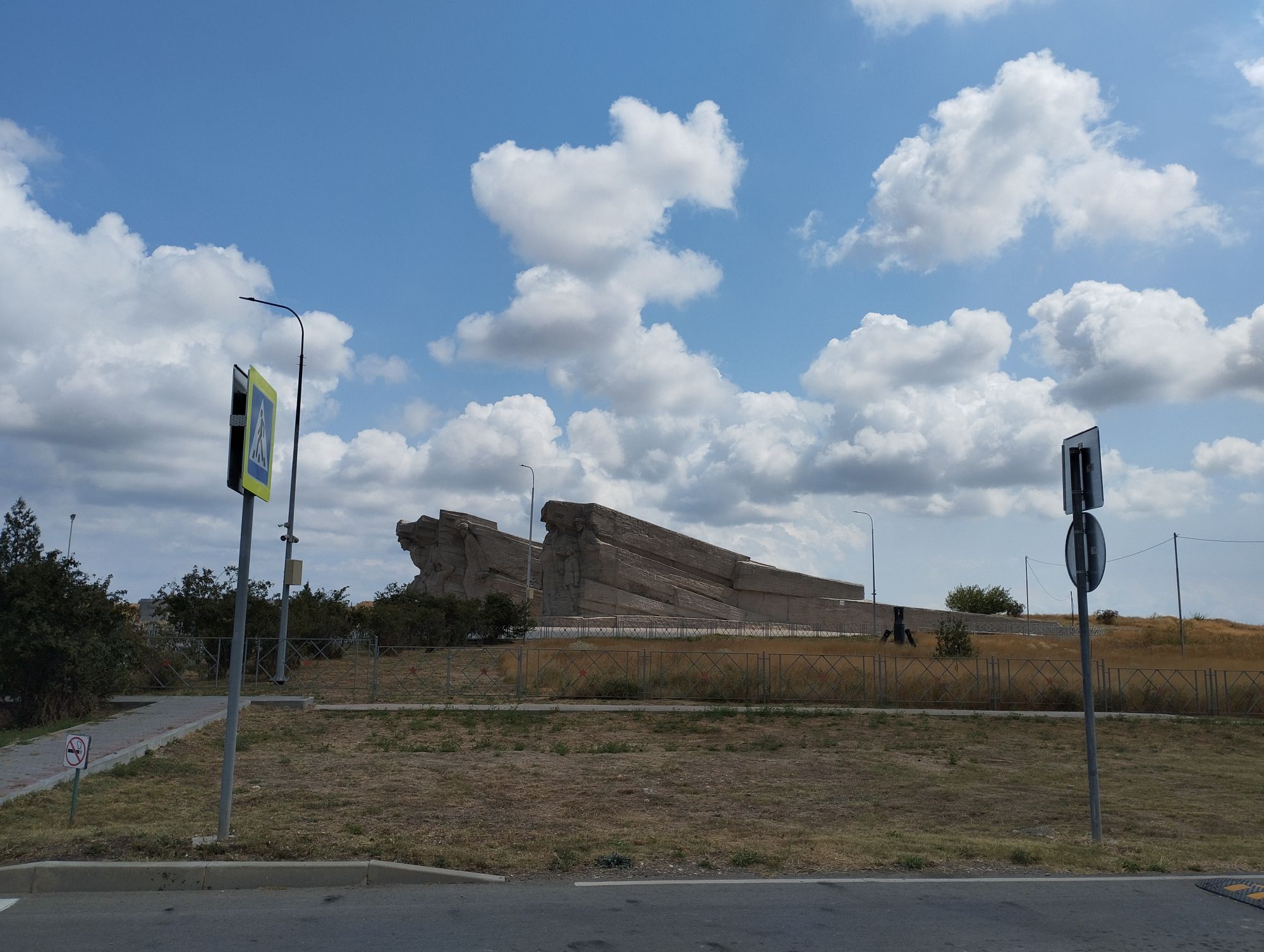 27 августа 2024 В завершении экскурсии в Керчи мы побывали на одном из ее символов и известных достопримечательностей - горе Митридат. Хорошо. что грозу мгновенно куда-то сдуло - вот только что туча была и тут же ясное небо - я так и не поняла, куда тучи делись в итоге История горы начинается с того времени, когда греческие поселенцы обосновались на Керченском полуострове и основали здесь несколько городов. Самым большим античным городом был Пантикапей. Его построили на склонах самого высокого холма на берегах Керченского пролива, чтобы город был неуязвим для неприятеля и затопления. Самым известным правителем Пантикапея считается царь Митридат, о подвигах и богатствах которого до сих пор ходят легенды. За годы бесчисленных завоевательных войн царь разбогател настолько, что не знал, куда девать свое богатство. По одной из легенд во время пыток царь заливал в глотки врагам раскаленное золото. Но судьба отвернулась от завоевателя и он погиб в Пантикапее, когда враги уже вплотную приблизились к городу. В честь одного из могущественных и богатых правителей античных времен и была названа гора, где нашел свою смерть царь. На склонах Митридатской горы до сих пор сохранились развалины древнего города: видны развалины зданий и античных храмов, колонны здания городского совета — Пританея, очертания улиц города. Несметные сокровища Митридата до сих пор не найдены. Исторические записки о Митридате упоминают о богатстве царя, которое он спрятал в подземельях горы. На протяжении нескольких веков «черные археологи» пытаются обнаружить сокровища царя: копатели мечтают найти коня из золота, вылитого в натуральную величину. На месте города Пантикапея до сих пор керчане и гости города время от времени находят античные монеты, обломки древних амфор и другие исторические артефакты. Здесь и сейчас ведутся археологические раскопки, а коллекции найденных артефактов представлены в Эрмитаже. В годы войны на горе Митридат происходили одни из самых кровопролитнейших боев: в ходе наступательных и оборонительных операций территорию горы по очередности занимали то фашистские, то советские войска. Именно здесь в 1943 г. водрузили красное знамя, которое являлось символом окончания боев за город. В честь героев, погибших на Керченской земле, на вершине Митридата был возведен Обелиск Славы. Интересно, что он стал одним из первых памятников ВОВ, воздвигнутых на территории Советского Союза. Его открытие состоялось уже в октябре 1944 года, когда Великая Отечественная война еще ее была завершена. Обелиск Славы возвышается над городом – его видно практически из любой точки Керчи. Это каменная 24-метровая светло-стального цвета стелла, которую с трёх сторон окружают три зенитных орудия. В мемориальный комплекс, посвященный героям Великой Отечественной войны, входит также Вечный Огонь. Здание, в котором горит Вечный Огонь, расположено на самой высокой точке горы, и в ночное время огонь видно издалека. Обелиск Славы – один из главных символов Керчи, который особо почитаем местными жителями. Ежегодно в канун празднования Победы здесь проводится факельное шествие и театрализованное представление, посвященное событиям ВОВ. А на 9 мая на площади возле мемориального комплекса проводятся праздничные мероприятия: тысячи керчан и гостей города приходят сюда, чтобы поч