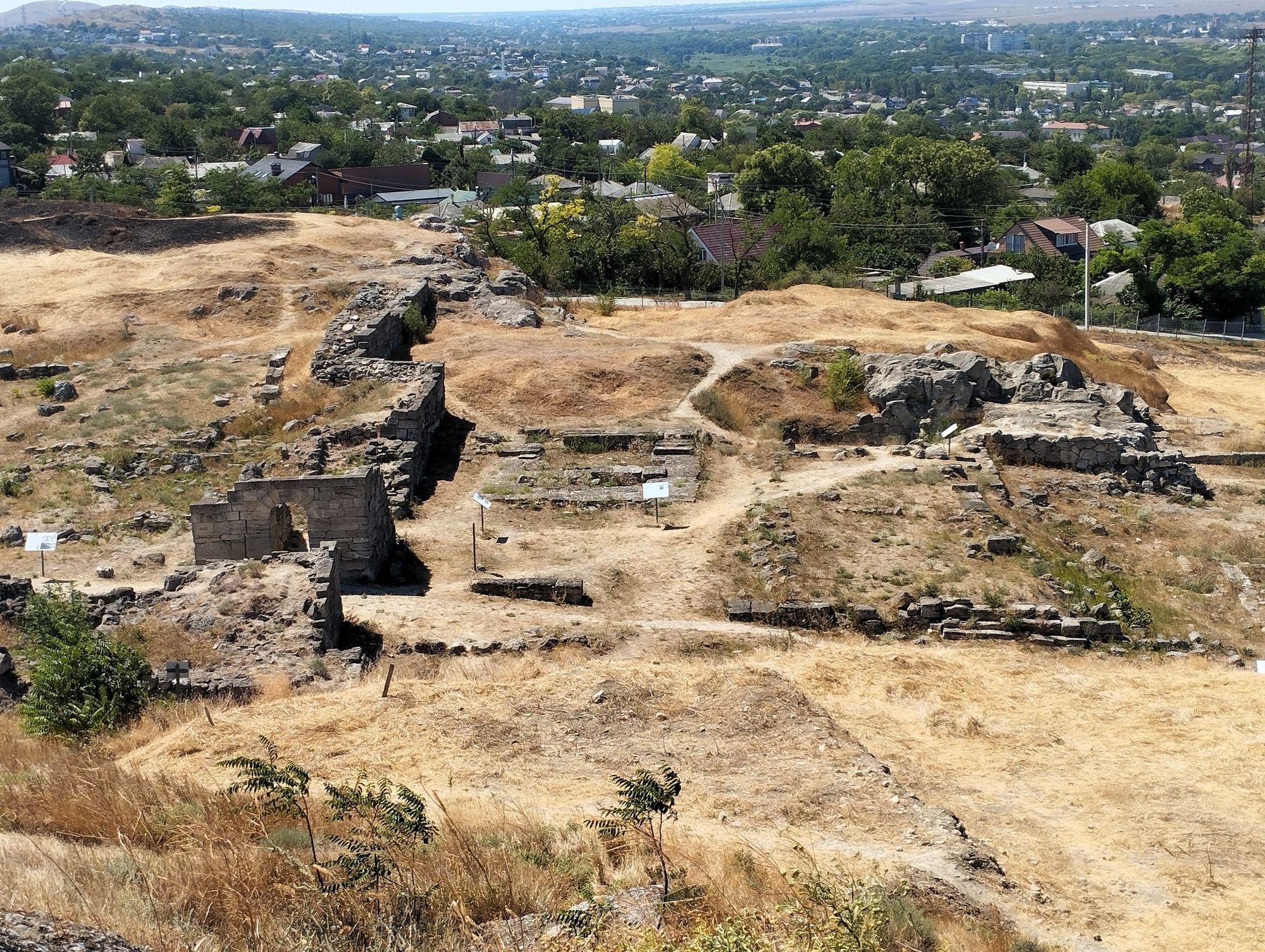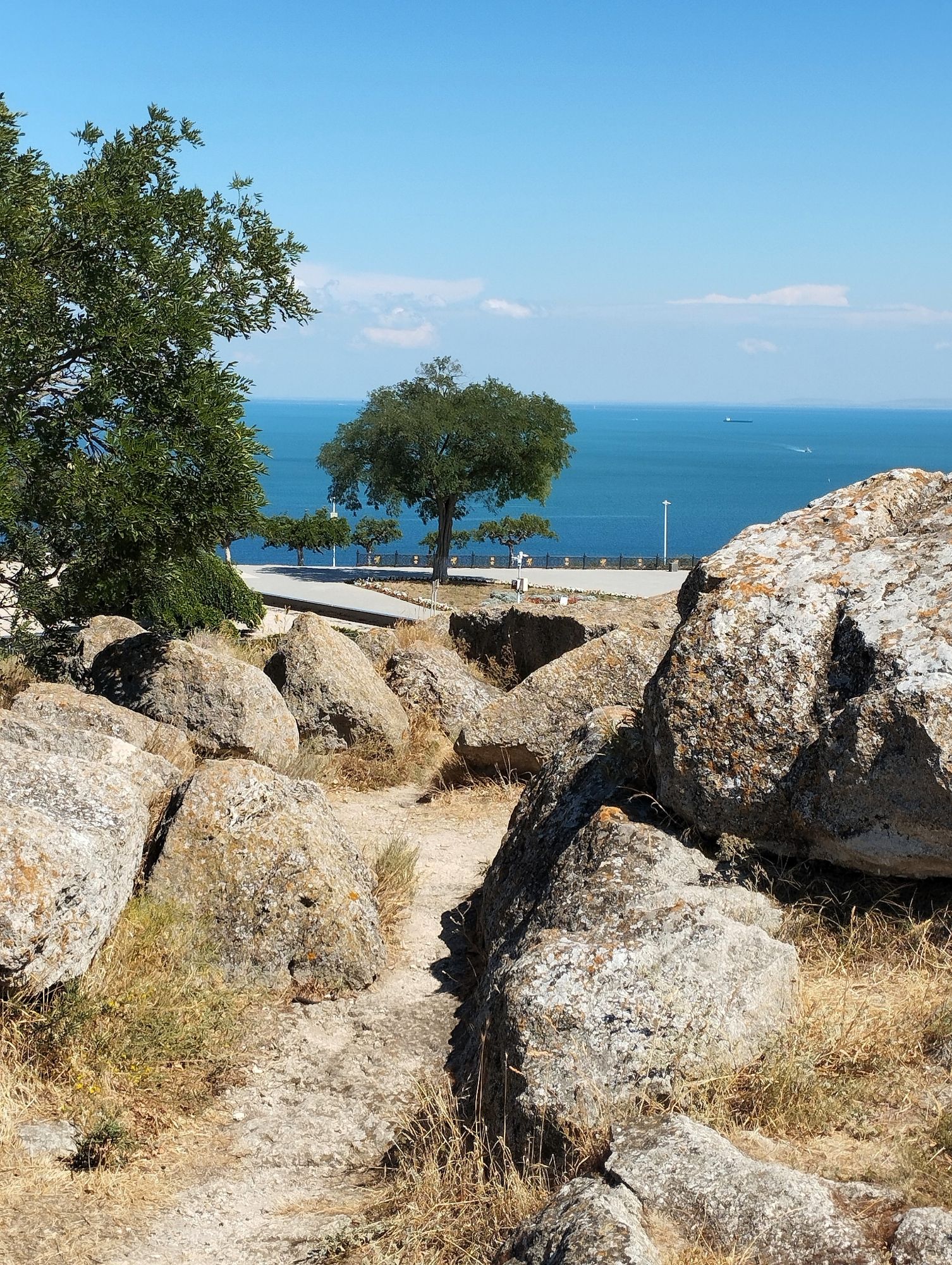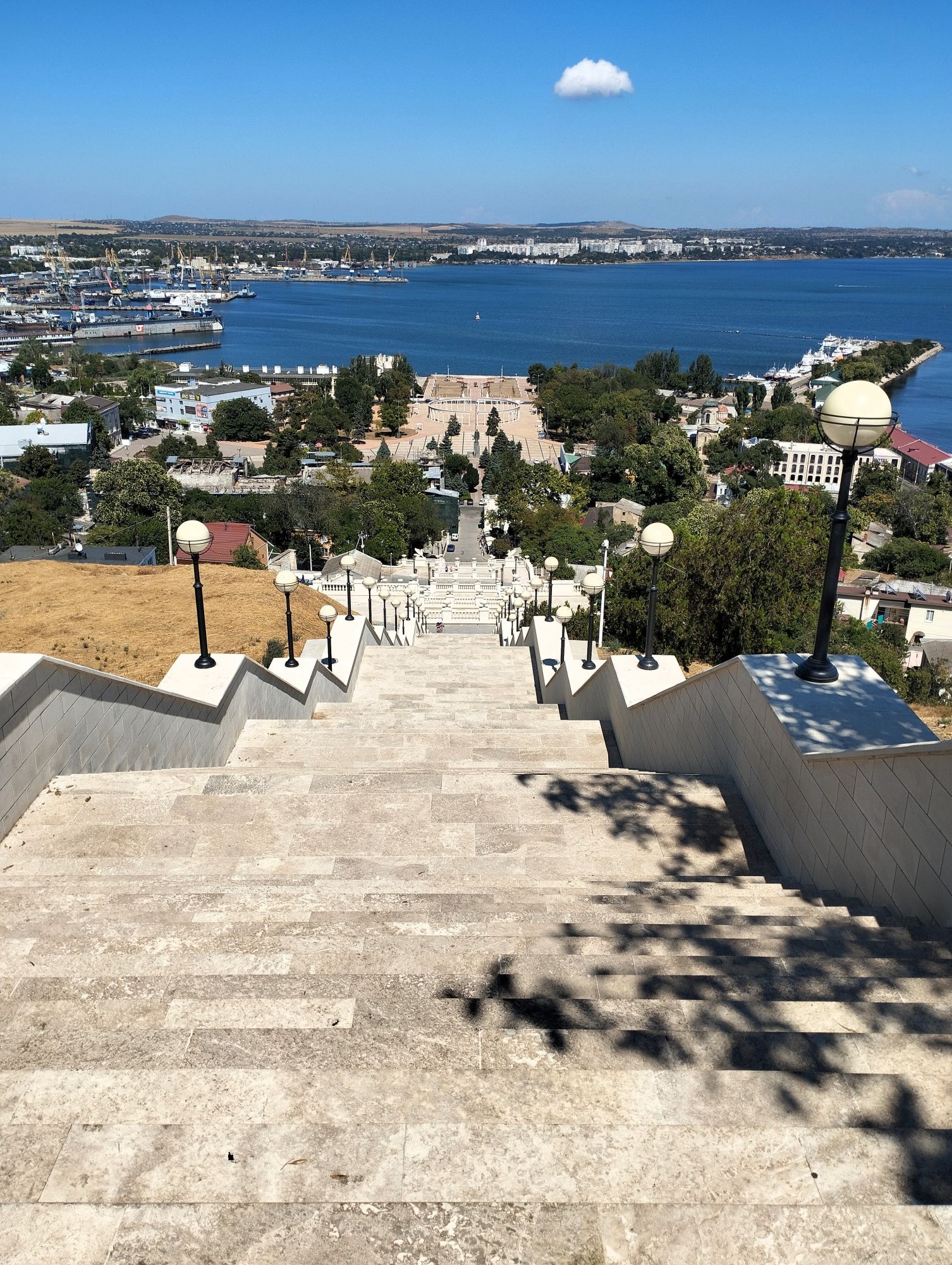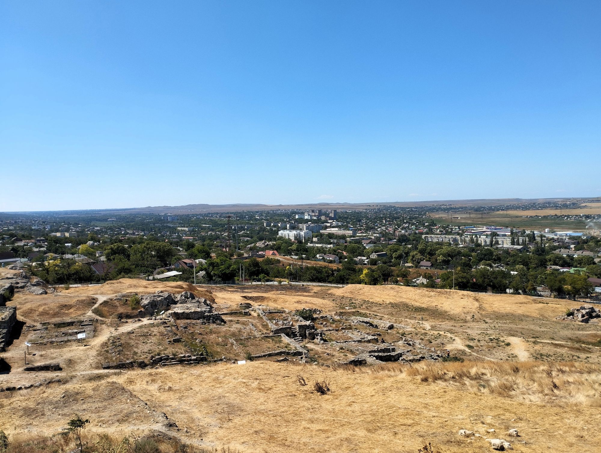 27 августа 2024 В завершении экскурсии в Керчи мы побывали на одном из ее символов и известных достопримечательностей - горе Митридат. Хорошо. что грозу мгновенно куда-то сдуло - вот только что туча была и тут же ясное небо - я так и не поняла, куда тучи делись в итоге История горы начинается с того времени, когда греческие поселенцы обосновались на Керченском полуострове и основали здесь несколько городов. Самым большим античным городом был Пантикапей. Его построили на склонах самого высокого холма на берегах Керченского пролива, чтобы город был неуязвим для неприятеля и затопления. Самым известным правителем Пантикапея считается царь Митридат, о подвигах и богатствах которого до сих пор ходят легенды. За годы бесчисленных завоевательных войн царь разбогател настолько, что не знал, куда девать свое богатство. По одной из легенд во время пыток царь заливал в глотки врагам раскаленное золото. Но судьба отвернулась от завоевателя и он погиб в Пантикапее, когда враги уже вплотную приблизились к городу. В честь одного из могущественных и богатых правителей античных времен и была названа гора, где нашел свою смерть царь. На склонах Митридатской горы до сих пор сохранились развалины древнего города: видны развалины зданий и античных храмов, колонны здания городского совета — Пританея, очертания улиц города. Несметные сокровища Митридата до сих пор не найдены. Исторические записки о Митридате упоминают о богатстве царя, которое он спрятал в подземельях горы. На протяжении нескольких веков «черные археологи» пытаются обнаружить сокровища царя: копатели мечтают найти коня из золота, вылитого в натуральную величину. На месте города Пантикапея до сих пор керчане и гости города время от времени находят античные монеты, обломки древних амфор и другие исторические артефакты. Здесь и сейчас ведутся археологические раскопки, а коллекции найденных артефактов представлены в Эрмитаже. В годы войны на горе Митридат происходили одни из самых кровопролитнейших боев: в ходе наступательных и оборонительных операций территорию горы по очередности занимали то фашистские, то советские войска. Именно здесь в 1943 г. водрузили красное знамя, которое являлось символом окончания боев за город. В честь героев, погибших на Керченской земле, на вершине Митридата был возведен Обелиск Славы. Интересно, что он стал одним из первых памятников ВОВ, воздвигнутых на территории Советского Союза. Его открытие состоялось уже в октябре 1944 года, когда Великая Отечественная война еще ее была завершена. Обелиск Славы возвышается над городом – его видно практически из любой точки Керчи. Это каменная 24-метровая светло-стального цвета стелла, которую с трёх сторон окружают три зенитных орудия. В мемориальный комплекс, посвященный героям Великой Отечественной войны, входит также Вечный Огонь. Здание, в котором горит Вечный Огонь, расположено на самой высокой точке горы, и в ночное время огонь видно издалека. Обелиск Славы – один из главных символов Керчи, который особо почитаем местными жителями. Ежегодно в канун празднования Победы здесь проводится факельное шествие и театрализованное представление, посвященное событиям ВОВ. А на 9 мая на площади возле мемориального комплекса проводятся праздничные мероприятия: тысячи керчан и гостей города приходят сюда, чтобы поч