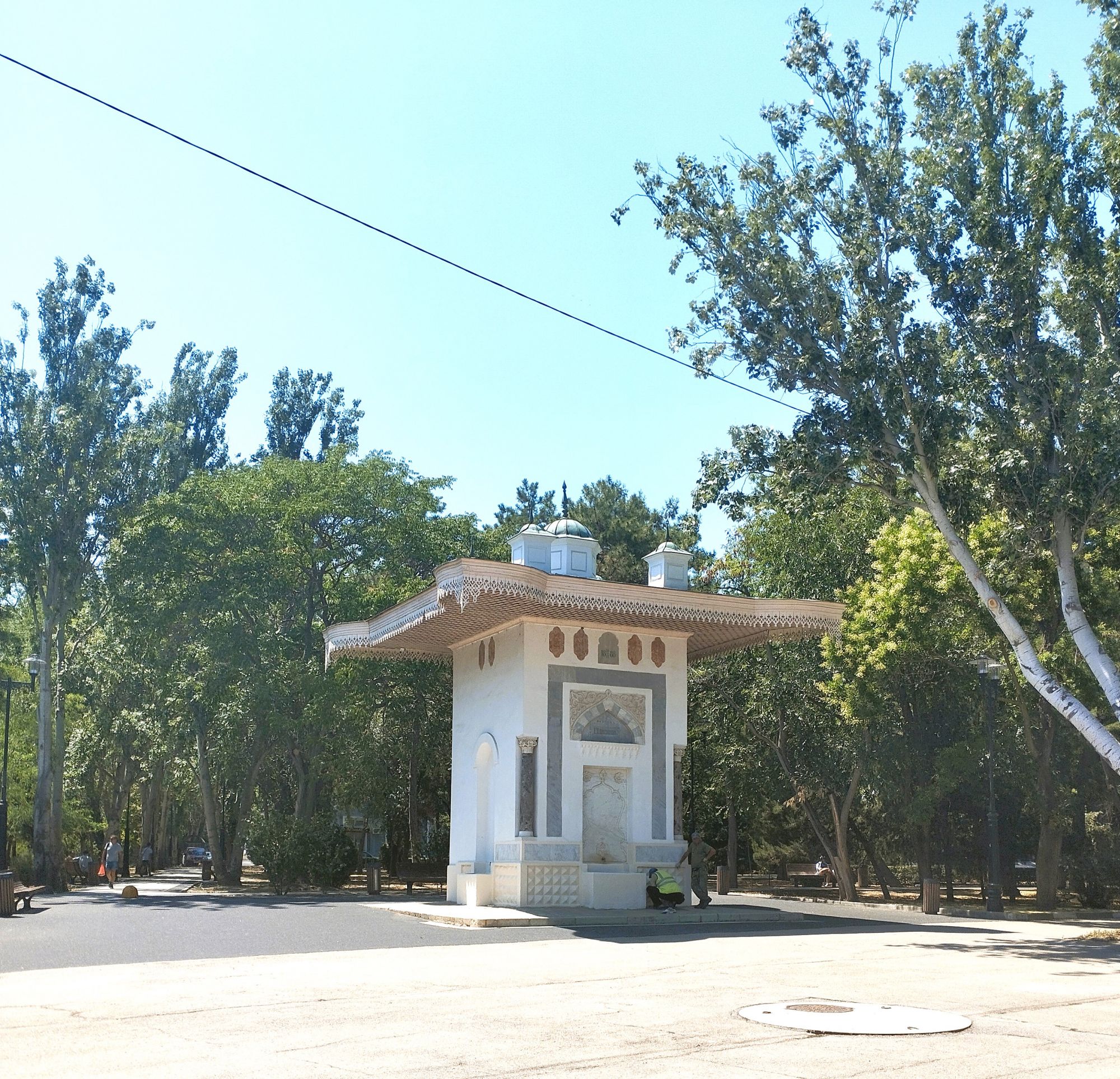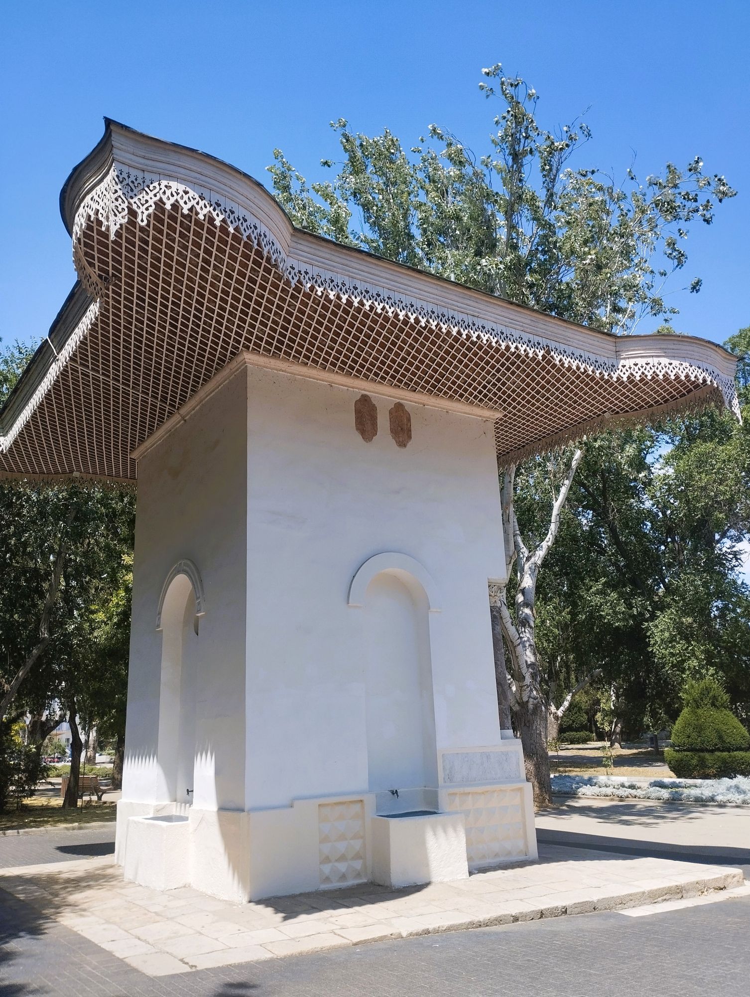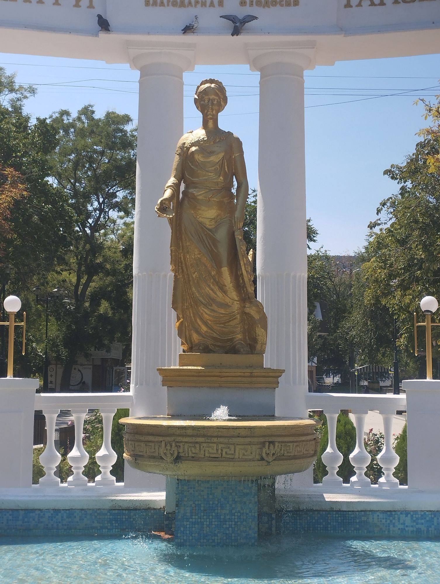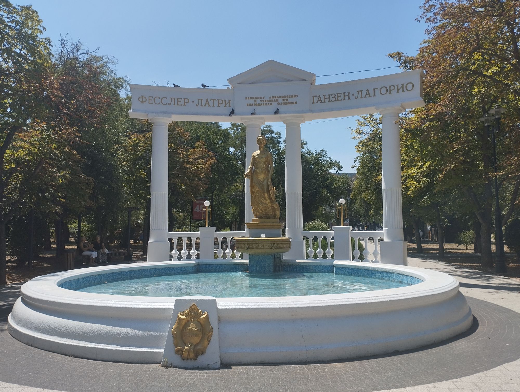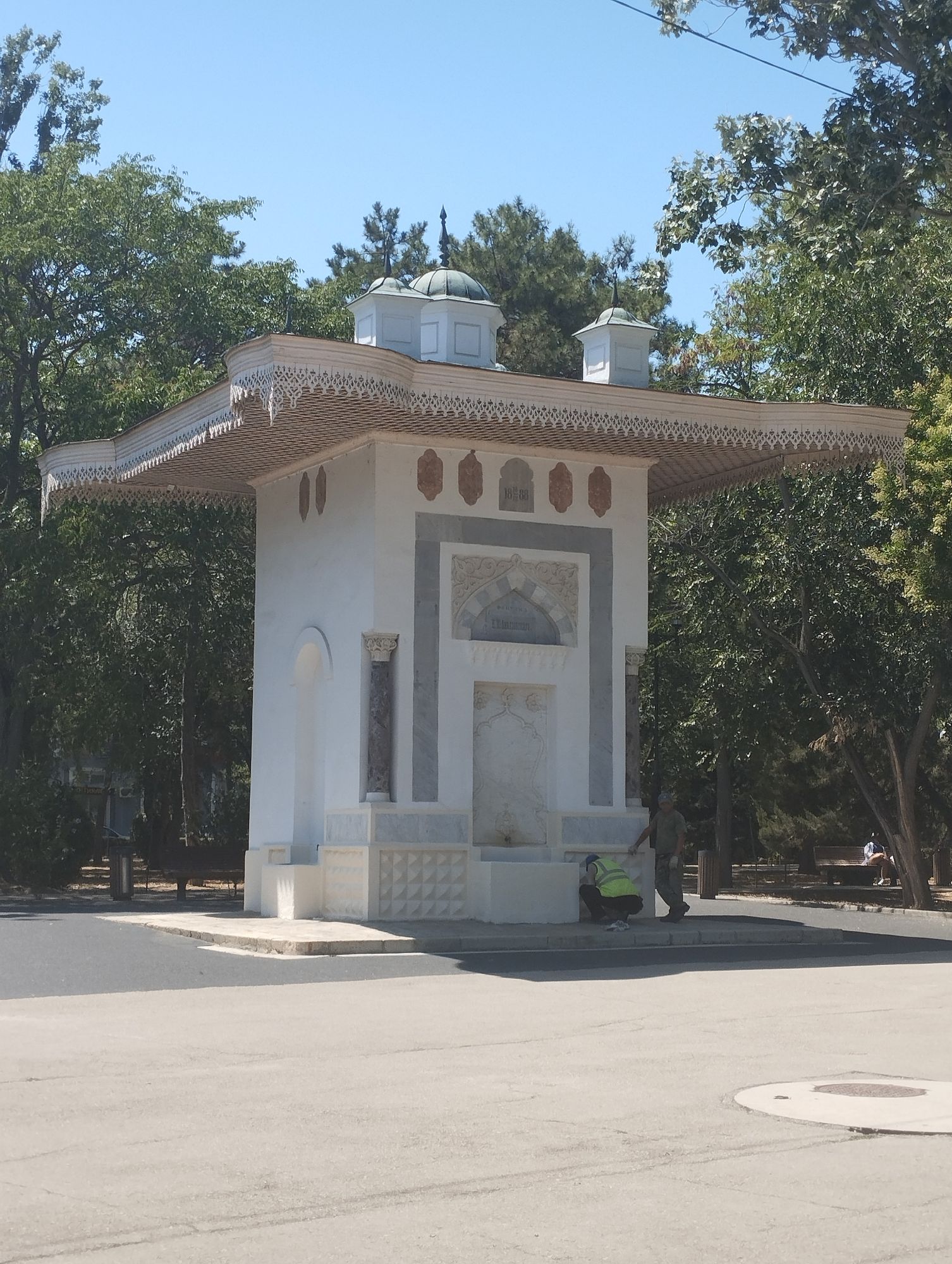26 августа 2024 Чтоб закончить конкретно про Феодосию. Еще в Феодосии есть старый город. Туда возят на электрокарах, которые стоят, в том числе, возле музея Айвазовского, и можно там походить пешком. Мы были и так и так. Сначала пошли пешком и побродили там, а потом поехали на электрокаре, за 500 рублей, чтобы нас довезли наверх, до крепости. Итак, что можно увидеть, если идти от ж/д вокзала в сторону от центра и набережной Десантников. Фонтан Айвазовского. Построен в 1888 году по проекту и на средства Ивана Айвазовского. Дело в том, что Феодосия в 1886–1888 годы находился на грани техногенной катастрофы. Несколько лет подряд на востоке Крыма держалась аномальная жара, а в зимние месяцы почти не выпадало осадков. И воды просто не было. Воду в город доставляли в бочках на пароходах из Севастополя. Многие местные состоятельные граждане моментально богатели, открывая новые источники и продавая воду горожанам. В 1887 году Иван Константинович Айвазовский принял решение безвозмездно передать во владение города Феодосия Субашские источники, которые принадлежали его жене, Саркисовой Анне. Источники находились на территории поместья Айвазовских, у населенного пункта Старый Крым. Год велись работы по прокладке водопровода длиной 25 км, деньги на постройку водопровода также выделил Иван Константинович. Феодосия стала ежесуточно получать 50 000 ведер чистой питьевой воды из этого фонтана. Сначала городская дума собиралась назвать фонтан именем Александра III, были подготовлены и отправлены по инстанциям соответствующие документы. Не дожидаясь принятия решения, городские власти приготовили закладную плиту, на которой были выбиты слова «Императора Александра». Однако, учитывая заслуги Айвазовского, Высочайшим Указом, изданным в сентябре 1888 года, было повелено дать фонтану имя великого художника. В связи с этим на закладной плите фонтана вместо слов «Императора Александра» выбили «И. К. Айвазовского». Денег на новую плиту уже не было, поэтому было принято решение вырезать её центр с надписью и вставить блок с новым текстом. Если присмотреться к закладной плите, то перед первой буквой в имени И. К. Айвазовского четко видны детали буквы «И» большего размера, от слова «Императора», а после окончания имени детали буквы «А» от слова «Александра». В дореволюционное время у фонтана была серебряная чашка с надписью «За здоровье И. К. Айвазовского и его семьи». Идем дальше, в этом же парке видим еще один фонтан - фонтан "Доброму гению". Угадайте, про какого гения речь? В знак благодарности семье Айвазовского за питьевой фонтан феодосийцы установили этот фонтан-памятник. Однако из-за неправильно организованной системы стока воды фонтан и прилегающая территория вскоре была подтоплена, а фонтан закрыт. Фонтан «Доброму гению» являлся оригинальным сооружением. На постаменте была установлена женская фигура из бронзы: она увековечивала память жены Айвазовского. В руках она держала каменную чашу с постоянно движущимся водным потоком. Все это увенчивалось табличкой «Доброму гению». К сожалению, инженеры недостаточно правильно спроектировали это сооружение - место вокруг памятника постоянно подвергалось подтоплению. Фонтан закрыли. В начале тридцатых годов бронзовую скульптуру перенесли в другой действующий фонтан. Каменные основания разобрали. В годы Великой Отече