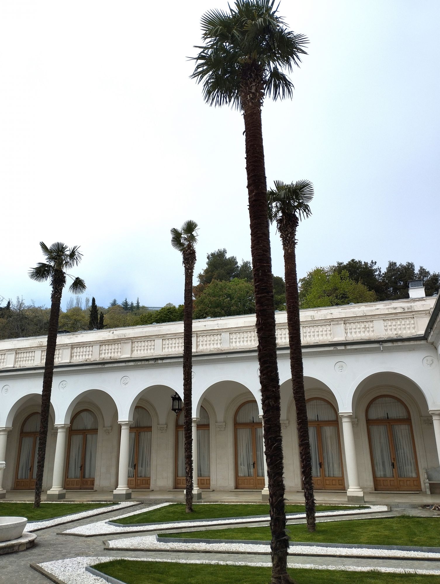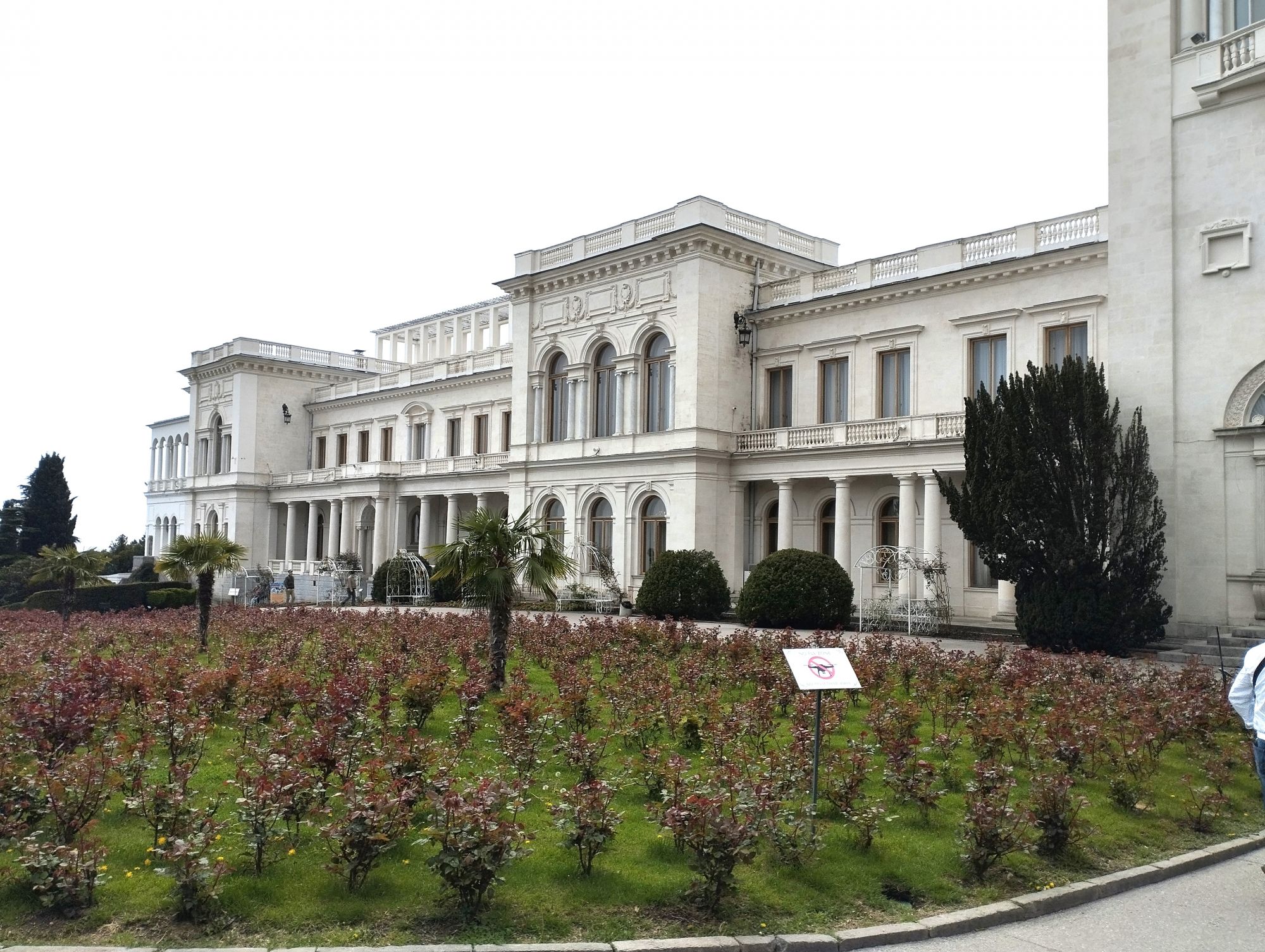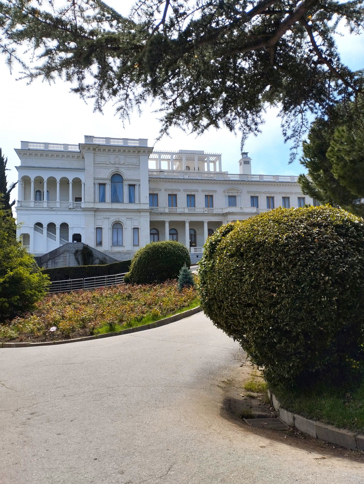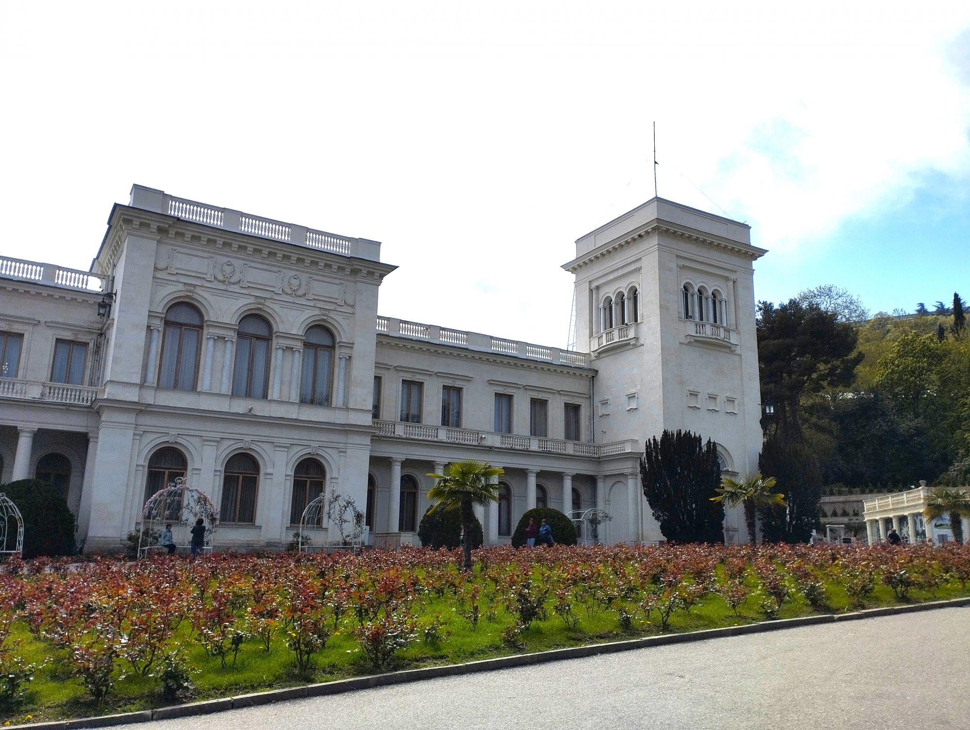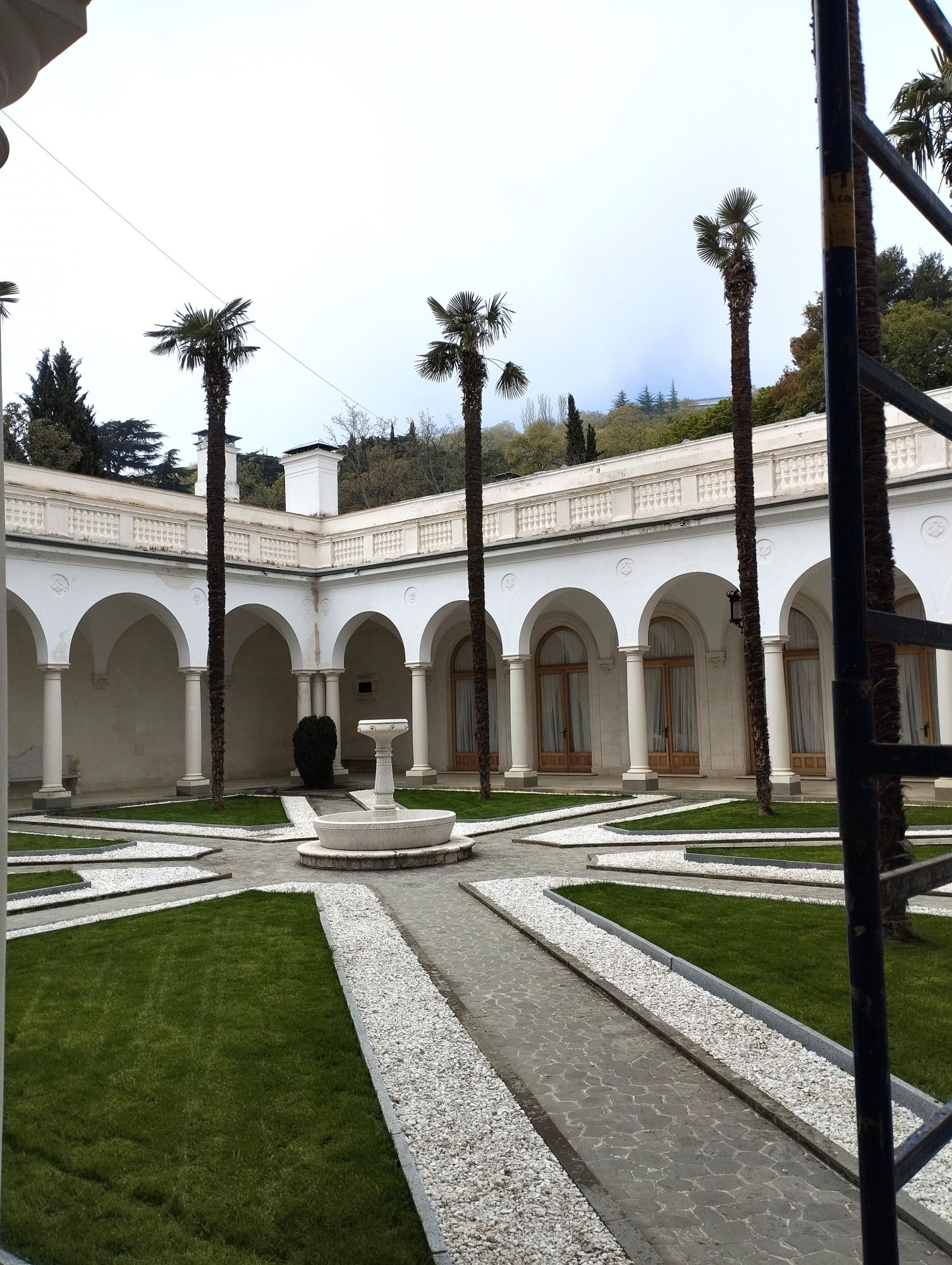 21 мая Отоспавшись и отдохнув (а ехать нам в Крым, между прочим, две ночи и день), мы начали воплощать свою программу-минимум на эту поездку. И начали мы с Ливадийского дворца. Находится он как бы в пределах Ялты, можно даже пешком до него дойти, но погода не то, чтобы летняя была, поэтому мы доехали на автобусе до остановки «Больница» за 30 рублей, и потом спускались и петляли, опять-таки, по улицам и лестницам, пока наконец Ливадийского дворца не достигли, не без помощи аборигенов, которые подсказали, куда идти (шли мы изначально, конечно же, не в ту сторону). Те, кто говорит, едите в несезон, все цветет и пахнет, а людей мало - вы не правы. В несезон цвести и пахнуть будет, если повезет. Например, в Ливадийском дворце шикарная территория, вся усаженная розами… Но, увы, ни одной розы в наш визит не цвело – за неделю до этого в Ялте снег выпал, какие уж тут розы… Поэтому кто хочет посмотреть на розы – надо, наверное, приезжать к середине или концу мая. А может и летом. Тогда точно что-то цвести будет.. Но все равно в Ливадийском дворце мне понравилось. Тем более, что когда мы туда приехали погода была мрачноватая, но к середине дня она расстоялась и появилось солнце. Итак, о Ливадийском дворце. Скрытый текст Земли, где находится сейчас поселок Ливадия, Екатерина II подарила греку Ламбросу Кацонису, который служил на российском флоте и в русско-турецкую войну вел успешные бои. Он был родом из Греции, из поселения Левадьон. Землю в Крыму он назвал по аналогии: Ливадия, что в переводе означает луг, лужайка. Затем земли переходили из рук в руки, пока, в 1860 году, их владельцем не становится император Александр II. При нем строится два дворца. Большой дворец - для императорской семьи. Малый - для наследника престола великого князя Александра Александровича - будущего императора Александра III. Александр III очень любил Ливадию. Приезжал сюда со всей своей семьей. Мария Федоровна, еще будучи супругой наследника, впервые в жизни увидела розы именно в Ливадии и стала их поклонницей. Каждый раз, приезжая сюда, она привозила с собой тысячи кустов этих цветов. И сейчас все, что можно в Ливадийском парке, засажено розами (они в наш визит, как я уже писала, не цвели, но бутоны были). Александр III ушел из жизни в Ливадии в своем Малом дворце. На месте кресла, в котором он умер, Мария Федоровна приказала выложить крест из ценных пород дерева, чтобы увековечить память супруга. Дворцов тех времен, ни Большого, ни малого, не осталось. Малый сгорел во время ВОВ, а Большой постепенно ветшал и в нем уже стало невозможно жить. И тогда уже император Николай II решил разобрать Большой дворец и построить на его месте новый. Это было последнее сооружение Российской империи, возведённое для семьи Романовых. Стиль будущего сооружения – итальянский Ренессанс – лично выбрал Николай II. Дворец был возведён в невероятный срок – за 17 месяцев. Над ним круглосуточно трудились 2 500 рабочих. По ночам масштабная строительная площадка освещалась множеством факелов. Здание построено из белого инкерманского камня, который добывают недалеко от Севастополя. С ним легко работать, но в его составе есть примеси железа. Со временем оно окисляется, и камень начинает темнеть и сереть. Поэтому приняли решение покрыть все наружные стены специальным раствором - флюатом Кеслера, который образует защитную пленку, не позв