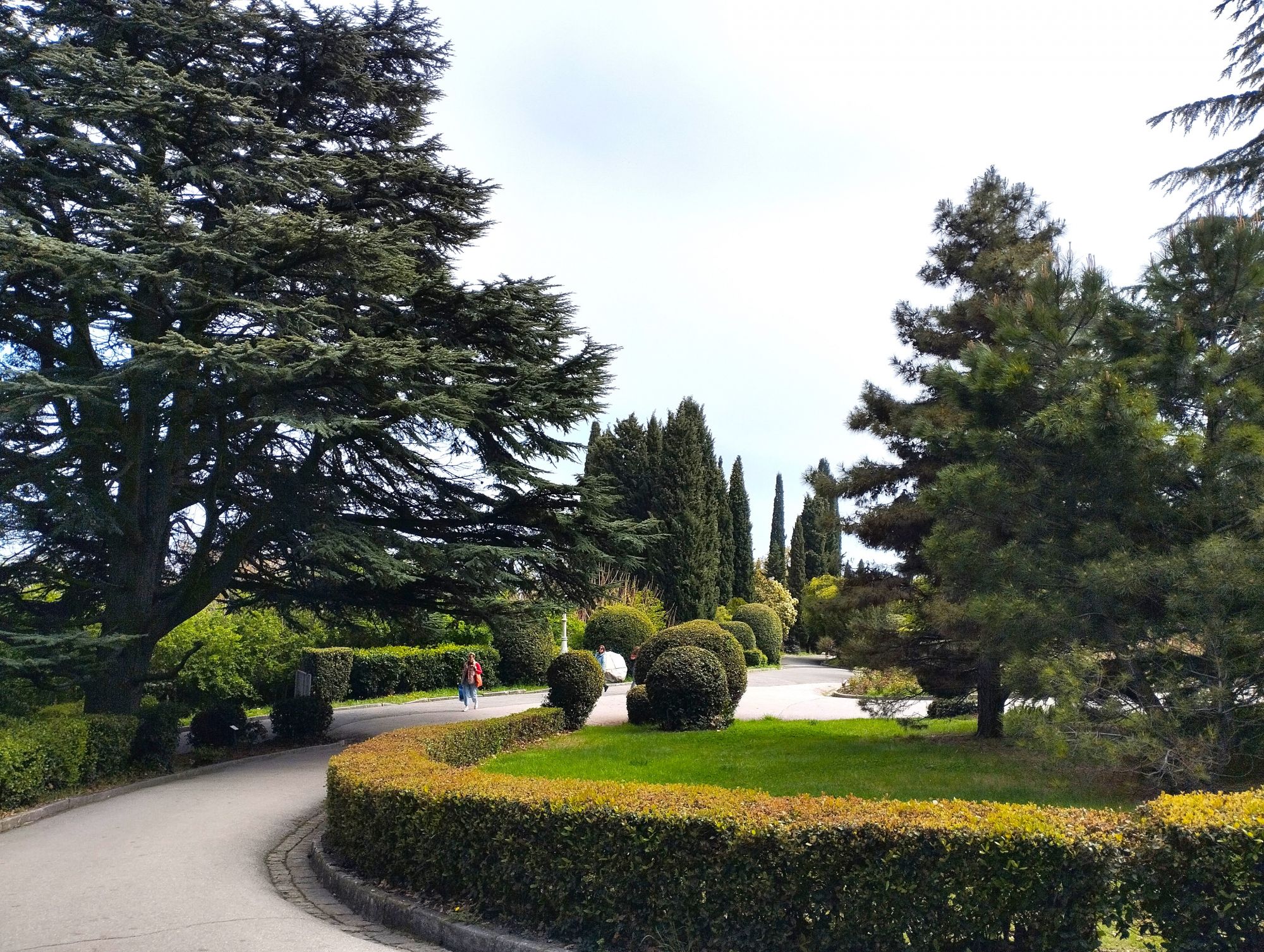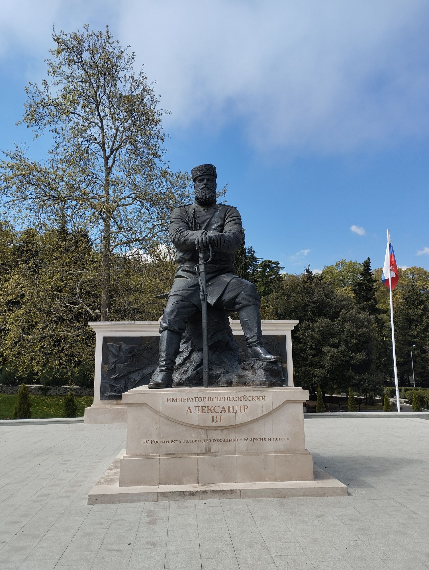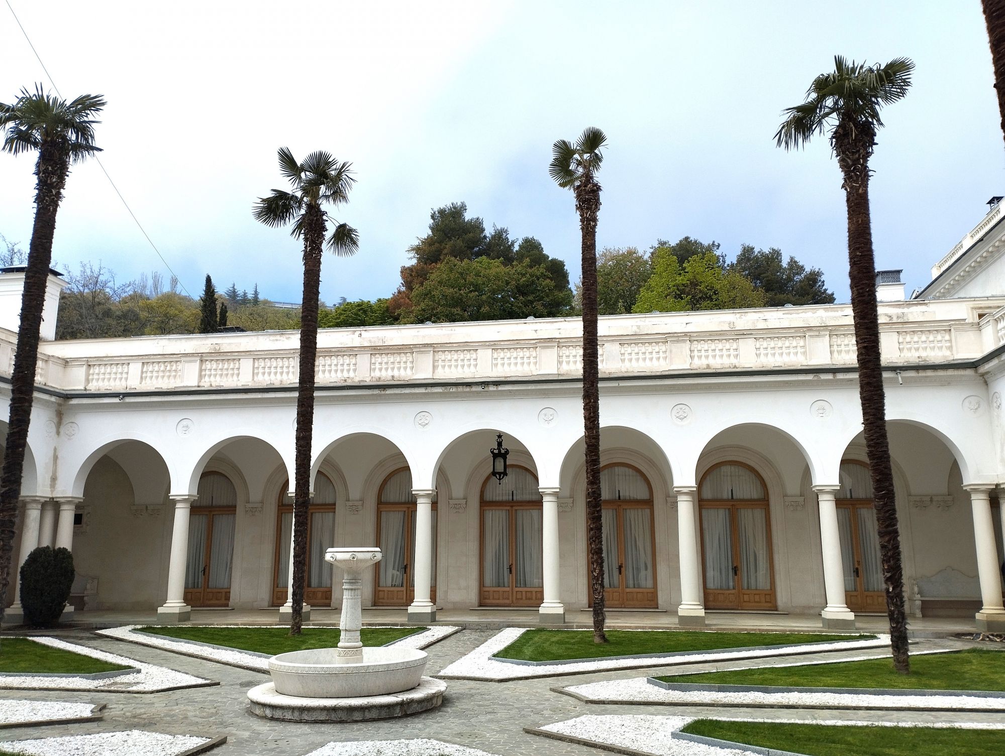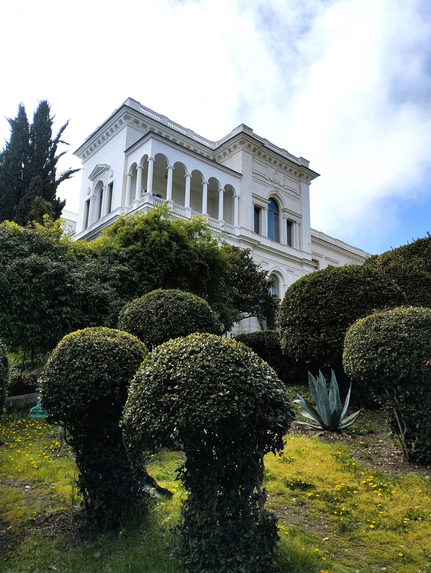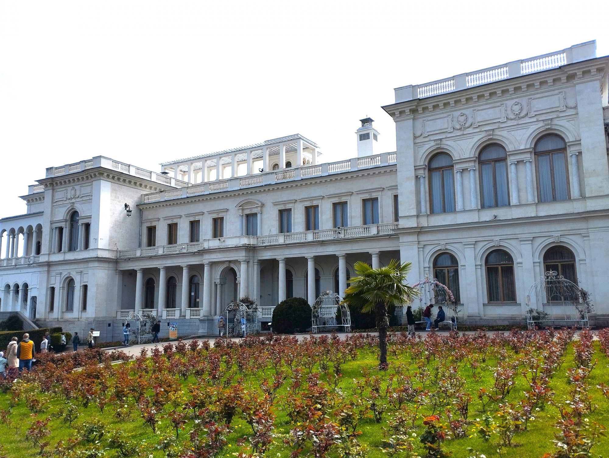 21 мая Отоспавшись и отдохнув (а ехать нам в Крым, между прочим, две ночи и день), мы начали воплощать свою программу-минимум на эту поездку. И начали мы с Ливадийского дворца. Находится он как бы в пределах Ялты, можно даже пешком до него дойти, но погода не то, чтобы летняя была, поэтому мы доехали на автобусе до остановки «Больница» за 30 рублей, и потом спускались и петляли, опять-таки, по улицам и лестницам, пока наконец Ливадийского дворца не достигли, не без помощи аборигенов, которые подсказали, куда идти (шли мы изначально, конечно же, не в ту сторону). Те, кто говорит, едите в несезон, все цветет и пахнет, а людей мало - вы не правы. В несезон цвести и пахнуть будет, если повезет. Например, в Ливадийском дворце шикарная территория, вся усаженная розами… Но, увы, ни одной розы в наш визит не цвело – за неделю до этого в Ялте снег выпал, какие уж тут розы… Поэтому кто хочет посмотреть на розы – надо, наверное, приезжать к середине или концу мая. А может и летом. Тогда точно что-то цвести будет.. Но все равно в Ливадийском дворце мне понравилось. Тем более, что когда мы туда приехали погода была мрачноватая, но к середине дня она расстоялась и появилось солнце. Итак, о Ливадийском дворце. Скрытый текст Земли, где находится сейчас поселок Ливадия, Екатерина II подарила греку Ламбросу Кацонису, который служил на российском флоте и в русско-турецкую войну вел успешные бои. Он был родом из Греции, из поселения Левадьон. Землю в Крыму он назвал по аналогии: Ливадия, что в переводе означает луг, лужайка. Затем земли переходили из рук в руки, пока, в 1860 году, их владельцем не становится император Александр II. При нем строится два дворца. Большой дворец - для императорской семьи. Малый - для наследника престола великого князя Александра Александровича - будущего императора Александра III. Александр III очень любил Ливадию. Приезжал сюда со всей своей семьей. Мария Федоровна, еще будучи супругой наследника, впервые в жизни увидела розы именно в Ливадии и стала их поклонницей. Каждый раз, приезжая сюда, она привозила с собой тысячи кустов этих цветов. И сейчас все, что можно в Ливадийском парке, засажено розами (они в наш визит, как я уже писала, не цвели, но бутоны были). Александр III ушел из жизни в Ливадии в своем Малом дворце. На месте кресла, в котором он умер, Мария Федоровна приказала выложить крест из ценных пород дерева, чтобы увековечить память супруга. Дворцов тех времен, ни Большого, ни малого, не осталось. Малый сгорел во время ВОВ, а Большой постепенно ветшал и в нем уже стало невозможно жить. И тогда уже император Николай II решил разобрать Большой дворец и построить на его месте новый. Это было последнее сооружение Российской империи, возведённое для семьи Романовых. Стиль будущего сооружения – итальянский Ренессанс – лично выбрал Николай II. Дворец был возведён в невероятный срок – за 17 месяцев. Над ним круглосуточно трудились 2 500 рабочих. По ночам масштабная строительная площадка освещалась множеством факелов. Здание построено из белого инкерманского камня, который добывают недалеко от Севастополя. С ним легко работать, но в его составе есть примеси железа. Со временем оно окисляется, и камень начинает темнеть и сереть. Поэтому приняли решение покрыть все наружные стены специальным раствором - флюатом Кеслера, который образует защитную пленку, не позв