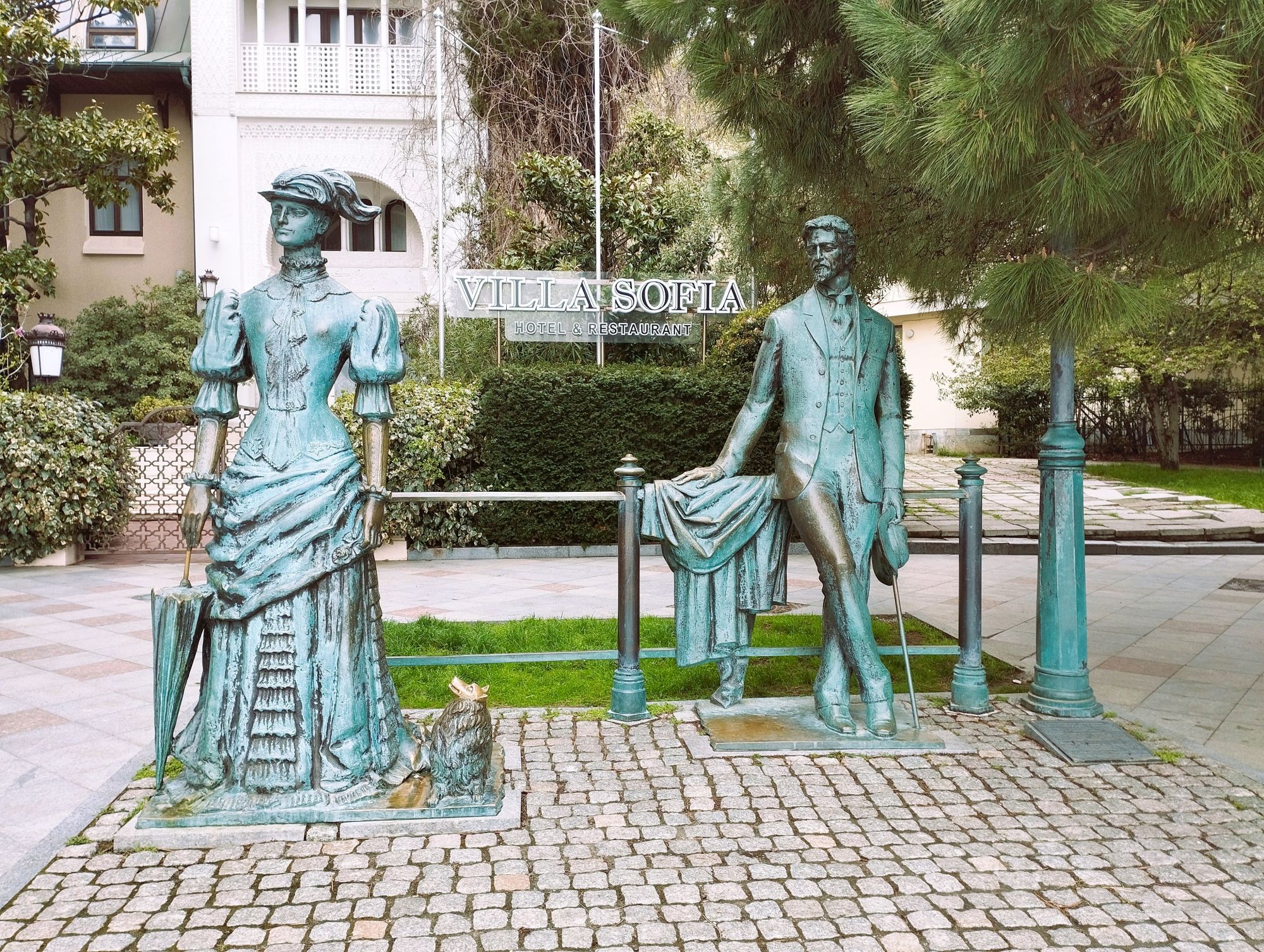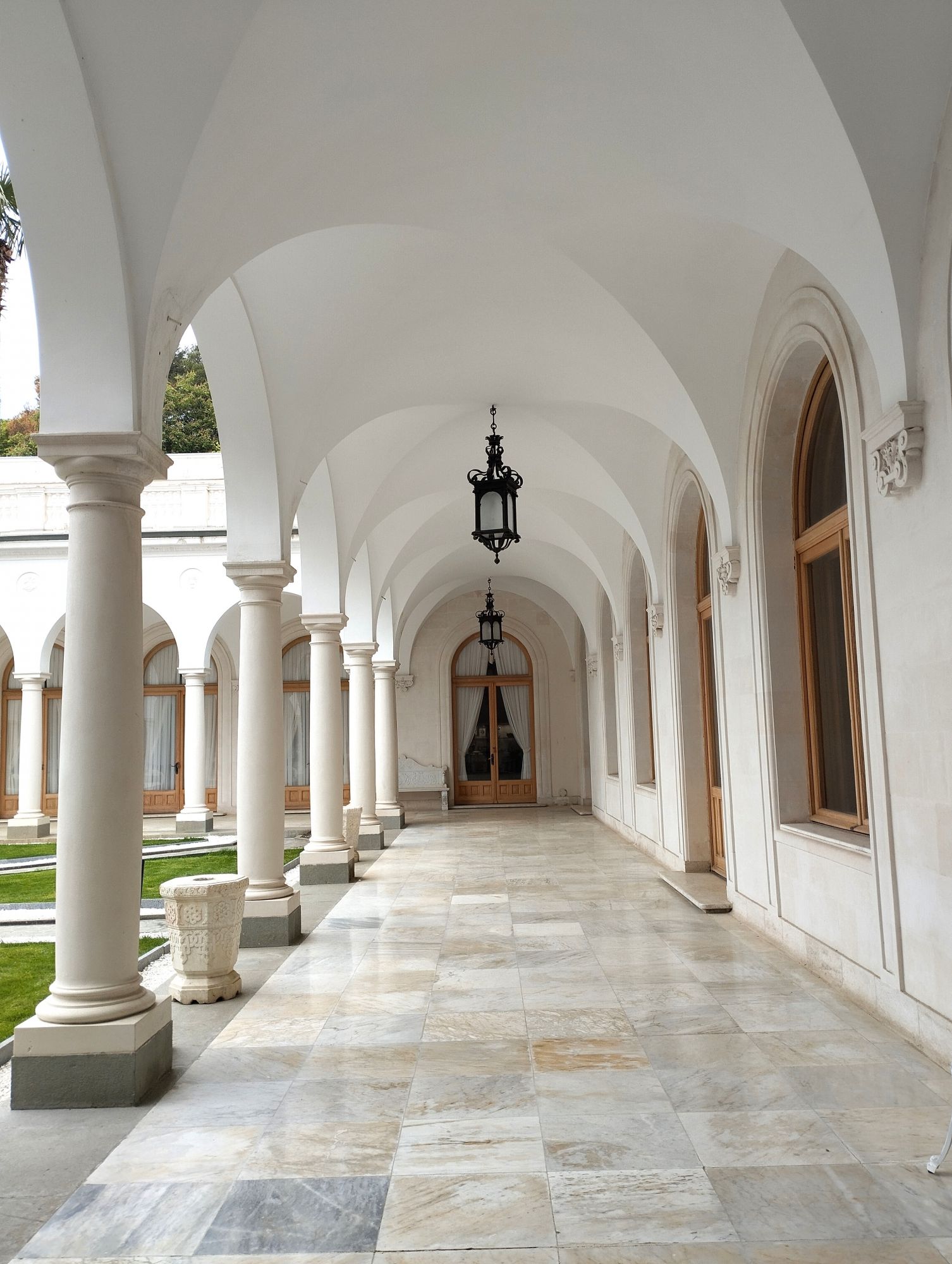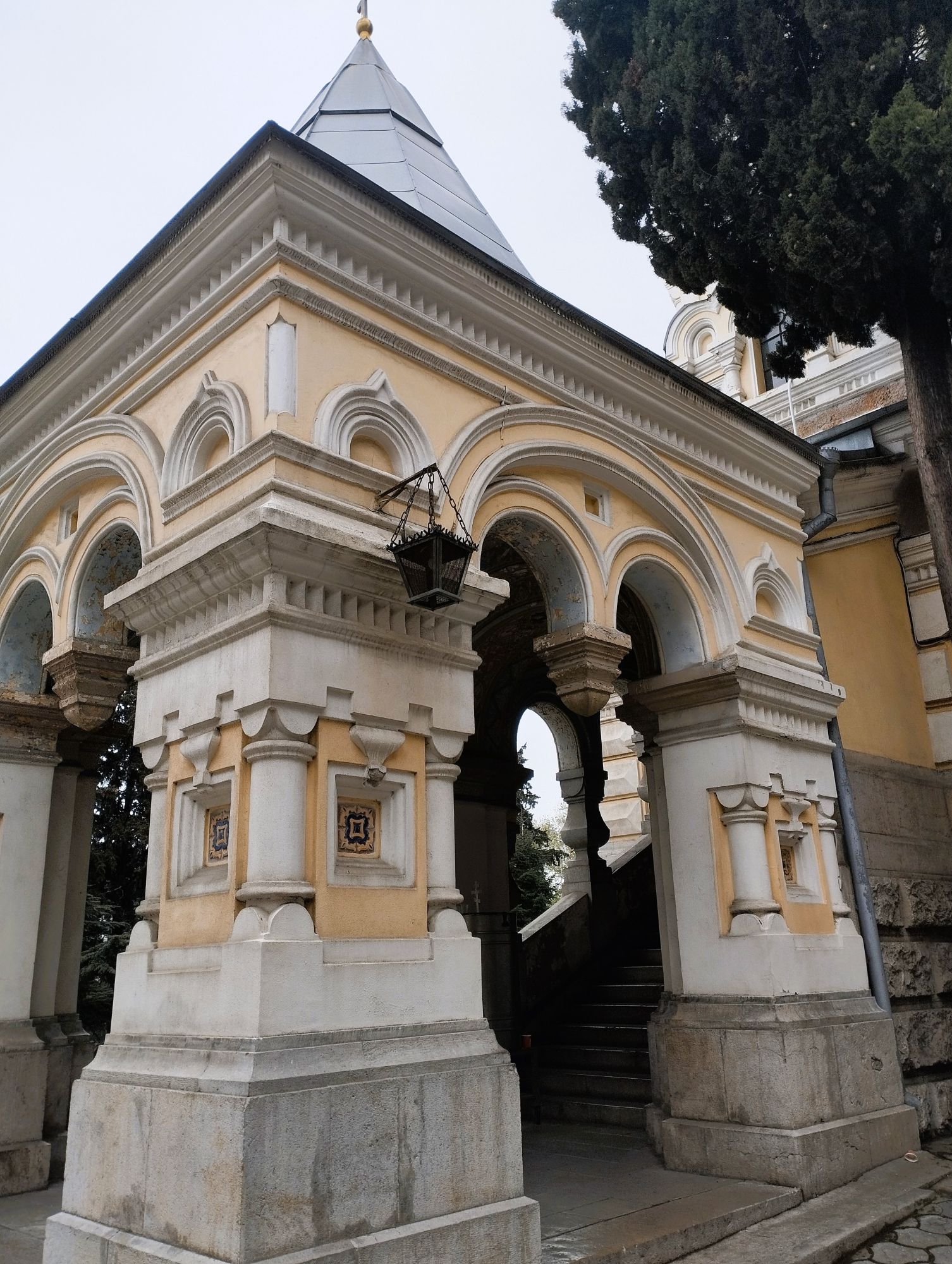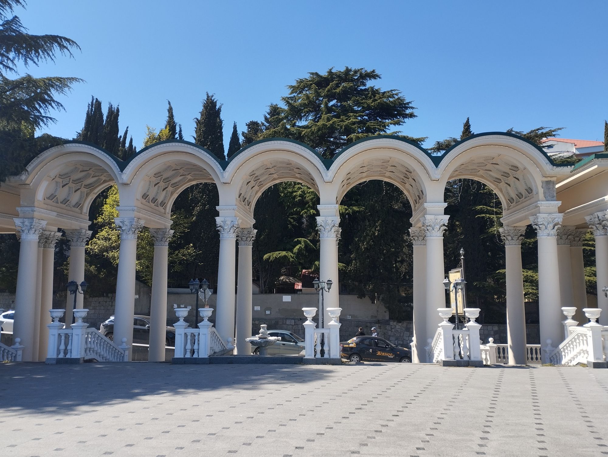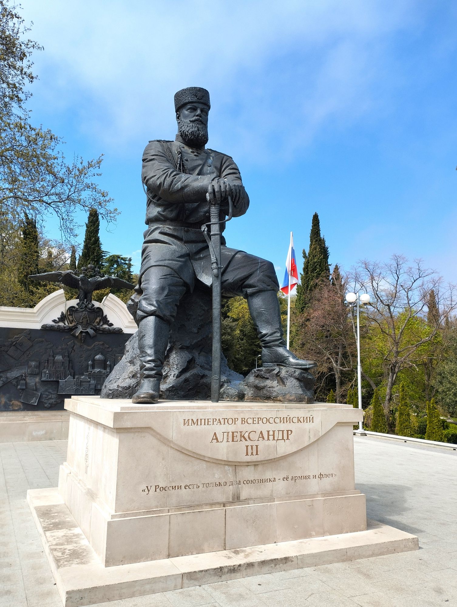 21 мая Отоспавшись и отдохнув (а ехать нам в Крым, между прочим, две ночи и день), мы начали воплощать свою программу-минимум на эту поездку. И начали мы с Ливадийского дворца. Находится он как бы в пределах Ялты, можно даже пешком до него дойти, но погода не то, чтобы летняя была, поэтому мы доехали на автобусе до остановки «Больница» за 30 рублей, и потом спускались и петляли, опять-таки, по улицам и лестницам, пока наконец Ливадийского дворца не достигли, не без помощи аборигенов, которые подсказали, куда идти (шли мы изначально, конечно же, не в ту сторону). Те, кто говорит, едите в несезон, все цветет и пахнет, а людей мало - вы не правы. В несезон цвести и пахнуть будет, если повезет. Например, в Ливадийском дворце шикарная территория, вся усаженная розами… Но, увы, ни одной розы в наш визит не цвело – за неделю до этого в Ялте снег выпал, какие уж тут розы… Поэтому кто хочет посмотреть на розы – надо, наверное, приезжать к середине или концу мая. А может и летом. Тогда точно что-то цвести будет.. Но все равно в Ливадийском дворце мне понравилось. Тем более, что когда мы туда приехали погода была мрачноватая, но к середине дня она расстоялась и появилось солнце. Итак, о Ливадийском дворце. Скрытый текст Земли, где находится сейчас поселок Ливадия, Екатерина II подарила греку Ламбросу Кацонису, который служил на российском флоте и в русско-турецкую войну вел успешные бои. Он был родом из Греции, из поселения Левадьон. Землю в Крыму он назвал по аналогии: Ливадия, что в переводе означает луг, лужайка. Затем земли переходили из рук в руки, пока, в 1860 году, их владельцем не становится император Александр II. При нем строится два дворца. Большой дворец - для императорской семьи. Малый - для наследника престола великого князя Александра Александровича - будущего императора Александра III. Александр III очень любил Ливадию. Приезжал сюда со всей своей семьей. Мария Федоровна, еще будучи супругой наследника, впервые в жизни увидела розы именно в Ливадии и стала их поклонницей. Каждый раз, приезжая сюда, она привозила с собой тысячи кустов этих цветов. И сейчас все, что можно в Ливадийском парке, засажено розами (они в наш визит, как я уже писала, не цвели, но бутоны были). Александр III ушел из жизни в Ливадии в своем Малом дворце. На месте кресла, в котором он умер, Мария Федоровна приказала выложить крест из ценных пород дерева, чтобы увековечить память супруга. Дворцов тех времен, ни Большого, ни малого, не осталось. Малый сгорел во время ВОВ, а Большой постепенно ветшал и в нем уже стало невозможно жить. И тогда уже император Николай II решил разобрать Большой дворец и построить на его месте новый. Это было последнее сооружение Российской империи, возведённое для семьи Романовых. Стиль будущего сооружения – итальянский Ренессанс – лично выбрал Николай II. Дворец был возведён в невероятный срок – за 17 месяцев. Над ним круглосуточно трудились 2 500 рабочих. По ночам масштабная строительная площадка освещалась множеством факелов. Здание построено из белого инкерманского камня, который добывают недалеко от Севастополя. С ним легко работать, но в его составе есть примеси железа. Со временем оно окисляется, и камень начинает темнеть и сереть. Поэтому приняли решение покрыть все наружные стены специальным раствором - флюатом Кеслера, который образует защитную пленку, не позв