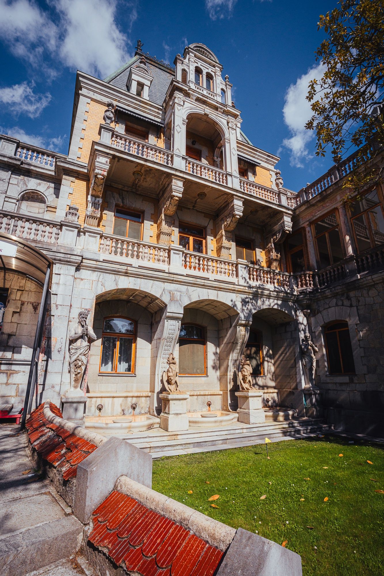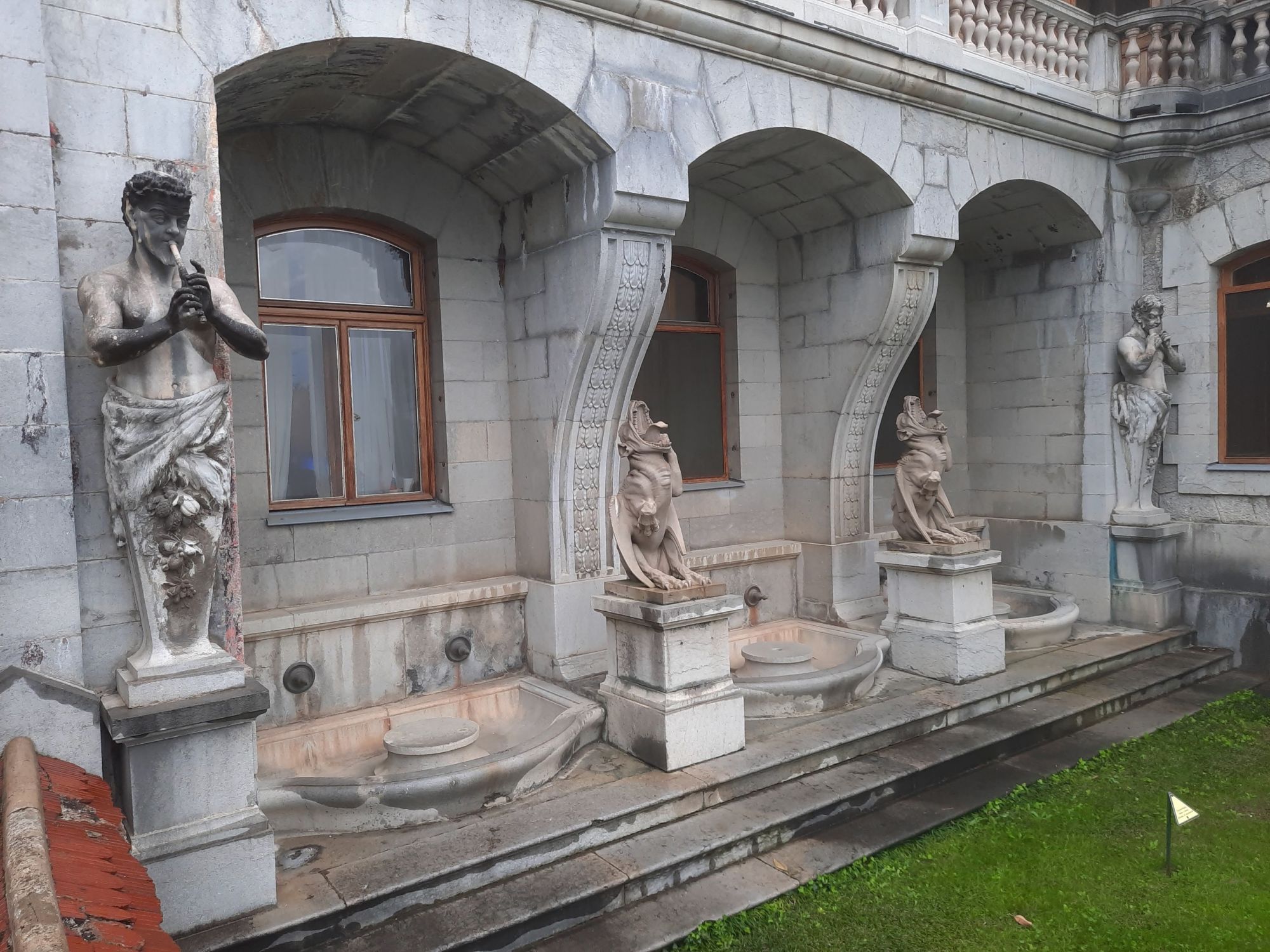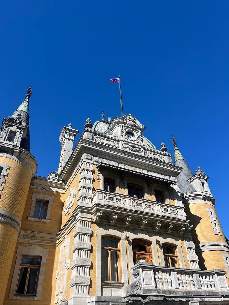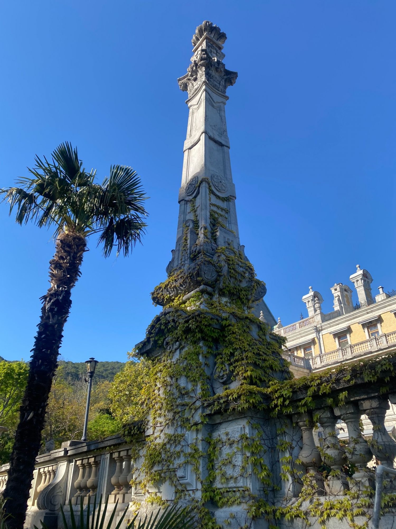 29 мая Буду заканчивать рассказ о поездке. а то сплошная болтология и никакой вышивки (хотя вышиваю мало, времени нет, на этой неделе вообще ни крестика не сделала) Значит, решили мы покорить все дворцы, которые возможно, и направились в другую сторону от Ялты - в Массандровский дворец. Все-таки интересно, на ЮБК столько много дворцов, но все они разные, все совсем друг на друга не похожие! Вот и Массандровский дворец нисколько не похож ни на Ливадийский, ни на Юсуповский, ни на Воронцовский! Массандровский дворец построен в стиле лучших французских ренессансных замков XVII-XVIII веков. начал строительство один из Воронцовых, но так и не закончил и стоял этот недострой до того времени, пока не купил эти земли для царской семьи Александр III. Александр III рассматривал Массандру как дачу, место летнего отдыха для своей семьи и приказал дворец достроить. Однако этим планам не суждено было сбыться: осенью 1894 года император умер, не успев пожить во дворце, строительство которого снова застопорилось. Словно злой рок преследовал это место. Ни один из владельцев дома не успевал его обжить. После этого Николай II приказал достроить Массандровский дворец в память об отце. Однако семья последнего российского императора тут никогда не жила, и даже не останавливалась на ночь. Сердце их безраздельно принадлежало любимой Ливадии. Дворец полностью оказался достроен лишь к 1902 году. До революции тут никто не жил. Чтобы правильно понять интерьер Массандровского дворца, нужно знать некоторые факты о Александре III как личности. Он был высокий и крупный мужчина огромной физической силы, при этом не любил просторные помещения и высокие потолки. Ему нравилось, чтобы свод комнаты был максимально близко над ним. Царь предпочитал темные цвета и приглушенное освещение. Он был также патриотом и предпочитал все русское, включая бороды бояр и допетровские костюмы. Именно таким образом был спланирован интерьер Массандровского дворца. В нем отсутствуют высокие потолки и просторные помещения. Даже в столовой, которая была довольно большой, потолок настолько низкий, что возникает вопрос о том, не ударился бы царь головой, если бы обедал там. Интерьер дворца прекрасно сохранился, позволяя оценить замысел архитектора и стиль жизни царской семьи. Однако из-за того, что дворец не использовался, многие помещения остались недоделанными. Например, комнаты на третьем этаже, предназначенные для детей царя, никогда не были обставлены. Лишь несколько помещений в полной мере были отделаны и готовы к использованию: вестибюль, приемные комнаты царя и царицы, кабинеты для венценосной пары, супружеская спальня, гостиная императрицы, столовая и бильярдная. В интерьере Массандровского дворца также широко использована метлахская плитка. Применялись разные породы дерева, такие как дуб, орех и красное дерево. Отделка выполнена с большим мастерством, включая сложную резьбу и расцвеченное выжигание по дереву. В дворце также есть другие интересные предметы. Например, в кабинете императрицы уникальный камин из коричневого мрамора, а также ручная люстра и уникальное зеркало. Для отделки помещений использовались также витражи и живопись по стеклу, создавая приглушенное освещение, которое так нравилось Александру III. Помимо красоты, дворец также обладал удобствами. Там была электрическая д