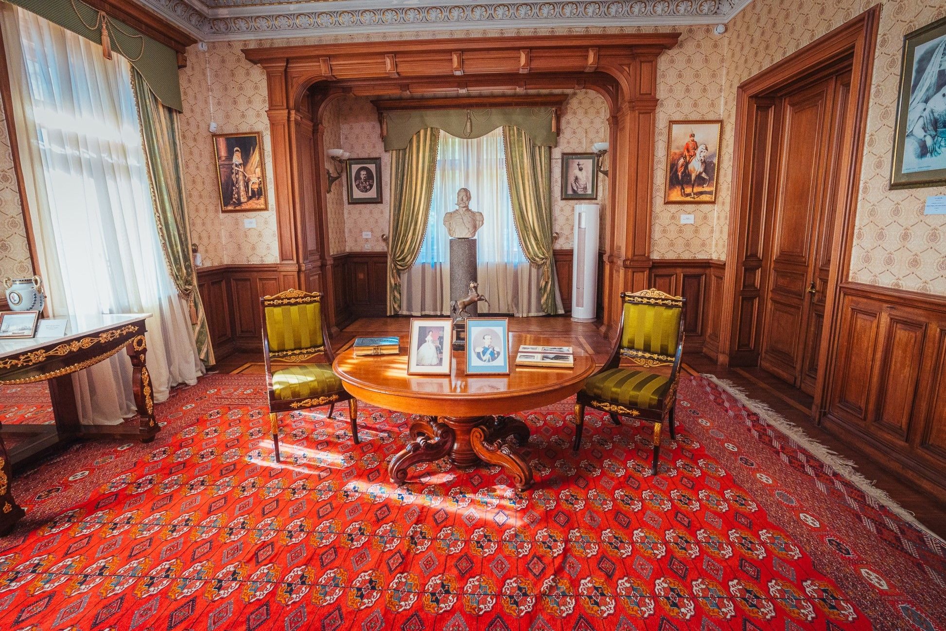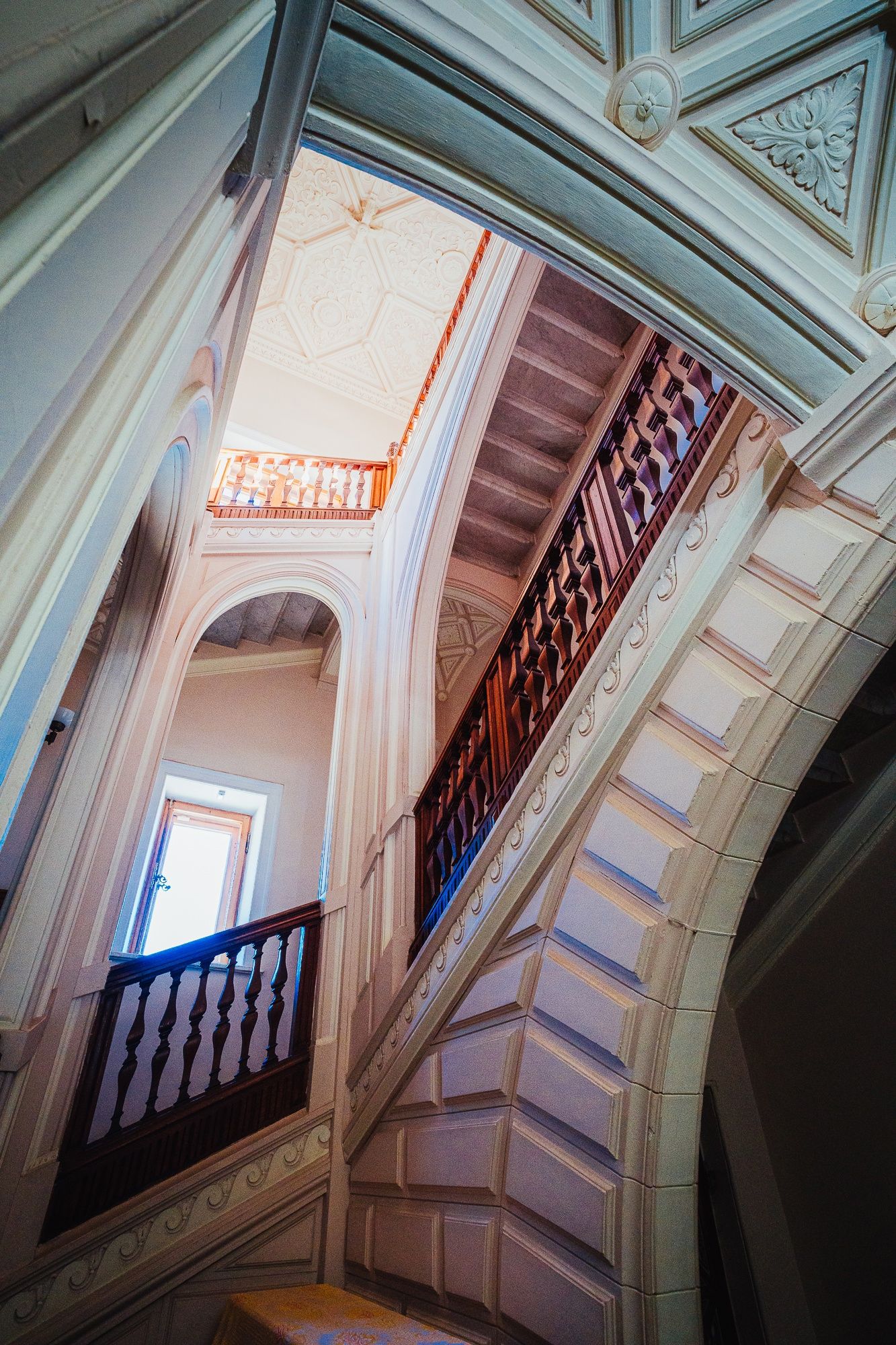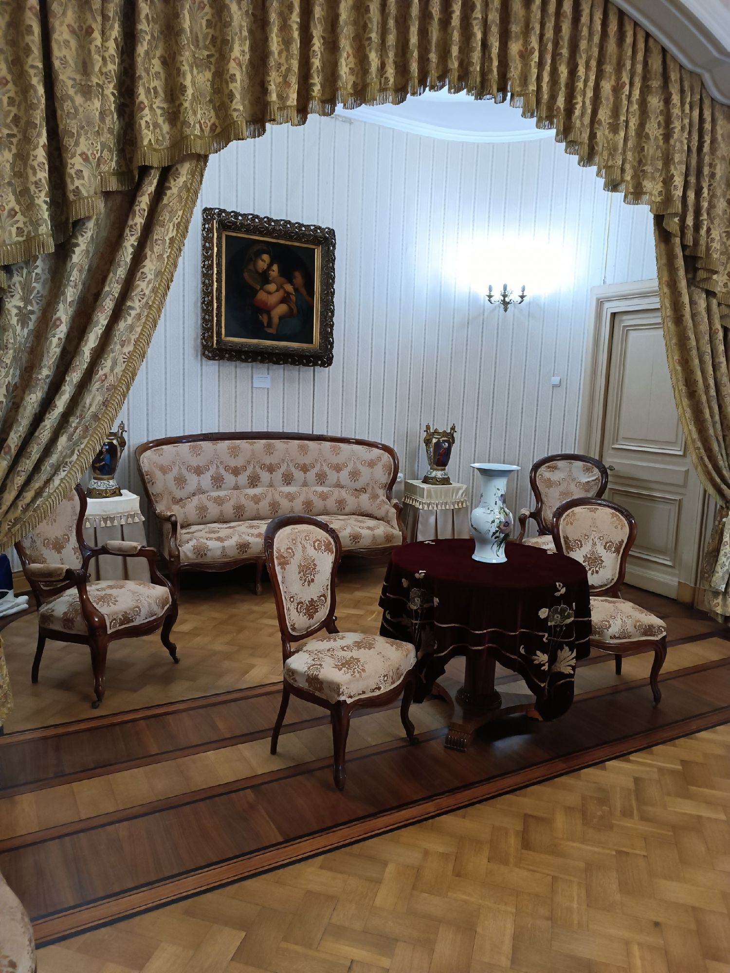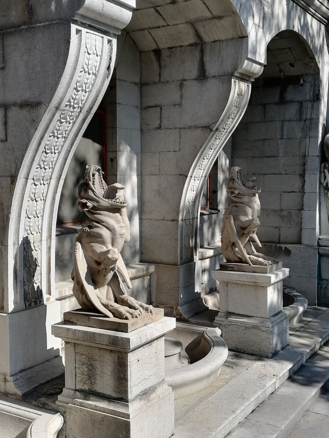 29 мая Буду заканчивать рассказ о поездке. а то сплошная болтология и никакой вышивки (хотя вышиваю мало, времени нет, на этой неделе вообще ни крестика не сделала) Значит, решили мы покорить все дворцы, которые возможно, и направились в другую сторону от Ялты - в Массандровский дворец. Все-таки интересно, на ЮБК столько много дворцов, но все они разные, все совсем друг на друга не похожие! Вот и Массандровский дворец нисколько не похож ни на Ливадийский, ни на Юсуповский, ни на Воронцовский! Массандровский дворец построен в стиле лучших французских ренессансных замков XVII-XVIII веков. начал строительство один из Воронцовых, но так и не закончил и стоял этот недострой до того времени, пока не купил эти земли для царской семьи Александр III. Александр III рассматривал Массандру как дачу, место летнего отдыха для своей семьи и приказал дворец достроить. Однако этим планам не суждено было сбыться: осенью 1894 года император умер, не успев пожить во дворце, строительство которого снова застопорилось. Словно злой рок преследовал это место. Ни один из владельцев дома не успевал его обжить. После этого Николай II приказал достроить Массандровский дворец в память об отце. Однако семья последнего российского императора тут никогда не жила, и даже не останавливалась на ночь. Сердце их безраздельно принадлежало любимой Ливадии. Дворец полностью оказался достроен лишь к 1902 году. До революции тут никто не жил. Чтобы правильно понять интерьер Массандровского дворца, нужно знать некоторые факты о Александре III как личности. Он был высокий и крупный мужчина огромной физической силы, при этом не любил просторные помещения и высокие потолки. Ему нравилось, чтобы свод комнаты был максимально близко над ним. Царь предпочитал темные цвета и приглушенное освещение. Он был также патриотом и предпочитал все русское, включая бороды бояр и допетровские костюмы. Именно таким образом был спланирован интерьер Массандровского дворца. В нем отсутствуют высокие потолки и просторные помещения. Даже в столовой, которая была довольно большой, потолок настолько низкий, что возникает вопрос о том, не ударился бы царь головой, если бы обедал там. Интерьер дворца прекрасно сохранился, позволяя оценить замысел архитектора и стиль жизни царской семьи. Однако из-за того, что дворец не использовался, многие помещения остались недоделанными. Например, комнаты на третьем этаже, предназначенные для детей царя, никогда не были обставлены. Лишь несколько помещений в полной мере были отделаны и готовы к использованию: вестибюль, приемные комнаты царя и царицы, кабинеты для венценосной пары, супружеская спальня, гостиная императрицы, столовая и бильярдная. В интерьере Массандровского дворца также широко использована метлахская плитка. Применялись разные породы дерева, такие как дуб, орех и красное дерево. Отделка выполнена с большим мастерством, включая сложную резьбу и расцвеченное выжигание по дереву. В дворце также есть другие интересные предметы. Например, в кабинете императрицы уникальный камин из коричневого мрамора, а также ручная люстра и уникальное зеркало. Для отделки помещений использовались также витражи и живопись по стеклу, создавая приглушенное освещение, которое так нравилось Александру III. Помимо красоты, дворец также обладал удобствами. Там была электрическая д