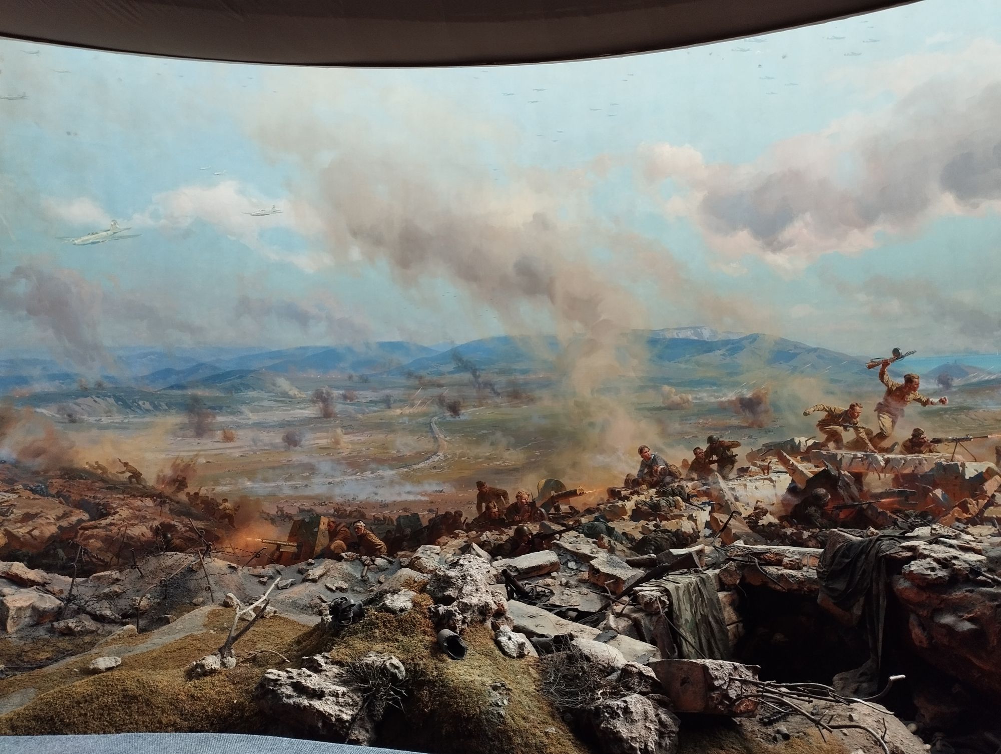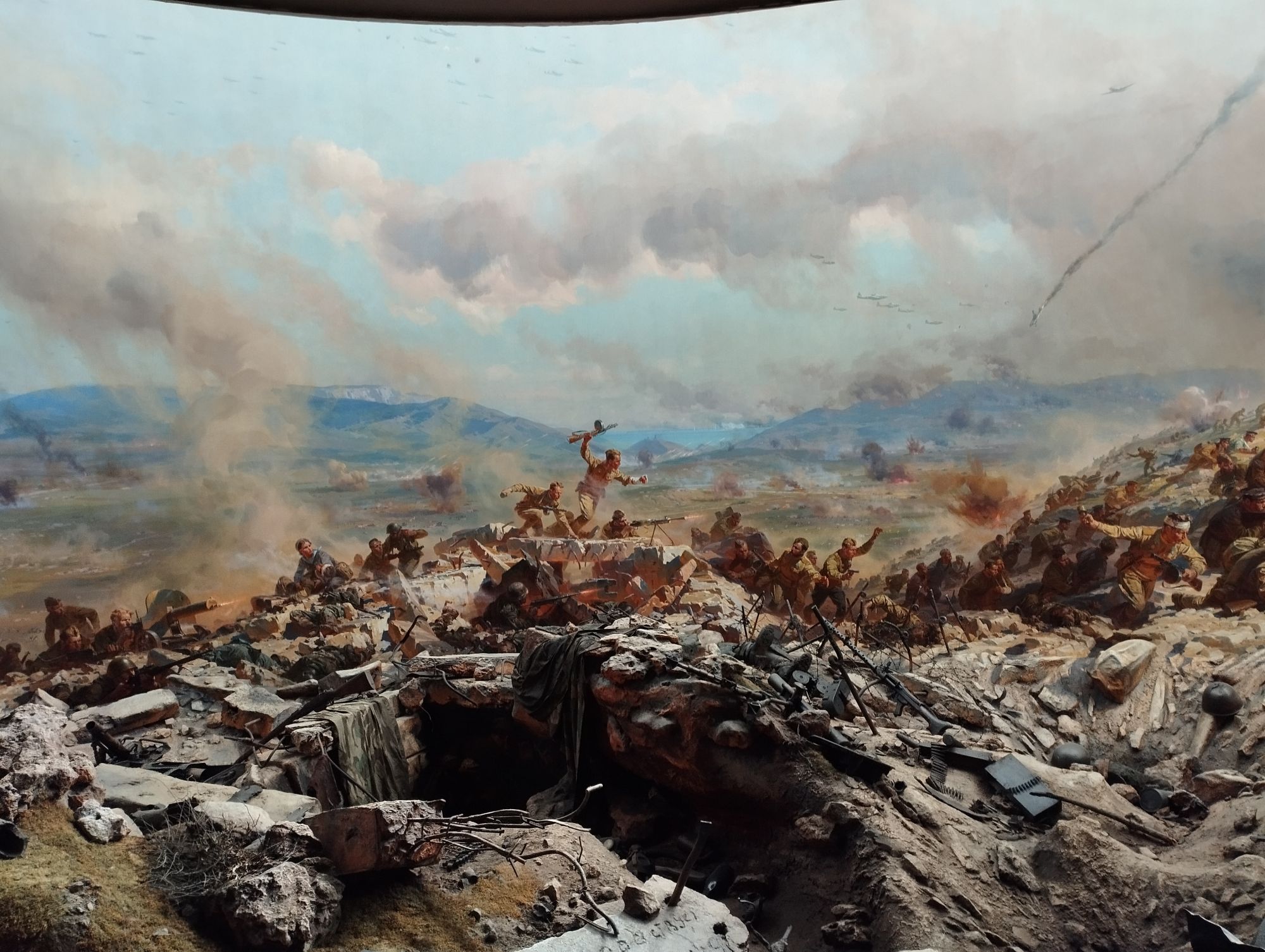 29 мая Ну и куда же без Севастополя.. Поехали на экскурсию, потому что мой муж хотел посмотреть диораму на Сапун-Горе, а туда добраться самим проблематично. Мемориальный комплекс "Сапун-Гора" посвящён героической обороне Севастополя в мае 1944 года. По одной версии своё название гора получила еще до Крымской войны. Так её прозвали местные охотники. Во время трудного пешего подъёма многие шли с одышкой или «сопели» в пути. Со временем глагол «сопеть» преобразовали в имя горы — Сапун. Есть и другая версия названия. Сапун-гора в переводе с крымско-татарского языка означает «мыльная гора». Долгие годы в этих местах добывали белую мылящуюся глину, из которой делали мыло и первый стиральный порошок. Для жителей Крыма природное мыло из глины стало настоящим подарком. С его помощью получалось отстирывать жир и краску. Даже в солёной морской воде оно не теряло своих моющих свойств. Кроме того, глину использовали как косметическое и лечебное средство. Ну а мировую славу Сапун-горе принесли героическая оборона в 1942 году и штурм советскими войсками её высот, занятых немцами, в мае 1944 года. Мощно укреплённая тремя рядами окопов и дзотов, окружённая минными полями, Сапун-гора стала неприступной крепостью и серьёзной преградой для наступающих советских частей. Советские войска начали подготовку к штурму за несколько месяцев до штурма, а к 7 мая на вершине наконец подняли красный флаг. Эти события увековечены на Диораме. Живописное полотно составляет 25 метров в длину и пять с половиной метров в ширину. На переднем плане, перед круговой картиной, декораторы воспроизвели обстановку штурма высот Сапун-горы. Реальные предметы, военная техника и фигуры придают картине объём, а зрителям добавляют эффект присутствия. Конечно, интересно, но тяжело, там рассказывают истории жизни, иногда очень короткой, защитников Севастополя, в том числе тех, кто изображен на картине, играет музыка, в общем, я там обрыдалась вся. Зарекаюсь в такие места ездить, но приходится - мой муж это любит. Он еще в Брестскую крепость хочет, но чувствую, что там моим нервам настанет окончательный капец. На территории Сапун-горы много военной техники времён войны, сохранились блиндажи, дзоты и окопы с колючей проволокой. Здесь же находится небольшая белая часовня с мозаичной иконой Георгия Победоносца. Еще нас завезли на 35-ю береговую батарею. Место, которое в июне-июле 1942 года стало последним пятачком героической обороны Севастополя для оставшихся 80-ти тысяч его защитников.Место, в котором было принято судьбоносное решение о прекращении обороны и эвакуации командного состава. Фото мало, первое - это вход, следующие три - выход, через который наши воины выбирались для разведок и атак. Такой контраст этих фото, и фото внутри, даже в тех местах, куда добирался солнечный свет..На стене фотографии защитников Севастополя, которые навсегда остались в далеких 1941-1942 годах... Глядя в их лица - иногда веселые, иногда сосредоточенные - понимаешь - эти люди жили, радовались, творили, и в один миг их жизнь прервалась как прервались миллионы жизней в ту войну... Еще есть стена с фамилиями защитников. Точнее, стены, одной стены оказалось мало.. Экскурсия длилась почти 2 часа, но пролетели они, как один миг. Экскурсия интересная, похожая чем-то на Аджимушкайские каменоломни, только не так глубоко. Там я тоже обр