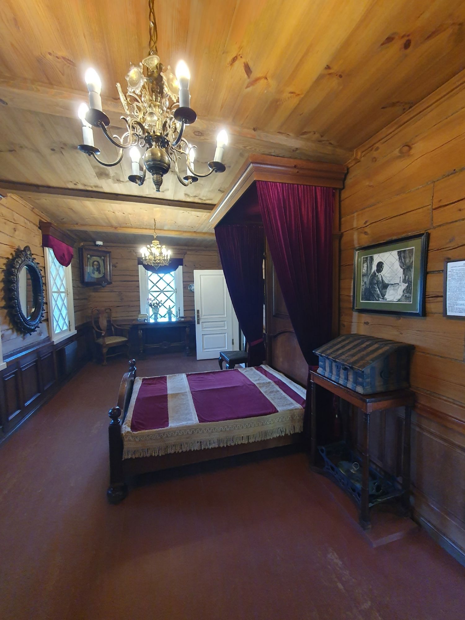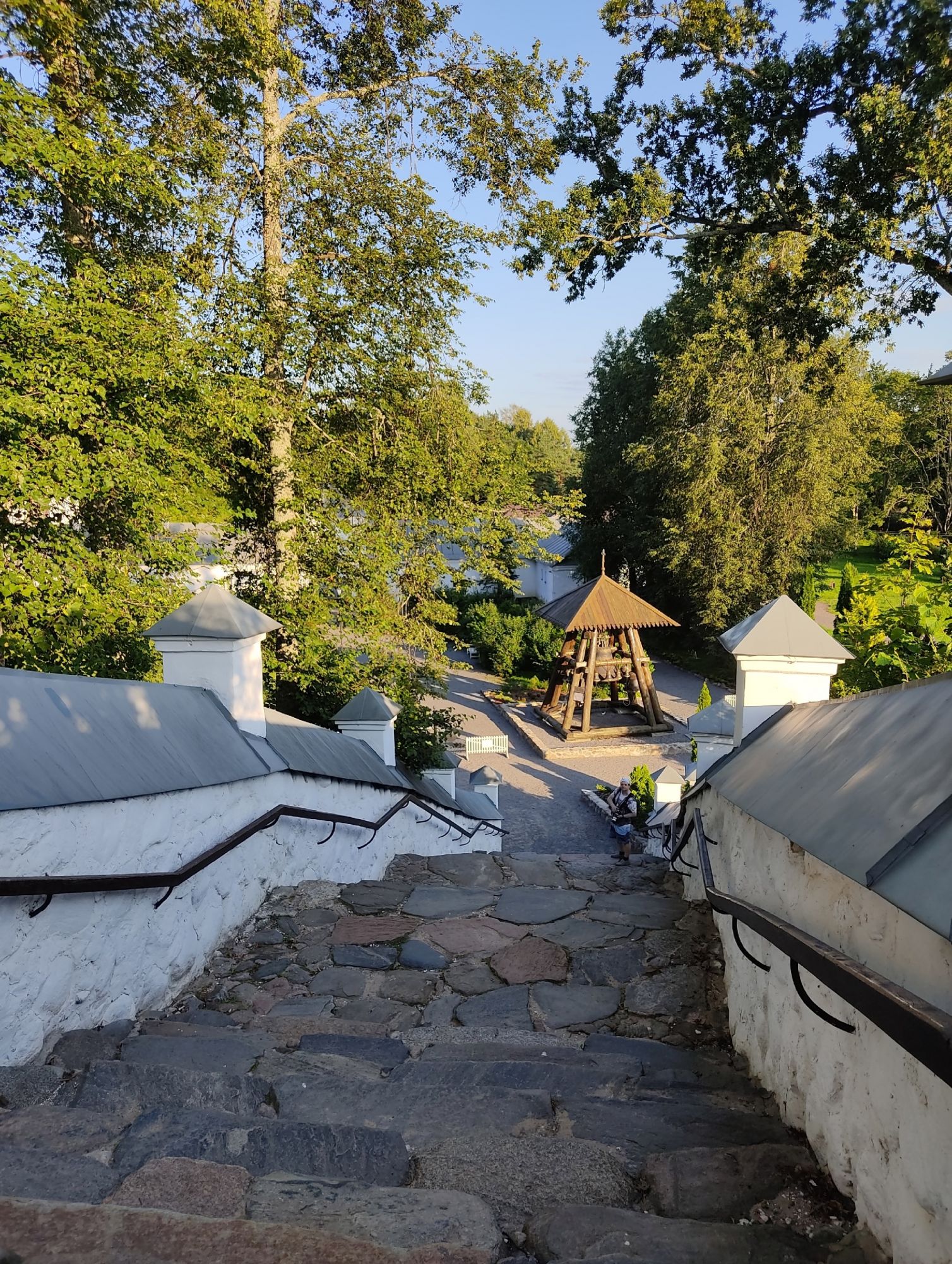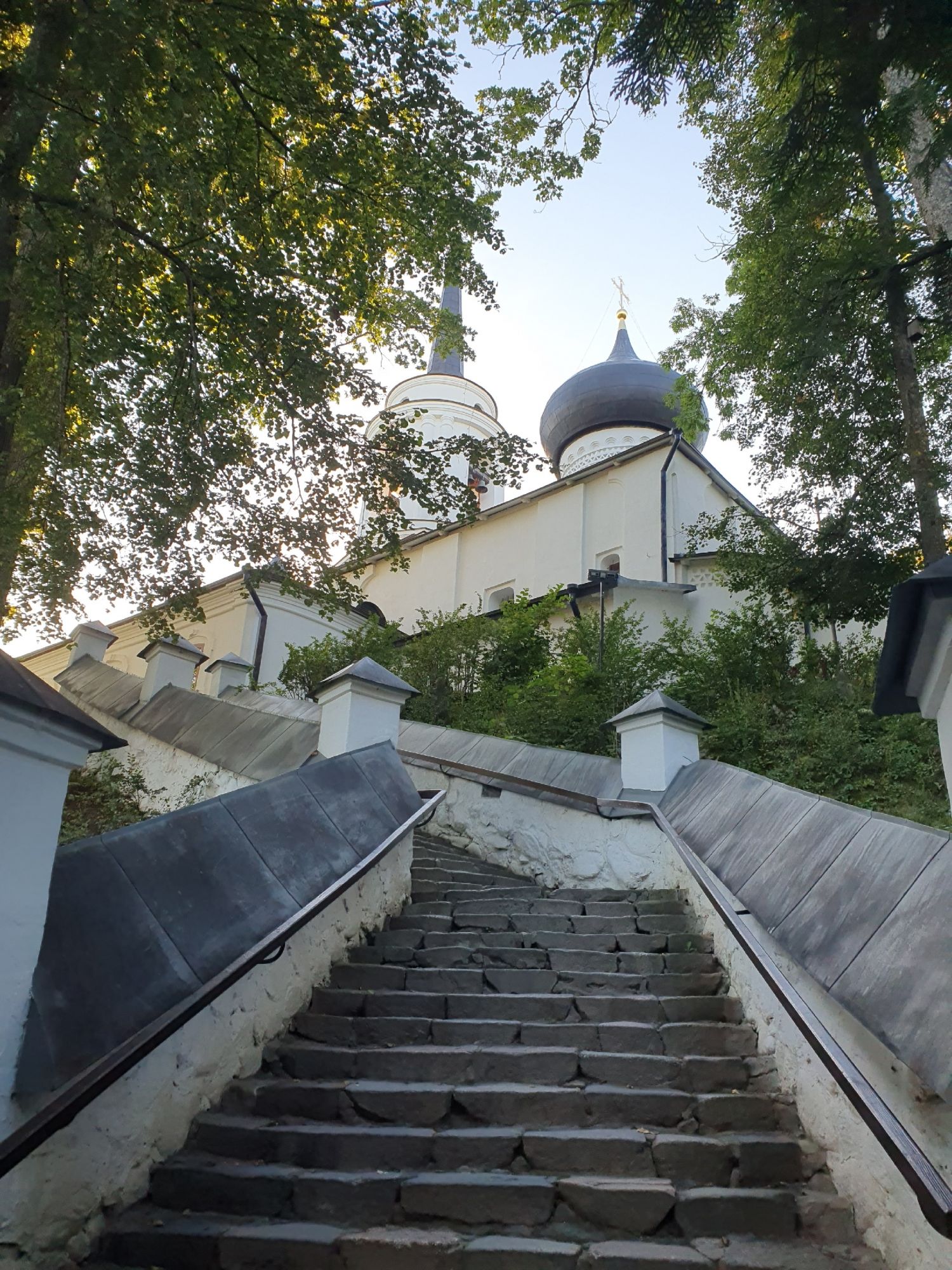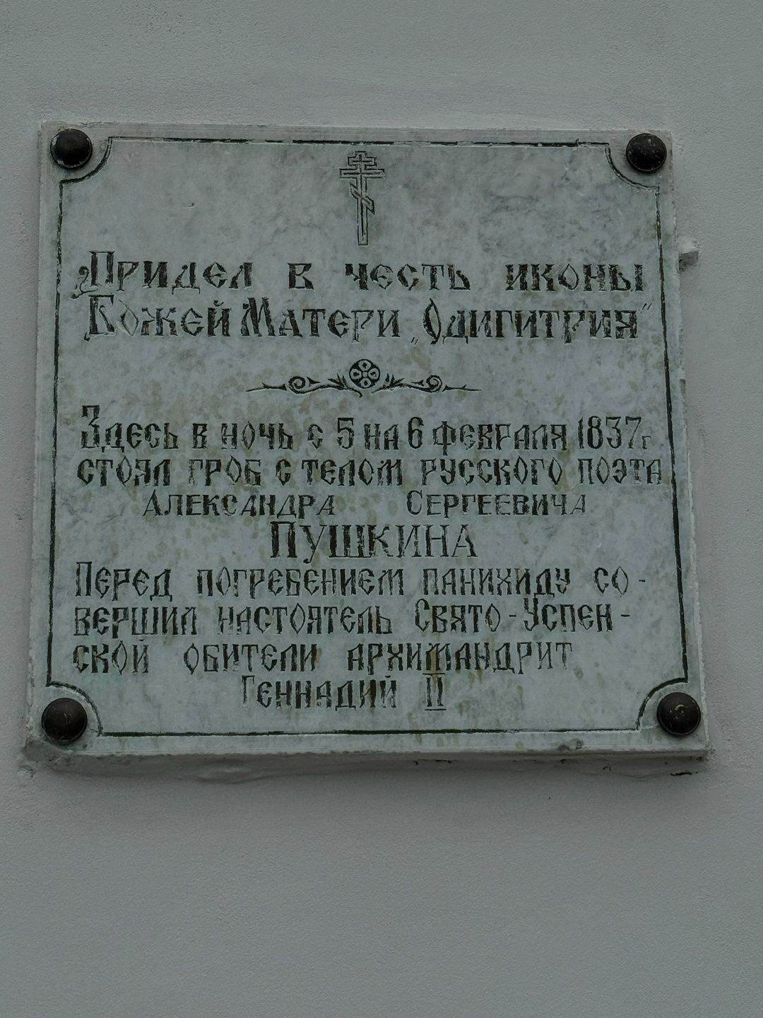 23 сентября Следующая усадьба - Петровское. это усадьба Абрама Петровича Ганнибала прадеда А. С. Пушкина, пожалованная ему и названная в честь его покровителя - Петра I. И внутри. Пошикарнее, чем в предыдущих домиках. И главная святыня Пушкинских гор - Свято-Успенский Святогорский монастырь. был основан по повелению царя Ивана IV в 1569 году на месте явления святому блаженному Тимофею иконы Божией Матери "Одигитрия". По одним сведениям, Тимофей был безродным юродивым, по другим - сыном благочестивых родителей. Как бы то ни было, работал он пастухом, и в один из вечеров, по обыкновению, пас коров у реки Луговка. И было ему видение - в сияющем ореоле явилась ему икона Богородицы «Умиление», находившаяся в Вороничской приходской церкви. Голос свыше повелел ему идти на Синичью гору, где узрит он Благодать Божию. Пастух так и сделал, оставил коров, которые, согласно легенде, сами вернулись к хозяевам, и отправился на гору, где во второй раз явилась ему икона «Умиление» и слова о том, что через шесть лет на этой горе просияет благодать Божия. Юноша никому об этом не сказал. Спустя некоторое время Тимофей вновь пришел на гору и нашел там при сосне стоящую Богородичную икону Одигитрии. Он сделал близ нее кущу и пещеру и провел в молении 40 дней, после которых от иконы произошел глас, повелевший ему объявить об этом в пригороде Воронич, чтобы священство и народ пришли в пятое воскресение после Пасхи с иконой Умиление Божьей Матери из Воронича на Синичью гору. В учрежденном крестном ходу, на месте, где было первое явление пастуху при реке Лугвицы, начались исцеления болящих и продолжались до Синичьей горы. Об этом было донесено царю Ивану Грозному, который прислал следователей. После удостоверения об исцелениях велено было на этой горе, прозванной с тех пор Святой, поставить часовню для прихода туда впредь со святыми иконами из Воронича. На праздник Покрова Богородицы туда был организован крестный ход. В ту же ночь часовня загорелась, огонь погубил все в ней находившееся, кроме чудотворных икон Умиление и Одигитрии, оставшихся невредимыми. Когда об этом узнал Грозный, он повелел устроить на этом месте монастырь и на Святой горе воздвигнуть каменную церковь во имя Успения Богородицы так, чтобы алтарь занимал то самое место, где при сосне было явление иконы Одигитрии. Обитель издревле входила в ряд самых почитаемых на Руси. Среди многих даров царей и вельмож, хранившихся в монастыре, были пожалованный Иваном Грозным 15-пудовый колокол, прозванный в народе Горюном, и Евангелие - дар царя Михаила Федоровича. Колокольню в монастыре начали возводить в 1764 году. На третьем ярусе колокольне были устроены «железные боевые часы с четвертями» - сейчас они утрачены, остались лишь следы на месте, где они находились. Общая высота колокольни, с высоким шпилем, яблоком и крестом, составила 37 метров — столько же, сколько прожил Пушкин. Колокола Святогорского монастыря являются одной из интереснейших его достопримечательностей. Одна из легенд рассказывает, что обитель заказала заводу купца Тюленева в Москве большой колокол. Во время отливки случилась неожиданная для мастеров проверка. Мастера, часто утаивавшие серебро, вынуждены были все спрятанные слитки бросить в сплав, из которого готовился монастырский колокол. Так Святогорская обитель получила один из редчайших 