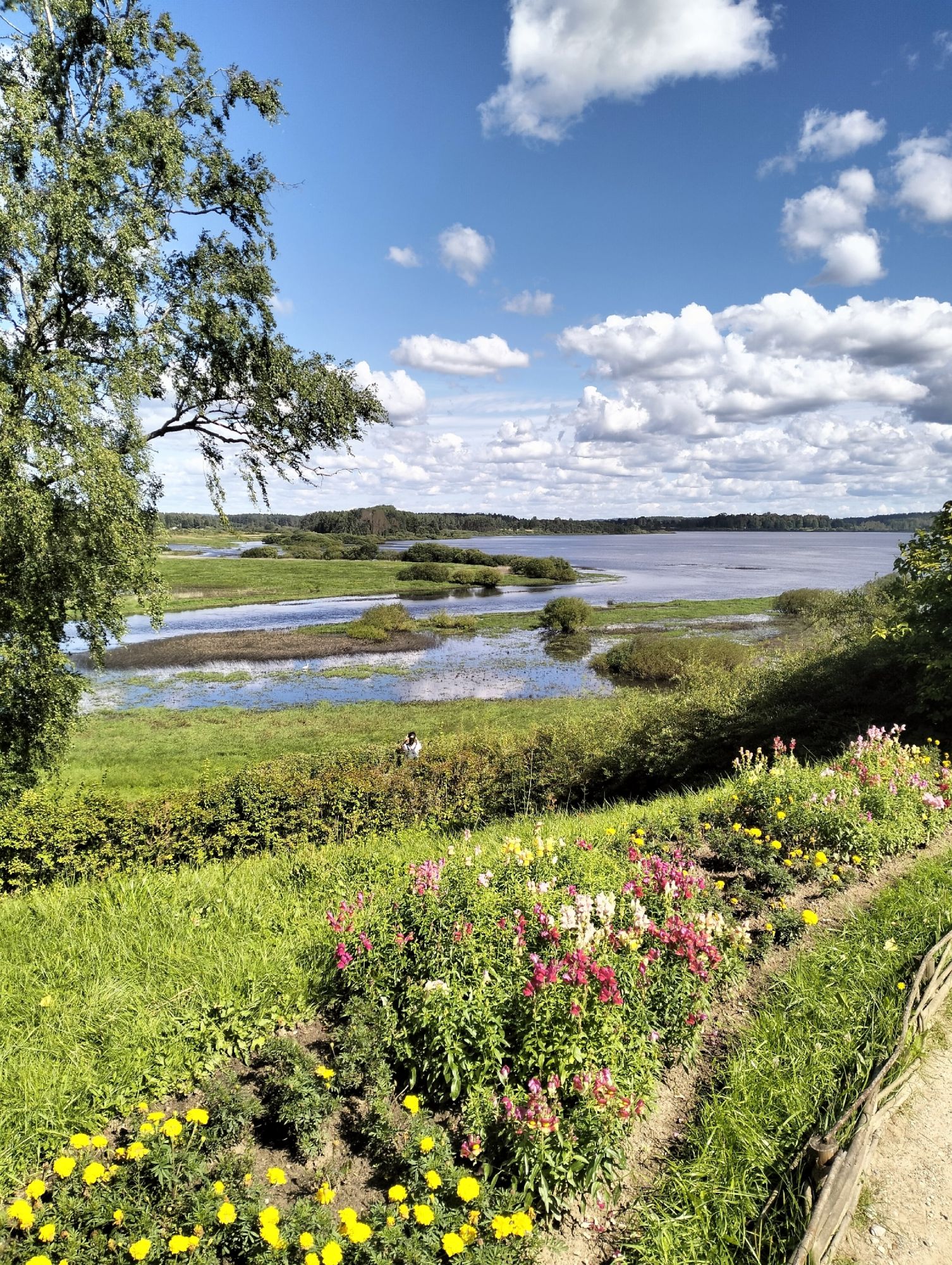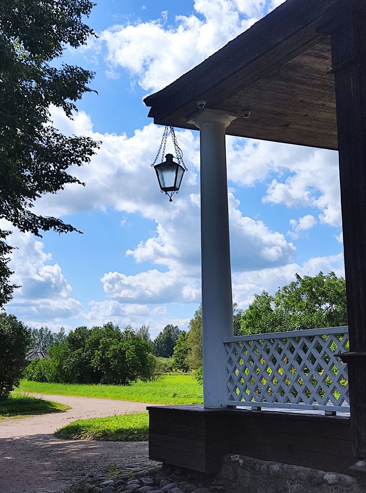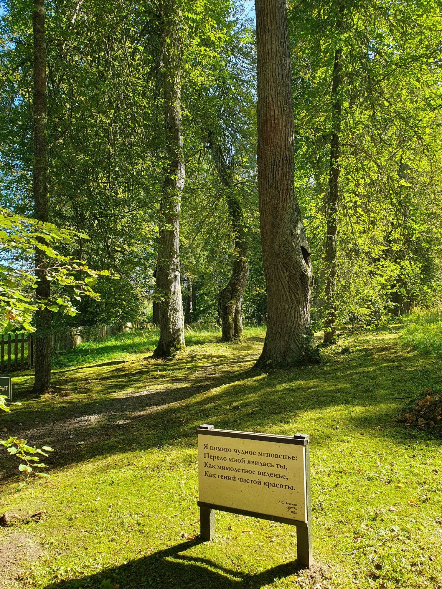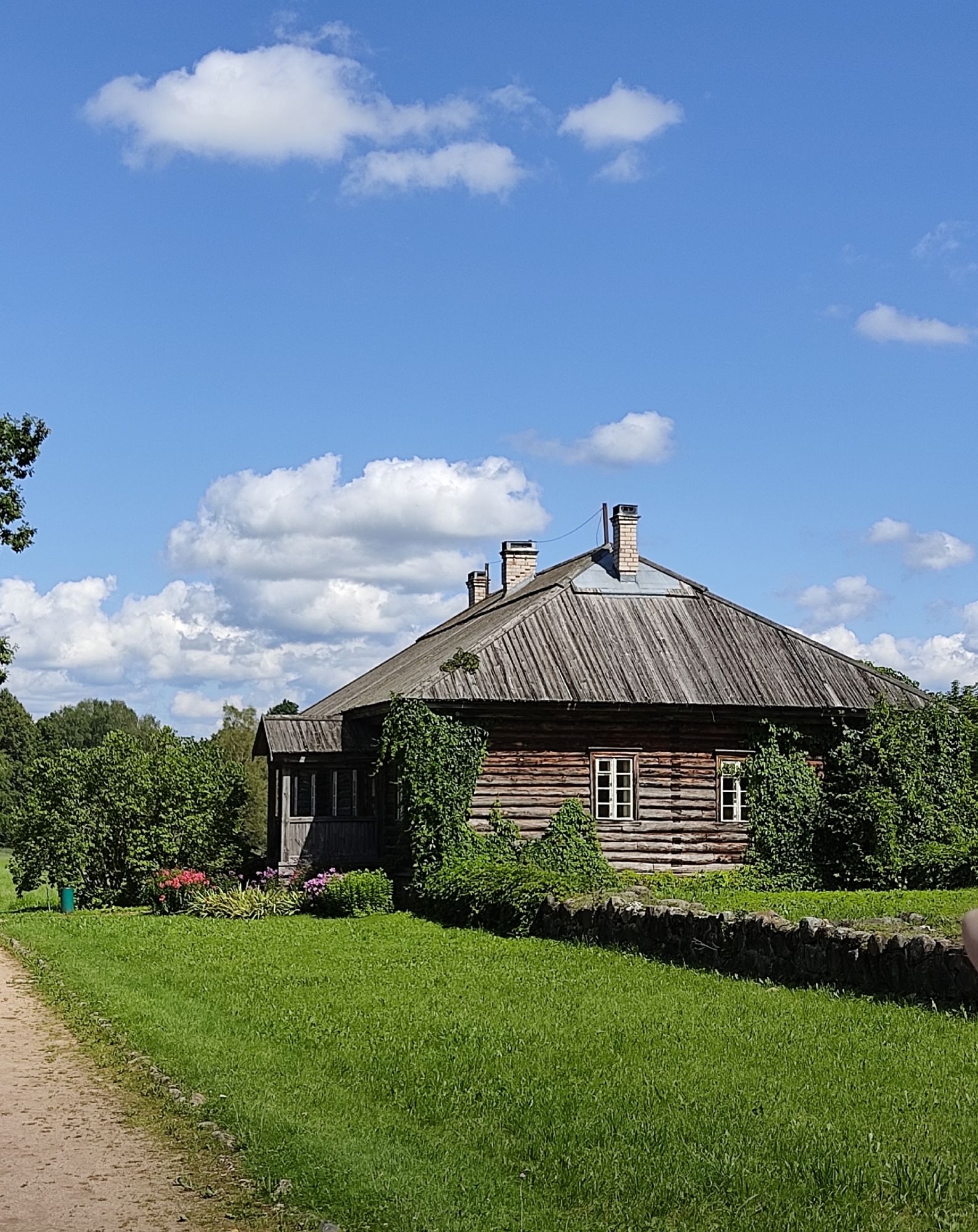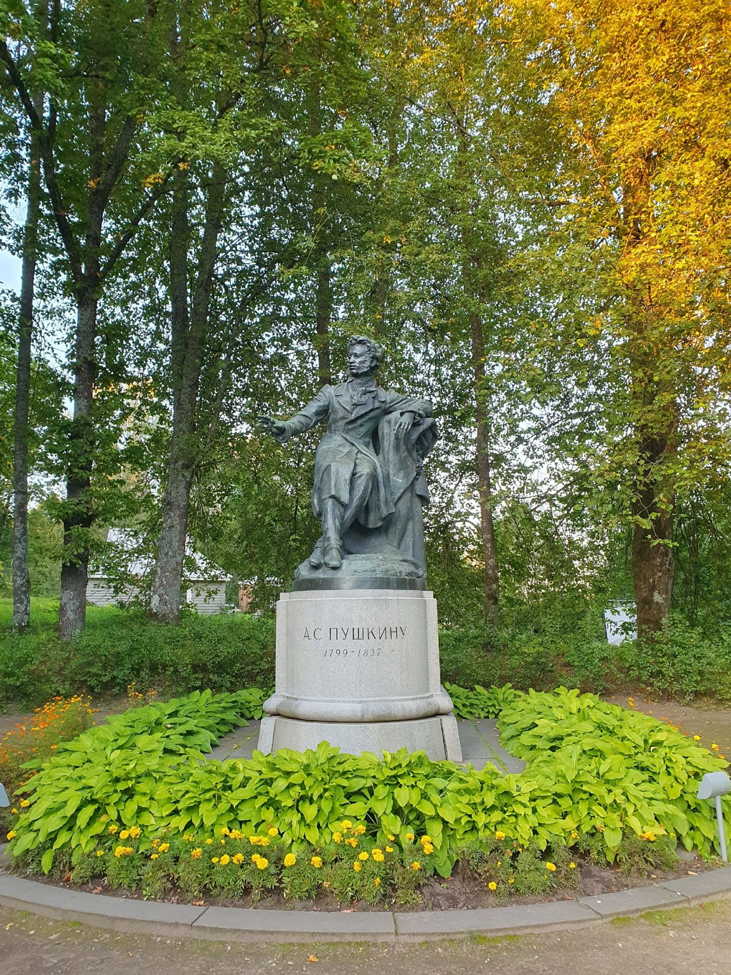 23 сентября Всем привет! Сегодня отчета вышивального не будет, а будет отчет путешественный. И предлагаю я вам проехаться со мной по пушкинским местам. «Меня зовут холмы, луга, Тенисты клены огорода, Пустынной речки берега И деревенская свобода» В первые две недели сентября погода порадовала нас - было практически лето, тепло и сухо. И направились мы в Пушкинские горы, Псковской области. Как многие знают, именно там находятся поместья родни Пушкина. И первое - это Михайловское - родовое поместье матери А.С. Пушкина. Прадед Александра Сергеевича, Абрам Ганибал получил это поместье в подарок в 1742 году от императрицы Елизаветы Петровны. А.С. Пушкин неоднократно посещал Михайловское, ставшее для него «приютом спокойствия, трудов и вдохновенья». Родным домом, кабинетом, источником богатейших жизненных наблюдений — вот чем всегда была для Пушкина псковская деревня. В Михайловском было написано около 100 произведения поэта. Впрочем, не всегда он был там по доброй воле - в 1824 году его сослали туда за вольнодумство в ссылку. Судьба дома была трудной. Сначала имение выкупили на народные пожертвования в государственную собственность в конце 19 века, в 1918 году оно было сожжено, в 1937 г. к 100-летней годовщине со дня гибели Пушкина, дом был вновь восстановлен. В 1944 г., во время немецкой оккупации, дом-музей А.С. Пушкина был уничтожен и восстановлен к 1949 году и повторяет облик дома, в котором жил поэт. Внутри — скромная, но аутентичная обстановка. Там же, в Михайловском, имеется скульптура Пушкина под названием "Пушкин-лицеист". Скульптура «Пушкин-лицеист» расположена в яблоневом саду, в Михайловском парке, у дорожки, ведущей к острову уединения. Совсем юный Александр Сергеевич лежит на земле, как и положено отдыхающему лицеисту, а вокруг него растут цветы. Юноша сочиняет стихи, об этом говорит его поза: приподнятая рука и взволнованный взгляд. Этот памятник долго кочевал по разным местам Санкт-Петербурга, пока он, наконец, не приехал в Михайловское в 1981 году, где и стоит уже более 40 лет (ну или лежит). Недалеко от Михайловского находилась усадьба помещиков Осиповых-Вульф - Тригорское. Во время ссылки Пушкин, сдружился с владелицей поместья – Прасковьей Александровной и ее семьей. «Я часто вижусь с одной милой старушкой соседкой — я слушаю ее патриархальные разговоры» - пишет он в одном из писем. Забавно читать сейчас такие строки, учитывая то обстоятельство, что в момент написания Пушкиным этого письма Прасковье Александровне было всего 43 года. На территории Тригорского очень живописно – фруктовые деревья, красивые пруды, ажурные мостики и тенистые аллеи. Некоторые объекты со временем приобрели собственные имена – «аллея Татьяны» со старыми липами – ровесницами Пушкина, «Танцевальная площадка», смотровая точка «скамья Татьяны и Онегина», «Солнечные часы», «Ель-шатёр», которая укрывала от осадков даже в ливень, к сожалению, она не сохранилась. А еще времени проведённому в Тригорскому Пушкин посвятил свои стихи: «Простите, верные дубравы! Прости, беспечный мир полей, И легкокрылые забавы Столь быстро улетевших дней! Прости, Тригорское, где радость Меня встречала столько раз!» Тригорское, конечно, похоже больше на сарай, чем на барскую усадьбу. Но на самом деле это нет изначальная усадьба Осиповых-Вульф. Изначально дом был другой. Большое семейство с труд