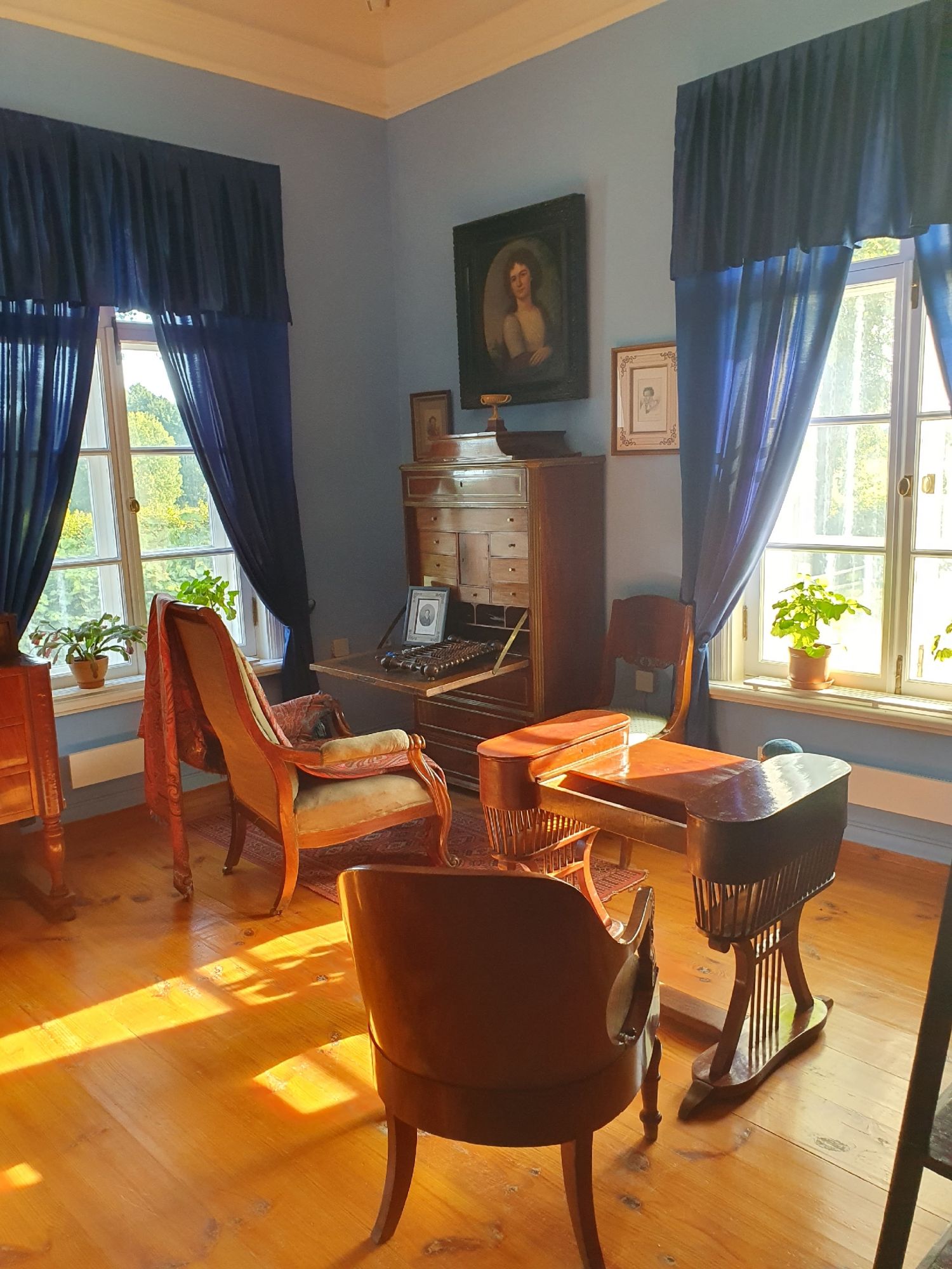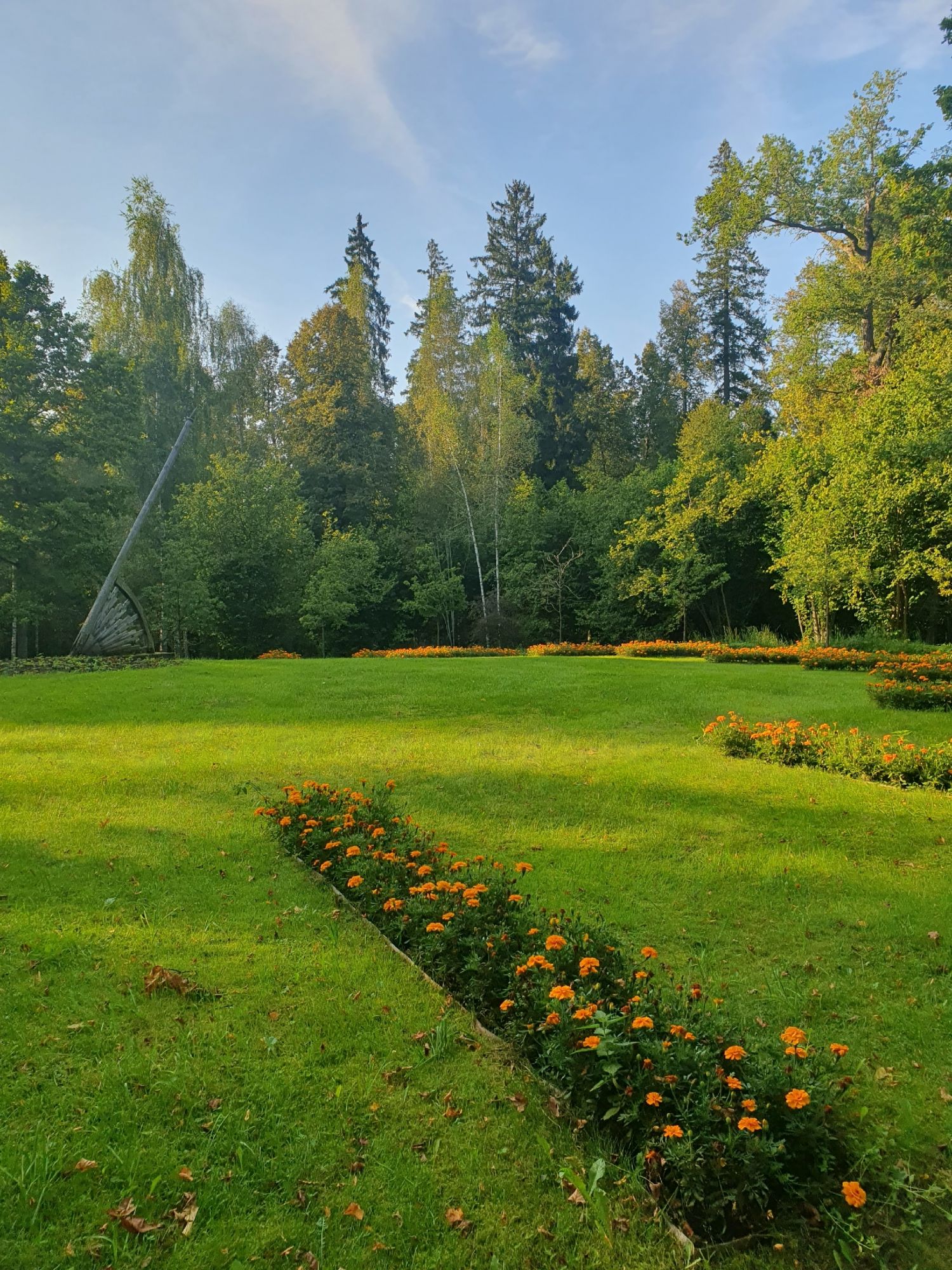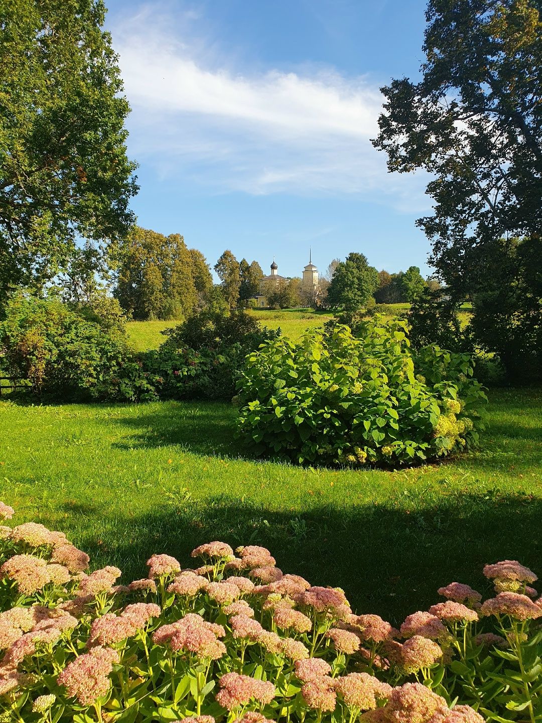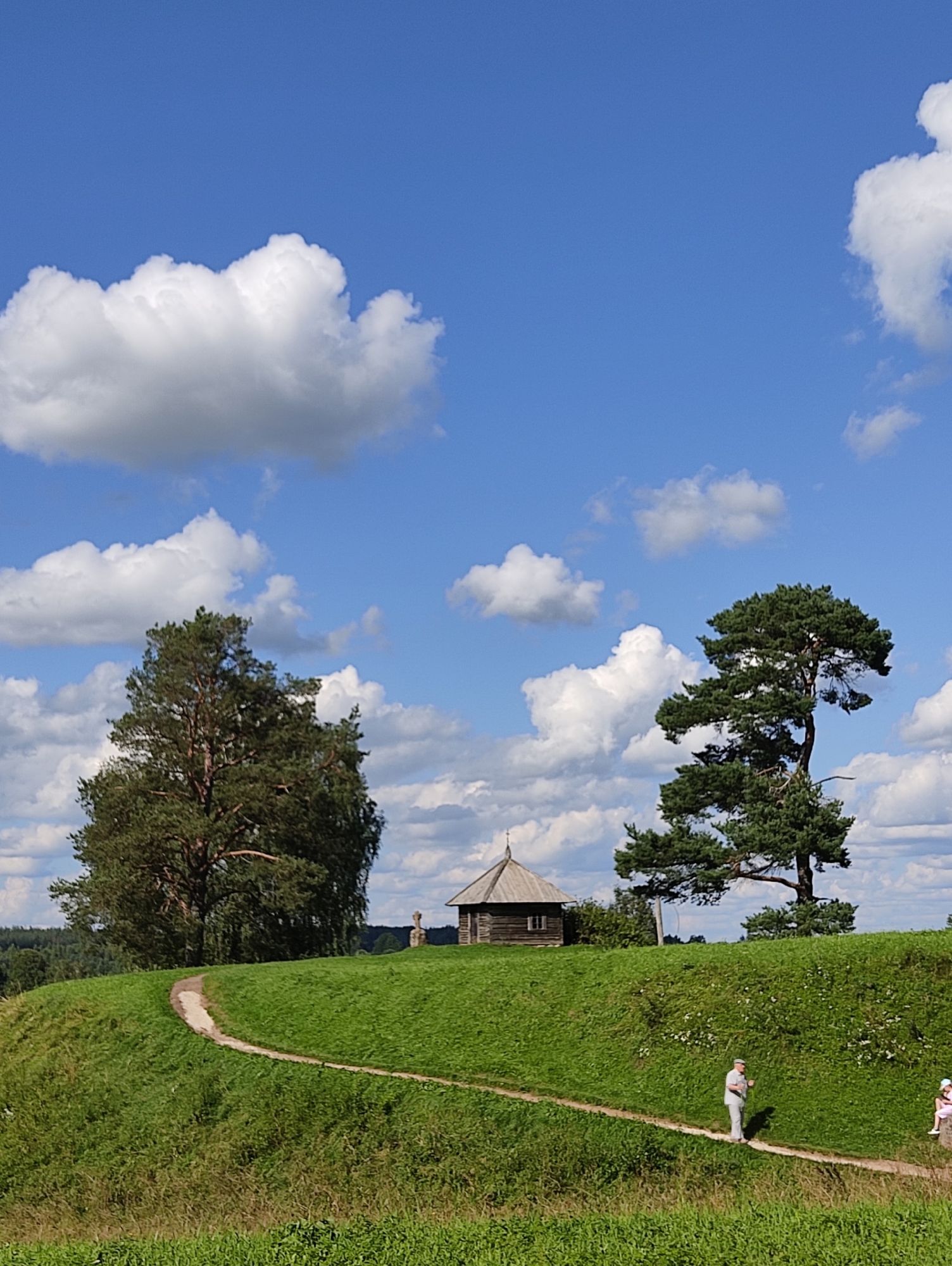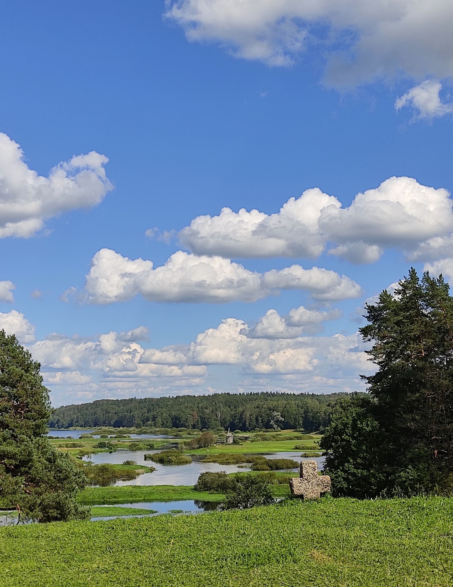 23 сентября Всем привет! Сегодня отчета вышивального не будет, а будет отчет путешественный. И предлагаю я вам проехаться со мной по пушкинским местам. «Меня зовут холмы, луга, Тенисты клены огорода, Пустынной речки берега И деревенская свобода» В первые две недели сентября погода порадовала нас - было практически лето, тепло и сухо. И направились мы в Пушкинские горы, Псковской области. Как многие знают, именно там находятся поместья родни Пушкина. И первое - это Михайловское - родовое поместье матери А.С. Пушкина. Прадед Александра Сергеевича, Абрам Ганибал получил это поместье в подарок в 1742 году от императрицы Елизаветы Петровны. А.С. Пушкин неоднократно посещал Михайловское, ставшее для него «приютом спокойствия, трудов и вдохновенья». Родным домом, кабинетом, источником богатейших жизненных наблюдений — вот чем всегда была для Пушкина псковская деревня. В Михайловском было написано около 100 произведения поэта. Впрочем, не всегда он был там по доброй воле - в 1824 году его сослали туда за вольнодумство в ссылку. Судьба дома была трудной. Сначала имение выкупили на народные пожертвования в государственную собственность в конце 19 века, в 1918 году оно было сожжено, в 1937 г. к 100-летней годовщине со дня гибели Пушкина, дом был вновь восстановлен. В 1944 г., во время немецкой оккупации, дом-музей А.С. Пушкина был уничтожен и восстановлен к 1949 году и повторяет облик дома, в котором жил поэт. Внутри — скромная, но аутентичная обстановка. Там же, в Михайловском, имеется скульптура Пушкина под названием "Пушкин-лицеист". Скульптура «Пушкин-лицеист» расположена в яблоневом саду, в Михайловском парке, у дорожки, ведущей к острову уединения. Совсем юный Александр Сергеевич лежит на земле, как и положено отдыхающему лицеисту, а вокруг него растут цветы. Юноша сочиняет стихи, об этом говорит его поза: приподнятая рука и взволнованный взгляд. Этот памятник долго кочевал по разным местам Санкт-Петербурга, пока он, наконец, не приехал в Михайловское в 1981 году, где и стоит уже более 40 лет (ну или лежит). Недалеко от Михайловского находилась усадьба помещиков Осиповых-Вульф - Тригорское. Во время ссылки Пушкин, сдружился с владелицей поместья – Прасковьей Александровной и ее семьей. «Я часто вижусь с одной милой старушкой соседкой — я слушаю ее патриархальные разговоры» - пишет он в одном из писем. Забавно читать сейчас такие строки, учитывая то обстоятельство, что в момент написания Пушкиным этого письма Прасковье Александровне было всего 43 года. На территории Тригорского очень живописно – фруктовые деревья, красивые пруды, ажурные мостики и тенистые аллеи. Некоторые объекты со временем приобрели собственные имена – «аллея Татьяны» со старыми липами – ровесницами Пушкина, «Танцевальная площадка», смотровая точка «скамья Татьяны и Онегина», «Солнечные часы», «Ель-шатёр», которая укрывала от осадков даже в ливень, к сожалению, она не сохранилась. А еще времени проведённому в Тригорскому Пушкин посвятил свои стихи: «Простите, верные дубравы! Прости, беспечный мир полей, И легкокрылые забавы Столь быстро улетевших дней! Прости, Тригорское, где радость Меня встречала столько раз!» Тригорское, конечно, похоже больше на сарай, чем на барскую усадьбу. Но на самом деле это нет изначальная усадьба Осиповых-Вульф. Изначально дом был другой. Большое семейство с труд
