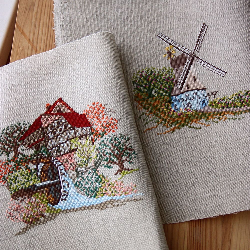 24 июня 2019 Лето, жара, настроение паршивое... Только вышивка и сериалы не дают загнуться совсем Как и всякая серьёзная вышивальшица, я тоже давно хотела иметь в доме вышитые мельницы! Дизайнов нравилось много, и сложно было определиться, пока в один прекрасный день не стала рыться в своих рукодельных журналах и нашла закладку свою в одном из них. На мельничках! Вспомнила, что именно из-за них и купила тот журнал несколько лет назад, И вот, всему своё время, дошла очередь и до них. Они небольшие, вышиваются легко. Основу взяла свою любимую, имитацию льна, нитки ПНК(19 цветов), не по ключу понятное дело, исключительно на глазок.Некоторые оттенки намеренно использовала в обеих вышивках, чтобы перекликались. Счетный крест, бэкстич. Оформить планирую в одинаковый багет, только неизвестно когда...но это мелочи! Журнал "Вышитые картины" №3, 2014 г. Старая мельница Хозяйка смешных зверей, irinka-mandarinka, Эйри и 5 других сказали спасибо Поделиться сообщением Ссылка на сообщение