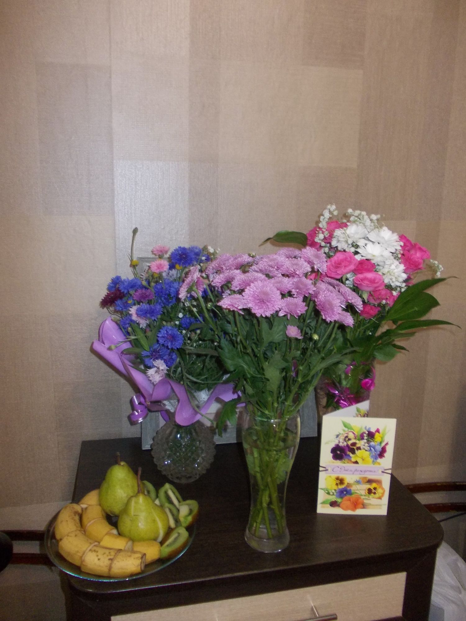 20 июля 2017 Привет! Хочу показать наши юбилейные букеты (маме сегодня 80 лет). Внучка принесла утром два букета: васильки розы с хризантемами Потом зашла женщина из совета ветеранов медиков, такие вот хризантемки принесла, пачку чая и коробку конфет. . А лилии привез племянник из деревни. Посидели вчетвером за скромным столом: юбилярша с дочерью, племянником и внучкой. "Иных уж нет, а те далече"© чеба, Gala83, olnikva и 26 других сказали спасибо Поделиться сообщением Ссылка на сообщение