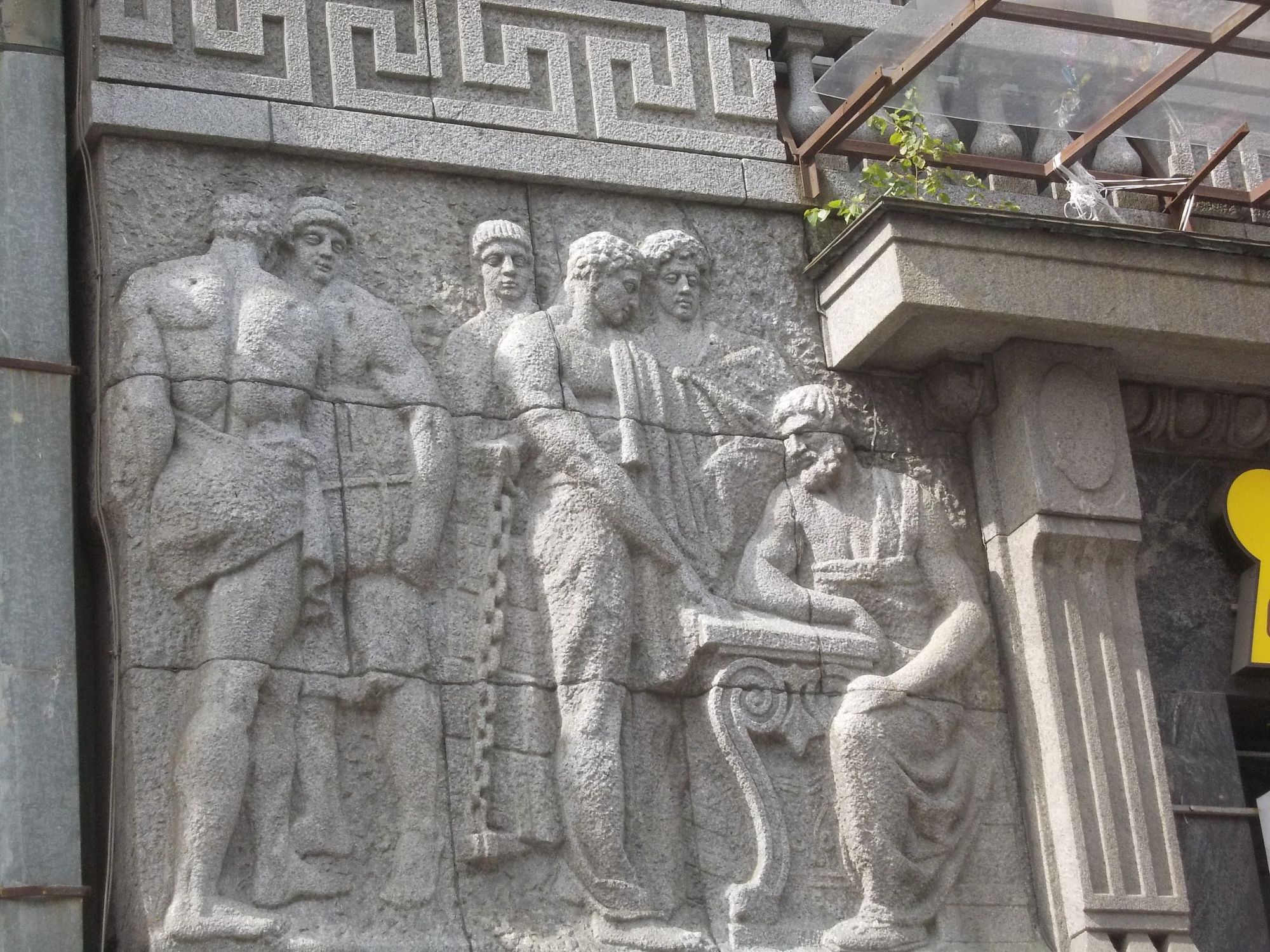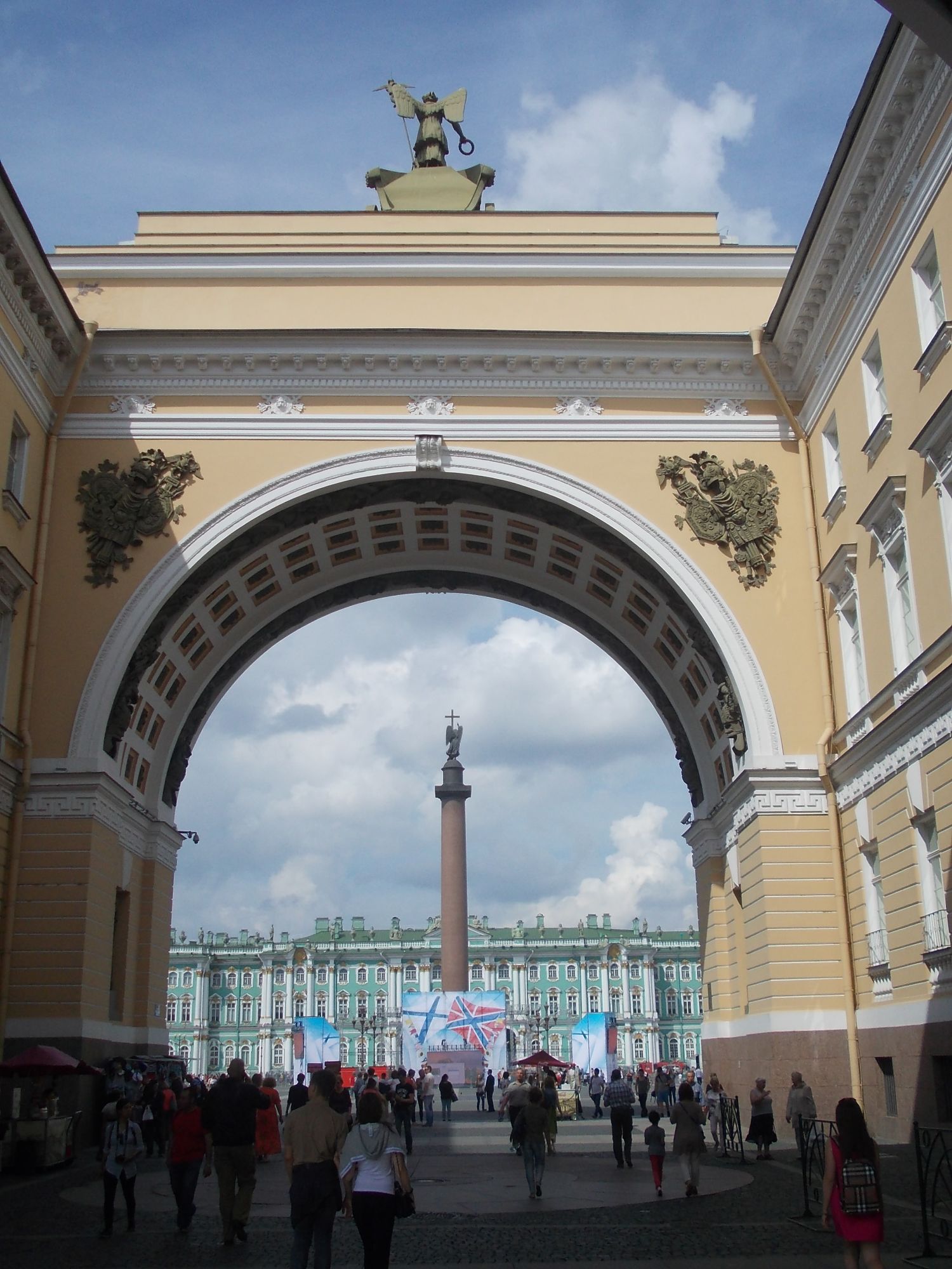 9 августа 2017 Всем привет! Это первый день в центре СПб. Жила я далеко за городом, электричка до Витебского вокзала , так что пошли пешком по Гороховой в сторону "открыточных" видов. до Адмиралтейства не дошли, свернули на Большую Морскую. Нашла сейчас подробности про этот дом Большая Морская улица Дом № 3–5. Здание бывшего Азовско-Донского коммерческого банка. Построено в 1907–1910 гг. архитектором Ф.И. Лидвалем и снаружи полностью декорировано серым гранитом. Здание имеет характерный для времени модерна асимметричный фасад. Он оформлен четырьмя колоннами, каннелюрованными в нижней части, и шестью пилястрами. Особенно интересны овальные медальоны между окнами четвертого этажа (изображения Америки, Африки, Европы, Азии) и стилизованные многофигурные барельефы на уровне первого этажа, исполненные скульптором В.В. Кузнецовым. Современники отзывались об этом здании с восхищением и считали его одной из лучших построек, «привлекательной своей слитностью с улицей, общею соразмерностью частей и прекрасно нарисованными деталями». Гранит в фасаде ровного серого окраса, имеет слабо заметную полосчато-сланцеватую текстуру. По одним сведениям, он добыт на месторождении «Ковантсари», по другим – на Вуоксе, в обоих случаях – на Карельском перешейке. Главный вход в банк отделан снаружи зеркальнополированным пестро-полосчатым камнем бело-черной окраски. Эта эффектная в полированном виде горная порода относится к плагиогнейсам. В отделке интерьеров применены бело-зеленые и буровато-зеленые полосчатые мраморы из Швеции, из района Стокгольма. Арка была построена как главный и завершающий монумент, посвящённый Отечественной войне 1812 года. К. Росси, проектируя главную площадь молодой столицы, решил связать два крыла Главного штаба триумфальной аркой[4]. Она состоит из трёх связанных между собой арок, декорированных барельефами и обрамляющих вход на площадь со стороны Невского проспекта (этот участок до перекрёстка с Морской улицей в старину назывался Луговой, или же Малой Миллионной улицей). Максимальной выразительности композиция достигает при взгляде с площади. С высоты 36 м, на вершине строения, широко видная издалека, парит триумфальная колесница, влекомая шестёркой коней. Их сдерживают двое воинов, одетых в римские доспехи и вооружённых копьями. В повозке стоит крылатая Ника, простирающая левой рукой штандарт над площадью. В правой руке богини — лавровый венок. Скульптурная композиция раскрывает сущность памятника, символа воинской славы. Этот мотив продолжен во всех элементах арки: орнаменты на стенах арки сложены из воинских трофеев и венков, воинские трофеи сложены при входе на арку с Дворцовой. Победителей приветствуют фигуры богини славы, стремительно летящих на ядре и протягивающие им лавровые венки и пальмовые ветви. Завершая композицию, на площади, на уровне второго яруса окон Штаба, застыли в приветствии фигуры часовых в античных доспехах, протягивая лавровые венки в сторону входящих на площадь. Александрийская колонна (столп) Показался мне ниже и толще, чем на картинке. Видимо, у меня деформация после мультика с Масяней, где они пляшут с Хрюнделем возле неё . Как раз шла подготовка к празднованию Дня ВМФ, монтировали сцену, военная техника чуть в стороне стояла . Эрмитаж. Площадь Лошадки А вот и моя персона на месте событий) 