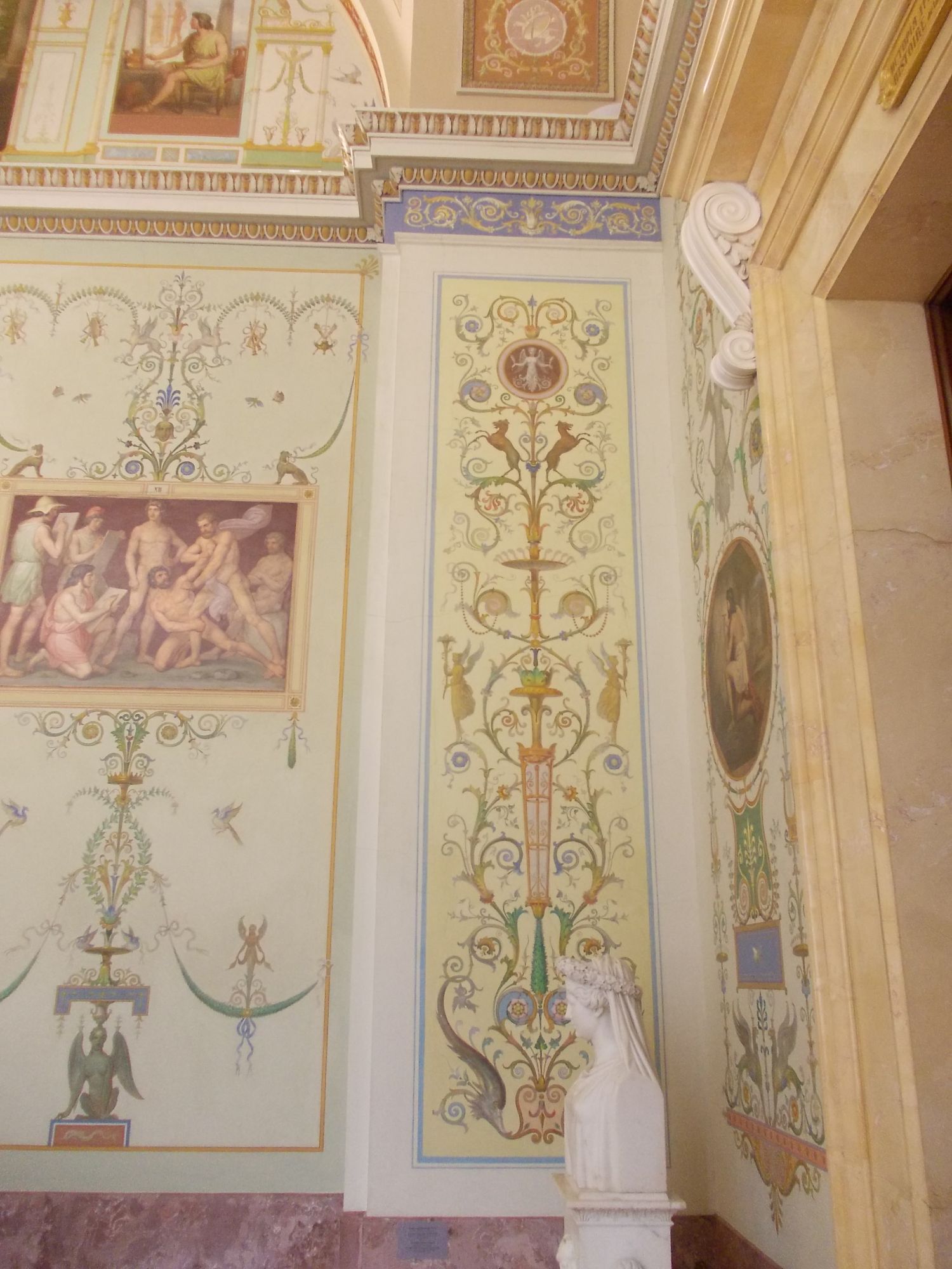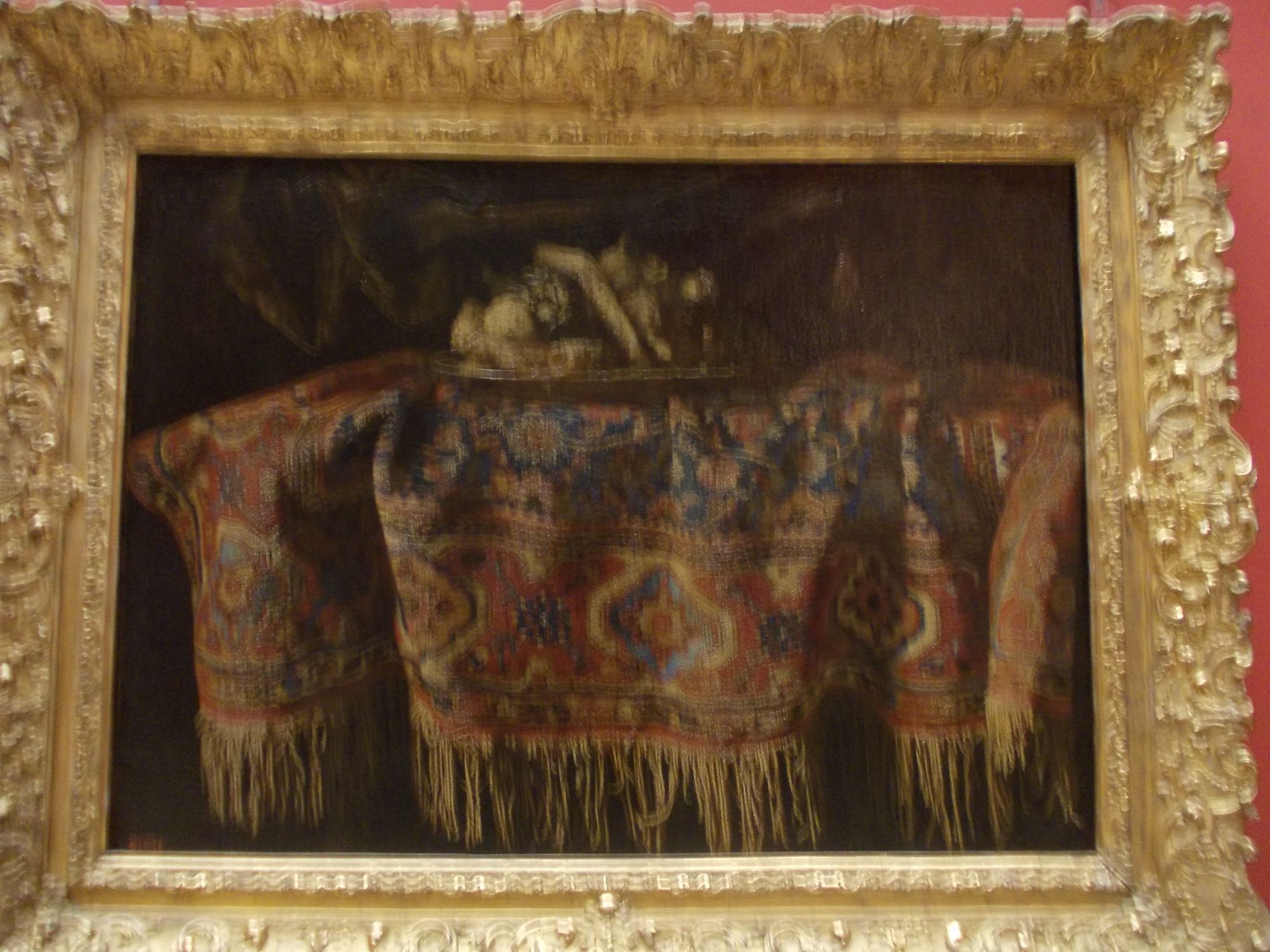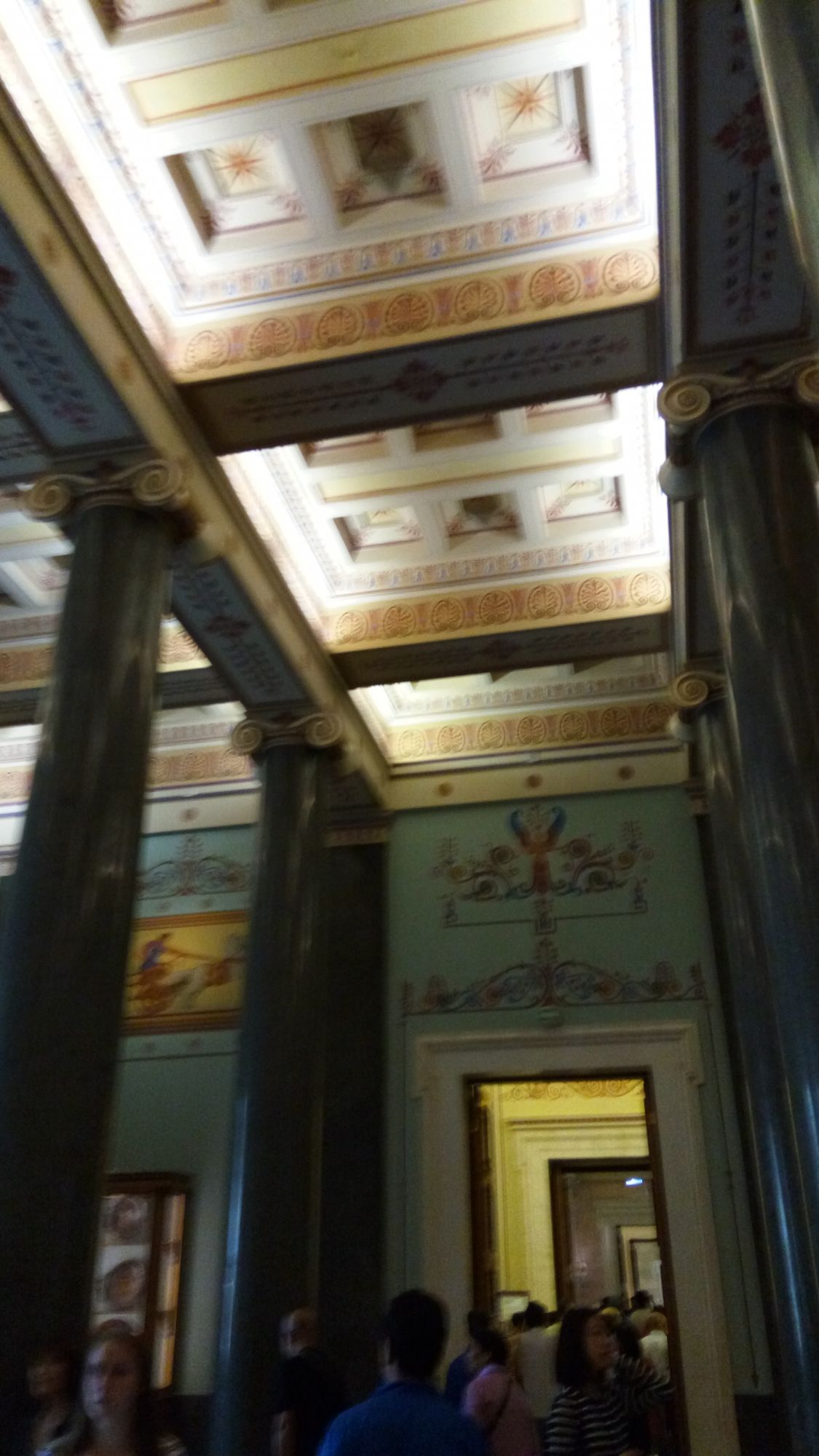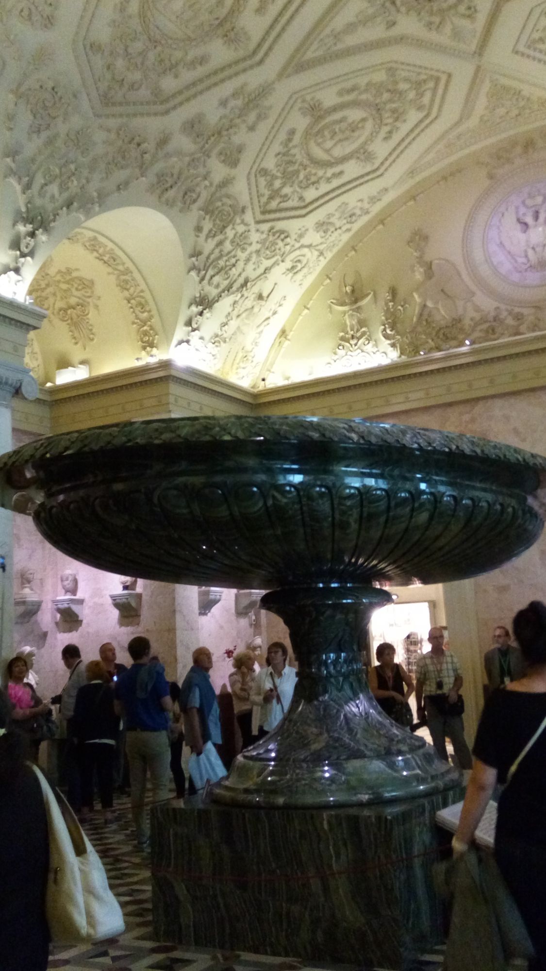 17 августа 2017 немного ЭРМИТАЖА В один из дней (дождливый) нам посчастливилось попасть в Эрмитаж. Моих фотографий будет мало, у меня опять начала вспышка шалить, а с ней не разрешают снимать. Да и посчитала я, что в сети достаточно профессиональных фото отличного качества. Подруга снимала на дорогой телефон с хорошей камерой. Шли мимо атлантов Зимняя канавка . Судя по картам и описаниям, мы были в Большом (Старом) Эрмитаже Эрмитаж, максимум, куда мы дошли, это церковь и тронный зал. Первое, что мы увидели, посуда и фарфор Очень понравилась такая картина, очень похожую я видела в Курском художественном музее в 1986 году, тоже был стол, покрытый ковром, на котором был виден каждый стежок. Просто фото без описаний, обилие впечатлений подавляет. Толпы людей, много китайцев и японцев) Сначала смотрели каждую картину и т.п., потом просто "впитывали" Очень много резного камня вот этот натюрморт и еще "парный" очень понравилисьбольше всех остальных картин (то ли вышивку мне напоминает большую и сложную) нашла по фото автора- Ян ван Хёйсум галерея, а тут подборка "Северный натюрморт XVII века". Голландцы очень понравились!! Особенно бытовые зарисовки, подробности выписаны изумительно! Это уже Гойя . Бродили мы совершенно бессистемно, у нас и плана не было, пока мы в каком-то зале не выпросили его). фрески на стенах вид через окно интерьер Это на втором этаже. Я увидела указатель "Античный мир" и увела Катю на первый этаж)) , ходили рассматривали посуду, монеты, украшения... Тут без комментариев, сами всё понимаете Странно только, что качество снимков такое плохое (с хорошего-то телефона). А это я снимаю своим . Что успела в Вк переслать, то и осталось, телефон уже дома внезапно накрылся. Это опять не мои снимки . Мы очень устали, долго искали кафе (потом так же долго искали туалет) , топтались по одним и тем же залам (через египетский прошли три раза туда и обратно), увидели цены на бутерброды и кофе и ушли. Решили охватить третий этаж), поднялись на лифте, там в нескольких залах современная мазня "ни о чём", народу, как и служительниц, нет. Зато был вид на площадь и мы немного полежали, поджавши гудящие ножки, на диванчике и глядя в окно. Кате было легче, она умудрилась выспаться в зале с Пальмирскими таможенными тарифами (Экспозиция «Культура Пальмиры», зал 91 Зимнего дворца) в дальнем углу за камнями виден диванчик, где это случилось))) Фото из интернета. Я всё цитату вспоминала из "Отпуска за свой счёт" "Ты что сюда, спать приехала? Спать и дома можно. А тут, тут ходить надо, смотреть. Впитывать" Скрытый текст За день до этого у нас случилась неприятность- Катю на скорой возили в районную больницу с приступом аллергии, вот после этого она пила Зодак и соответственно спала с него, как суслик, весь день. В "парадных" залах удалось прибиться к русской экскурсии и чуть-чуть с ними походить и послушать. Во дворцовой церкви Выставка платьев. Нашли местечко посидеть с видом на Неву Видели много инкрустированной мебели. Неожиданно)) вырулили в зал да Винчи и к золотому павлину . В общем, как сказал бы мой папа- бежала коза через мосточек, ухватила кленовый листочек.. Так и мы, чуть-чуть составили представление. Вот еще пара фото с моего скончавшегося телефона . В этот же день мы виделись с Танюшей, жаль, не дотумкали попросить Катю нас "щелкнуть из фоторужья". Прошу простить за бессвязность и су