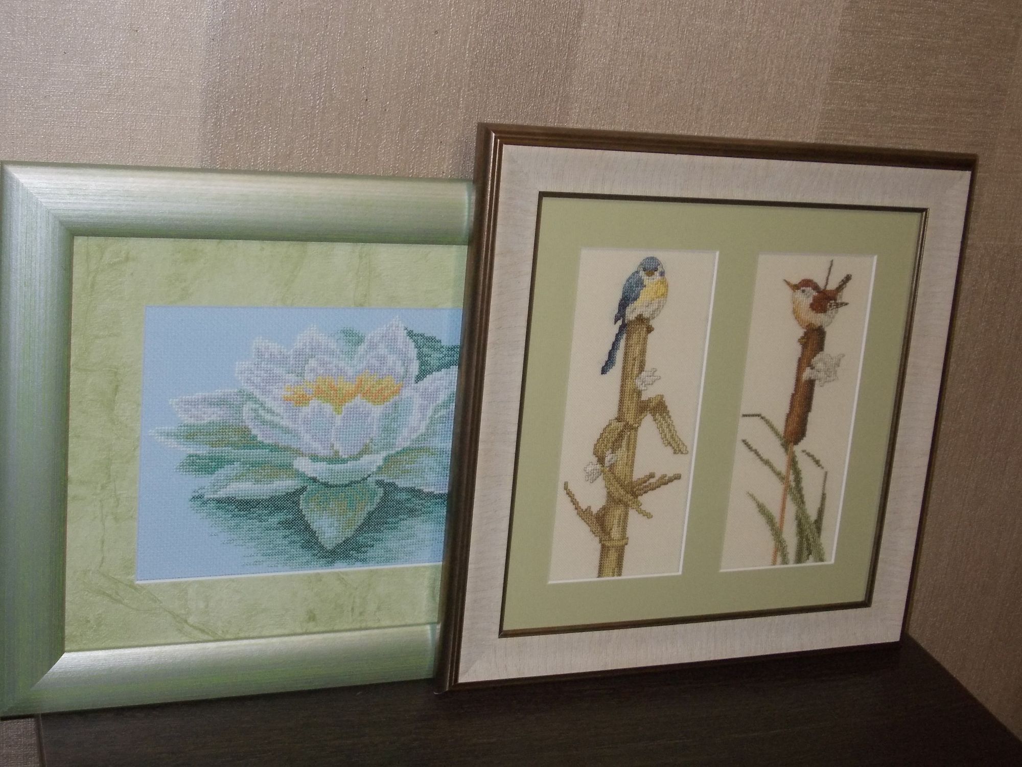 9 октября 2017 Добрый вечер! У меня оформились две работы. Птички Лилия Конечно, она слишком зелёная, но ничего удачнее я не придумала, канва очень уж "яростно" голубая . Решила, что пусть уж будет прудик/болотце, посреди которого она распустилась. Не думала, что вообще буду её оформлять. Кто помнит, это неудачный набор РТО В эту компанию (здесь же еще мостик с кувшинками, он давно висит) буду еще вышивать прудик риолисовский, что мне Таня @Мультифрукт подарила. И еще есть пейзажик у Риолиса подходящий, но он больше по размеру. Это для мамы на стену над её диваном. ЛАДОМИРА, Tris, ЛюдмилаЕр и 32 других сказали спасибо Поделиться сообщением Ссылка на сообщение