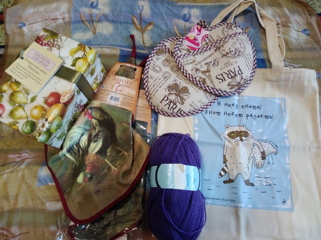 16 апреля 2018 8 часов назад, Мультифрукт сказал: покажи На-ко, на-ко вот) . Увы мне, фото с телефона опять размытые. Не смогла достойно запечатлеть сюрприз от Юли @Ponochka. Он так огромный, разнообразный и интересный! Опять работники почты дали мне веревочку, а то бы мне не донести, как-никак 4 кг!! Кстати, эти работники ничего не слышали про хранение посылок 15 дней (по-новому). Чего только не было в этой коробке! Я доставала и доставала, а меньше никак не становилось) Подарочный набор в красивой упаковке для балования себя красивые прихватки, салфетки из микрофибры с петухом и курочкой, сумка с енотом (у него моё выражение лица), пряжа)) Кулинарная книга, ежедневник, палантин, книга (Юля, у меня такая же лежит в корзине на Озоне! или в избранном). Чай, халва, мармелад! Вышивальное даже не знаю, как описать, так его много) Пяльцы! Судя по всему, мой любимый вариант из фикс-прайса, ничего удобнее пока не использовала- прекрасная натяжка, лёгкие, чего еще желать? А таких расцветок у нас не было) Два набора от Жар-птицы- явно отсылка к очень старому RTO, Овен с ракушкой домики- раритеты Риолис,Юля, как ты смогла с ними расстаться? Схемы старого Риолиса- по мотивам лаковой миниатюры и маленькие "игрушечные" сюжеты. Всего так много, что я могла что-то упустить. Юлечка, огромное тебе спасибо за внимание, щедрость, бесконечную доброту Каори, TheSunniestDay, Хозяйка смешных зверей и 23 других сказали спасибо Поделиться сообщением Ссылка на сообщение