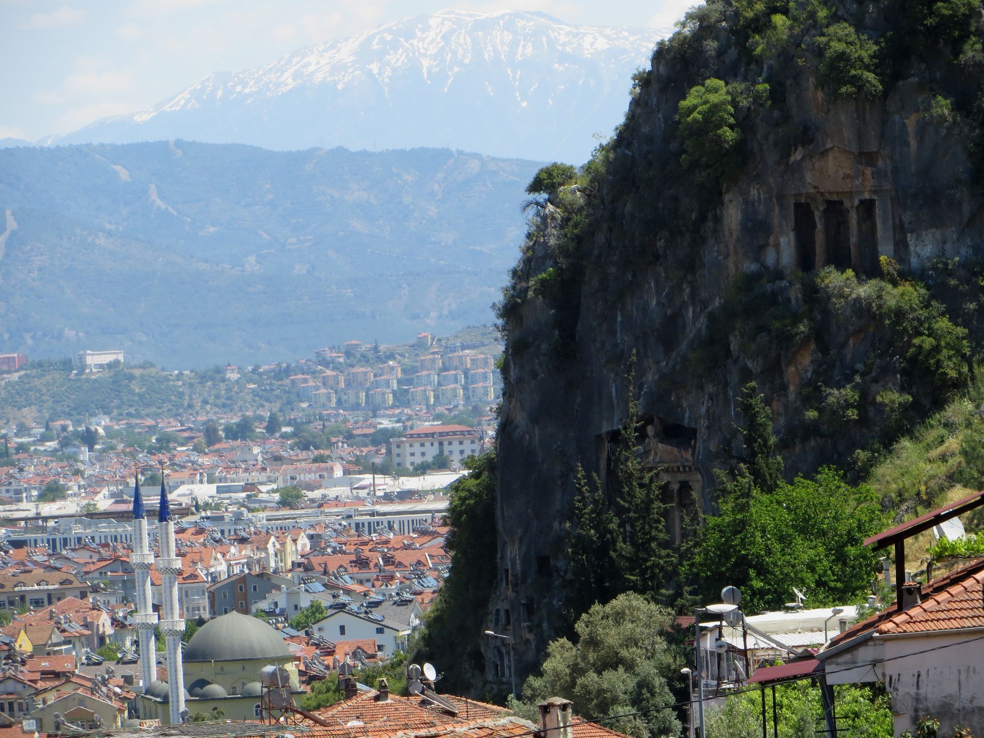 17 мая 2019 Поездка в Фетхие. Крепость и верхняя дорога. Фетхие (Фетие) - ближайший к нам город, добирались местной маршруткой (долмушем) около получаса. Сестра хотела увидеть древний амфитеатр, но напутала с картой и мы ушли на верхнюю дорогу (над городом). Прогулка получилась не самая лёгкая, местами в гору и на жаре, но очень приятная и интересная. Сначала мы из города поднялись мимо крепости (вернее, за ней, как выяснилось) наверх Олива цветёт у дорогикрепость с заднего "фасада". Поднимаемся наверх вот таких площадок несколько вдоль дороги, висят они на опорах над обрывом(( не все так хорошо затенены) Амфитеатр мы в результате увидели с высоты, но спуститься к нему с горы нельзя) и сам он очень осовременен, так что и смотреть нечего. Подойти к нему надо было с набережной (просто ржака над нами, куда мы залезли). Так что мы развернулись и пошли назад, на обратном пути завернули в саму крепость это вид снизу из города, а мы подошли от скалы с турецким флагом Далеко не лезли, буквально на пару пригорков. Рыцарская крепость (Фетхие) возведена в XV столетии родосскими рыцарями-госпитальерами из ордена Святого Иоанна. Она возвышается на вершине холма, у подножия которого раскинулся город. Сооружение претерпело значительные разрушения и сейчас представляет собой руины. От оригинальной постройки Рыцарская крепость (Фетхие) сохранила лишь фрагменты стен и емкостей для хранения воды. Зато с вершины холма открывается впечатляющий вид на море и город. Кроме того, возле стен замка можно найти памятники других культур, в частности, участки средневековой городской стены и древние захоронения на восточном склоне. Это уже путь вниз в город видны ликийские гробницы, к ним мы ходили в следующий приезд. Фото с набережной в следующем посте. apanjul, АриЯ, Каори и 22 других сказали спасибо Поделиться сообщением Ссылка на сообщение