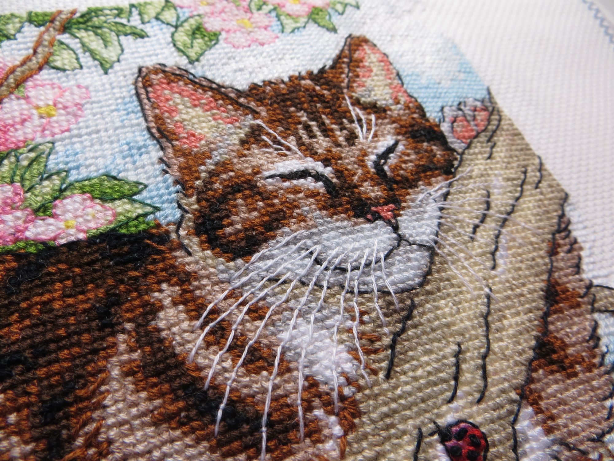 25 февраля 2020 16 часов назад, pepita сказал(а): С завершением котика! Он такой славный, на солнышке греется, весну зазывает. Оксана, спасибо! Хорошая картинка вышла. Спящие коты попёрли табунами)) Dimensions 06976 Попробуй расслабиться (Try to Relax), 18х13, аида 14, счетный крест Остатки этого набора я выиграла в Конфетке у Саши @Tris ещё в далеком 2016-м году) Сразу, как мне поручили вышить Слишком усталого кота, я решила, что ему нужна компания и наметила туда "кота на ветке" и этого в гамаке. Когда-нибудь-то надо уже план выполнять))) Канва светлее родной, но тоже неплохая, бежево-карамельная, фото не передаёт цвет. Правда, полосатые коты не хотят заканчиваться Ольга @Stefany подарила мне остатки набора от Хью Крафтс с очень славным котёнком и тоже полосатым), я к нему уже и канву выбрала. Татуся, makalicha1970, СветланаМ и 28 других сказали спасибо Поделиться сообщением Ссылка на сообщение