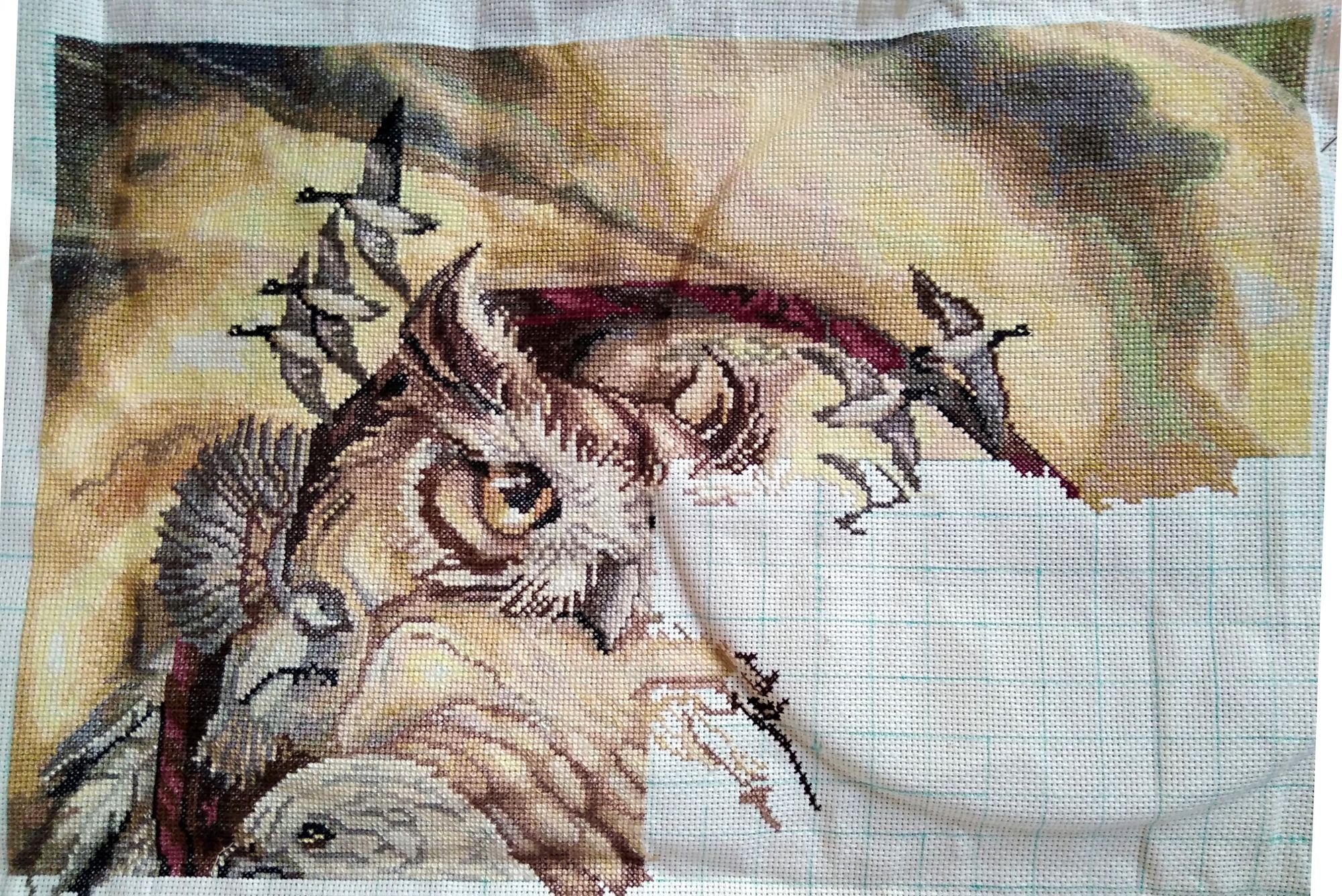 17 апреля 2020 15 часов назад, Egelia сказал(а): Какое хорошее продвижение. И как же красиво. Совиный взгляд обалденный. Валя, спасибо большое! 1 час назад, apanjul сказал(а): Как же мне нравятся эти переходы! Шикарно! Юляшек, спасибо! 1 час назад, apanjul сказал(а): Спасибо за воспоминания) Обращайтесь) Ещё чего-нибудь вспомним)) Всем привет! Я сегодня закончила подпольный процесс по бесплатной схеме Виктории Ивченко https://www.stitch.su/ivchenko_viktoria/14869 Я вообще очень плохо знаю нашу базу схем, а тут смотрела и выделила для себя несколько бесплатных)) И так меня эта лиса зацепила, что я её начала чуть не в тот же самый день в пятницу 13 марта. Канву взяла красивого морковного цвета, когда-то мне Юля @Ponochka дарила. Юля, привет!14 каунт (дизайнер рекомендует 16-й, но я не представляю, как на нём выводить клочки несчётного бэка). Из более плотных материалов ничего по цвету не понравилось, а ждать в таких случаях я не умею)) Бэк пробовала в одну нить - его совсем не видно на рыхлой канве, в две - на длинных протяжках расслаивается. Я всё хочу попробовать нить Гутерманн, наверное, она бы подошла. Взяла в итоге свою любимую шерсть в одну нить тёмно-коричневого цвета. Бэк, кстати, на 85% несчётный Я местами сильно путалась, хоть и старалась придерживаться всех "несчётностей". Особенно меня подкосили длиннные узкие листья выше передних лап, почему-то у меня их получилось гораздо больше Выпарывать не стала, потому что с шерстью это ничем хорошим не заканчивается. Надолго откладывала, а закончила буквально за два дня вчера и сегодня. Французы мне удаются один из ста, а на этой буквально сетчатой канве они не затягивались, а если затягивались, то проваливались со свистом на обратную сторону. Бисера у меня в запасах нет, и я не уверена, что можно его красиво пришить на такую слабую основу. Так что итоговые фото без французов(( Ивченко Виктория #14869 Лисья весна. Размер 106х142 крестика, 1 цвет ВСЁ!! Цвета гуляют, сегодня темно, как вечером, снимала глаженое с использованием всего света, что есть в наличии(( Канва ещё и слиняла, так что, возможно, стала посветлее. P.S. Название меня слегка напрягает( моя папка с фото называется "Весенняя лиса") apanjul, Каори, Хозяйка смешных зверей и 29 других сказали спасибо Поделиться сообщением Ссылка на сообщение
