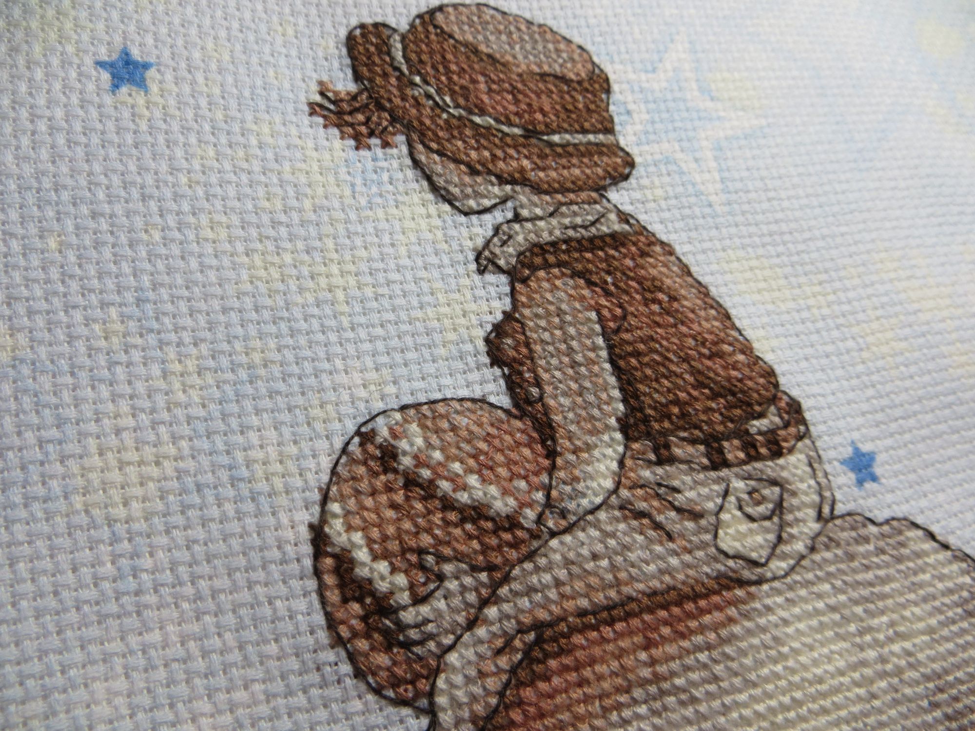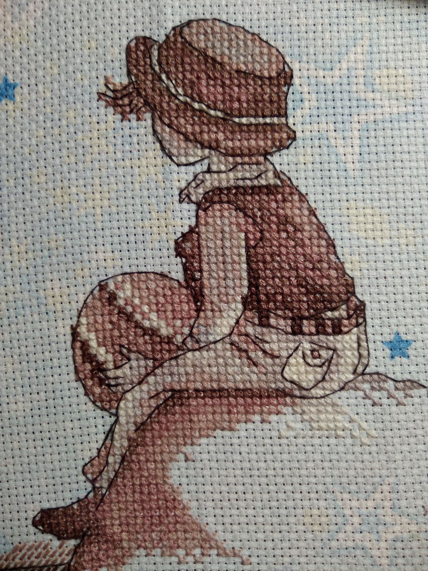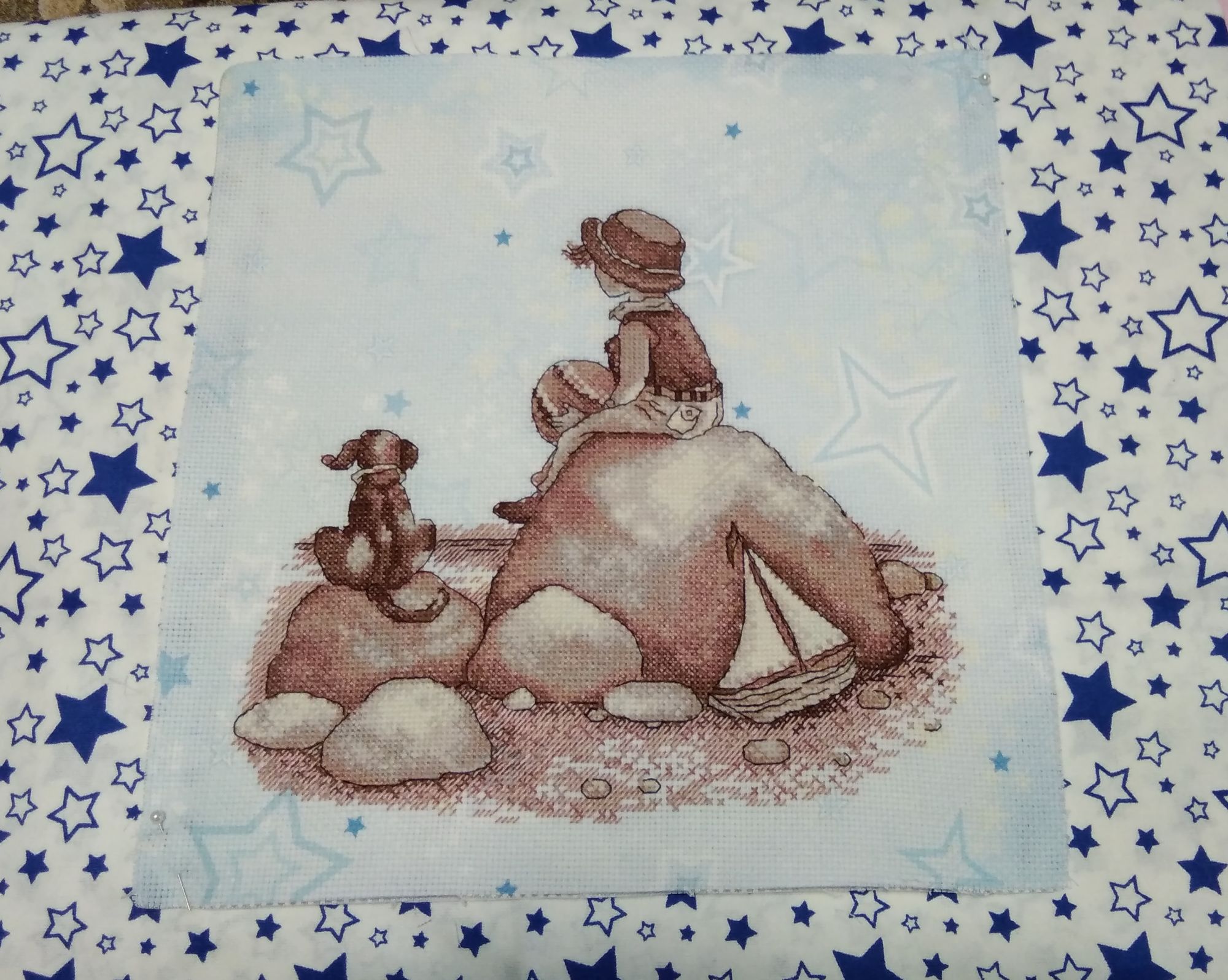 31 декабря 2020 Поскольку мне долго было не до отчётов, то немного отчитаюсь сегодня. Вот последний по времени законченный процесс. Осенью забрала остатки набора у Юли @apanjul вдохновилась её работой и удивительным сочетанием сюжета и основы https://www.stitch.su/users/ready-works/apanjul&130. Свой процесс закончила 9 декабря, но сначала ждала, когда Юля покажет свой, а потом было некогдаЯ взяла канву Bestex "Аида 14", 30 х 30 см. арт.7721913_007 из закупки с Озона двухлетней давности. Шила в две нити, как и Юля. Для меня название процесса - Звёздная страна. Н.Н. Добронравов Маленький принц Кто тебя выдумал, звёздная страна? Снится мне издавна, снится мне она. Выйду я из дому, выйду я из дому – Прямо за пристанью бьётся волна. Ветреным вечером смолкнут крики птиц. Звёздный замечу я свет из-под ресниц. Тихо навстречу мне, тихо навстречу мне Выйдет доверчивый маленький принц. Самое главное – сказку не спугнуть, Миру бескрайнему окна распахнуть. Мчится мой парусник, мчится мой парусник, Словно отправился в сказочный путь. Где же вы, где же вы, счастья острова? Где побережие света и добра? Там, где с надеждами, там, где с надеждами Самые нежные дружат слова. В детстве оставлены давние друзья, Жизнь – это плаванье в дальние края. Песни прощальные, гавани дальние, В жизни у каждого сказка своя. Кто тебя выдумал, звёздная страна? Снится мне издавна, снится мне она. Выйду я из дому, выйду я из дому – Прямо за пристанью бьётся волна. Овен 688 Душа капитана, 25х22, аида 14, счетный крест ВСЁ!! Я не стала вышивать облака и чаек, чтобы не "приземлять" свою задумку про страну сказок, мечтаний, ожиданий... Сюжет сместила на 10 кл вниз, чтобы побольше принта было видно, для нашей багетки неважно, сколько на краях осталось, если не меньше сантиметра Хочу подарить двоюродному племяннику (5,5 лет). Мячик в руках Ане напомнил планету, и правда - на Юпитер похож! Я в те дни как раз смотрела документальный сериал о планетах с шикарной озвучкой. Скрытый текст К концу работы я героя воспринимала скорее не как мальчика, а как девочку-пацанку как-то неожиданно вспомнила свои штаны с карманами, да и жилетка, кажется, была Только чёлку в парикмахерских, почему-то отрезали чуть не под корень. Нашла пару подходящих фото, много фото и в платьях, и в юбках, но эти смешнее тот ещё пацанёнок) даже помню, что я тут делаю. Нас взял на рыбалку папин знакомый, я сижу на берегу и процарапываю в плотном комке песка дырку ("куриный бог") и чтобы кусочек остался целым. Это мы так в садике развлекались Камма80, WhiteMoth, Welt и 30 других сказали спасибо Поделиться сообщением Ссылка на сообщение
