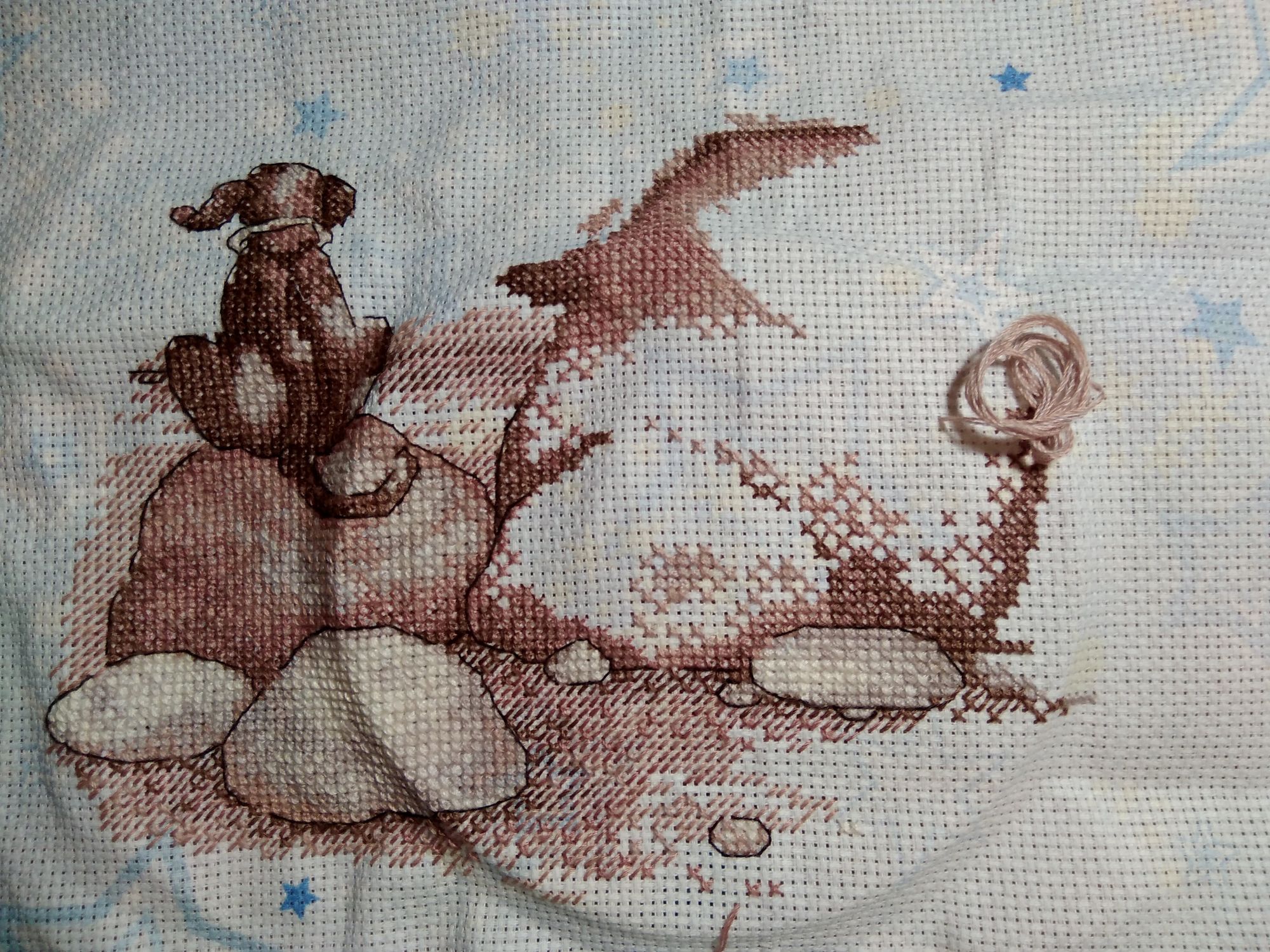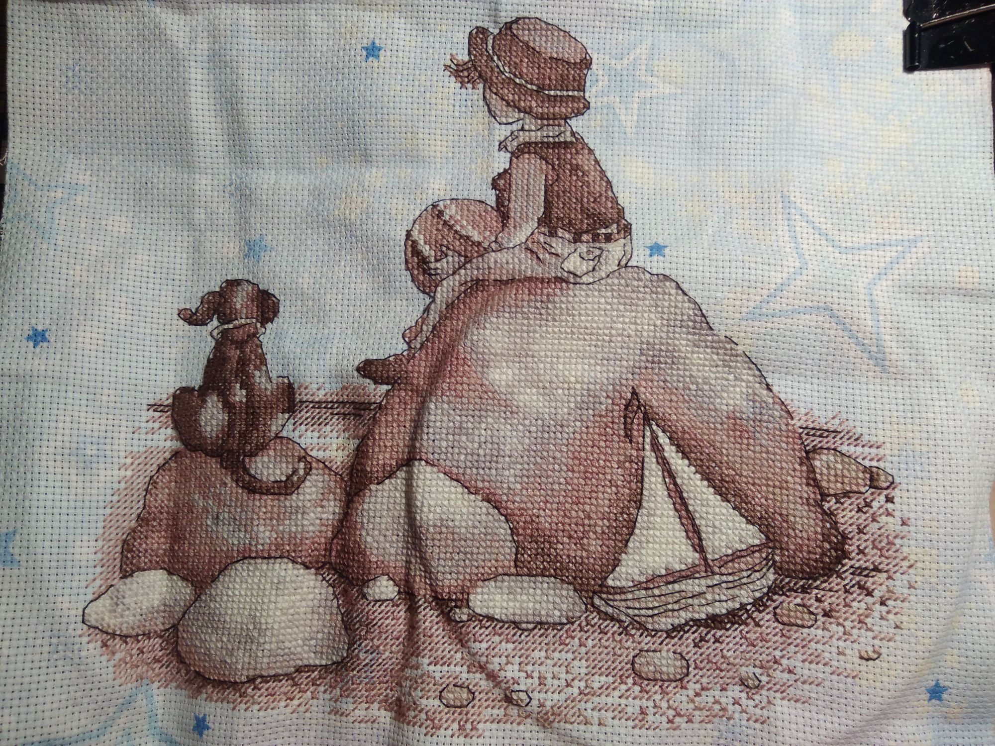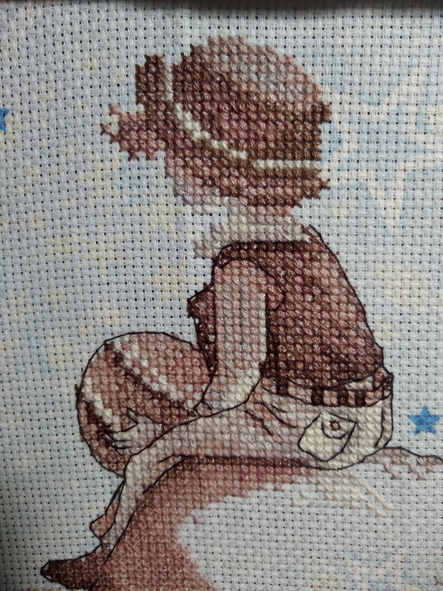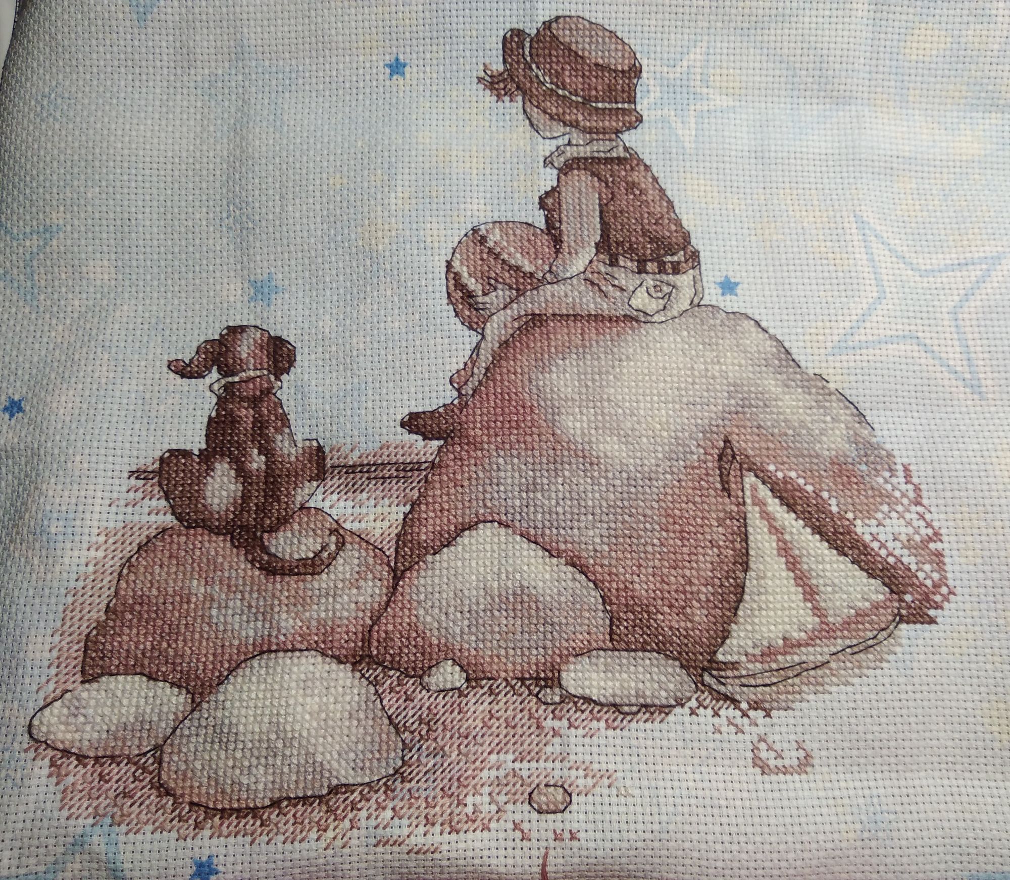 31 декабря 2020 Поскольку мне долго было не до отчётов, то немного отчитаюсь сегодня. Вот последний по времени законченный процесс. Осенью забрала остатки набора у Юли @apanjul вдохновилась её работой и удивительным сочетанием сюжета и основы https://www.stitch.su/users/ready-works/apanjul&130. Свой процесс закончила 9 декабря, но сначала ждала, когда Юля покажет свой, а потом было некогдаЯ взяла канву Bestex "Аида 14", 30 х 30 см. арт.7721913_007 из закупки с Озона двухлетней давности. Шила в две нити, как и Юля. Для меня название процесса - Звёздная страна. Н.Н. Добронравов Маленький принц Кто тебя выдумал, звёздная страна? Снится мне издавна, снится мне она. Выйду я из дому, выйду я из дому – Прямо за пристанью бьётся волна. Ветреным вечером смолкнут крики птиц. Звёздный замечу я свет из-под ресниц. Тихо навстречу мне, тихо навстречу мне Выйдет доверчивый маленький принц. Самое главное – сказку не спугнуть, Миру бескрайнему окна распахнуть. Мчится мой парусник, мчится мой парусник, Словно отправился в сказочный путь. Где же вы, где же вы, счастья острова? Где побережие света и добра? Там, где с надеждами, там, где с надеждами Самые нежные дружат слова. В детстве оставлены давние друзья, Жизнь – это плаванье в дальние края. Песни прощальные, гавани дальние, В жизни у каждого сказка своя. Кто тебя выдумал, звёздная страна? Снится мне издавна, снится мне она. Выйду я из дому, выйду я из дому – Прямо за пристанью бьётся волна. Овен 688 Душа капитана, 25х22, аида 14, счетный крест ВСЁ!! Я не стала вышивать облака и чаек, чтобы не "приземлять" свою задумку про страну сказок, мечтаний, ожиданий... Сюжет сместила на 10 кл вниз, чтобы побольше принта было видно, для нашей багетки неважно, сколько на краях осталось, если не меньше сантиметра Хочу подарить двоюродному племяннику (5,5 лет). Мячик в руках Ане напомнил планету, и правда - на Юпитер похож! Я в те дни как раз смотрела документальный сериал о планетах с шикарной озвучкой. Скрытый текст К концу работы я героя воспринимала скорее не как мальчика, а как девочку-пацанку как-то неожиданно вспомнила свои штаны с карманами, да и жилетка, кажется, была Только чёлку в парикмахерских, почему-то отрезали чуть не под корень. Нашла пару подходящих фото, много фото и в платьях, и в юбках, но эти смешнее тот ещё пацанёнок) даже помню, что я тут делаю. Нас взял на рыбалку папин знакомый, я сижу на берегу и процарапываю в плотном комке песка дырку ("куриный бог") и чтобы кусочек остался целым. Это мы так в садике развлекались Камма80, WhiteMoth, Welt и 30 других сказали спасибо Поделиться сообщением Ссылка на сообщение